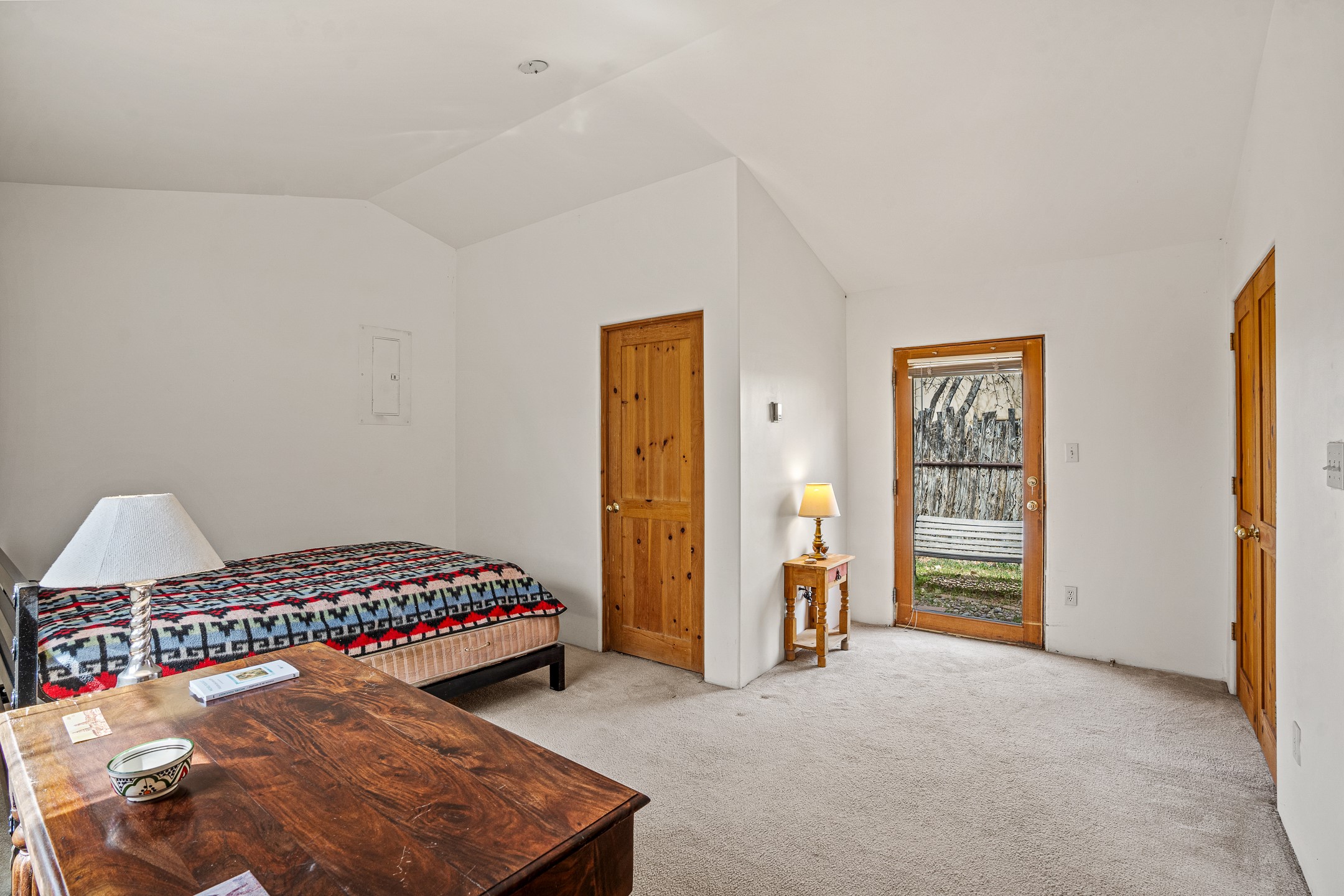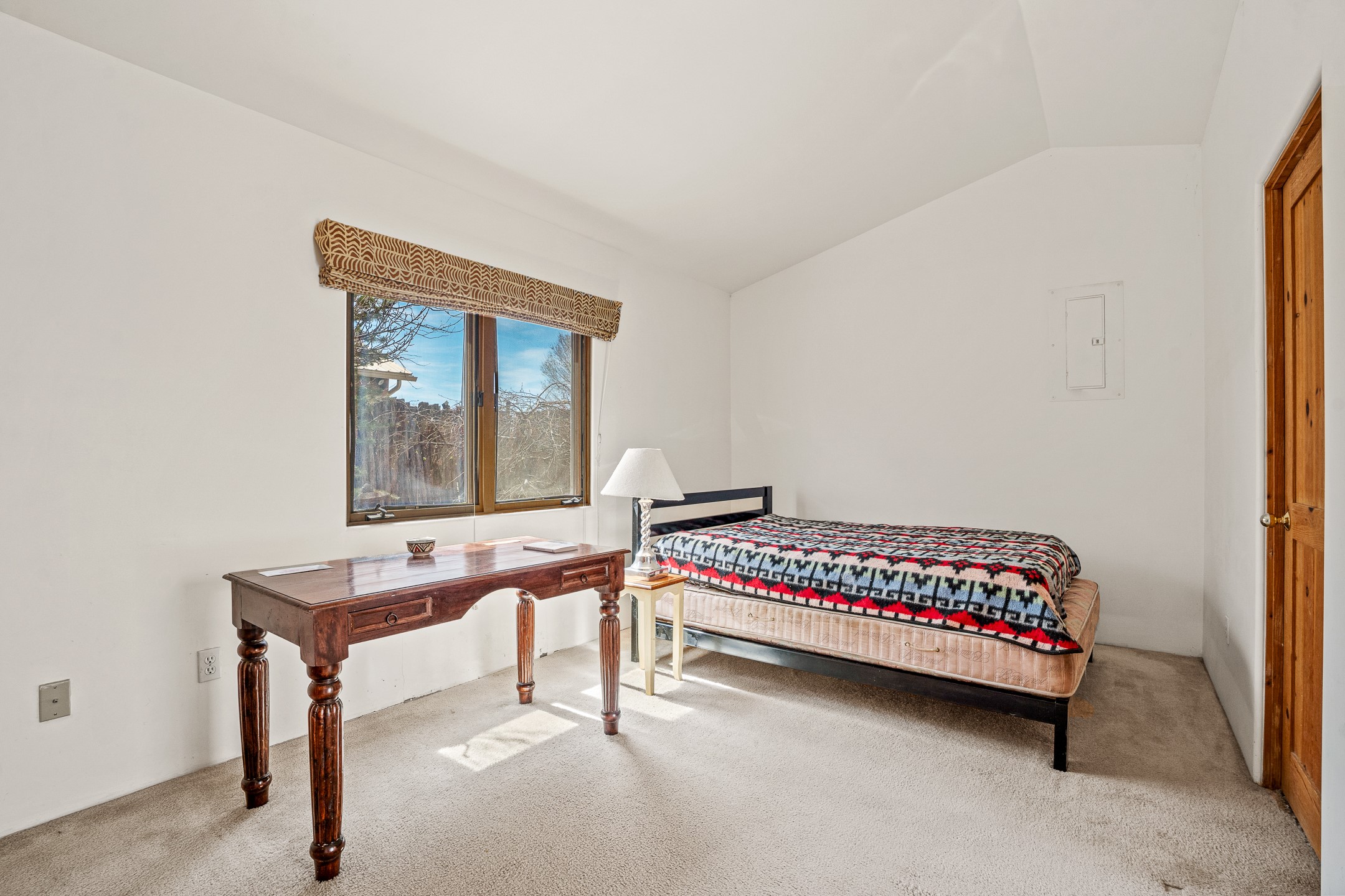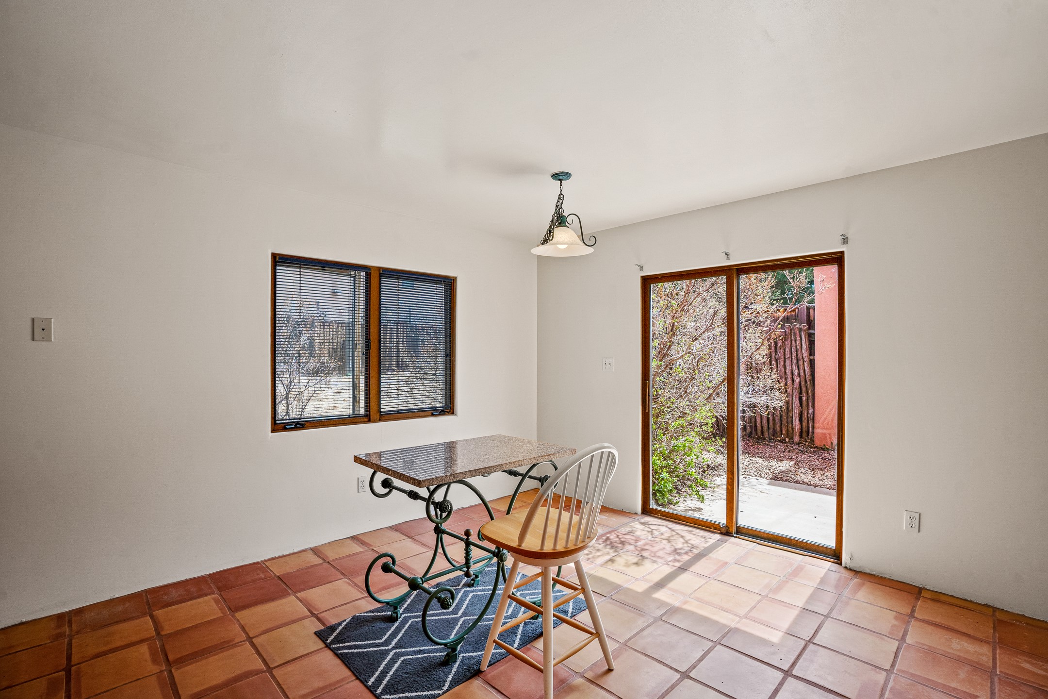 Discover the perfect blend of country charm and city convenience with this delightful four-bedroom, three-bathroom home, nestled in a serene Southside cul-de-sac. The main living area boasts rustic vigas and soaring high ceilings, creating a warm and inviting atmosphere. The spacious kitchen is bathed in natural light, making it a joy to cook and entertain. Two of the four bedrooms come with their own private bathrooms, offering comfort and privacy.The versatile downstairs bedroom suite can function as a separate apartment, complete with its own entrance and private fenced yard, ideal for guests or rental income. The home opens to a tranquil, fenced yard with low-maintenance landscaping, perfect for relaxing or entertaining.Situated next to a private greenbelt with scenic walking paths, this home is just two houses away from the community clubhouse, which is perfect for hosting events. Having been lovingly maintained by the same owner for 25 years, this home is filled with natural light and offers a peaceful retreat within the city. With low HOA fees of just $35 per month, this charming home is a rare find. Don't miss the opportunity to make it yours!