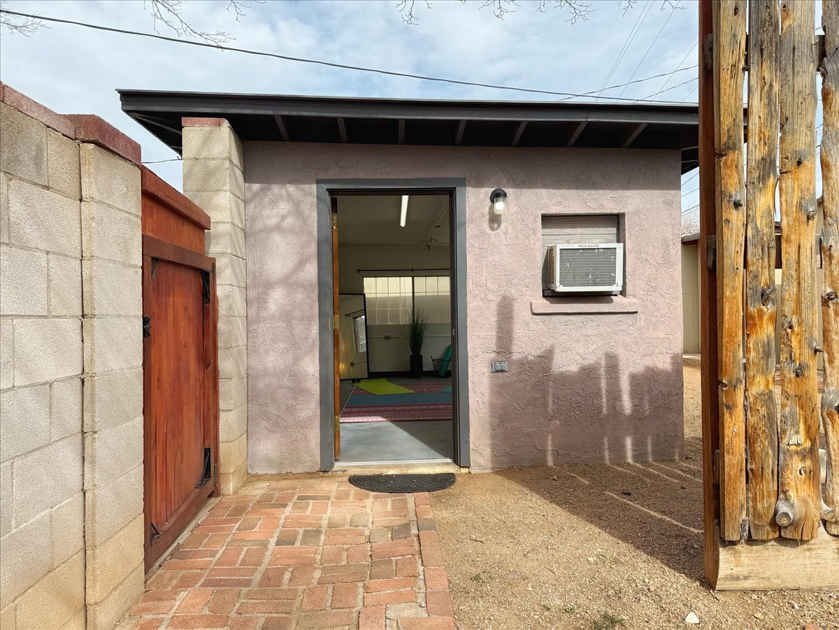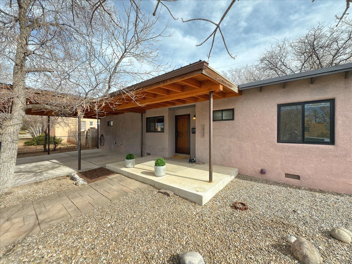Welcome to this solid Stamm built home plus studio. This 1954 home retains charms of it's era, yet updated to today's standards. You'll love the original hardwood floors and Stamm doors! Custom wood work throughout. The third bedroom makes a great guest room or home office, separated on opposite sides of the house. The home is equipped with central air and heat, plus a tankless water heater and whole house water filtration system. The detached studio, with heat and cooling, could also provide a private office or studio with lots of natural light. As a bonus, this property has two large storage sheds, so the newer owner(s) never lack for storage space. The house comes with an installed EV charger in the carport. Centrally located to all things Santa Fe, you owe to yourself to come check this one out.