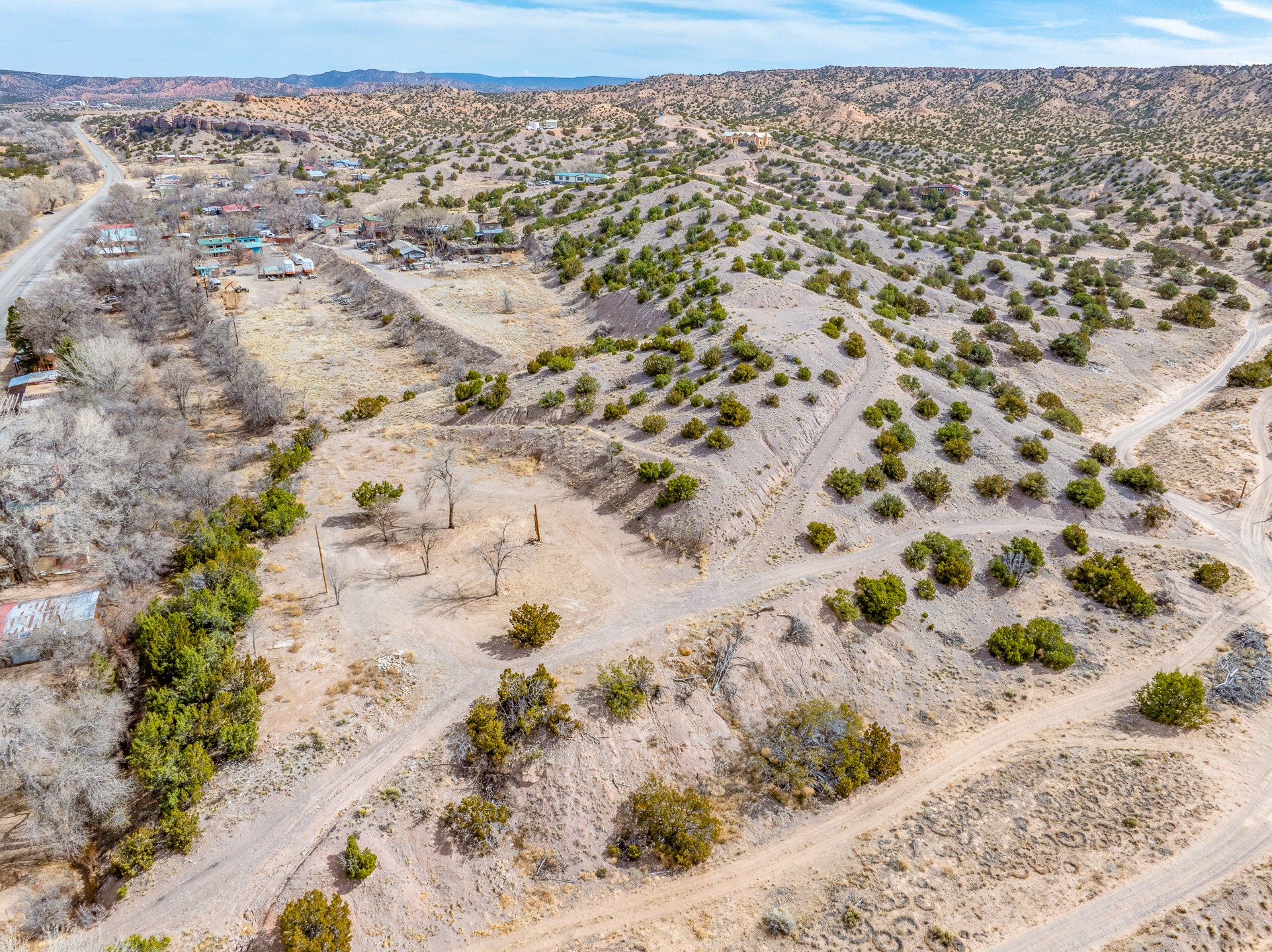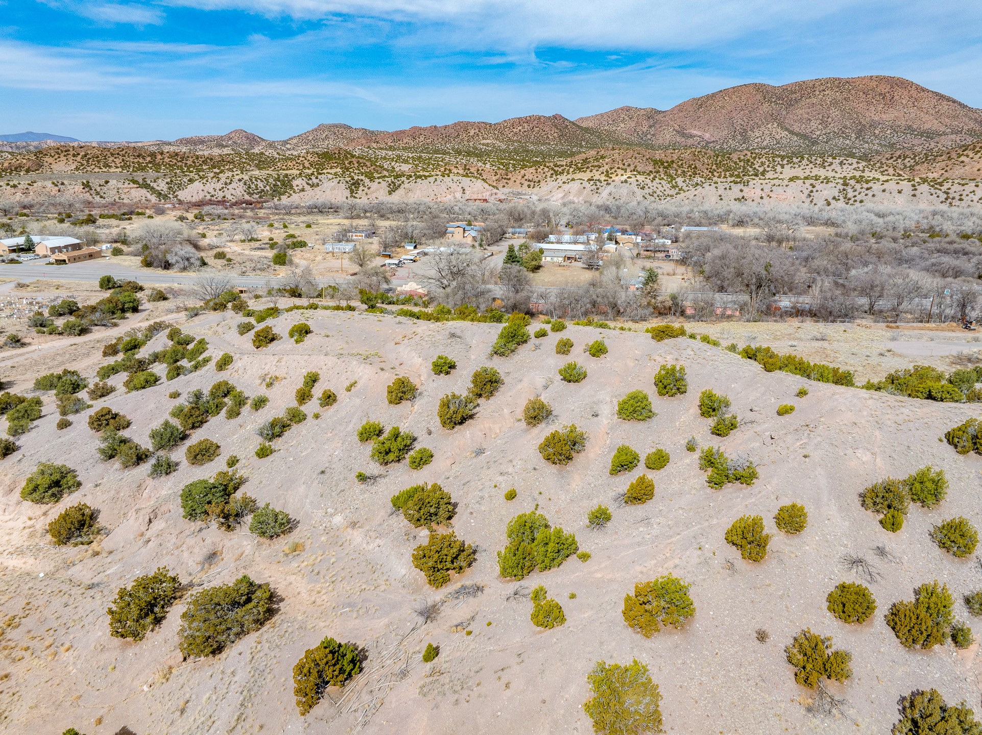 Seize the opportunity to own 3.15 acres of vacant land perched atop a hill in the charming Ojo Caliente area. This property offers breathtaking, panoramic views of the surrounding mountains, providing a tranquil and picturesque setting for your future project. The land features easy access to essential utilities, with both electricity and community water available, making it an ideal spot for development or personal use.Located directly across the street from the renowned Ojo Caliente Spa & Resort, you'll enjoy the perfect combination of peaceful, elevated living with easy access to one of New Mexico's most celebrated destinations. This property is Lot 2, adjacent to Lot 1, a commercial property, and Lot 3 - 9 acres of vacant land, also available for purchase.