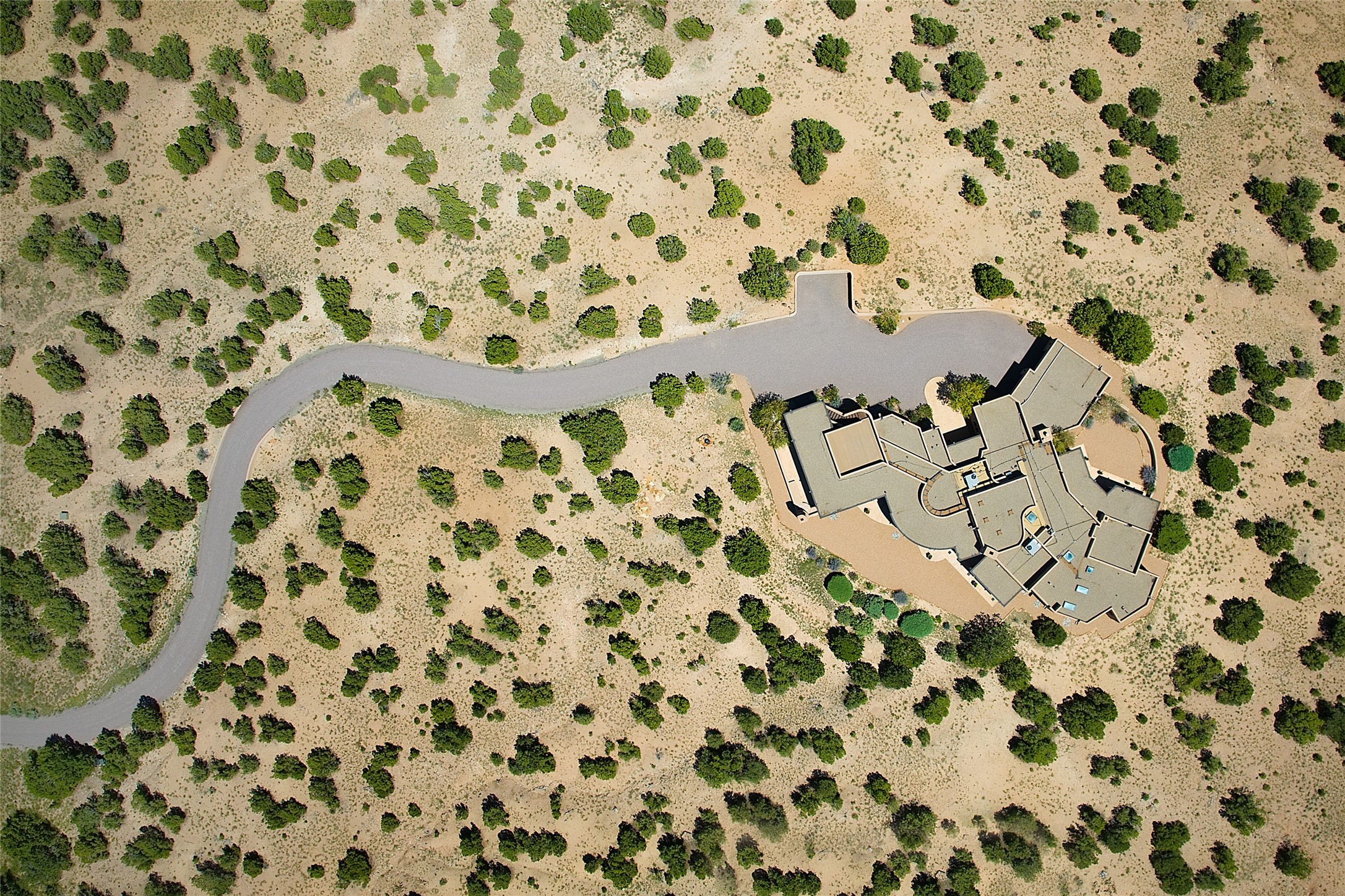 This beautiful 3,900+ sq ft, single level home is sited on a large and exciting 2.9 acre lot in Estates I of Las Campanas, only 6 miles from the Santa Fe Plaza. Incredible 360 degree views to the Jemez and Sandia mountains as well as the Sangre de Cristo mountains are framed by the spacious portals that surround the home, ideal for entertaining. The curved diamond plaster walls, with rounded details define the open living room, dining, kitchen and family areas. There are three bedrooms and four bathrooms, plus flex room. Mexican stone and travertine tiled floors and columns are skillfully incorporated into the luxurious interior spaces. A sweeping stairway on an outside portal leads to a roof top deck offering spectacular and unobstructed views of all the surrounding mountains. This gorgeous home has the location, design fit and fixtures that make it a must see. Memberships to The Club at Las Campanas are available for purchase upon approval.