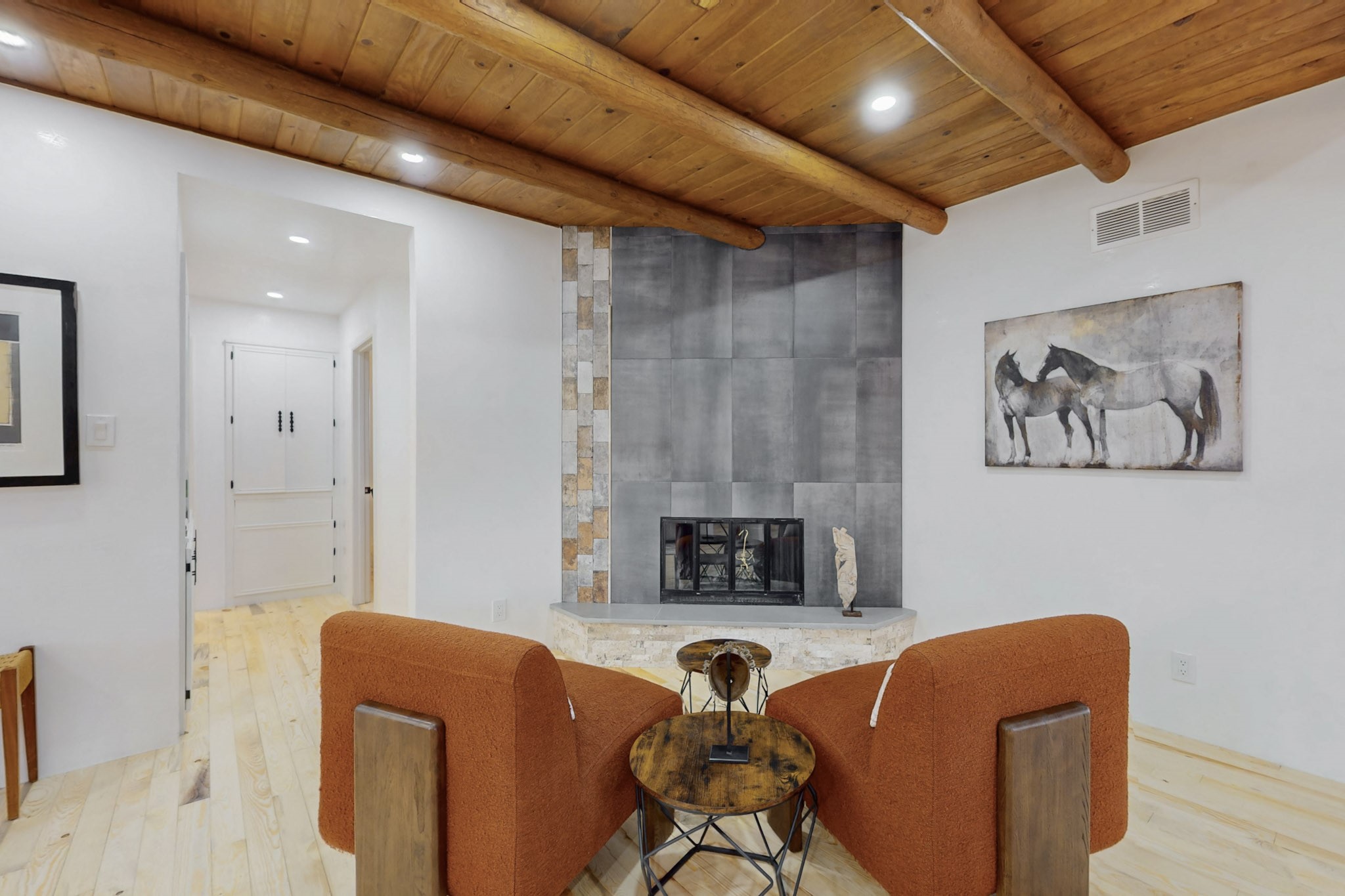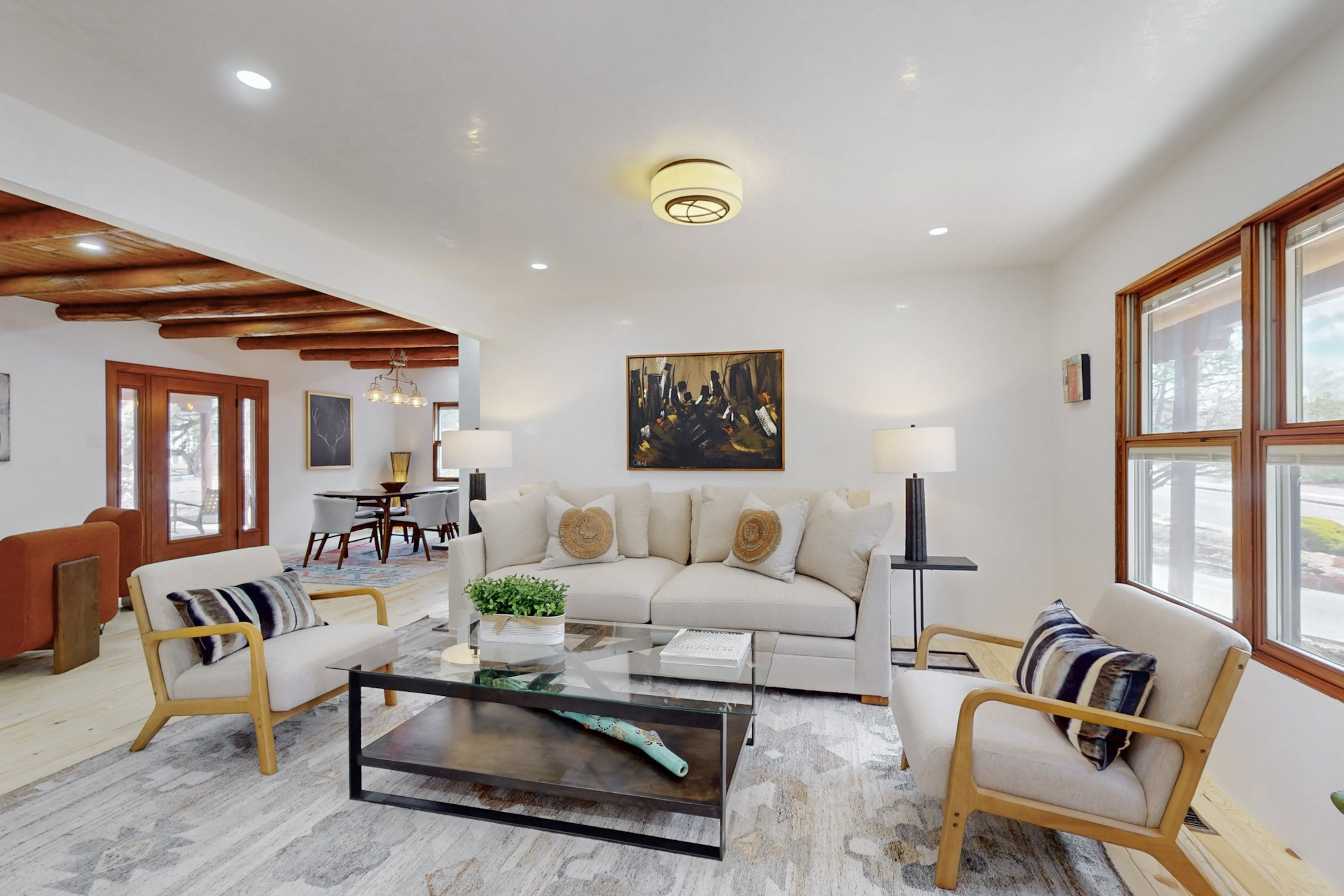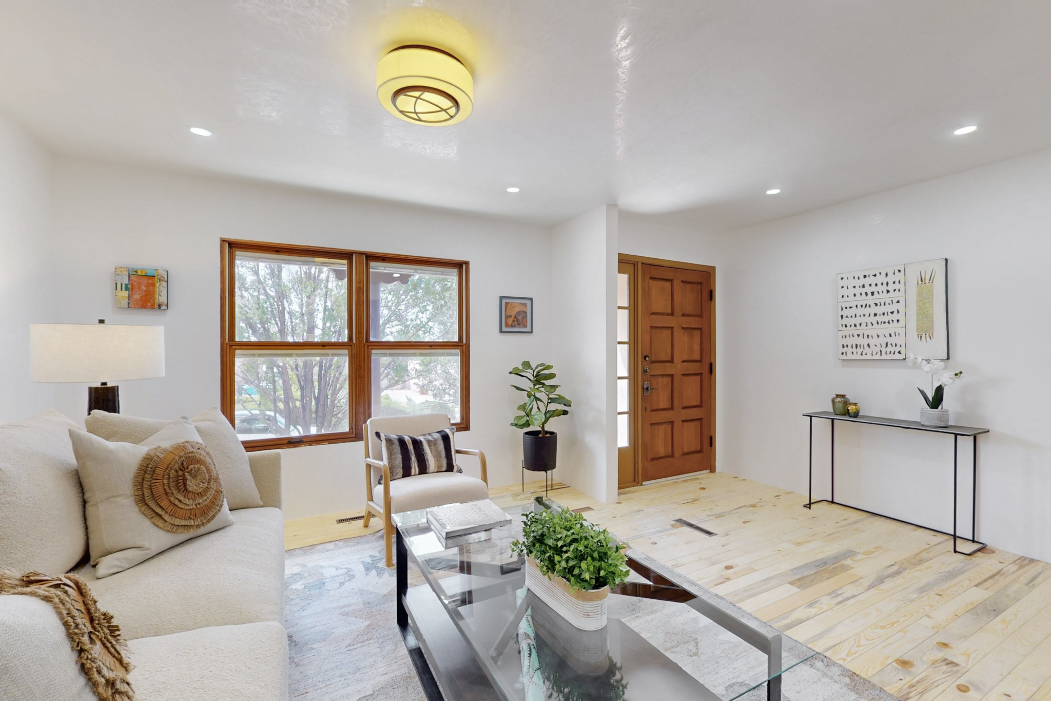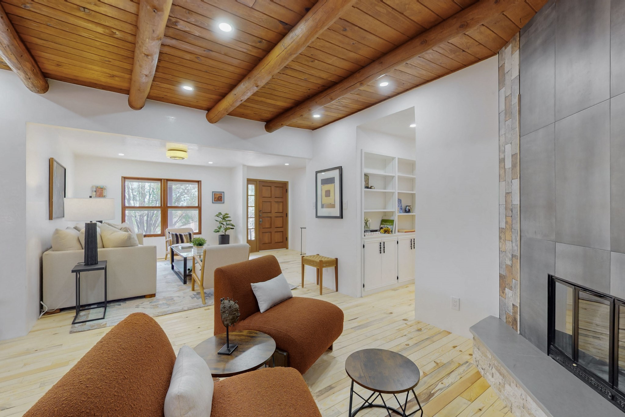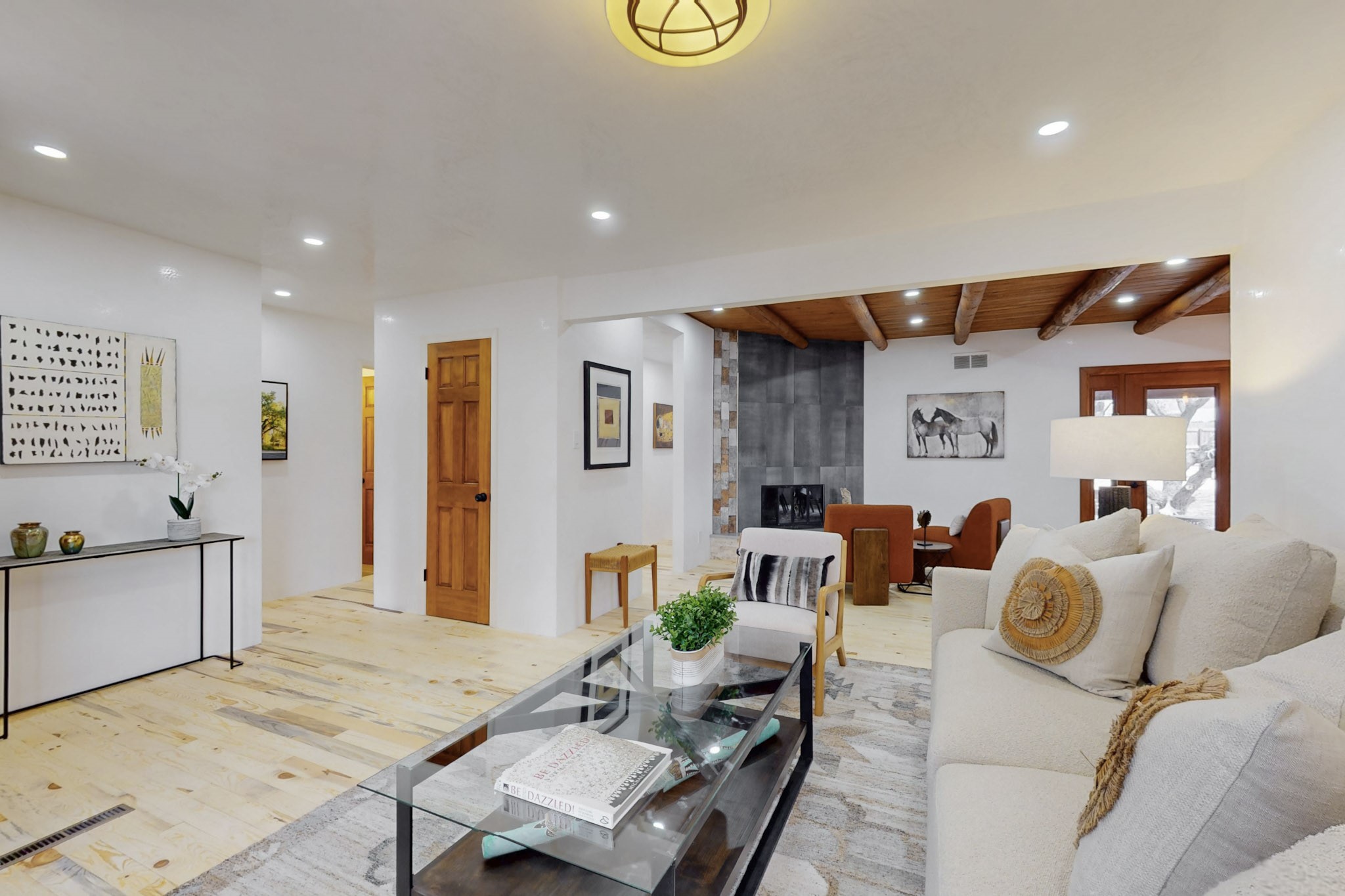 Welcome to this beautifully remodeled home nestled in Villa Caballero, one of the most sought-after Santa Fe neighborhoods! This charming 3-bedroom, 2-bathroom home is the perfect blend of modern updates and classic Santa Fe appeal. The open-concept living space features stylish finishes, bright natural light, and seamless flow, making it ideal for both relaxing and entertaining. The kitchen boasts sleek countertops, new stainless steel appliances, and ample cabinet space. There is a new kitchen island as well. The spacious primary suite offers a private retreat with an updated en-suite bathroom and new closet system. There are new reclaimed wood (from Mora NM) floors throughout and venetian plaster walls in the common areas. Step outside to your own private oasis--a large lot with lush gardens, mature landscaping, and plenty of space to enjoy the outdoors. Whether you're hosting gatherings, gardening, or simply unwinding, this backyard offers endless possibilities. Plus, RV parking provides convenience for your recreational vehicle or additional storage needs. With its prime location and exceptional features, this home is the perfect opportunity to live in comfort and style. Don't miss your chance to make this stunning property your own!