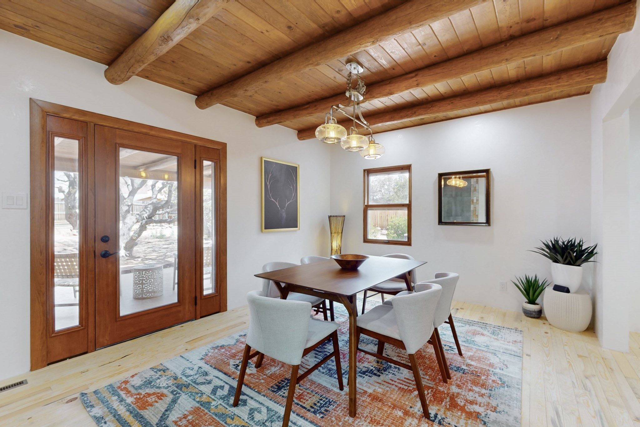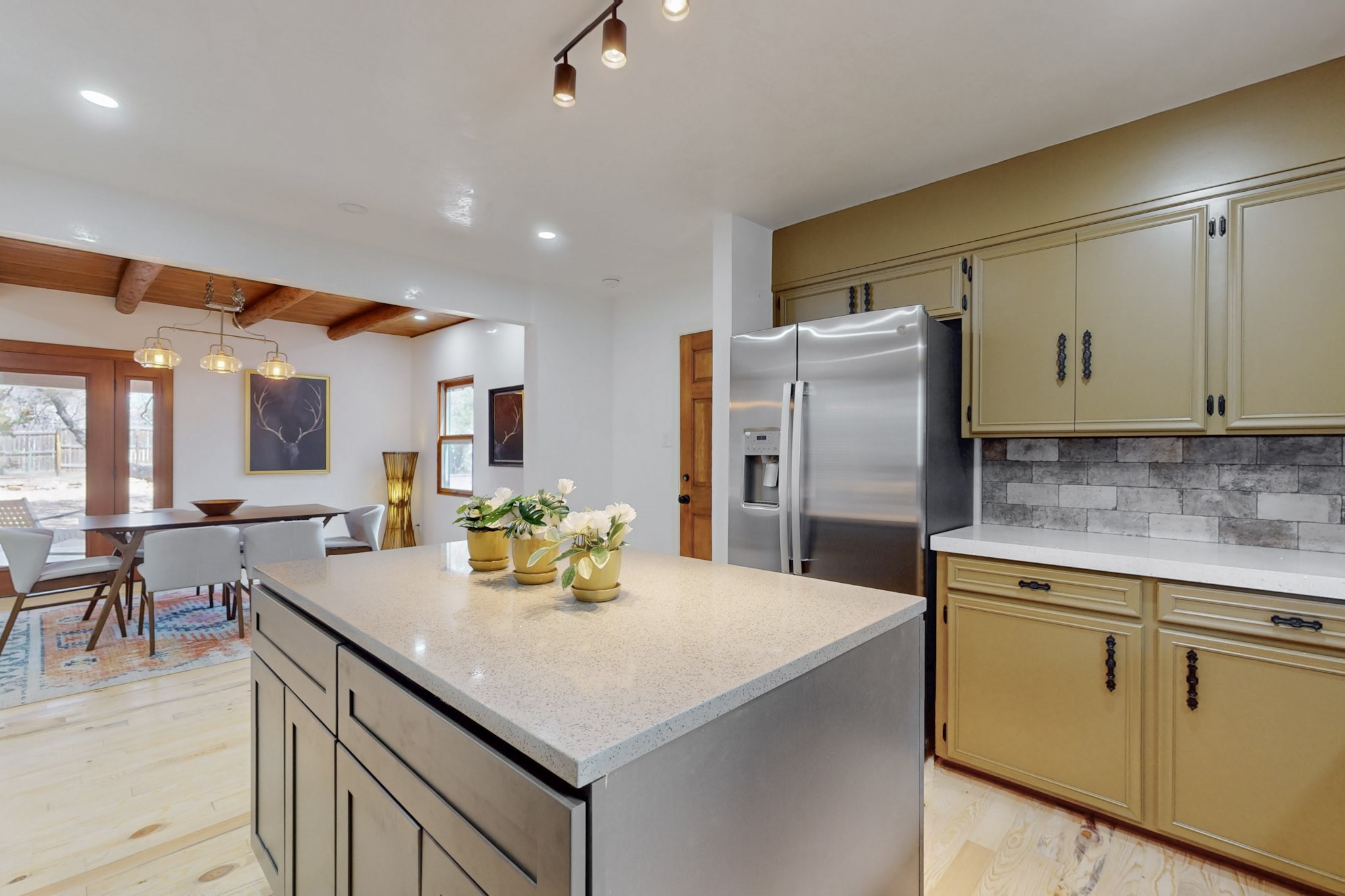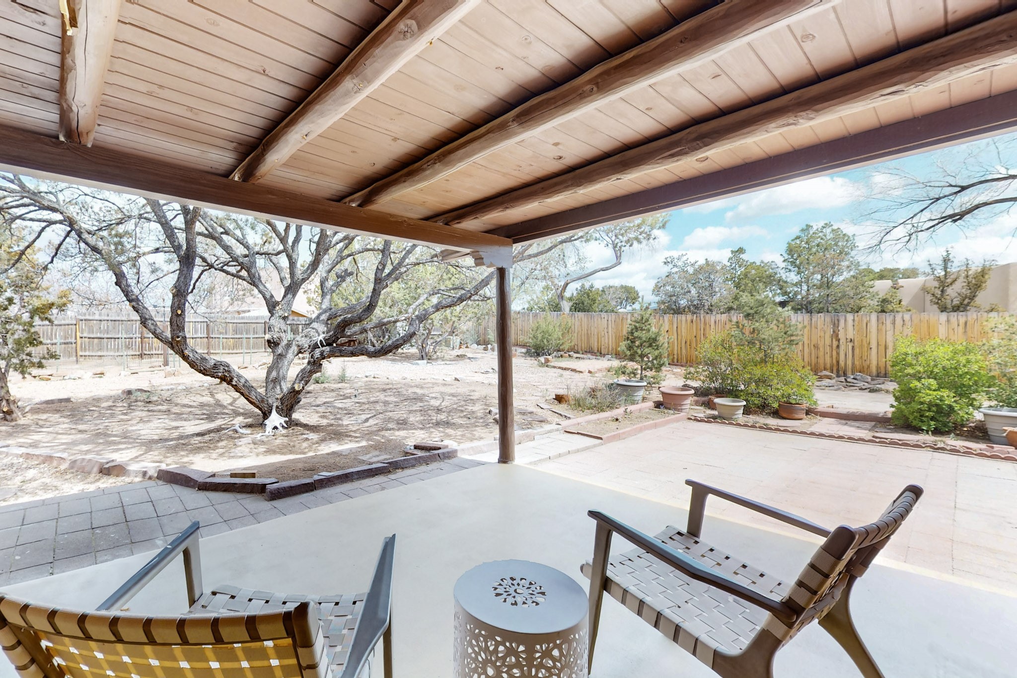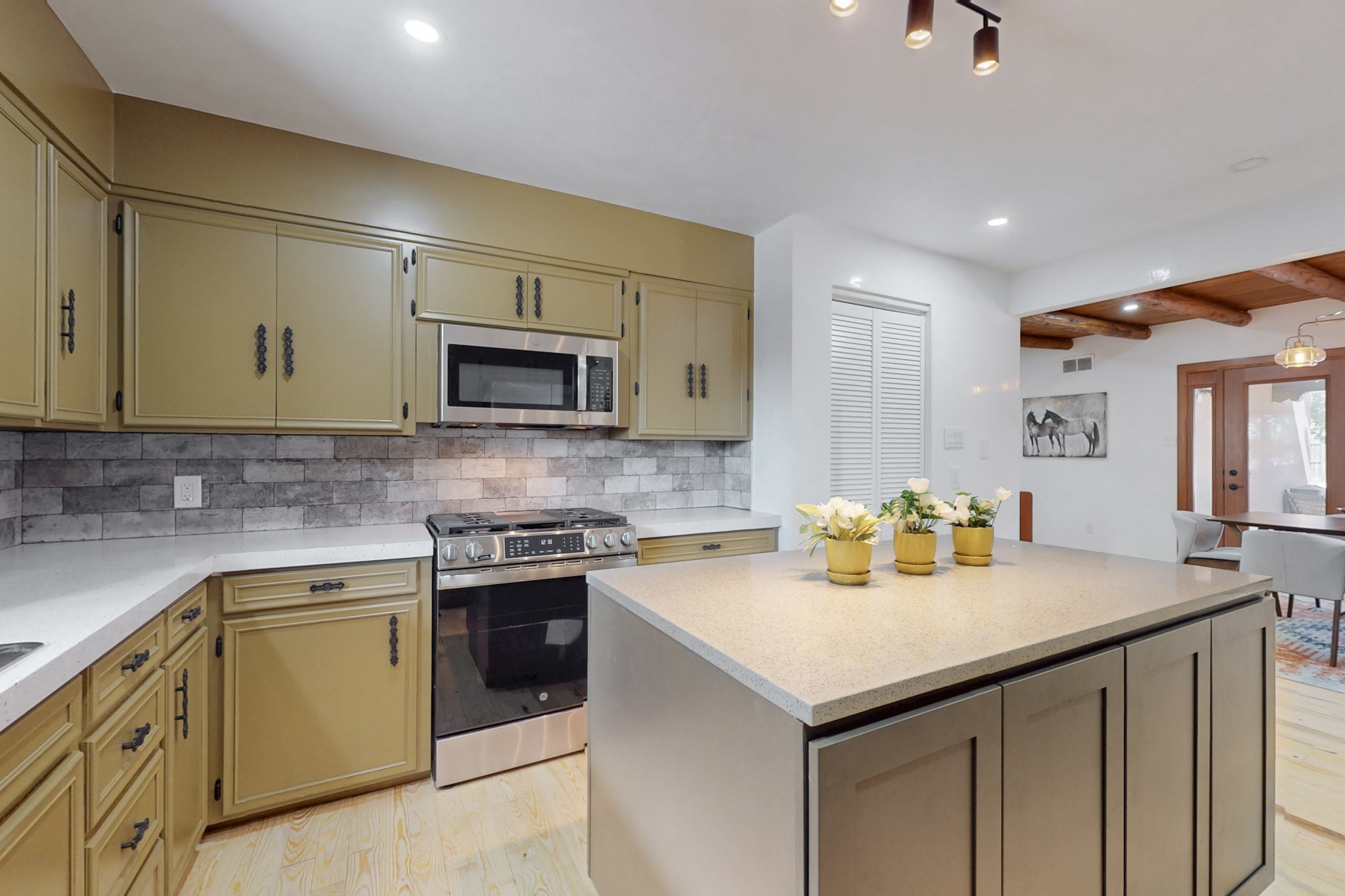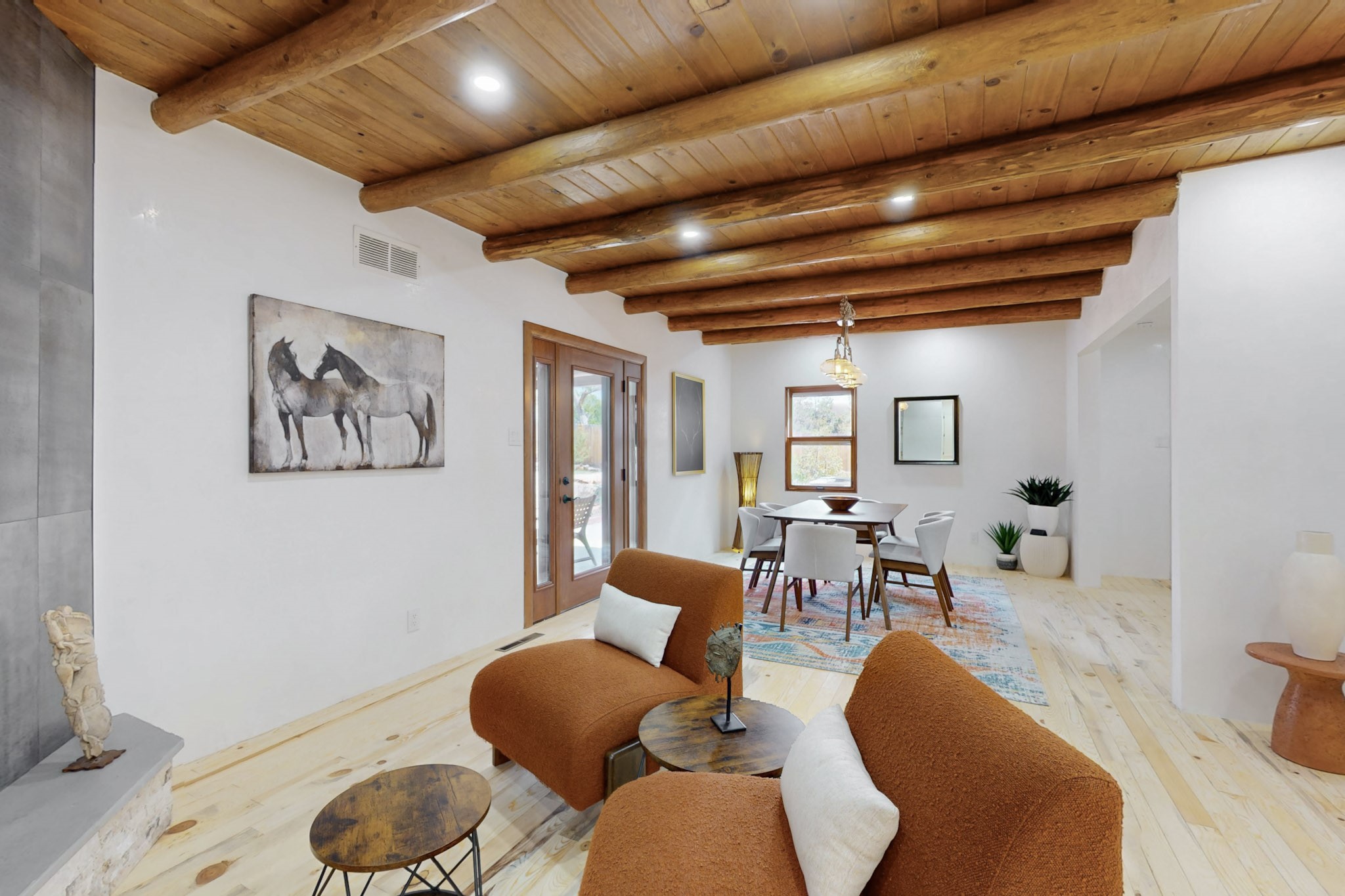 Welcome to this beautifully remodeled home nestled in Villa Caballero, one of the most sought-after Santa Fe neighborhoods! This charming 3-bedroom, 2-bathroom home is the perfect blend of modern updates and classic Santa Fe appeal. The open-concept living space features stylish finishes, bright natural light, and seamless flow, making it ideal for both relaxing and entertaining. The kitchen boasts sleek countertops, new stainless steel appliances, and ample cabinet space. There is a new kitchen island as well. The spacious primary suite offers a private retreat with an updated en-suite bathroom and new closet system. There are new reclaimed wood (from Mora NM) floors throughout and venetian plaster walls in the common areas. Step outside to your own private oasis--a large lot with lush gardens, mature landscaping, and plenty of space to enjoy the outdoors. Whether you're hosting gatherings, gardening, or simply unwinding, this backyard offers endless possibilities. Plus, RV parking provides convenience for your recreational vehicle or additional storage needs. With its prime location and exceptional features, this home is the perfect opportunity to live in comfort and style. Don't miss your chance to make this stunning property your own!