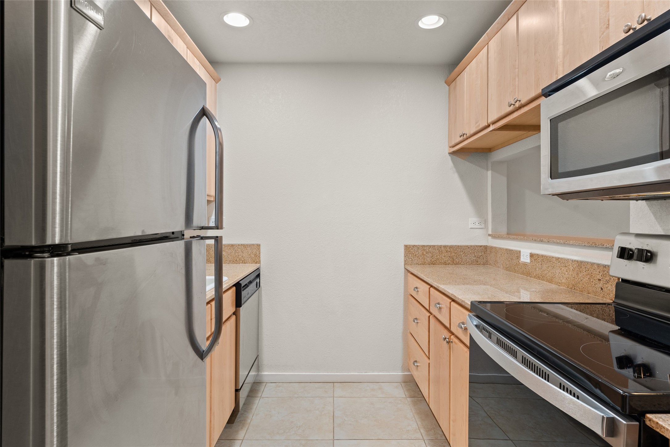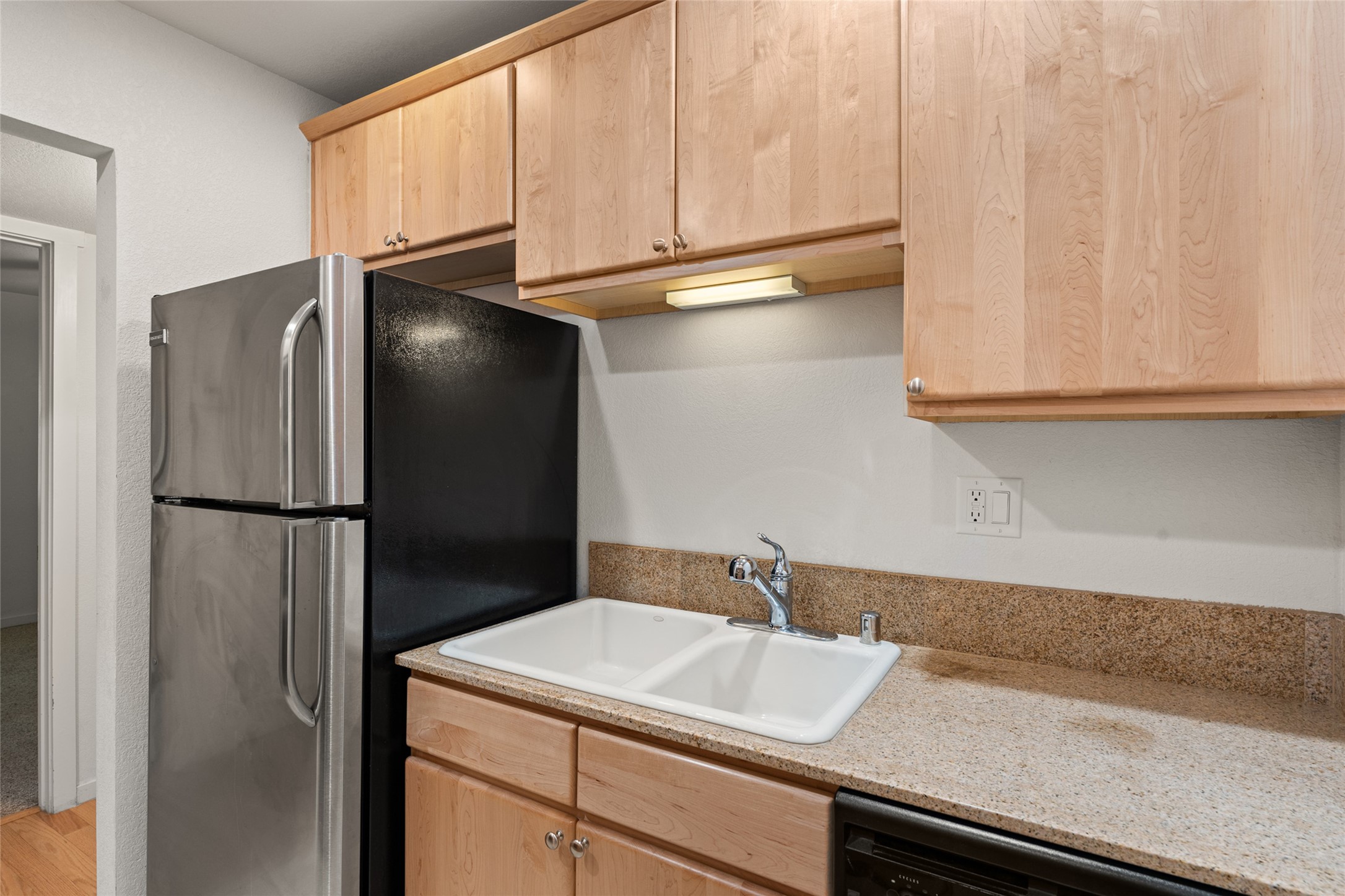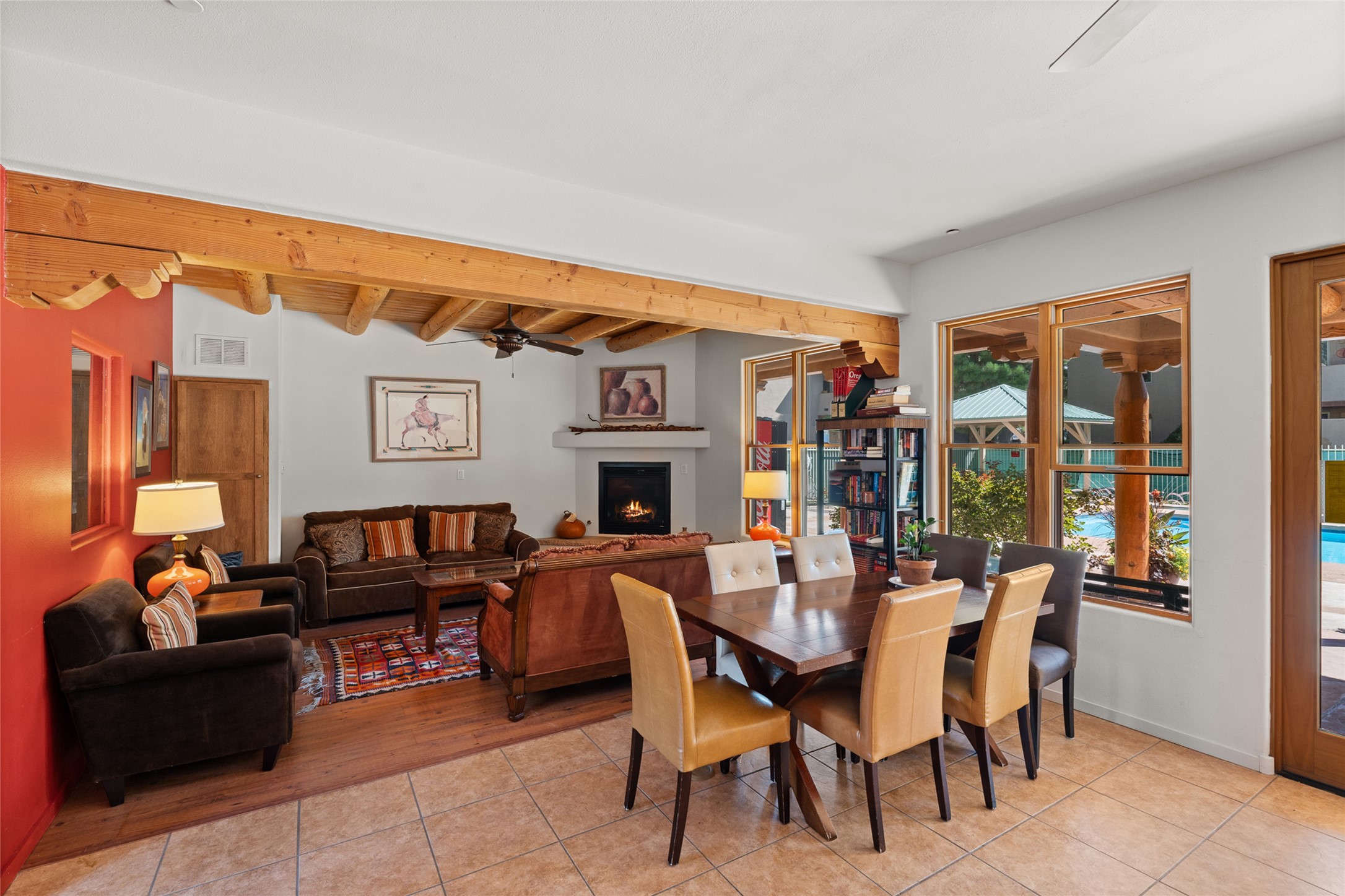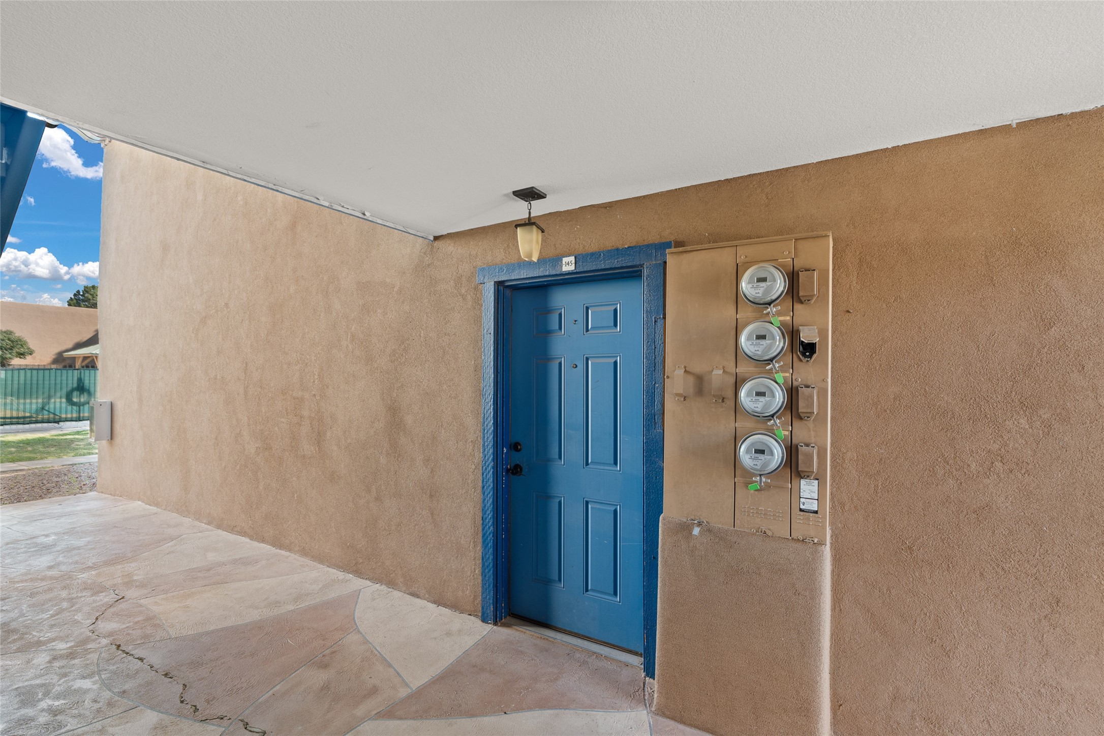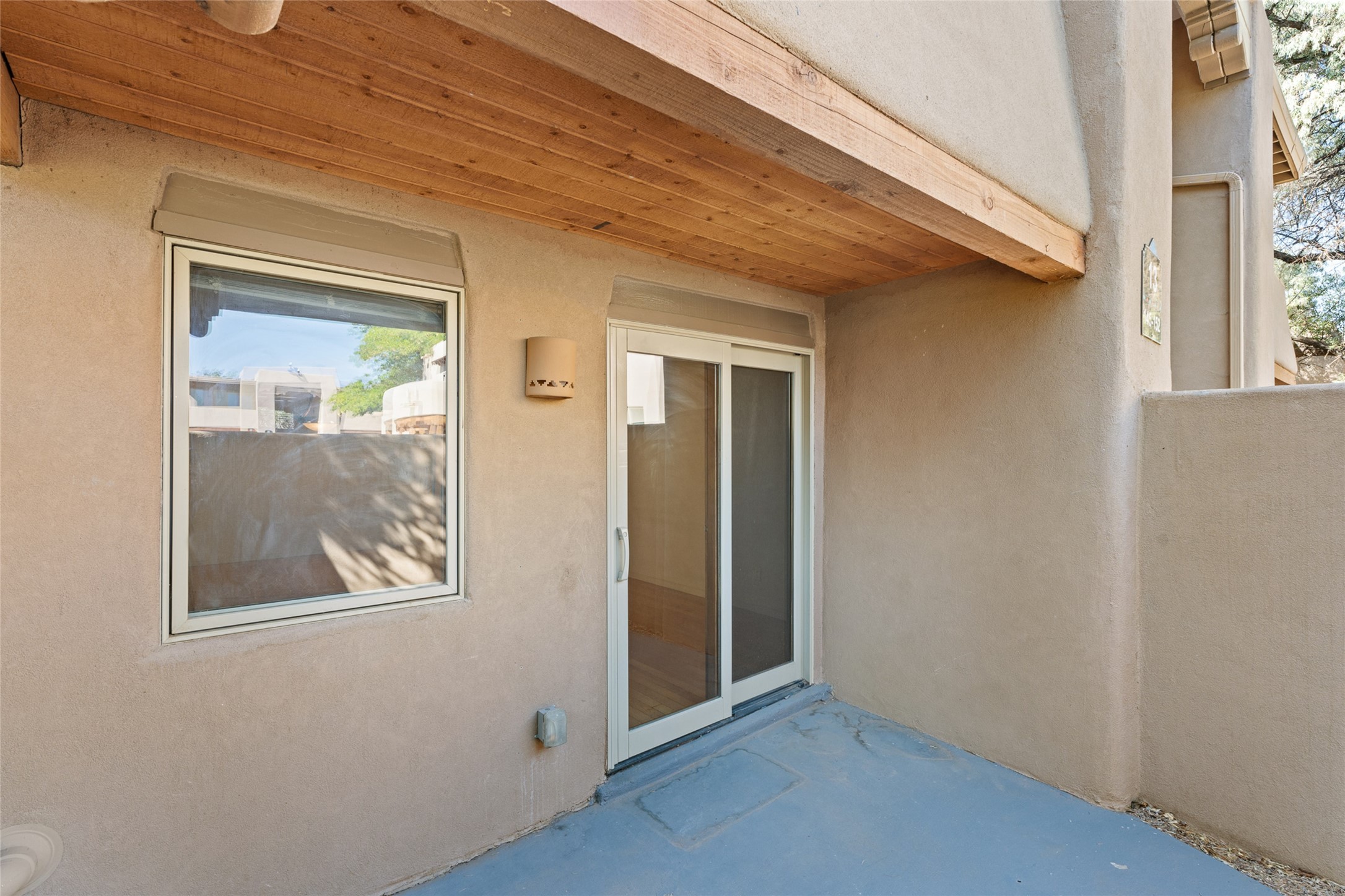 The San Mateo Condos are centrally located, close to shopping, the Santa Fe Plaza, the Rail yard with a farmers' market, restaurants, and hospitals. The grounds are beautiful, featuring a community pool. The community is gated and offers a convenient location to the Santa Fe and Albuquerque airports. This Condo is a one-bedroom, one-bath unit on the ground floor. It features engineered wood flooring, granite countertops, stainless steel appliances, air conditioning, and an outdoor patio off the large open living room and dining room. San Mateo Condos is a beautiful, serene oasis in the heart of Santa Fe. Look at this Condo; it might be right for you!