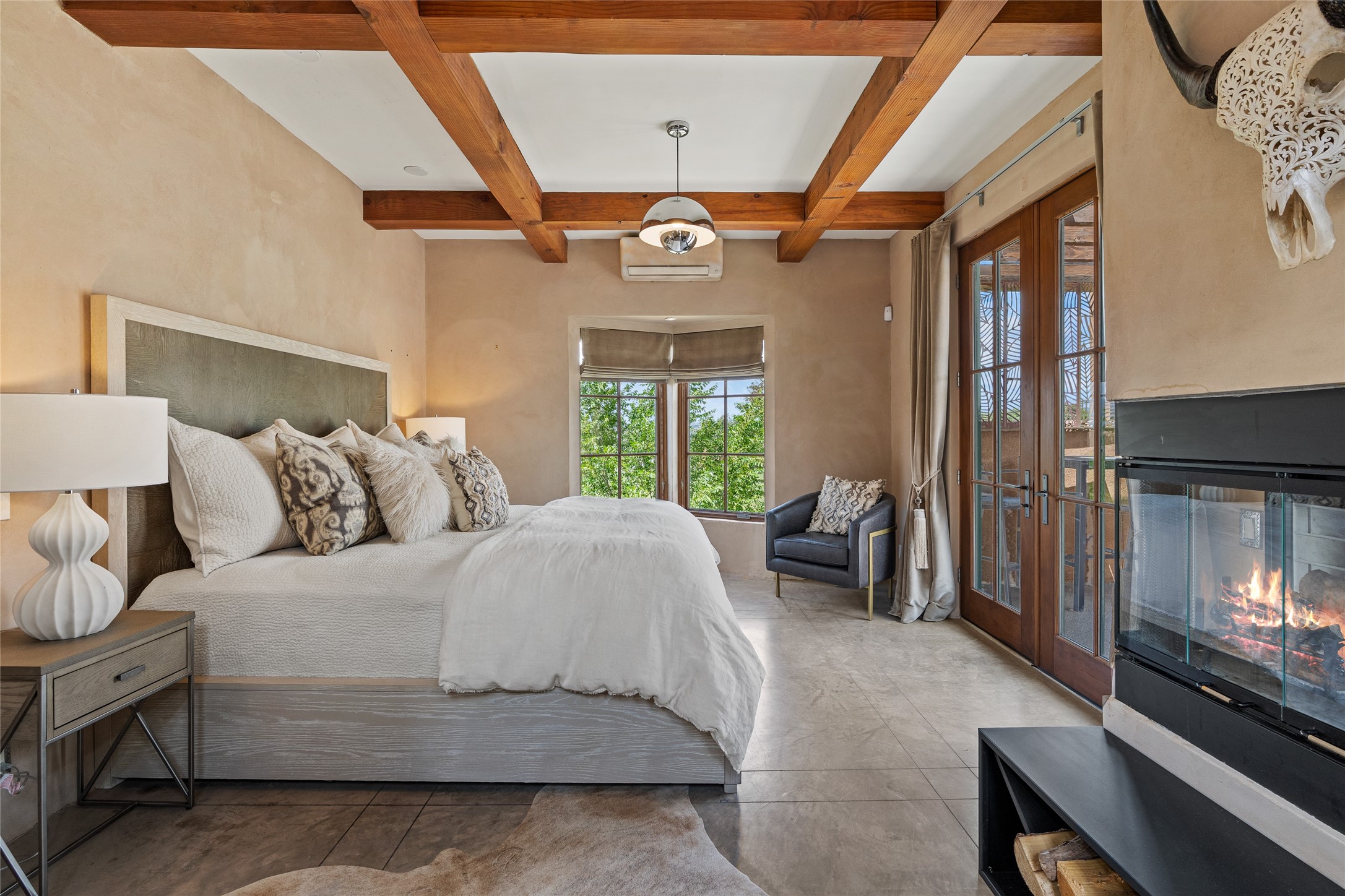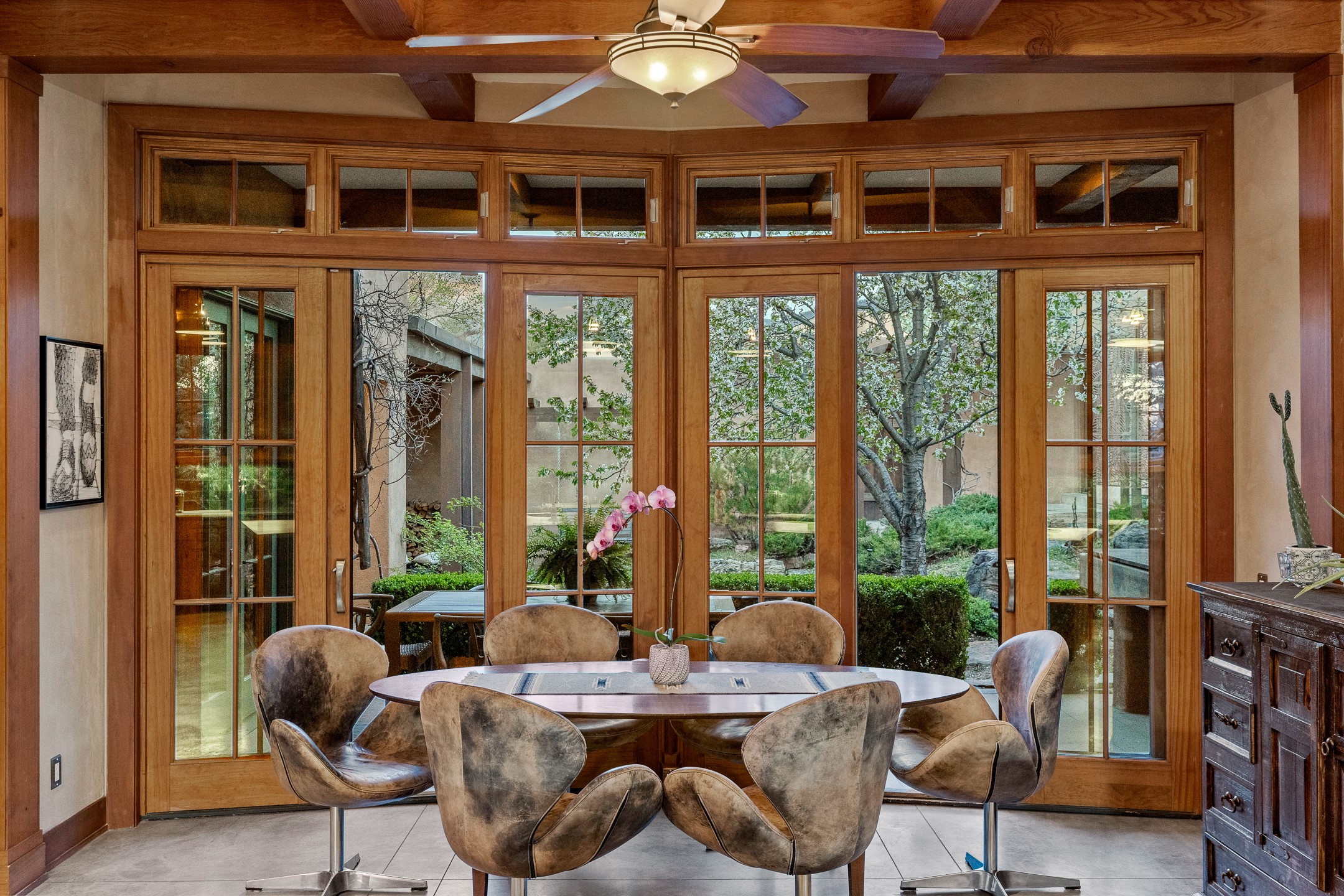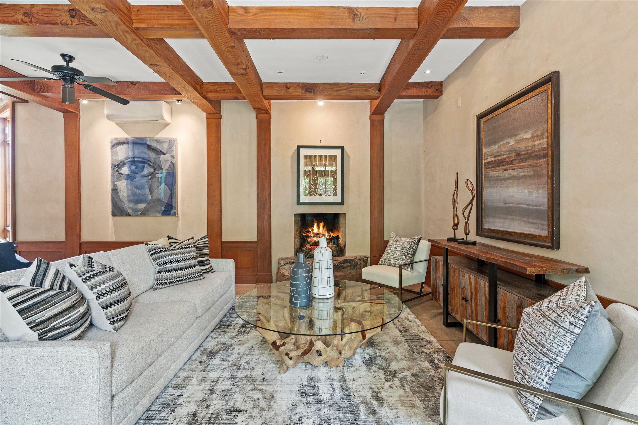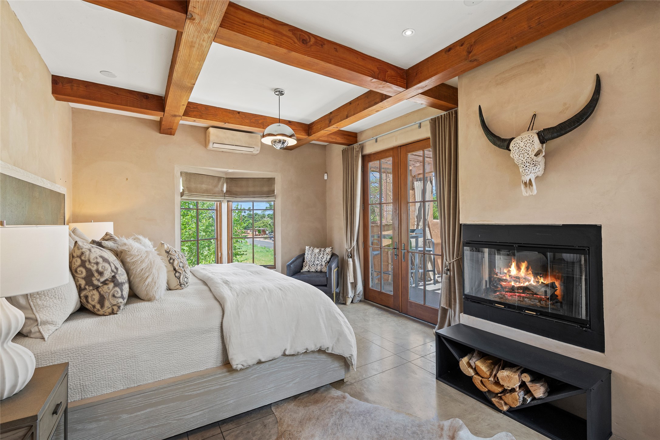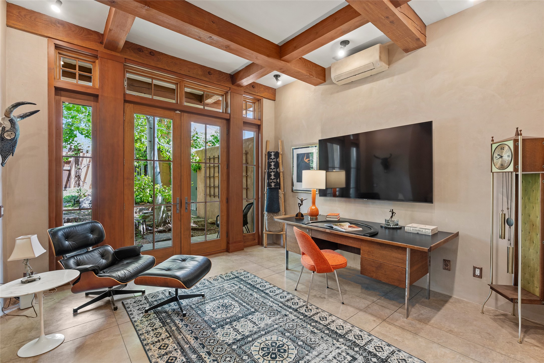 An Architectural & Design Masterpiece.A brilliant collaboration between renowned architect and designer has produced a serene, sophisticated sanctuary in one of Santa Fe's most desirable neighborhoods. This private, gated, 4-bedroom, 4-bath compound is located in the coveted Eastside along the Old Santa Fe trail just moments from the Plaza, Canyon Road, museums, shopping, and world-class dining. Recently elevated with extensive high-end upgrades, the property seamlessly blends quality craftsmanship with timeless elegance. Architectural highlights include soaring ceilings, natural American Clay plaster walls, Douglas Fir coffered wood beam ceilings, and dramatic floor-to-ceiling transom windows. Expertly curated lighting creates a warm and refined ambiance throughout. At the heart of the home is a stunning chef's kitchen--outfitted with a Subzero refrigerator and new Viking appliances--overlooking a beautifully landscaped central courtyard designed for effortless indoor/outdoor living. Each room opens to this verdant garden oasis featuring a tranquil waterfall fountain, lush greenery, alfresco dining, and multiple verandas for entertaining. The grand living and dining rooms are anchored by a natural stone fireplace and expansive glass doors that frame a courtyard garden with mature Wisteria, Aspen, and a stately Cherry tree. Upstairs, the luxurious primary suite offers breathtaking views of Picacho Peak and includes a spa-like bath with Jacuzzi tub, steam shower, dual vanities, and walk-in closet. The crown jewel: a private rooftop terrace with fireplace, cedar hot tub, sauna, and wrap-around deck--perfect for starry Santa Fe nights. Additional amenities include a 2.5-car garage, new mini splits, recessed lighting, designer tile work, and custom draperies. This property is currently part of a rare compound opportunity with 994 Old Pecos Trail next door. While both homes are offered individually, a buyer also has the unique opportunity to purchase them together and create an extraordinary multi-residence estate. (See listing #202501401.)