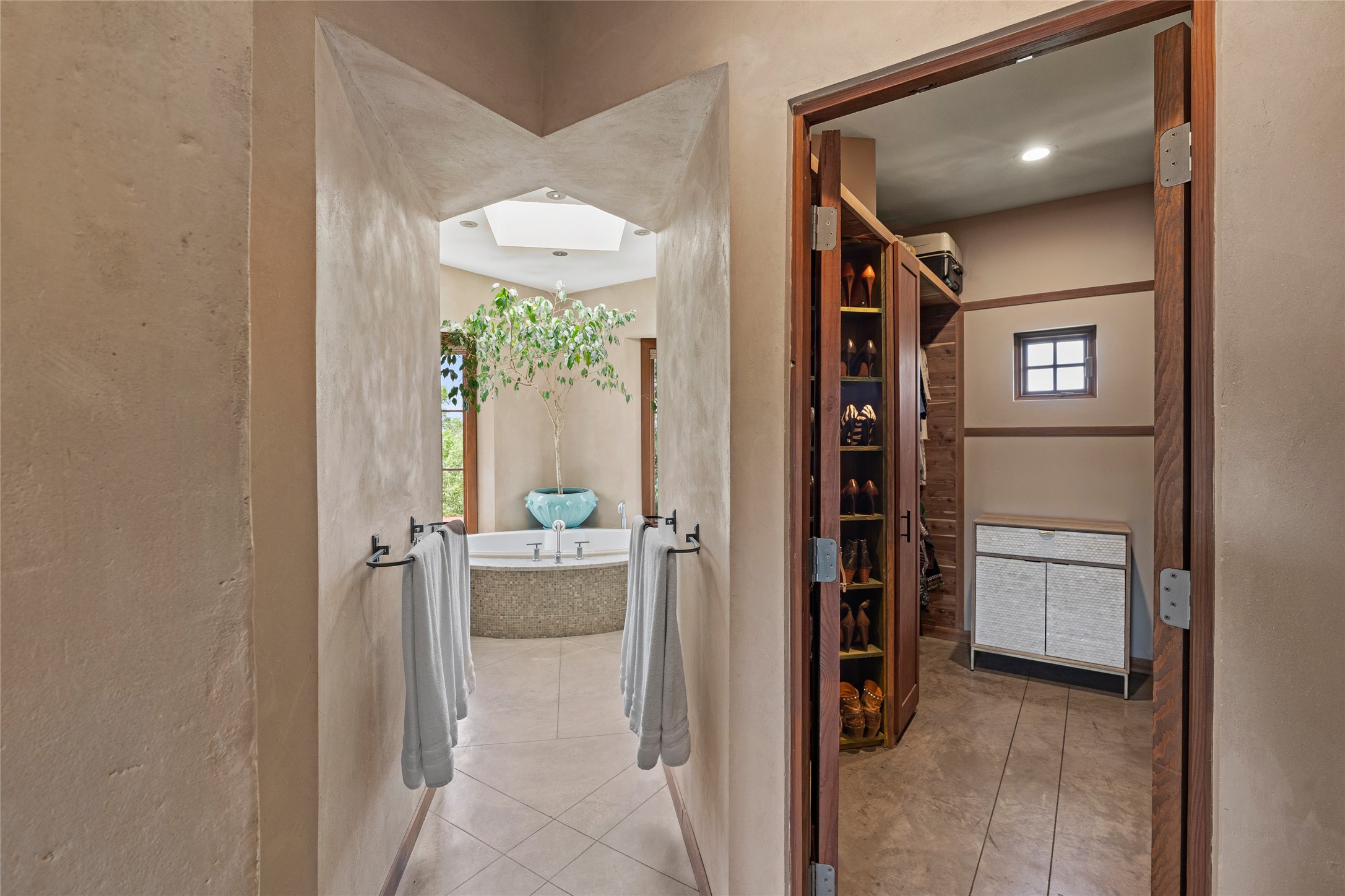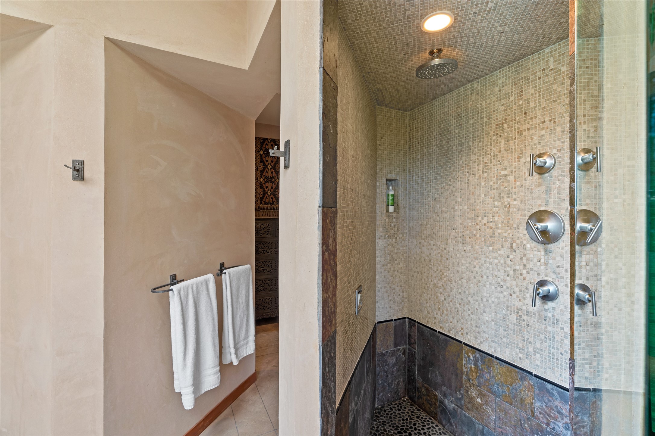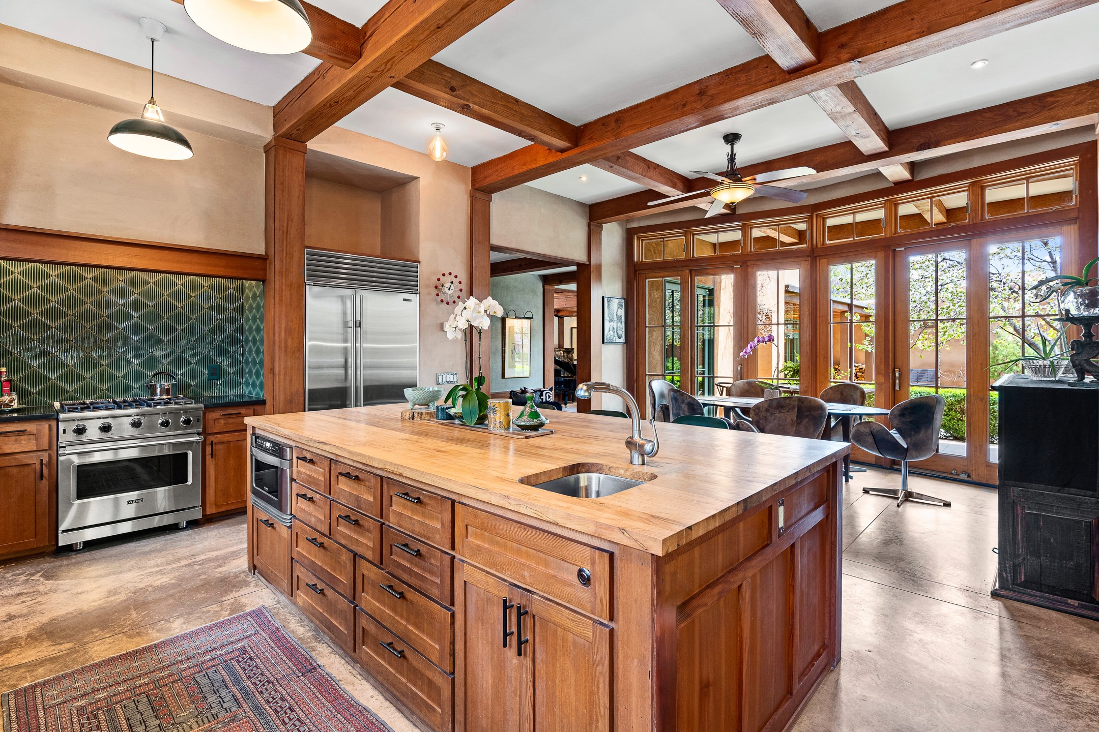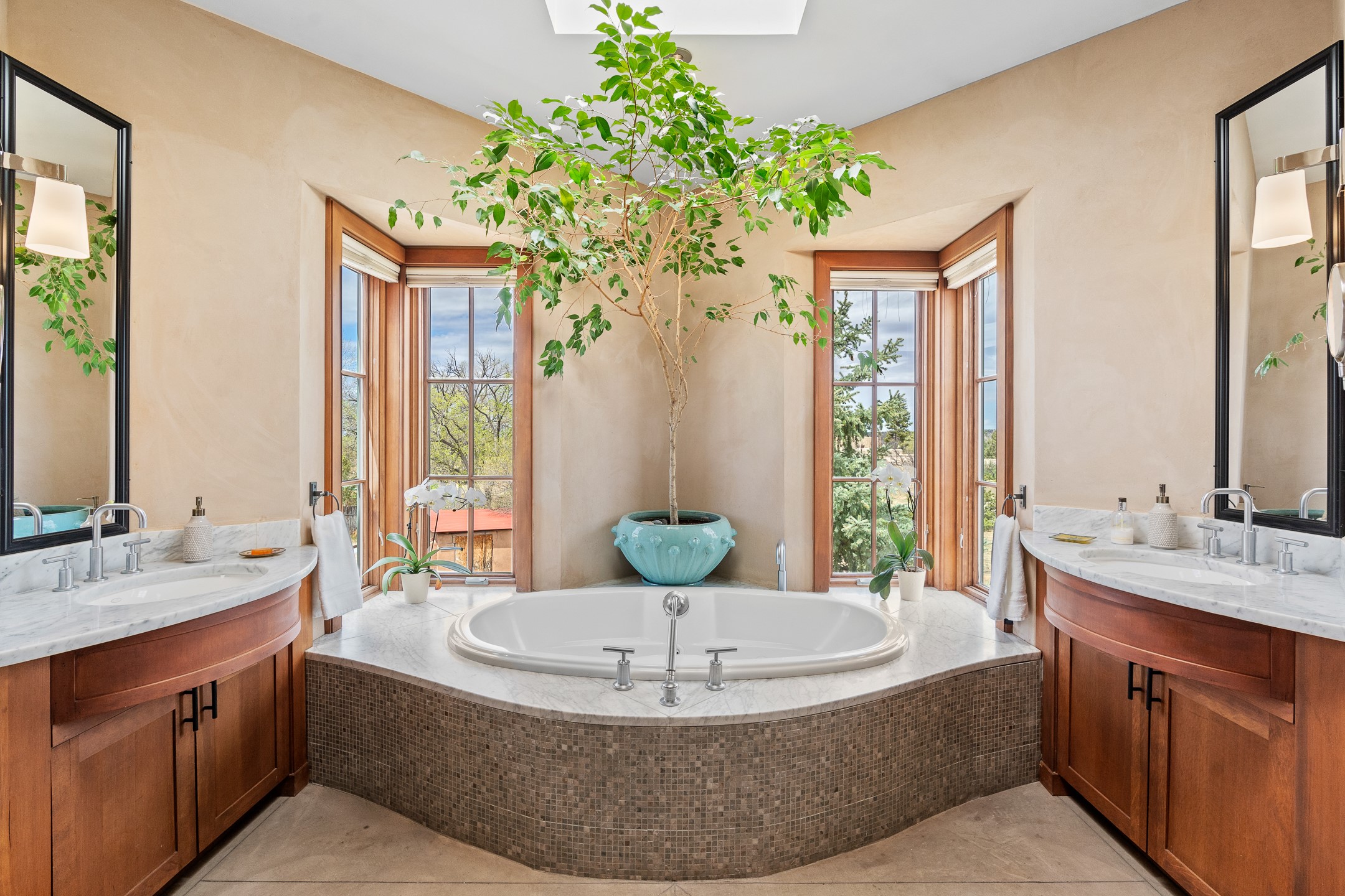 An Architectural & Design Masterpiece.A brilliant collaboration between renowned architect and designer has produced a serene, sophisticated sanctuary in one of Santa Fe's most desirable neighborhoods. This private, gated, 4-bedroom, 4-bath compound is located in the coveted Eastside along the Old Santa Fe trail just moments from the Plaza, Canyon Road, museums, shopping, and world-class dining. Recently elevated with extensive high-end upgrades, the property seamlessly blends quality craftsmanship with timeless elegance. Architectural highlights include soaring ceilings, natural American Clay plaster walls, Douglas Fir coffered wood beam ceilings, and dramatic floor-to-ceiling transom windows. Expertly curated lighting creates a warm and refined ambiance throughout. At the heart of the home is a stunning chef's kitchen--outfitted with a Subzero refrigerator and new Viking appliances--overlooking a beautifully landscaped central courtyard designed for effortless indoor/outdoor living. Each room opens to this verdant garden oasis featuring a tranquil waterfall fountain, lush greenery, alfresco dining, and multiple verandas for entertaining. The grand living and dining rooms are anchored by a natural stone fireplace and expansive glass doors that frame a courtyard garden with mature Wisteria, Aspen, and a stately Cherry tree. Upstairs, the luxurious primary suite offers breathtaking views of Picacho Peak and includes a spa-like bath with Jacuzzi tub, steam shower, dual vanities, and walk-in closet. The crown jewel: a private rooftop terrace with fireplace, cedar hot tub, sauna, and wrap-around deck--perfect for starry Santa Fe nights. Additional amenities include a 2.5-car garage, new mini splits, recessed lighting, designer tile work, and custom draperies. This property is currently part of a rare compound opportunity with 994 Old Pecos Trail next door. While both homes are offered individually, a buyer also has the unique opportunity to purchase them together and create an extraordinary multi-residence estate. (See listing #202501401.)
