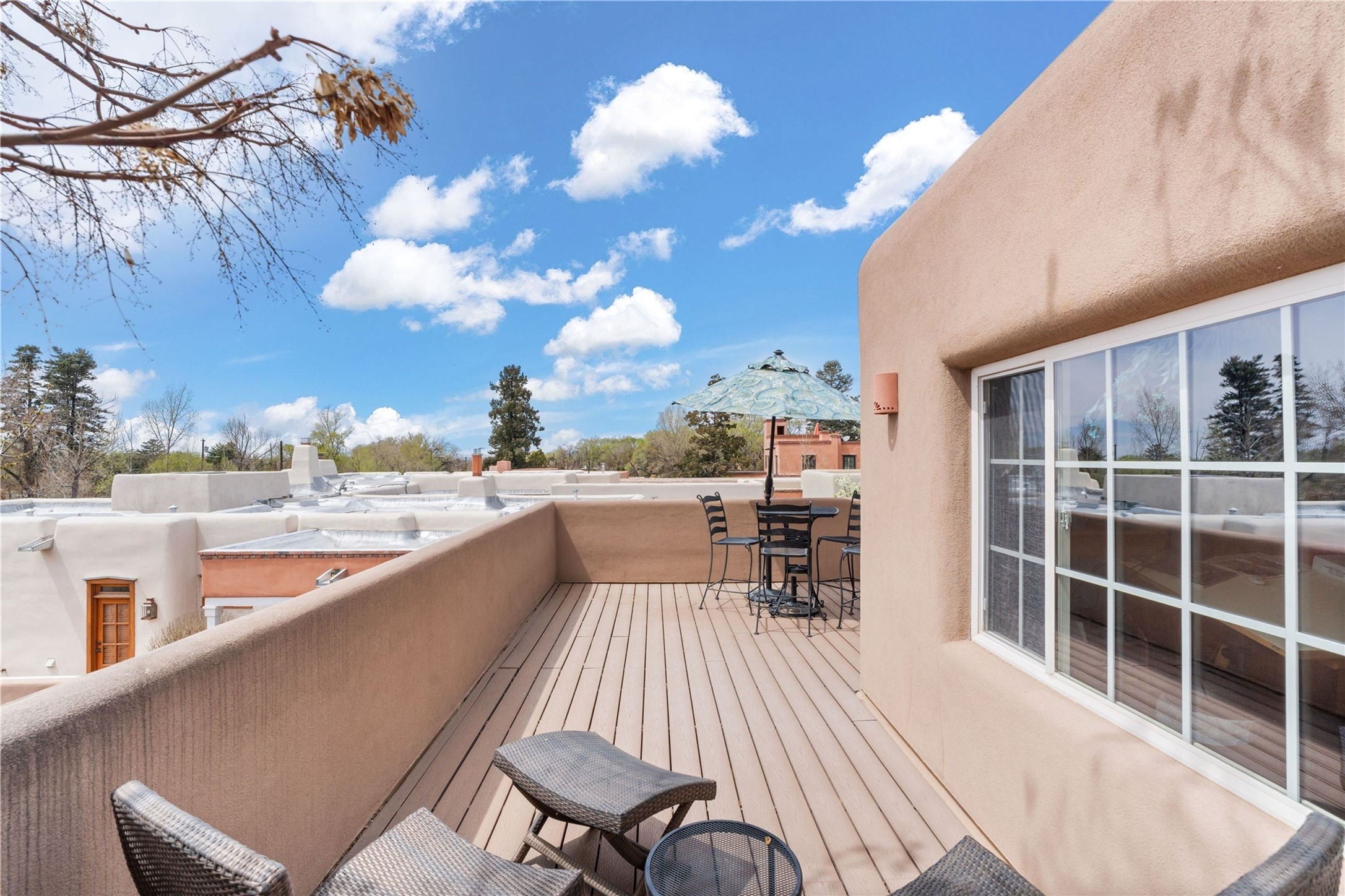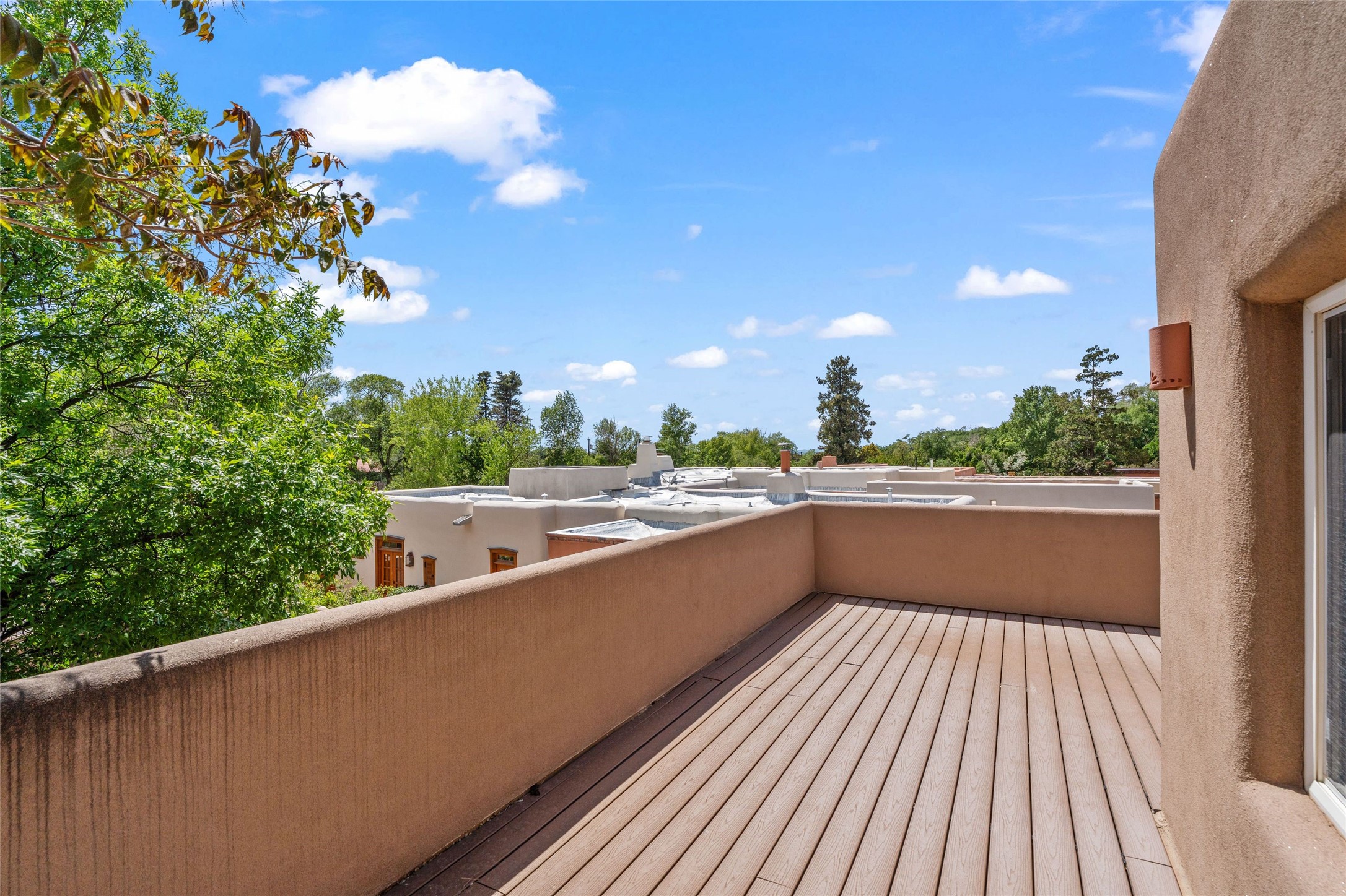 Nestled in the heart of downtown Santa Fe, this beautifully appointed condo offers the perfect blend of contemporary comfort and Southwestern character. Overlooking the serene Santa Fe River, this rare riverfront gem provides a peaceful retreat just steps away from the city's vibrant cultural scene, world-class dining, and historic landmarks.Inside, you'll find an open-concept living space flooded with natural light, featuring tile floors, generous bedrooms, and custom finishes that echo the region's artistic flair. The gourmet kitchen is equipped with stainless steel appliances, tile countertops, and sleek cabinetry--ideal for both entertaining and everyday living.Step out onto your private balcony to enjoy your morning coffee or evening wine with picturesque views of the river and surrounding cottonwoods. Additional amenities include off-street parking, a air-conditioning, and access to walking trails right outside your door.Whether you're looking for a full-time residence or a stylish pied--terre, this river-view condo is your gateway to the best of Santa Fe living.