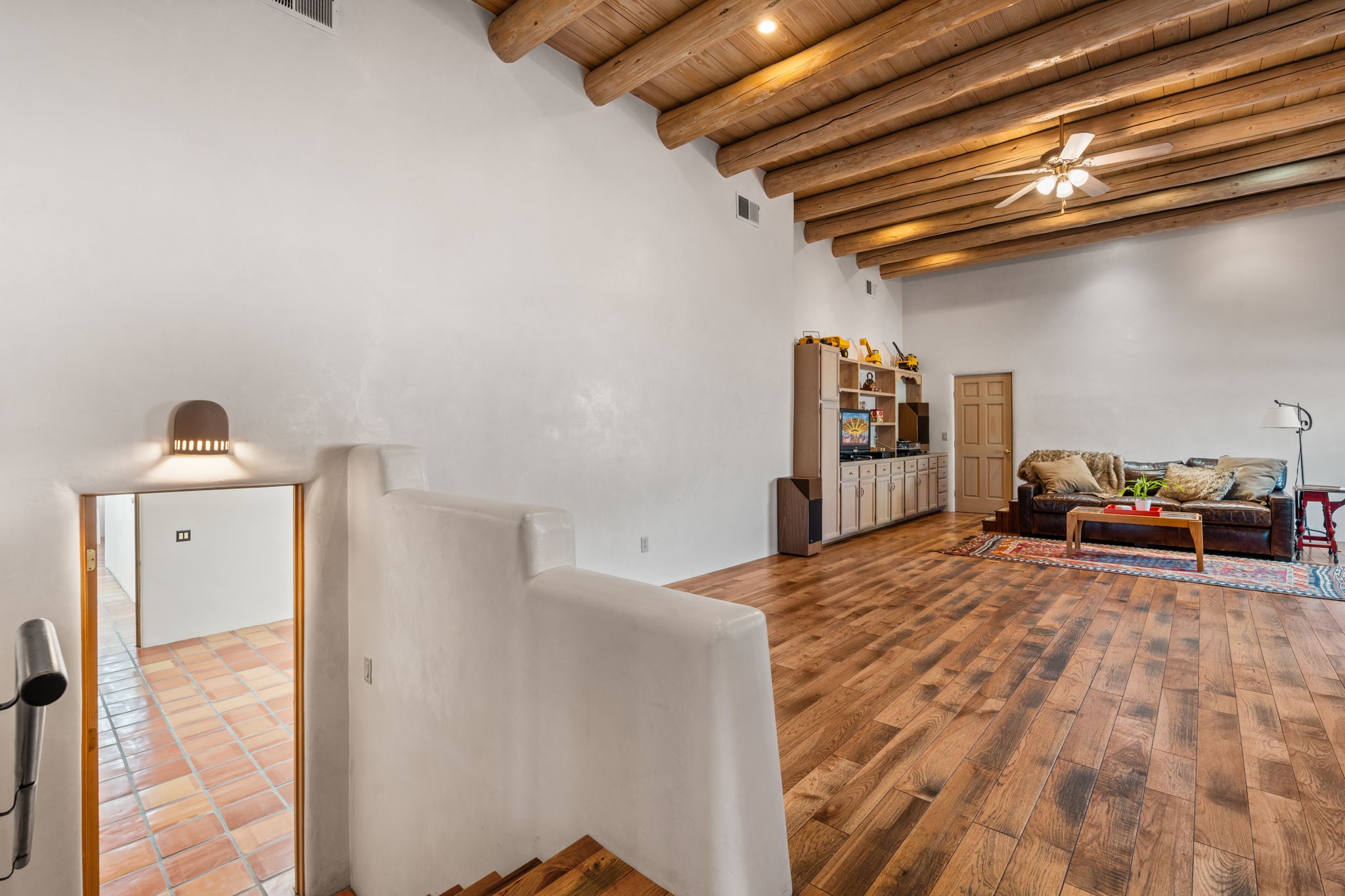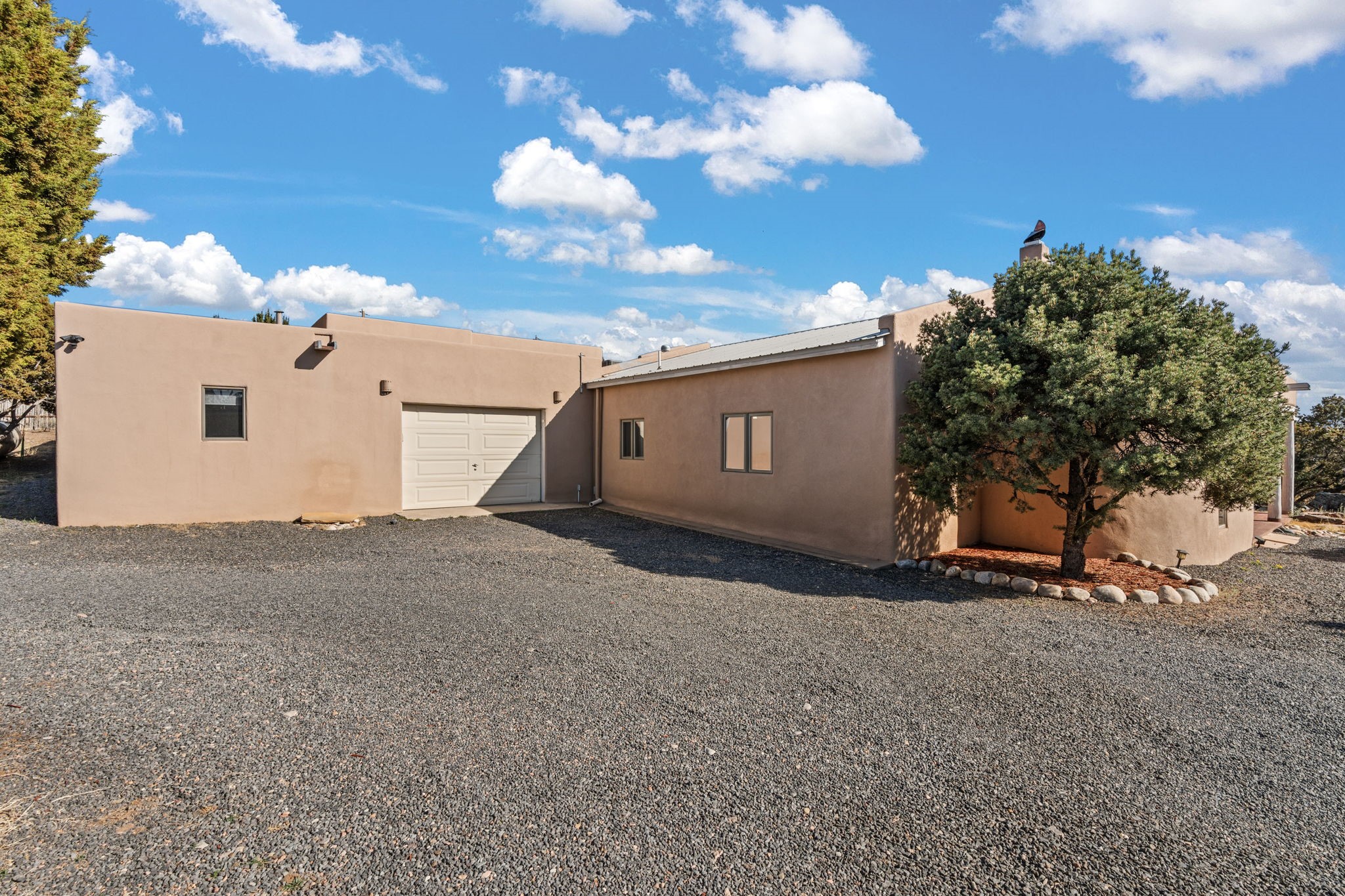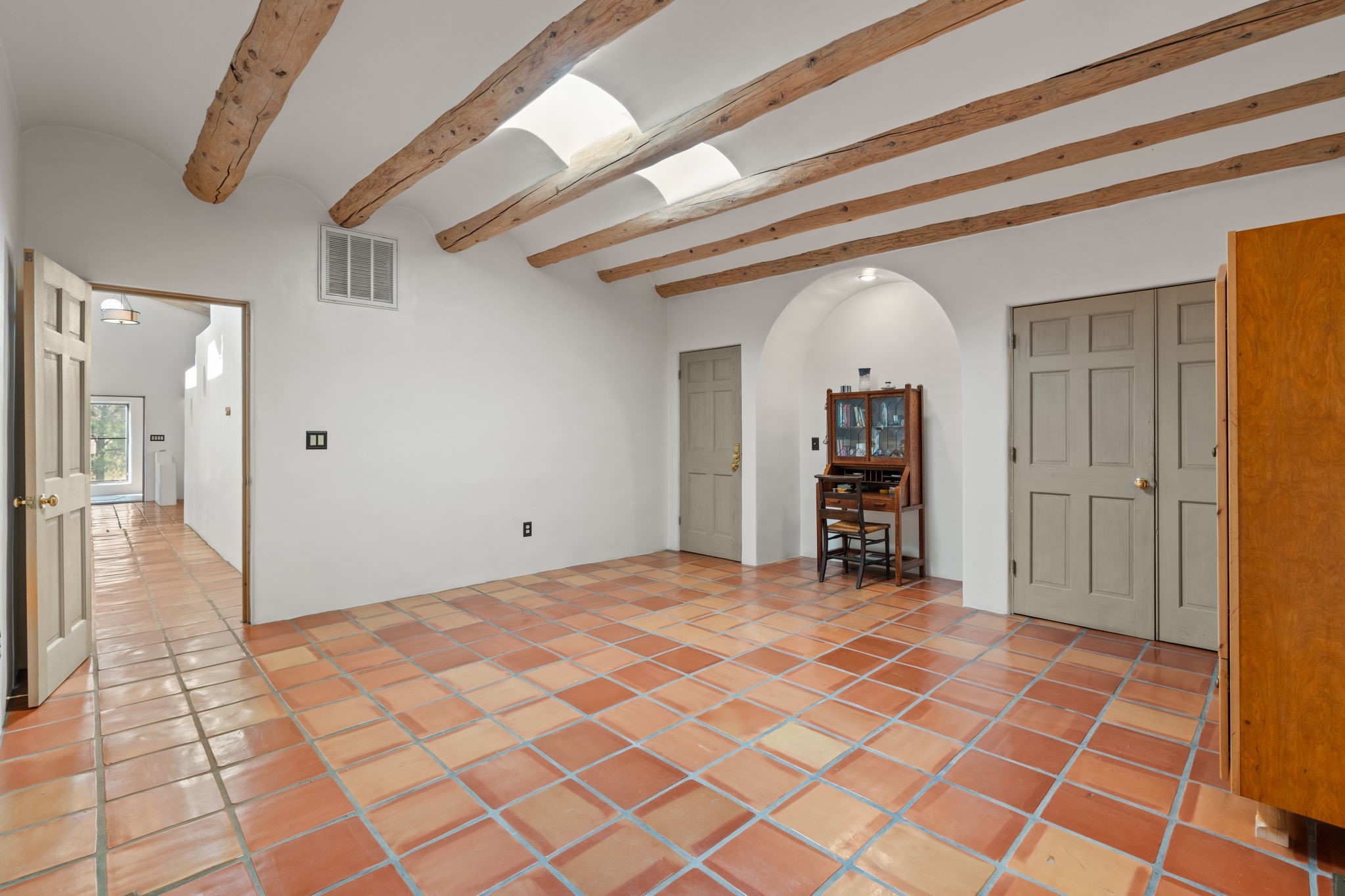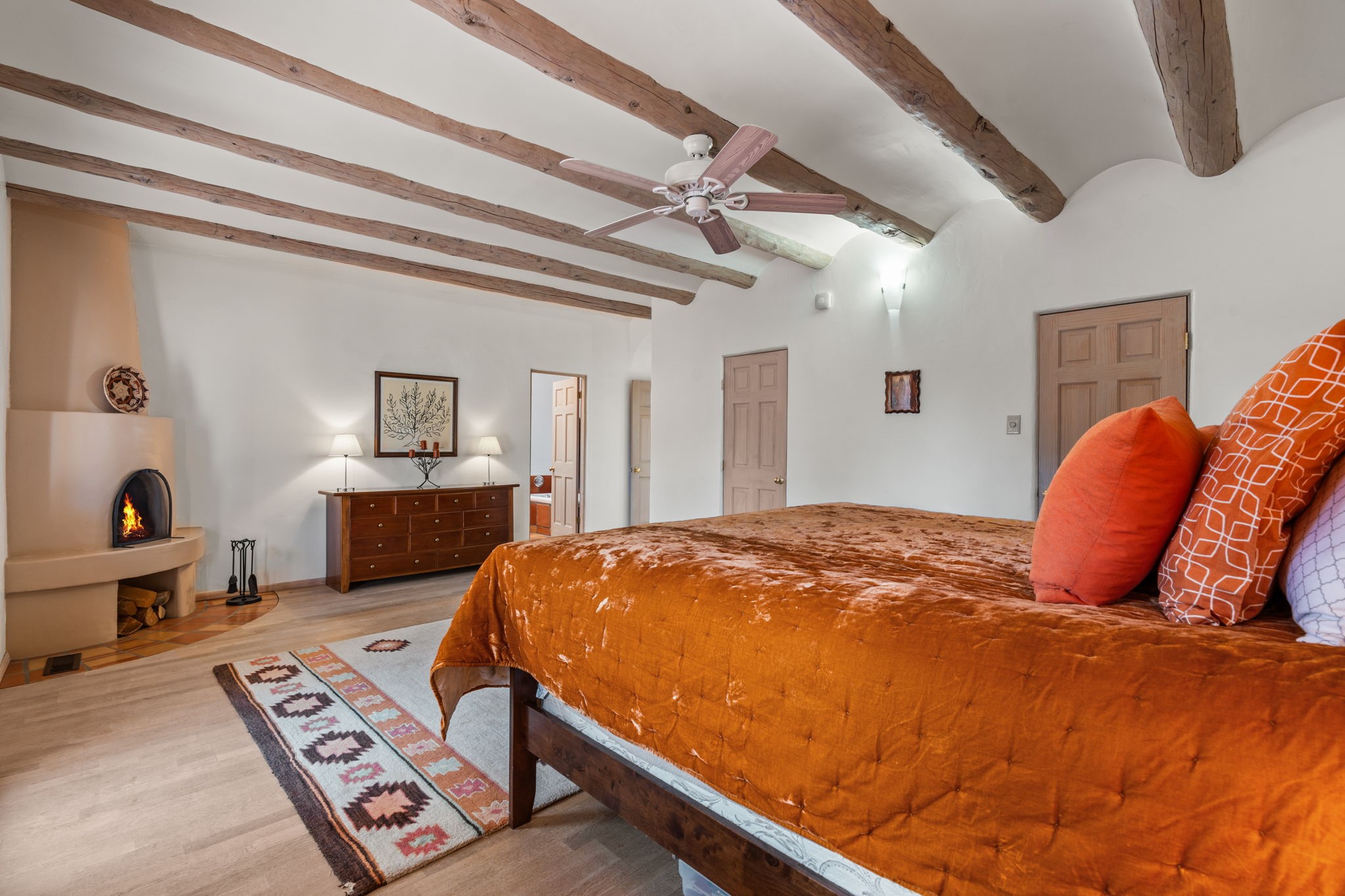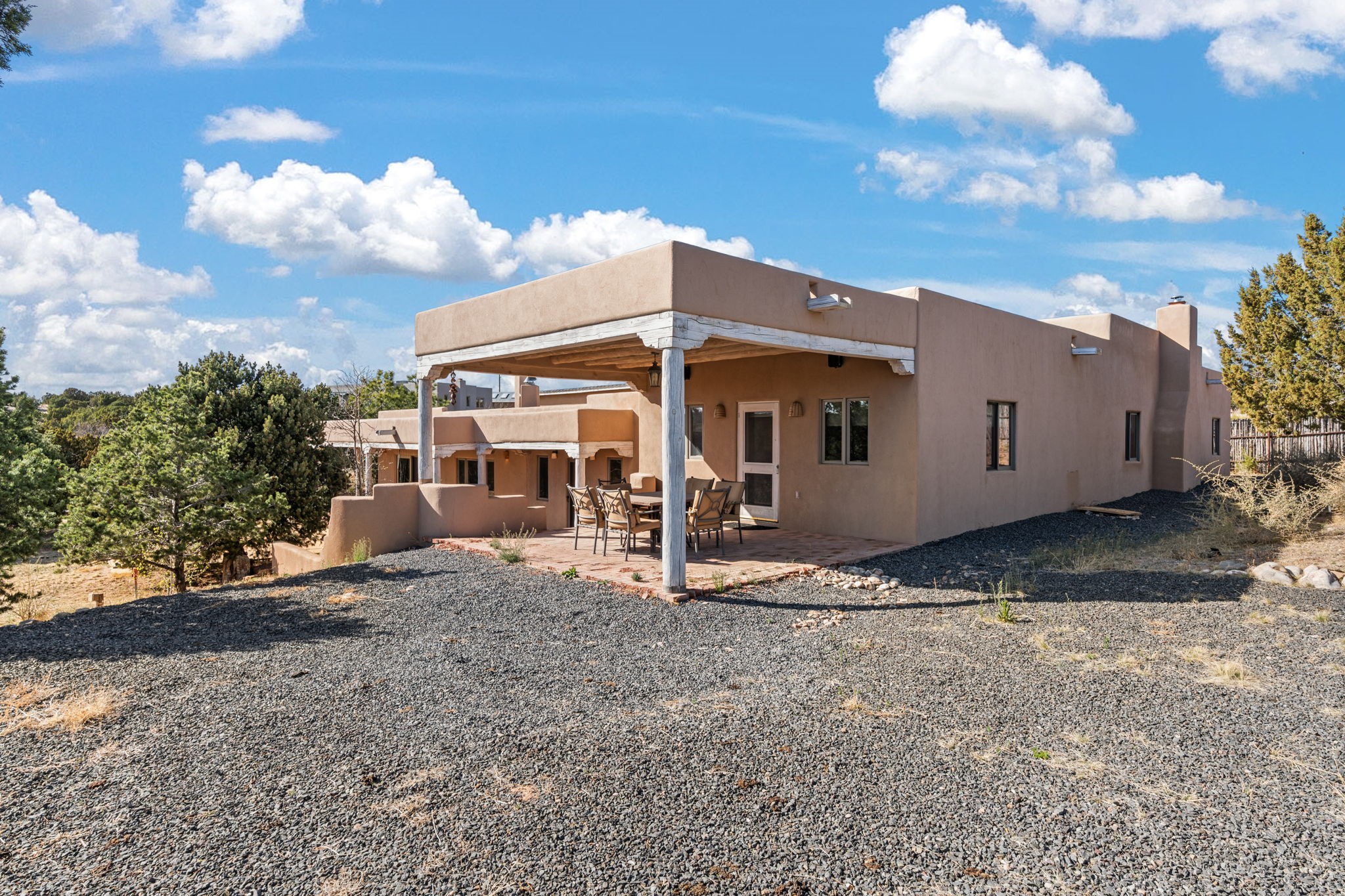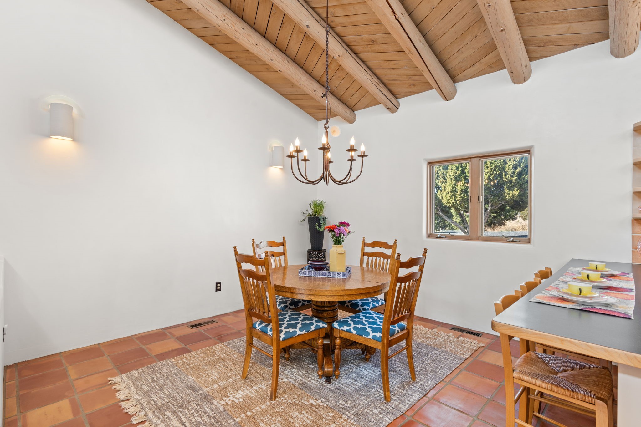 Welcome to your dream retreat: a 3,956-square-foot haven where classic Southwestern charm meets modern comfort. Located just minutes from downtown, this thoughtfully designed 3-bedroom, 3-bath home sits on 1.08 private acres with no HOA.Inside, you'll find Saltillo tile floors, hand-troweled plaster walls, and a generous living room with coved ceilings and abundant natural light. Clerestory windows and skylights fill the home with sunshine, and a sliding door opens to a stunning wraparound portal--perfect for year-round entertaining or quiet evenings under the stars.The kitchen is a chef's delight with newer appliances, ample cabinetry, and a spacious walk-in pantry. A charming office features traditional vigas and a latilla ceiling, ideal as a serene workspace or studio.The primary suite offers a corner kiva fireplace, two walk-in closets, and a private portal entrance. The updated en-suite bath includes a deep jetted tub and custom tile. The guest bath features a colorful Mexican tile arch over the tub for added charm.A lovely newer addition expands the living space with hickory wood floors, two bright bedrooms, a stylish bath with sun shower, and a large den with a fireplace, wood stove insert, built-ins, kitchenette, and wet bar. One bedroom has its own portal entrance for added privacy.Modern comforts include forced air heat, refrigerated air, and in-floor radiant heat in the newer section. Outside, you'll find a one-car garage, two-car carport, and a versatile studio once used for pottery--now a great workout space or creative workshop.This special home blends timeless Santa Fe architecture with thoughtful updates and artistic flair. More than a home--it's a lifestyle.