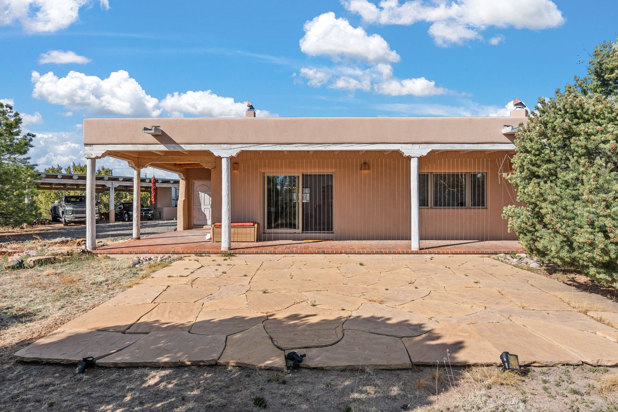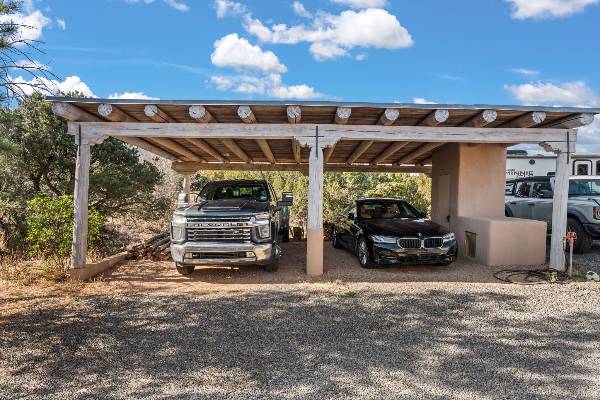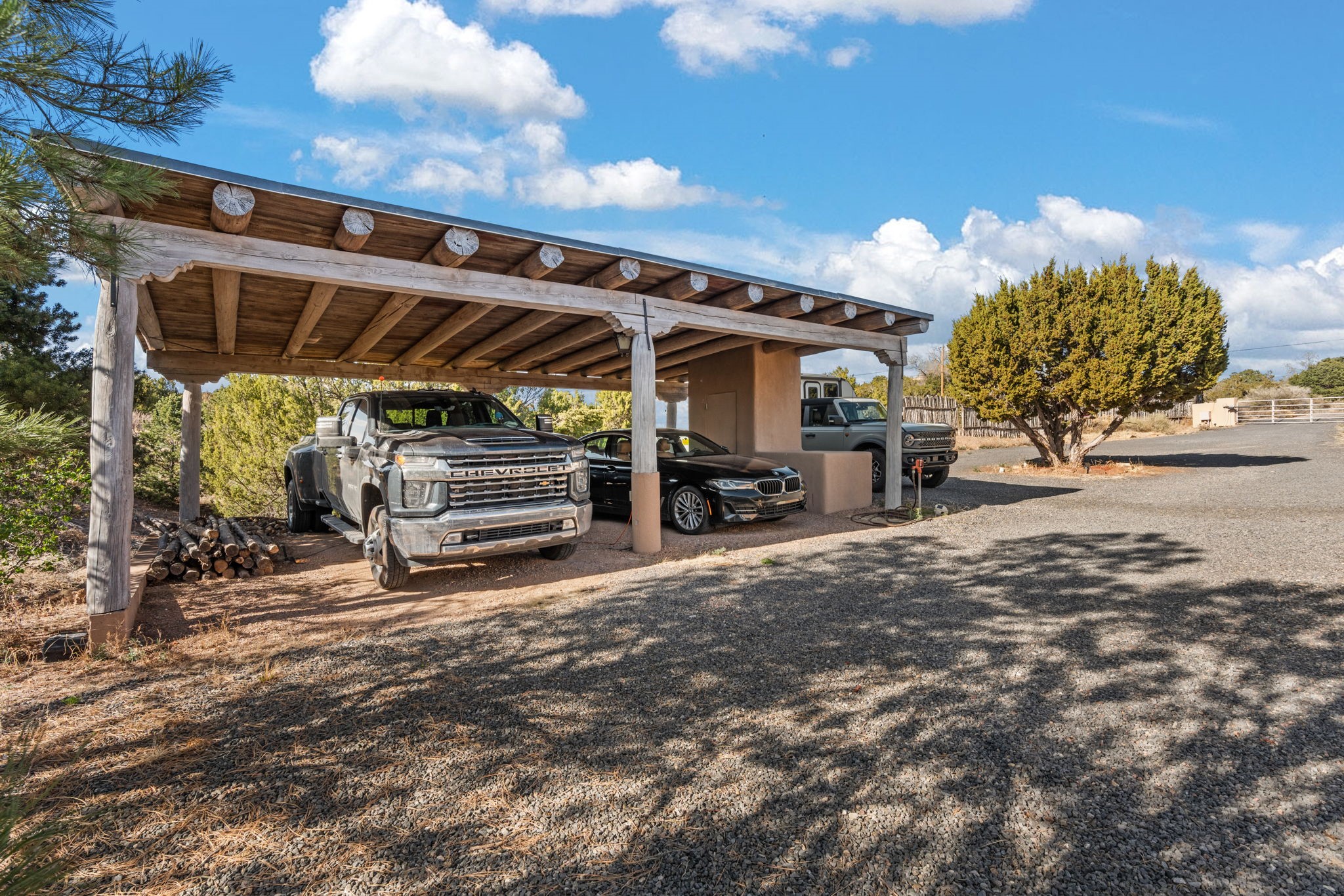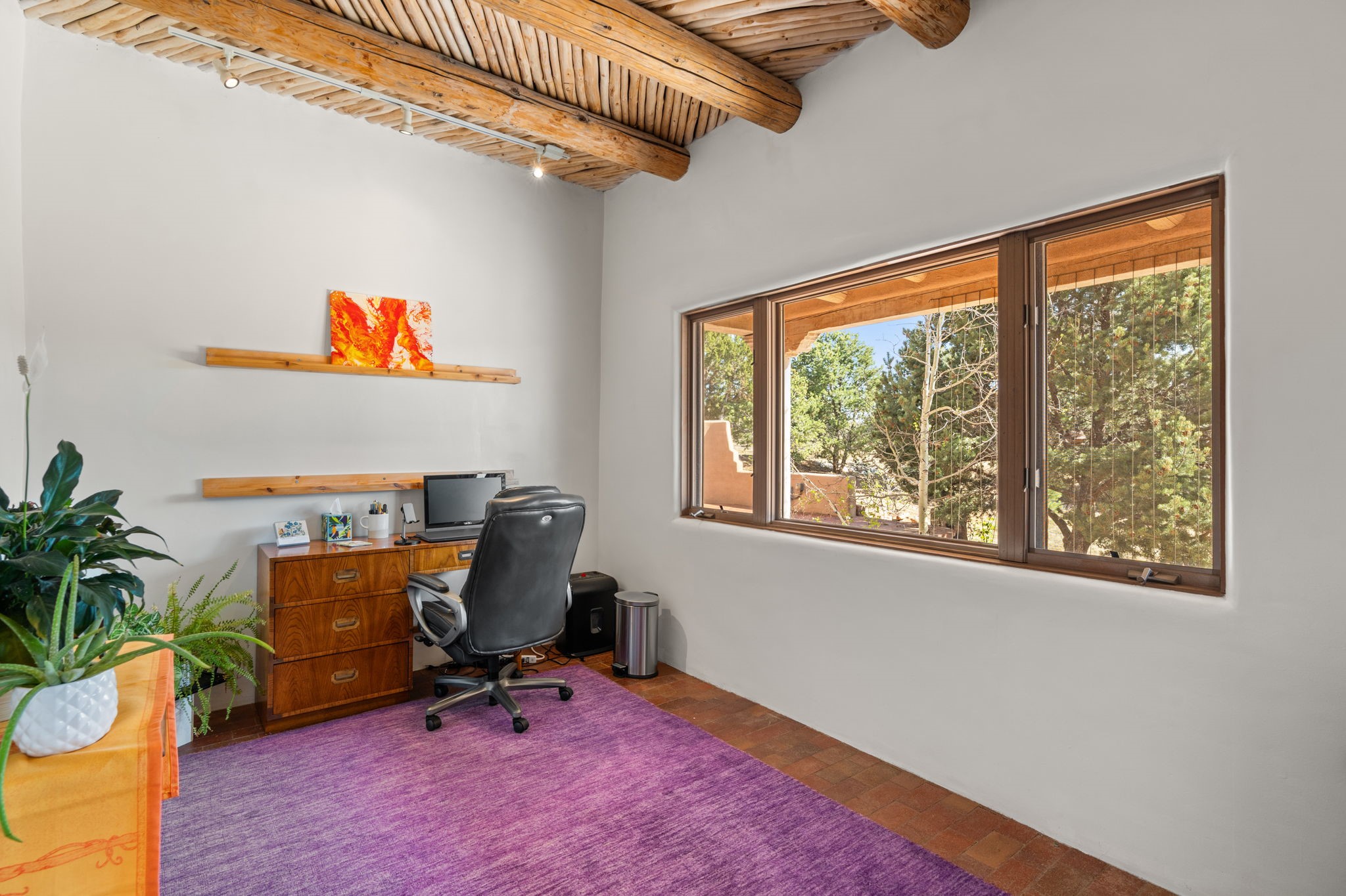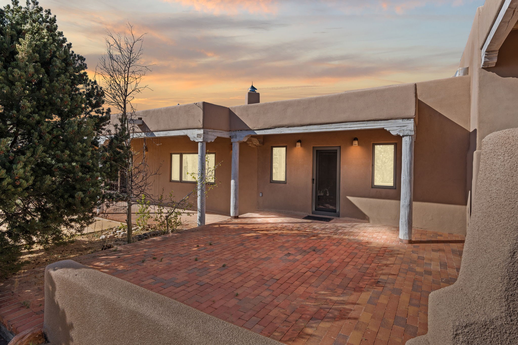 Welcome to your dream retreat: a 3,956-square-foot haven where classic Southwestern charm meets modern comfort. Located just minutes from downtown, this thoughtfully designed 3-bedroom, 3-bath home sits on 1.08 private acres with no HOA.Inside, you'll find Saltillo tile floors, hand-troweled plaster walls, and a generous living room with coved ceilings and abundant natural light. Clerestory windows and skylights fill the home with sunshine, and a sliding door opens to a stunning wraparound portal--perfect for year-round entertaining or quiet evenings under the stars.The kitchen is a chef's delight with newer appliances, ample cabinetry, and a spacious walk-in pantry. A charming office features traditional vigas and a latilla ceiling, ideal as a serene workspace or studio.The primary suite offers a corner kiva fireplace, two walk-in closets, and a private portal entrance. The updated en-suite bath includes a deep jetted tub and custom tile. The guest bath features a colorful Mexican tile arch over the tub for added charm.A lovely newer addition expands the living space with hickory wood floors, two bright bedrooms, a stylish bath with sun shower, and a large den with a fireplace, wood stove insert, built-ins, kitchenette, and wet bar. One bedroom has its own portal entrance for added privacy.Modern comforts include forced air heat, refrigerated air, and in-floor radiant heat in the newer section. Outside, you'll find a one-car garage, two-car carport, and a versatile studio once used for pottery--now a great workout space or creative workshop.This special home blends timeless Santa Fe architecture with thoughtful updates and artistic flair. More than a home--it's a lifestyle.