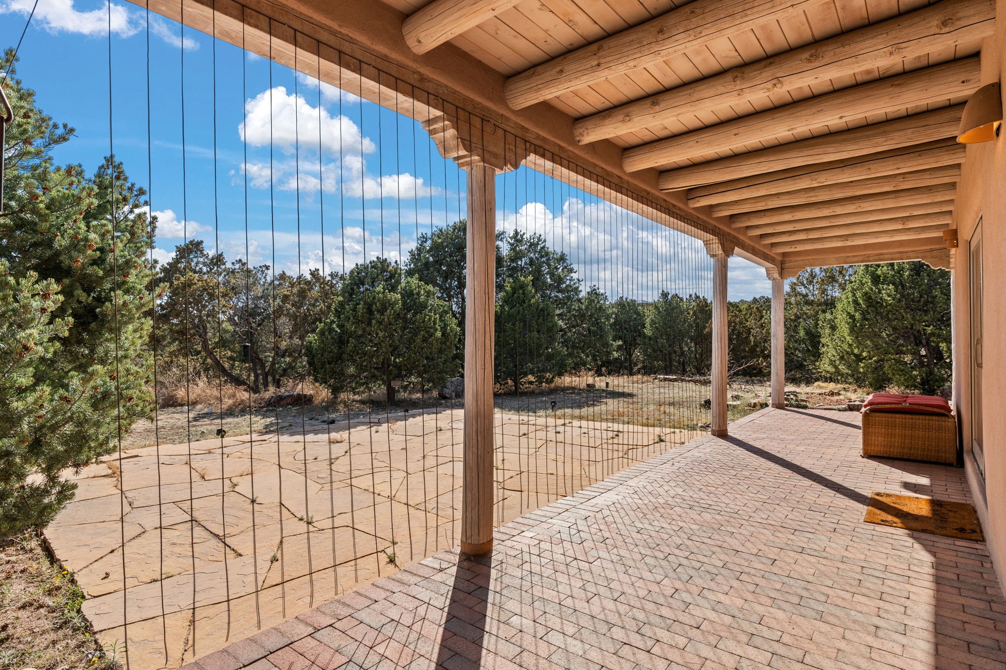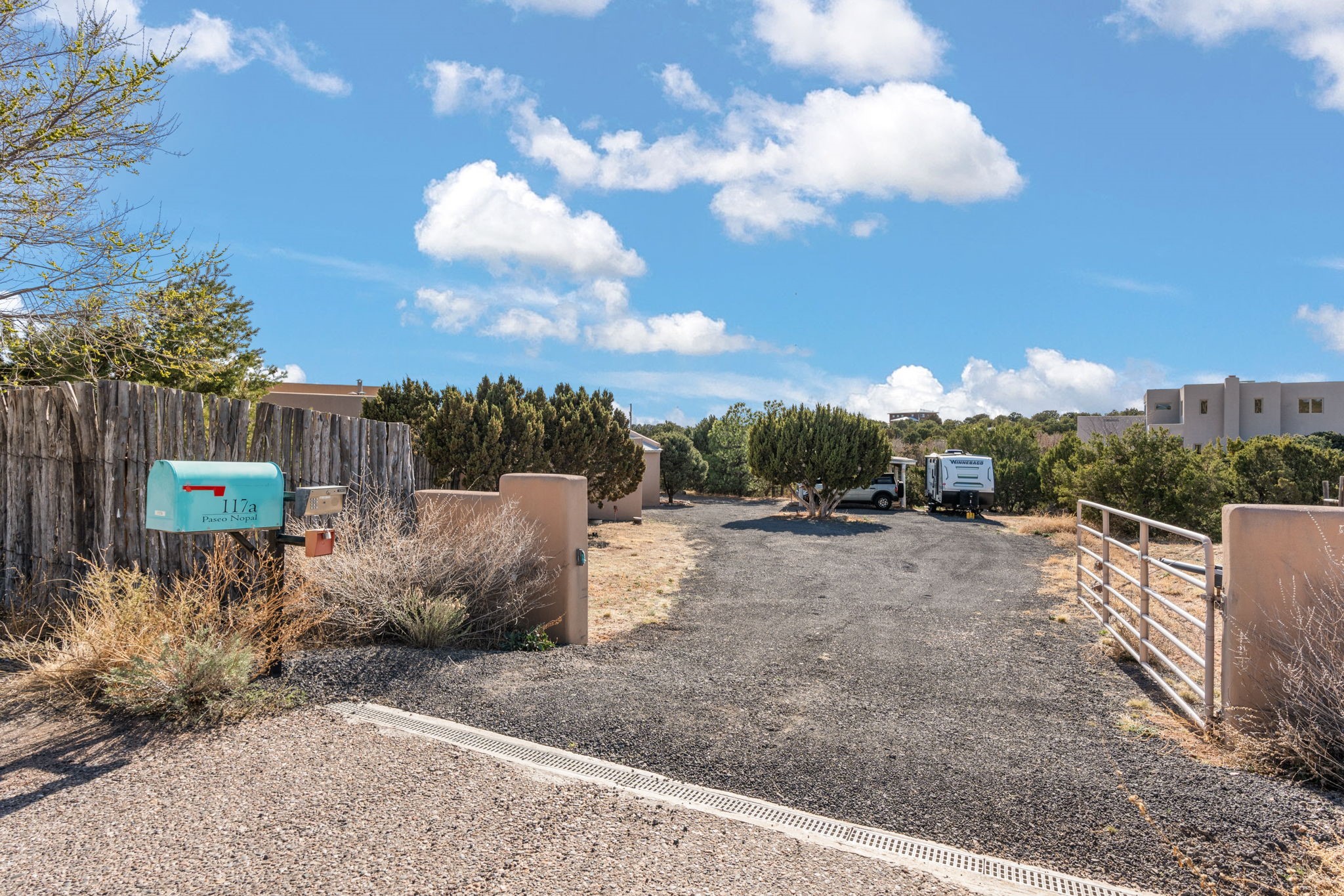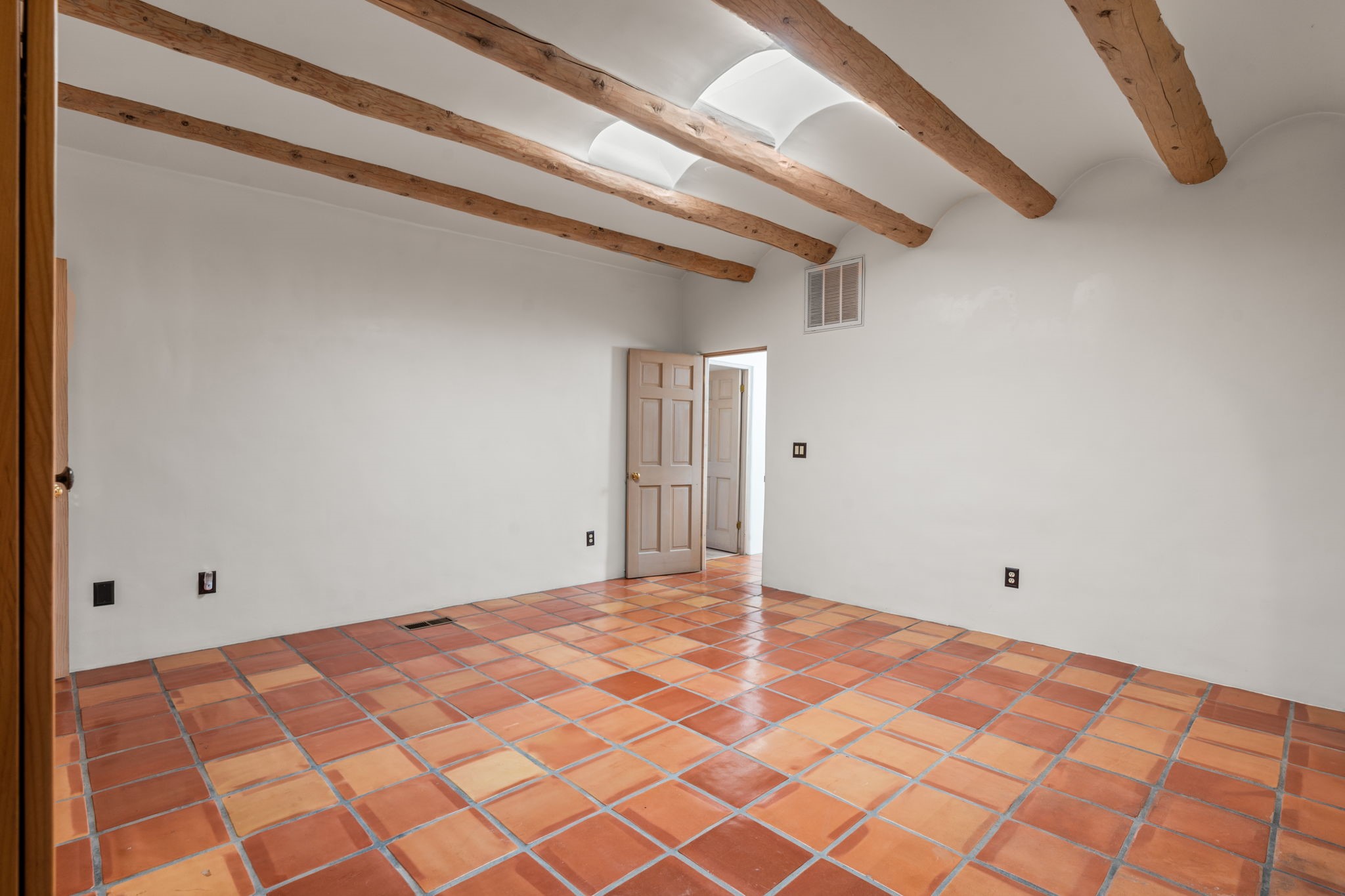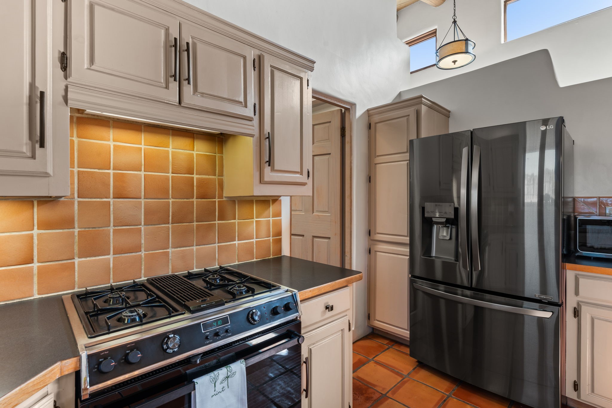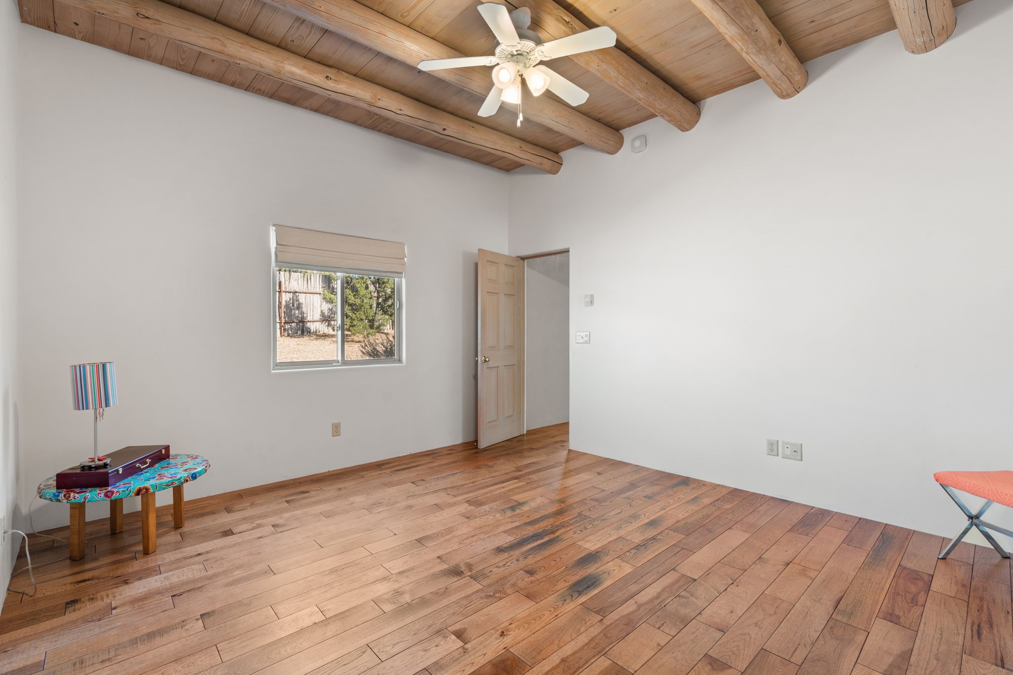 Welcome to your dream retreat: a 3,956-square-foot haven where classic Southwestern charm meets modern comfort. Located just minutes from downtown, this thoughtfully designed 3-bedroom, 3-bath home sits on 1.08 private acres with no HOA.Inside, you'll find Saltillo tile floors, hand-troweled plaster walls, and a generous living room with coved ceilings and abundant natural light. Clerestory windows and skylights fill the home with sunshine, and a sliding door opens to a stunning wraparound portal--perfect for year-round entertaining or quiet evenings under the stars.The kitchen is a chef's delight with newer appliances, ample cabinetry, and a spacious walk-in pantry. A charming office features traditional vigas and a latilla ceiling, ideal as a serene workspace or studio.The primary suite offers a corner kiva fireplace, two walk-in closets, and a private portal entrance. The updated en-suite bath includes a deep jetted tub and custom tile. The guest bath features a colorful Mexican tile arch over the tub for added charm.A lovely newer addition expands the living space with hickory wood floors, two bright bedrooms, a stylish bath with sun shower, and a large den with a fireplace, wood stove insert, built-ins, kitchenette, and wet bar. One bedroom has its own portal entrance for added privacy.Modern comforts include forced air heat, refrigerated air, and in-floor radiant heat in the newer section. Outside, you'll find a one-car garage, two-car carport, and a versatile studio once used for pottery--now a great workout space or creative workshop.This special home blends timeless Santa Fe architecture with thoughtful updates and artistic flair. More than a home--it's a lifestyle.