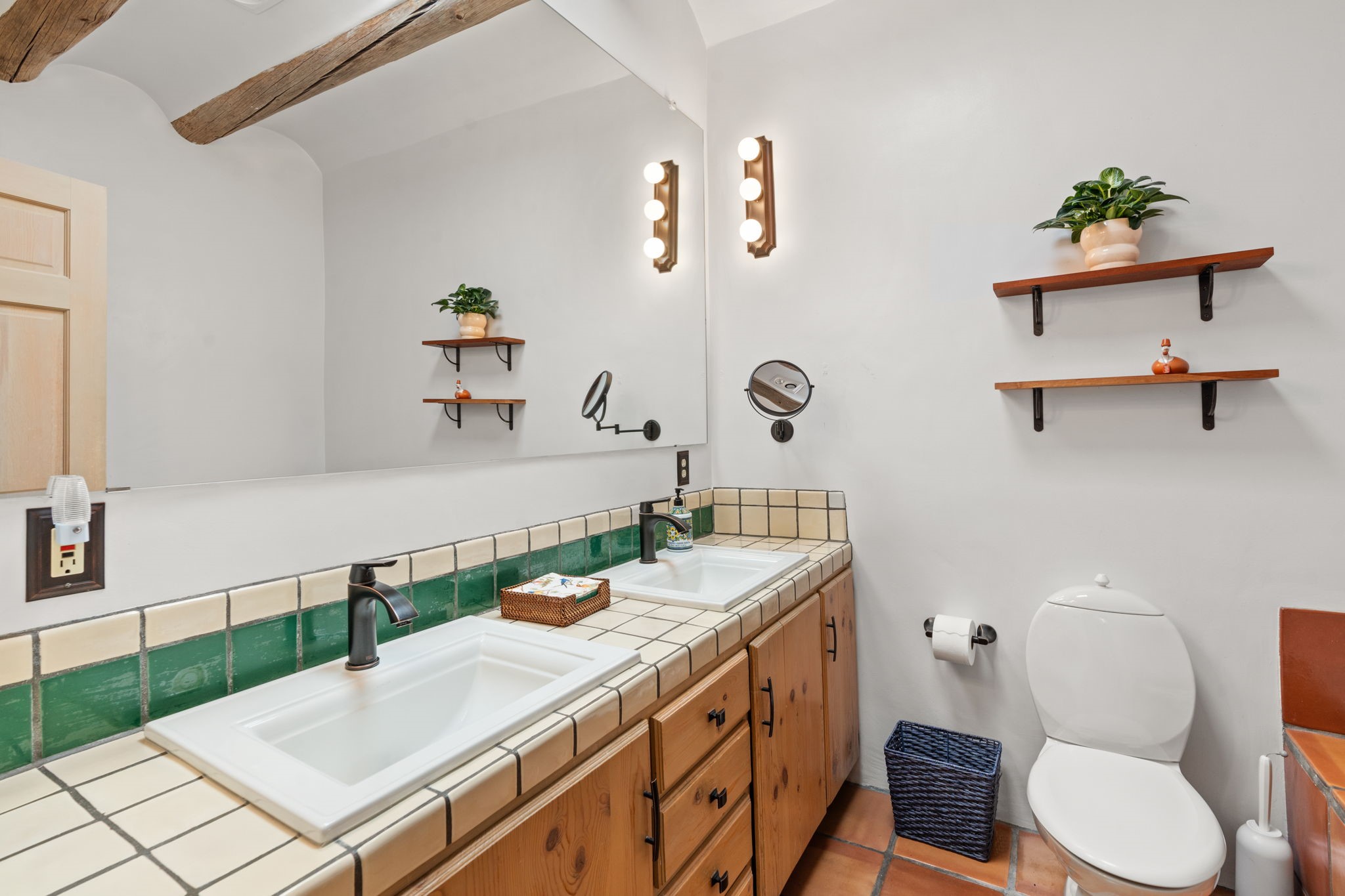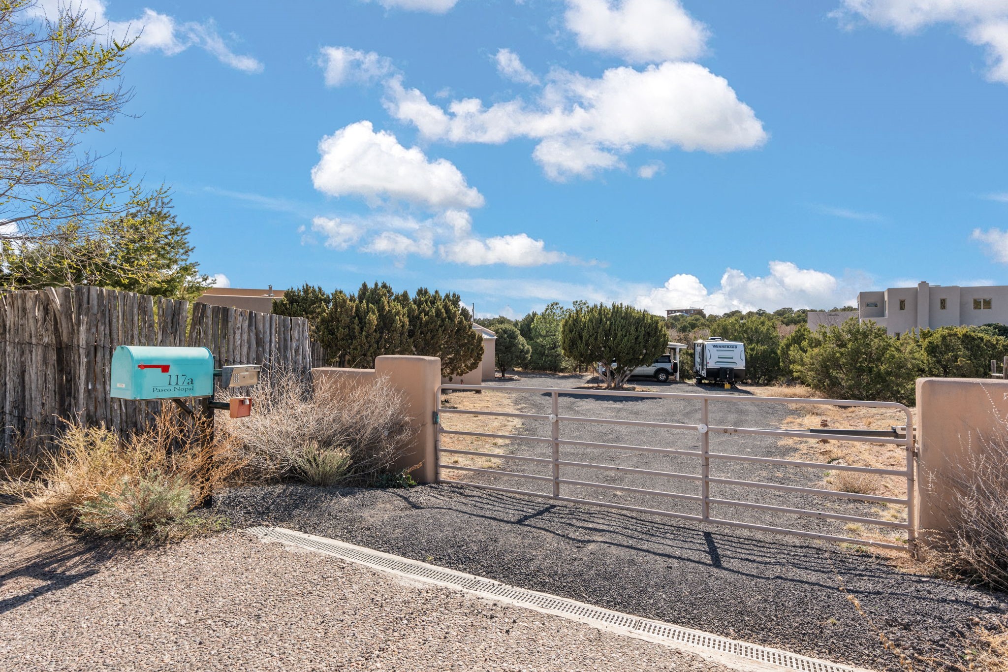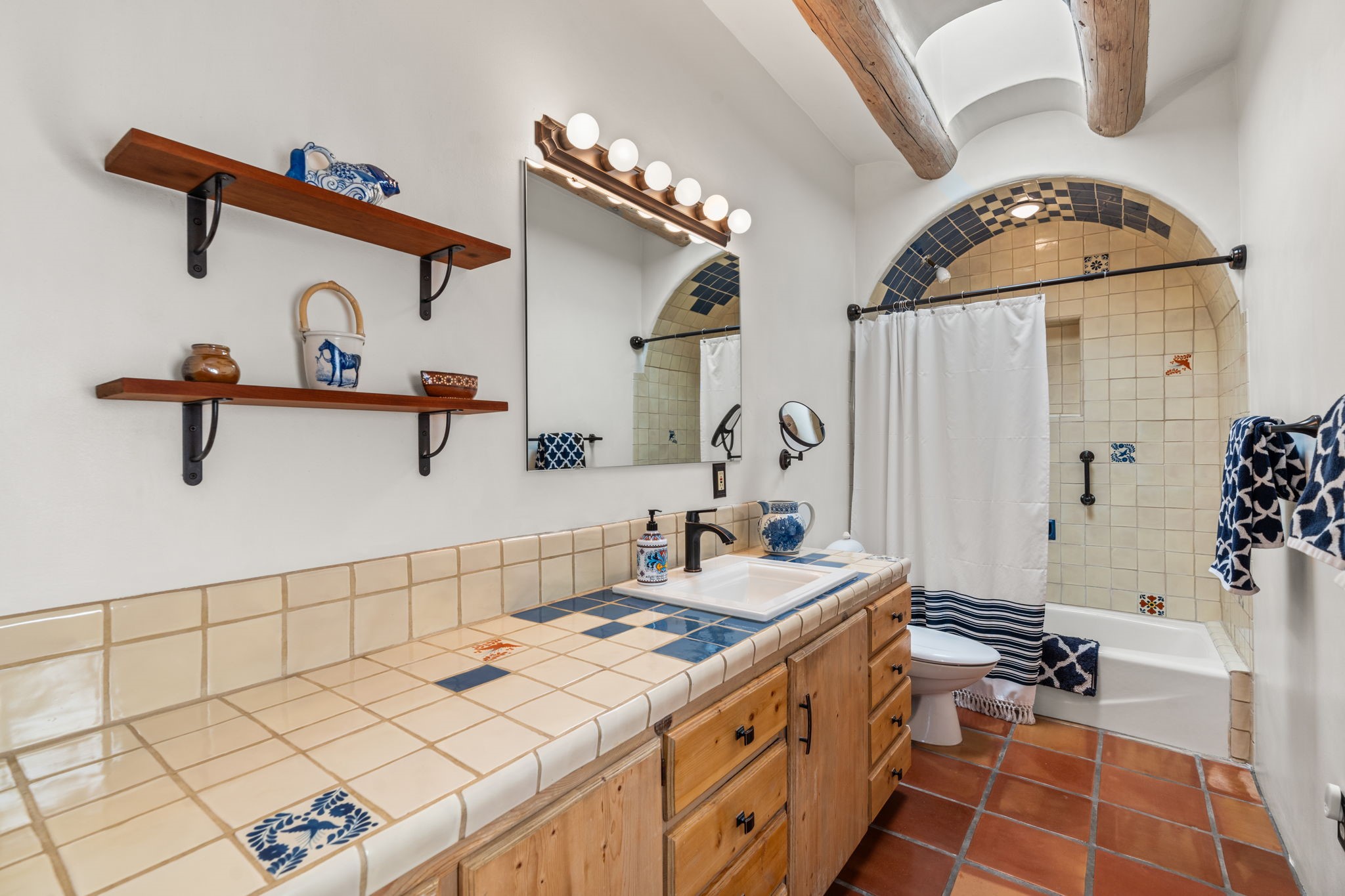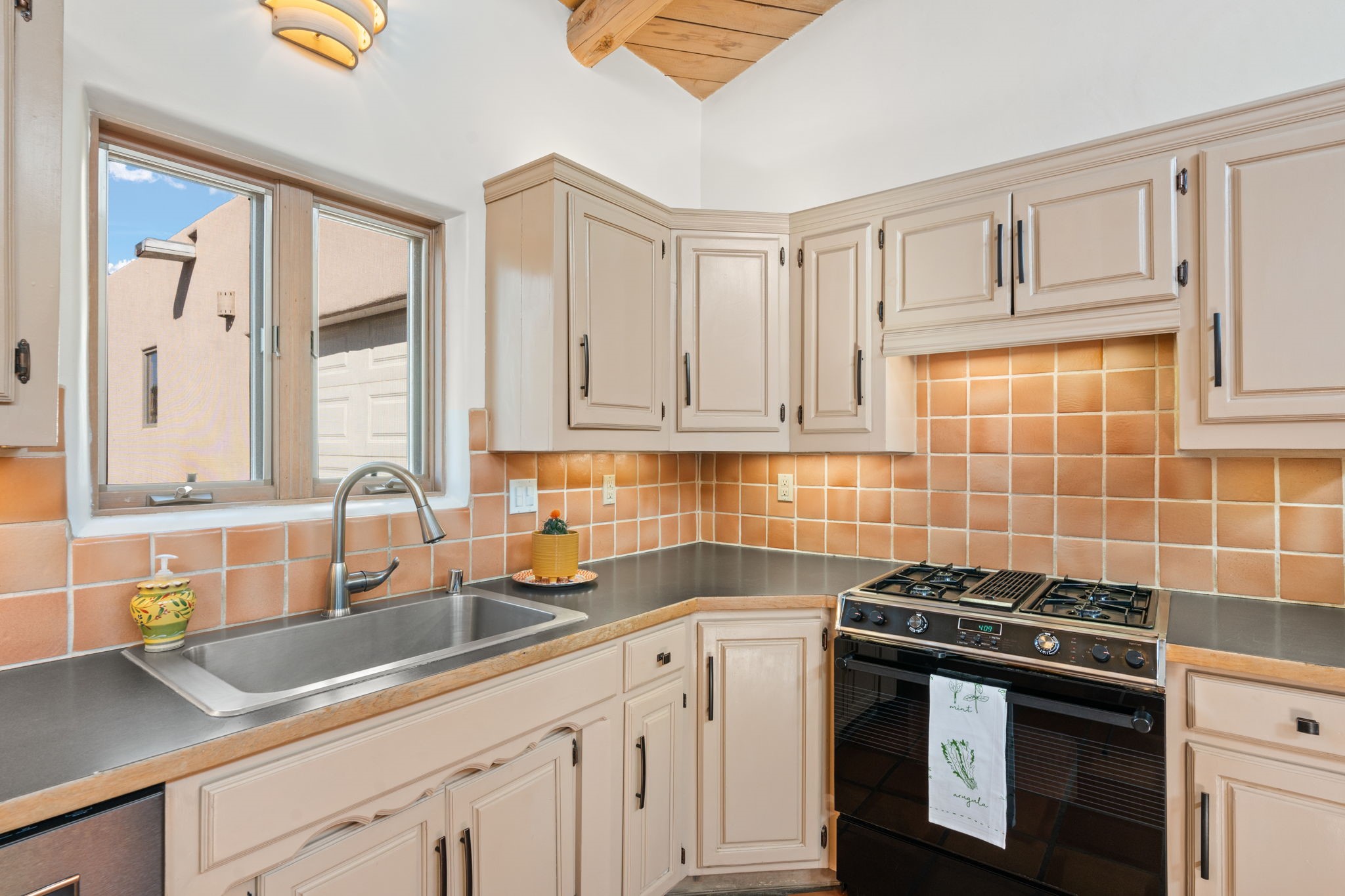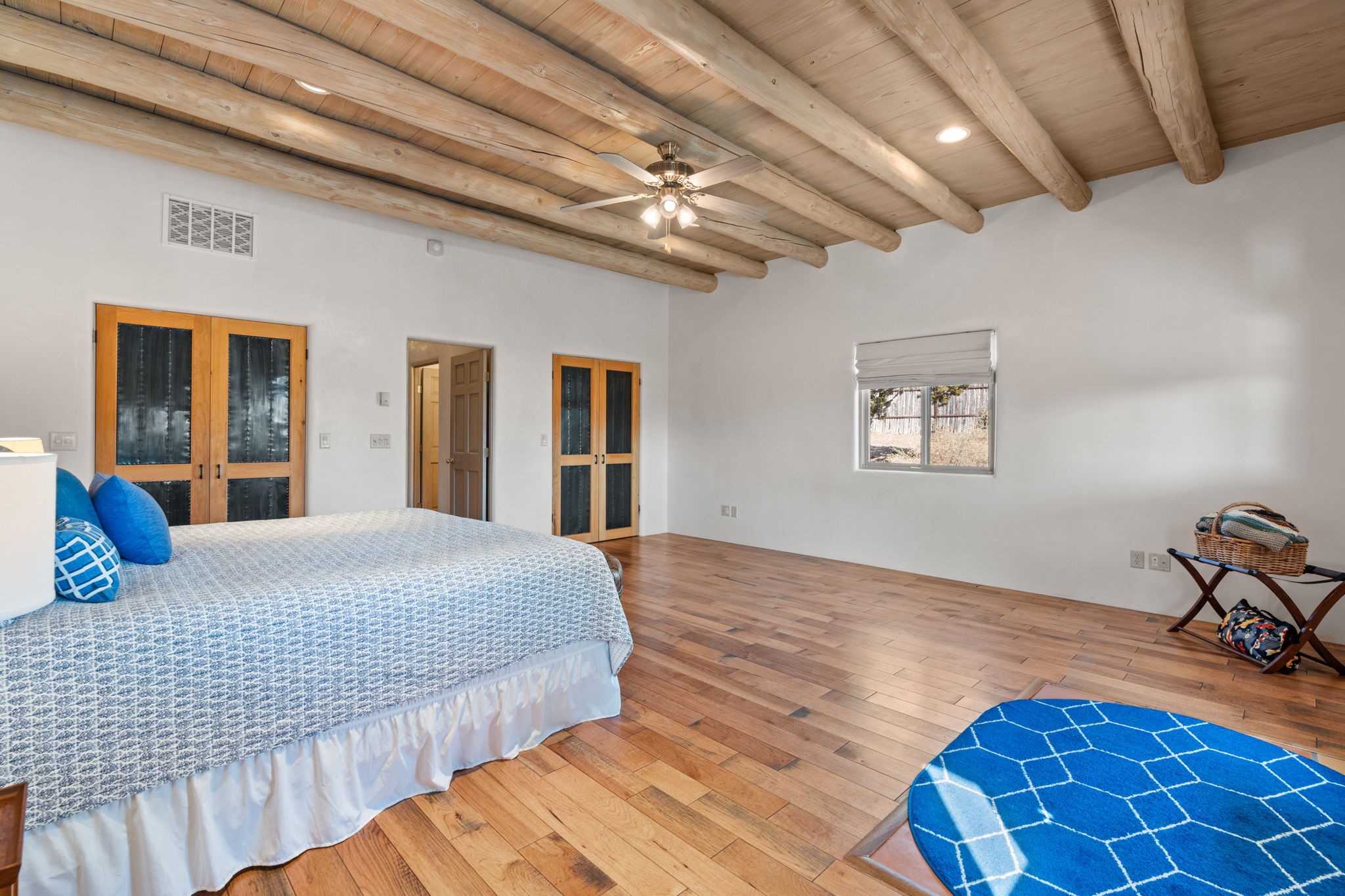 Welcome to your dream retreat: a 3,956-square-foot haven where classic Southwestern charm meets modern comfort. Located just minutes from downtown, this thoughtfully designed 3-bedroom, 3-bath home sits on 1.08 private acres with no HOA.Inside, you'll find Saltillo tile floors, hand-troweled plaster walls, and a generous living room with coved ceilings and abundant natural light. Clerestory windows and skylights fill the home with sunshine, and a sliding door opens to a stunning wraparound portal--perfect for year-round entertaining or quiet evenings under the stars.The kitchen is a chef's delight with newer appliances, ample cabinetry, and a spacious walk-in pantry. A charming office features traditional vigas and a latilla ceiling, ideal as a serene workspace or studio.The primary suite offers a corner kiva fireplace, two walk-in closets, and a private portal entrance. The updated en-suite bath includes a deep jetted tub and custom tile. The guest bath features a colorful Mexican tile arch over the tub for added charm.A lovely newer addition expands the living space with hickory wood floors, two bright bedrooms, a stylish bath with sun shower, and a large den with a fireplace, wood stove insert, built-ins, kitchenette, and wet bar. One bedroom has its own portal entrance for added privacy.Modern comforts include forced air heat, refrigerated air, and in-floor radiant heat in the newer section. Outside, you'll find a one-car garage, two-car carport, and a versatile studio once used for pottery--now a great workout space or creative workshop.This special home blends timeless Santa Fe architecture with thoughtful updates and artistic flair. More than a home--it's a lifestyle.