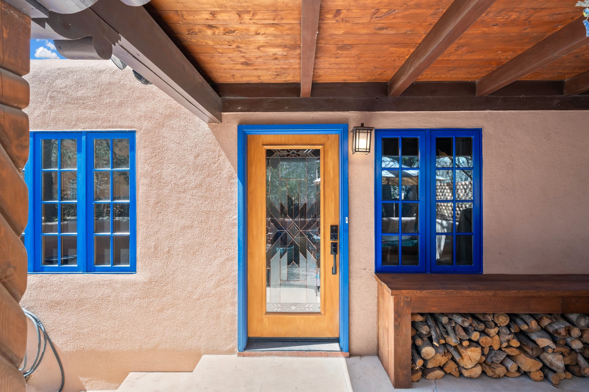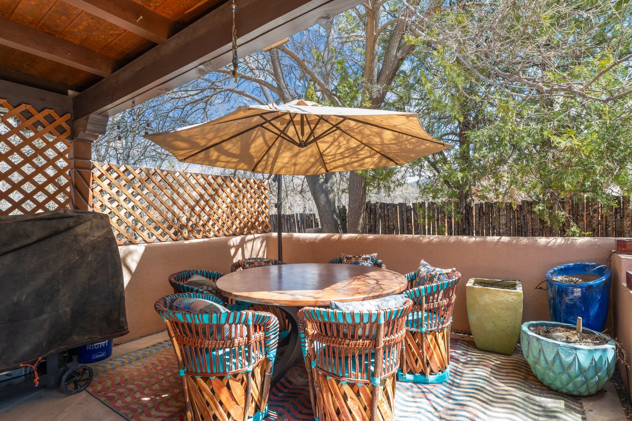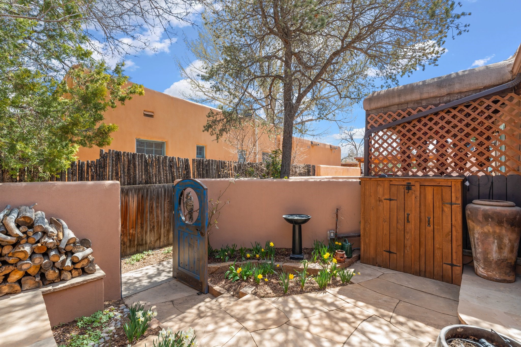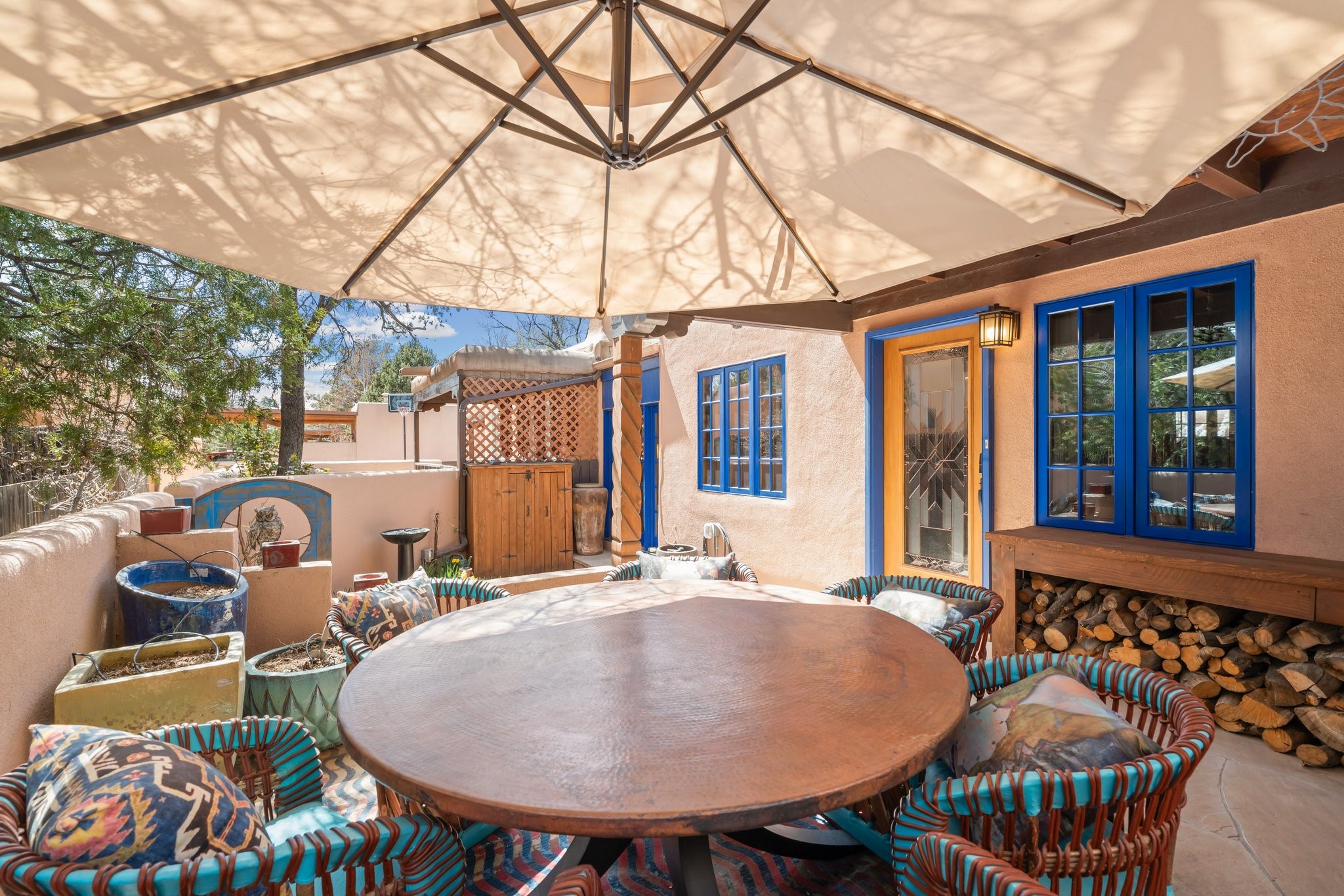 Nestled in the heart of Santa Fe's Eastside, this 2 Bedroom/2 Bath Condominium sits between iconic Canyon Road and the Santa Fe River. Beautifully maintained and updated, Unit 7 welcomes you into a lovely and functional Entry Courtyard. The stately interior boasts vigas, wood floors, Kiva Fireplace and abundant fine appointments. There is a small additional office space as well as a reserved carport parking spot. As a pied a terre, short term rental or restful sanctuary, this location and quality living space can't be beat.