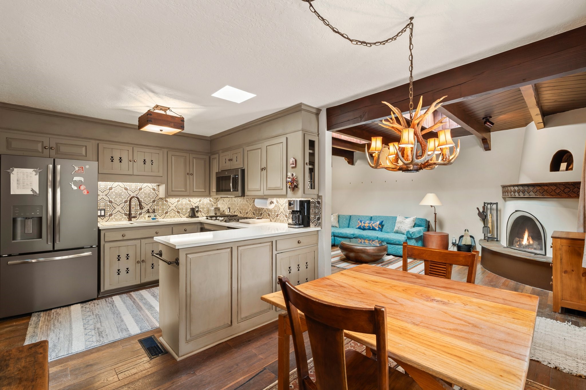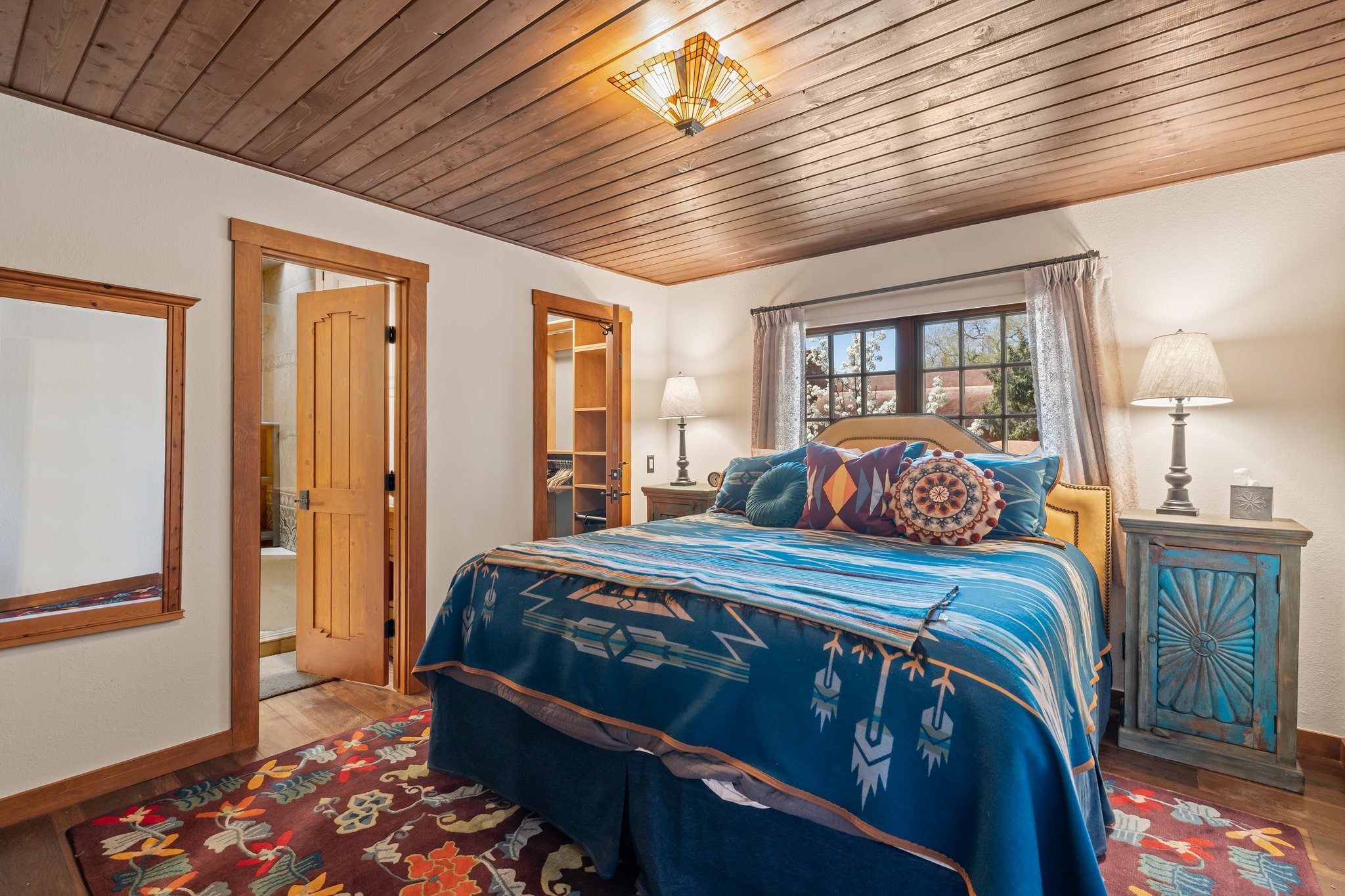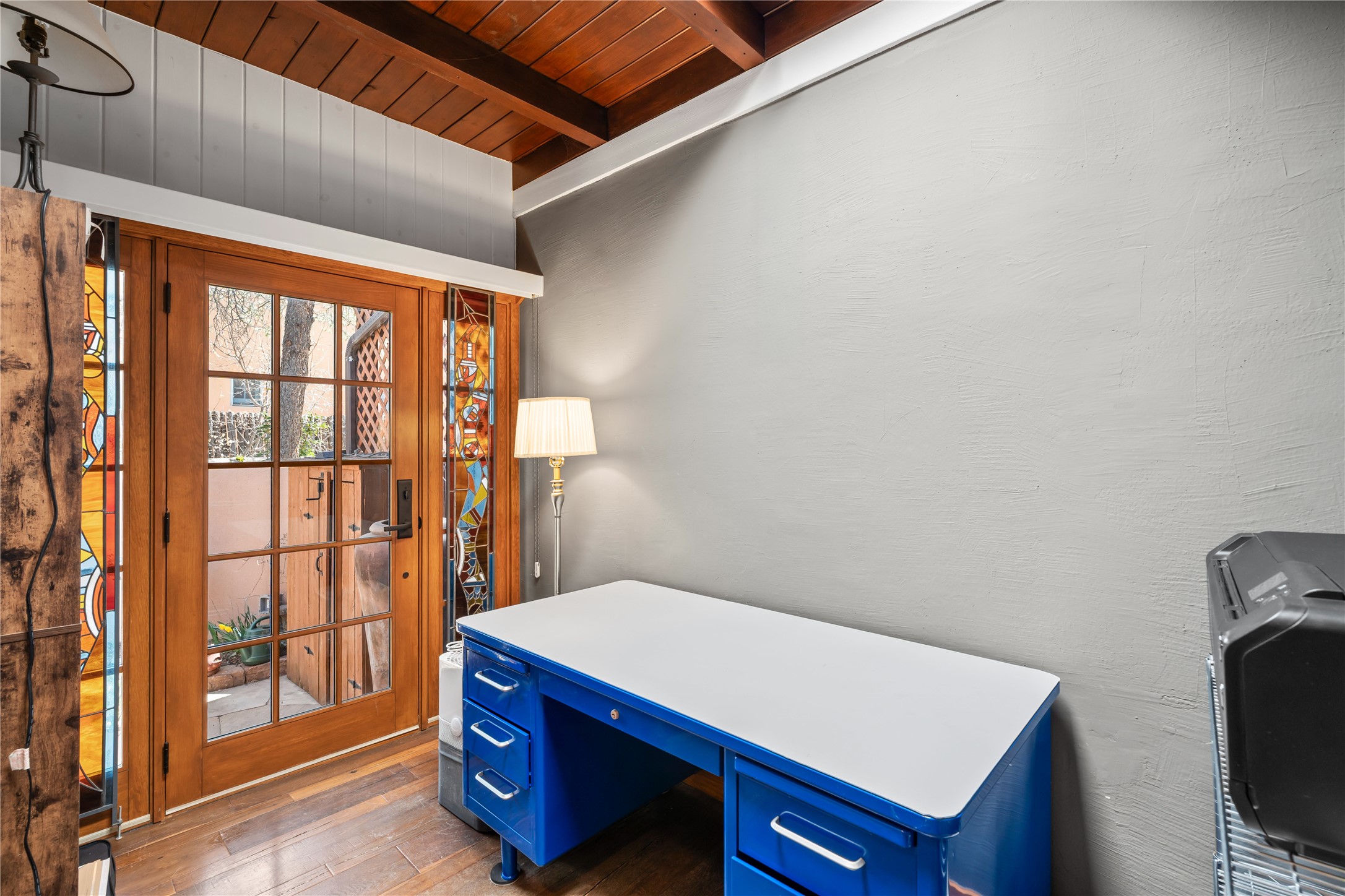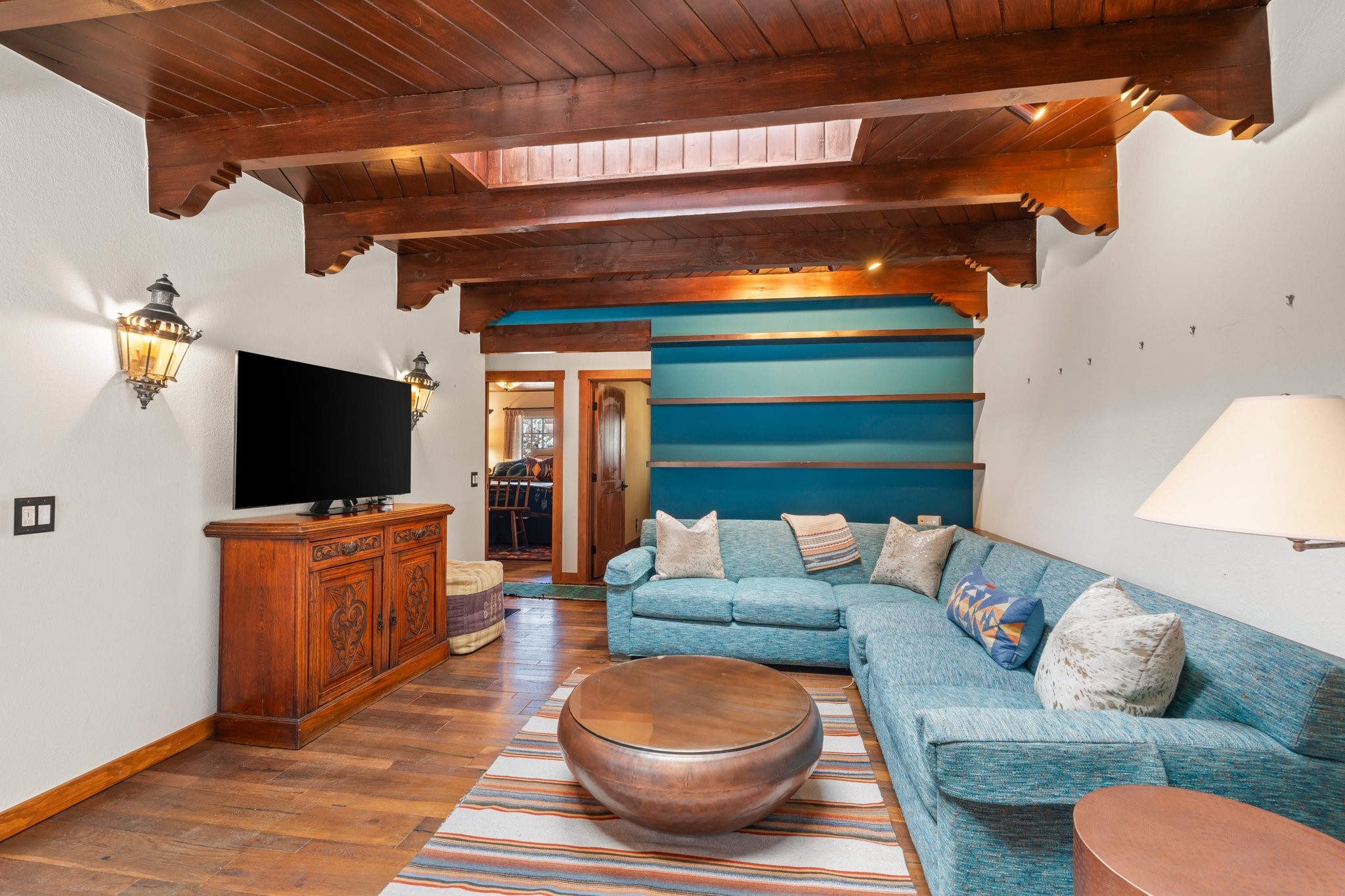 Nestled in the heart of Santa Fe's Eastside, this 2 Bedroom/2 Bath Condominium sits between iconic Canyon Road and the Santa Fe River. Beautifully maintained and updated, Unit 7 welcomes you into a lovely and functional Entry Courtyard. The stately interior boasts vigas, wood floors, Kiva Fireplace and abundant fine appointments. There is a small additional office space as well as a reserved carport parking spot. As a pied a terre, short term rental or restful sanctuary, this location and quality living space can't be beat.