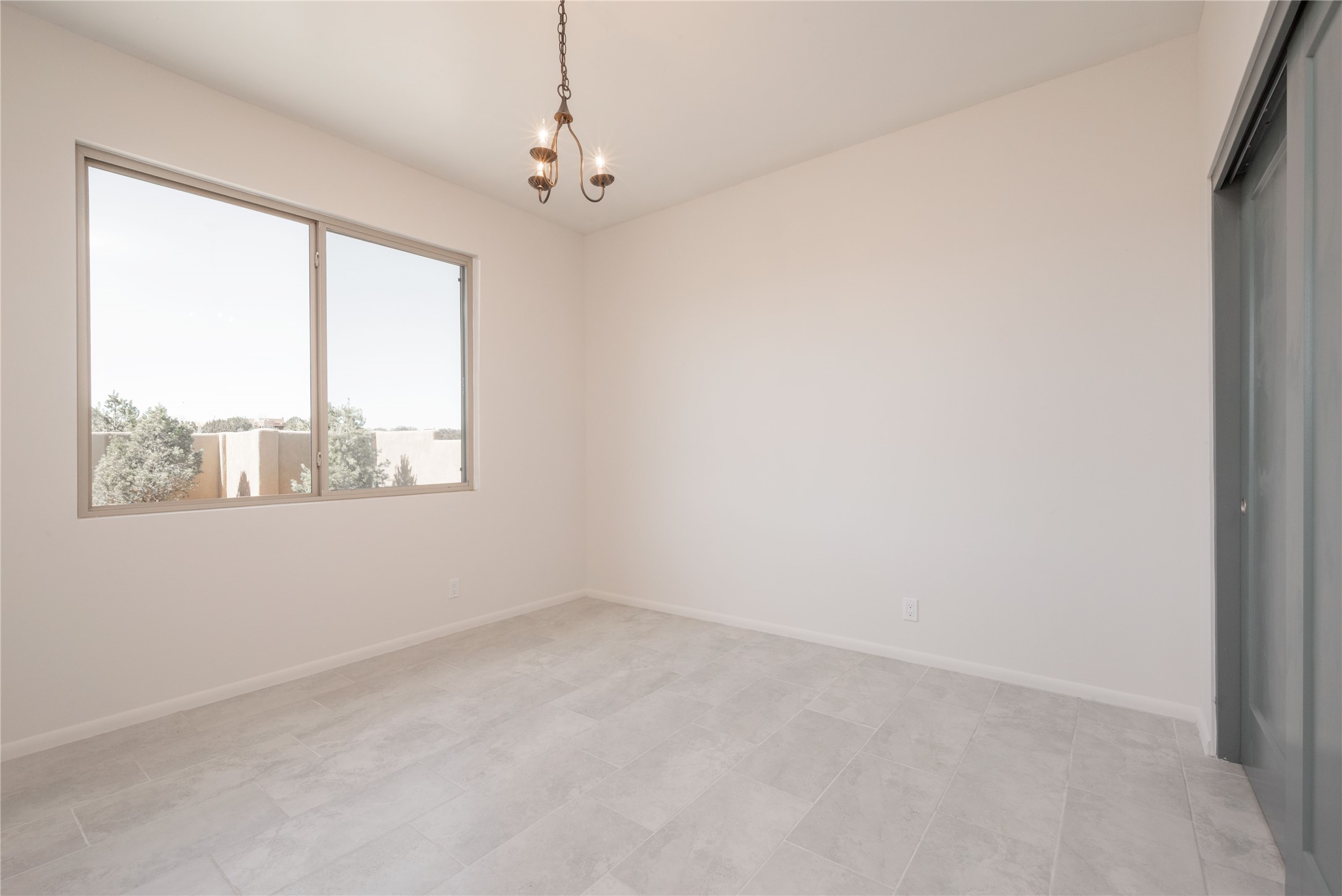Experience modern living at its finest in this stunning 3-bedroom, 2-bath home, set on a peaceful 3.5-acre property surrounded by open space, wide-open skies, and the gentle sounds of nearby horses. Built just 4 years ago, this home blends sleek contemporary design with warm, livable comfort.Inside, you'll find a bright, open-concept layout with soaring ceilings and elegant architectural details, including a striking coffered ceiling in the main living area. The chef-inspired kitchen features high-end commercial-grade appliances--ideal for daily meals or entertaining with ease.The split floor plan offers privacy and functionality, with a spacious primary suite tucked away from the guest bedrooms. Guests enjoy their own private entrance--perfect for hosting, multigenerational living, or short-term rental potential.All just minutes from the Eldorado Shopping Center and a short drive to downtown Santa Fe--offering the perfect balance of serenity and convenience.
