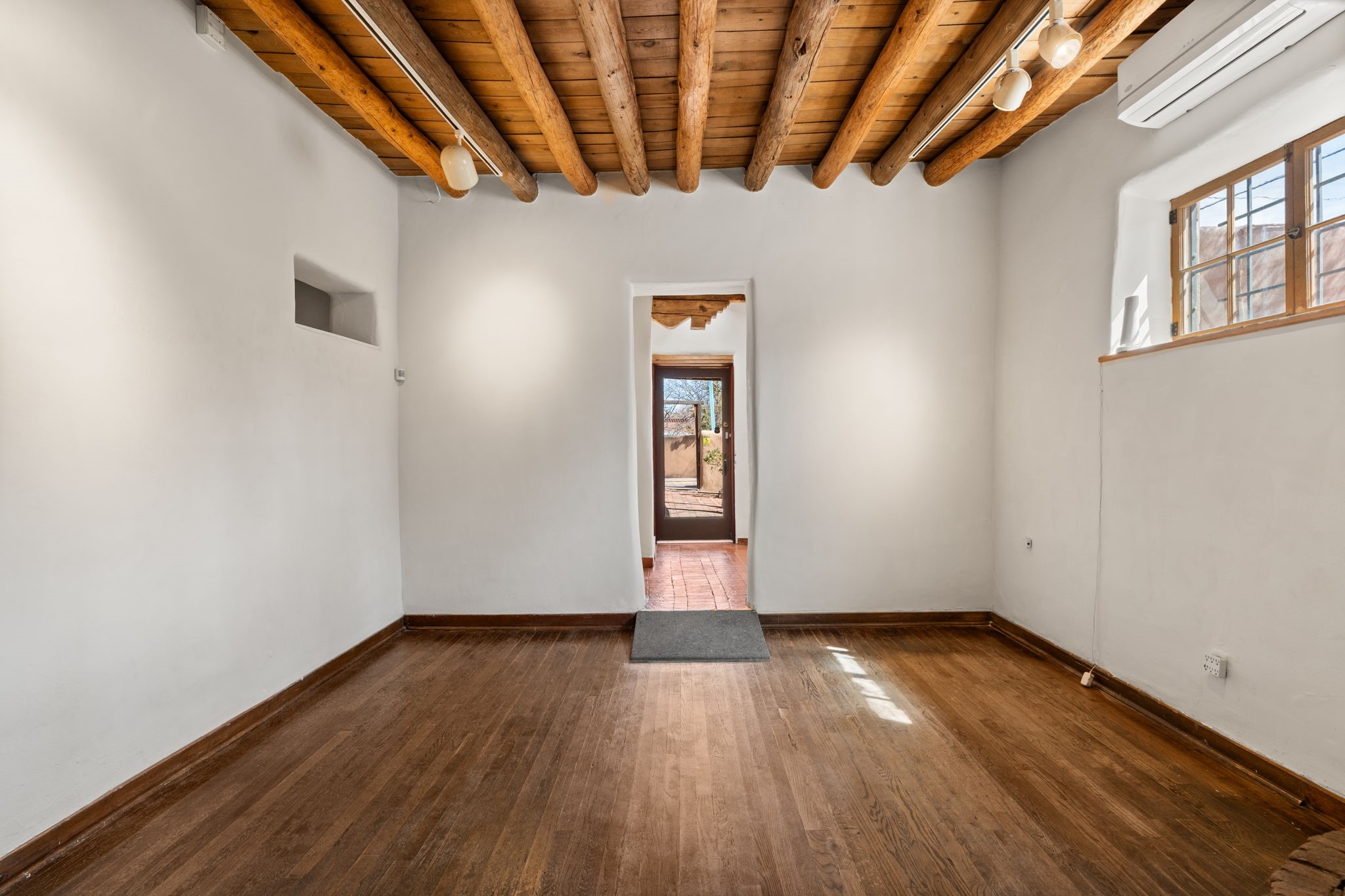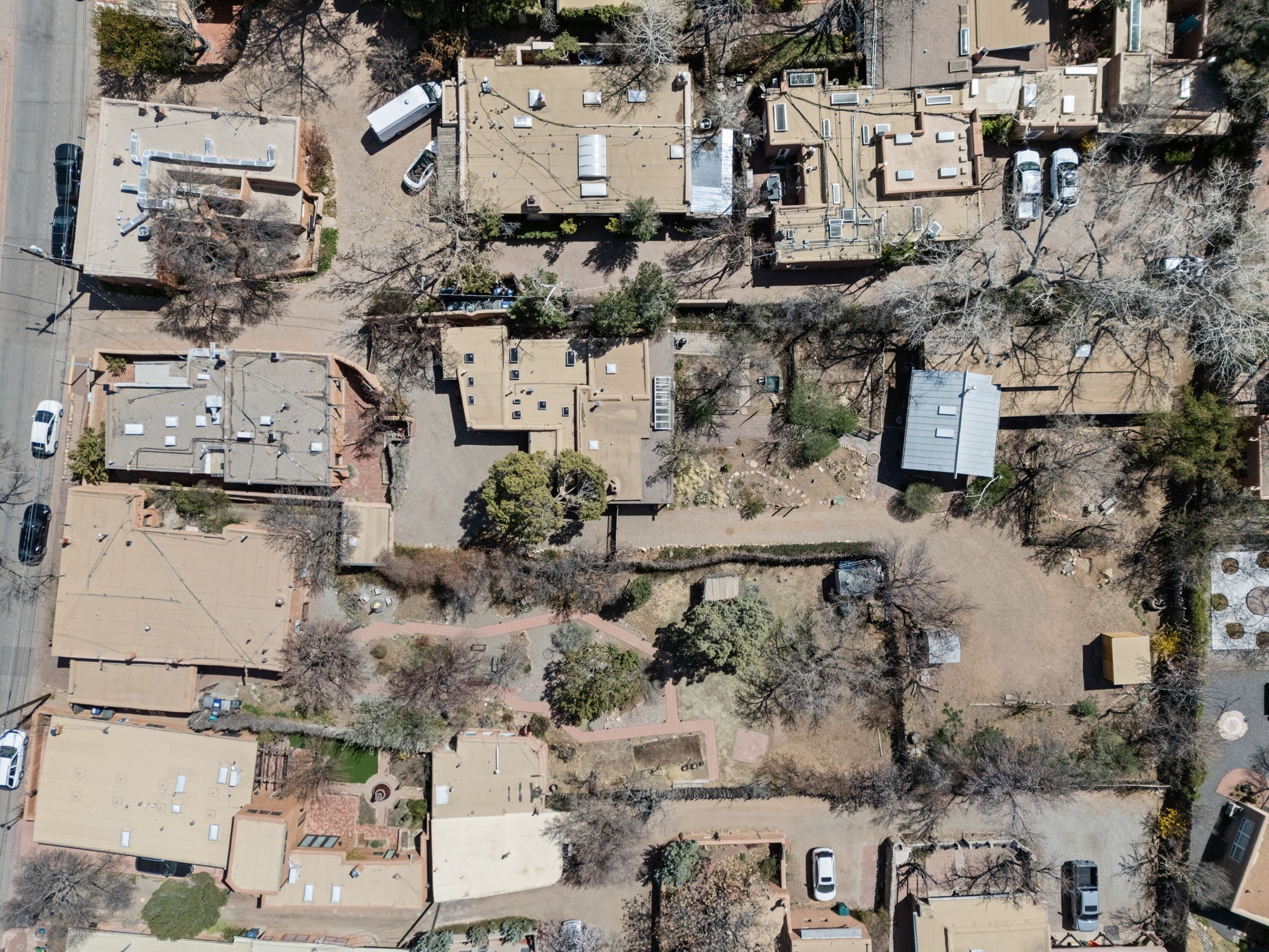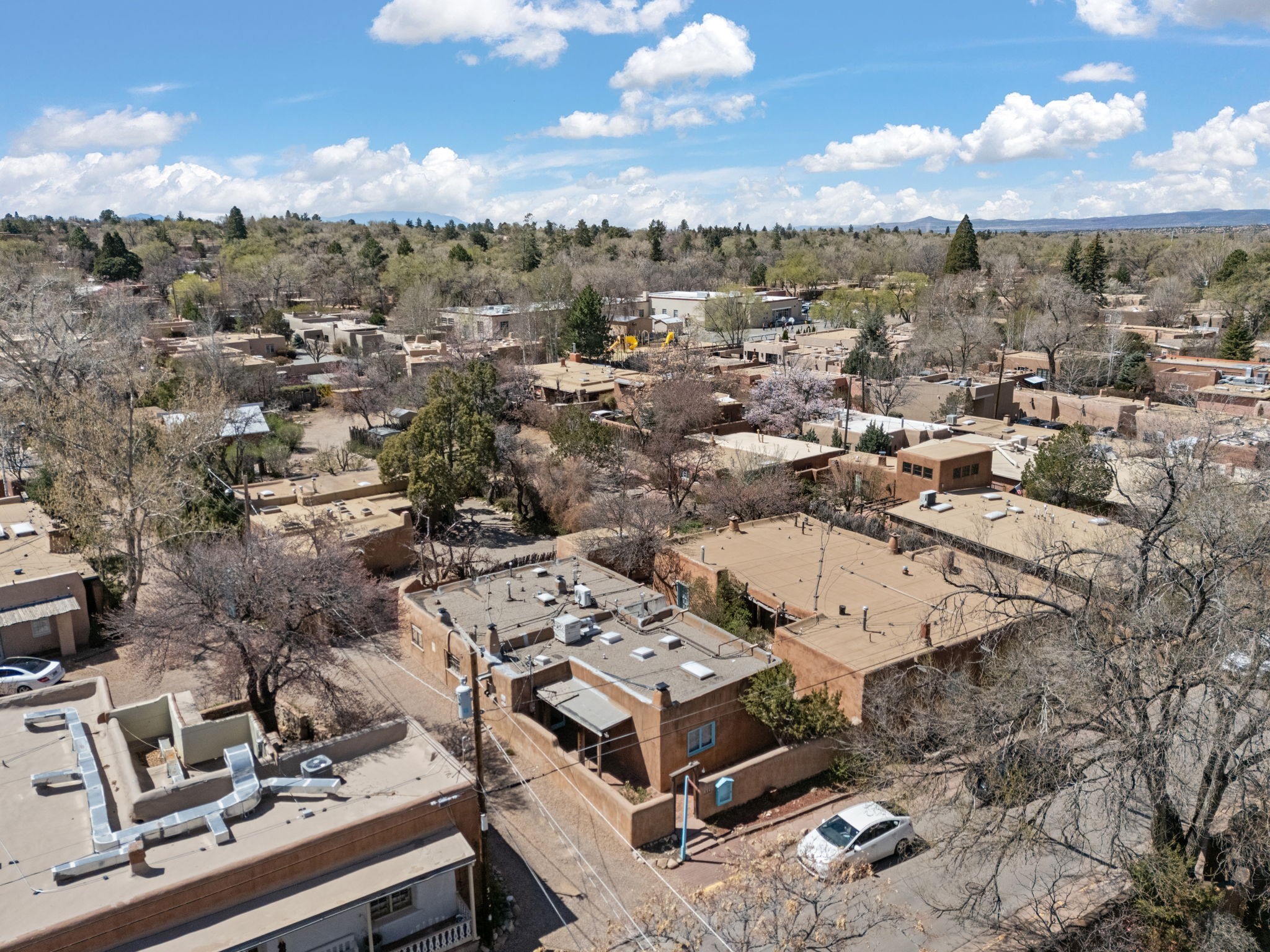 An Exceptional Canyon Road Property. A rare Santa Fe gem, this stunning property at 634 Canyon Rd offers an unparalleled opportunity to own a central piece of Santa Fe's historic and artistic district. Nestled in the heart of this iconic street known for its world-class galleries, boutiques, and fine dining, this property blends traditional charm with modern comforts. Boasting 3 units and 4700 plus square feet of wonderfully designed space, this unique and quaint property exudes Santa Fe charm. The historic front building has for decades served as a beautiful and fully functional art gallery facing Canyon Rd. The back two units, which have been both residences and artists' studios, are zoned as live/work spaces in a quiet, secluded setting. Artistic touches distinguish all three buildings. They boast natural materials lovingly selected and worked by respected artisans. The artists' touch is visible everywhere: in hand-worked wood, polished pavers, hand-painted tiles and other one-of-a-kind features. Kiva fireplaces and natural log wood-beam vigas lend the classic warmth of Southwestern architecture. Step outside into Santa Fe's crisp mountain air on to more than half an acre of gardens and fruit trees irrigated by water from the Acequia Madre, with a graveled private drive and off street parking, a private well, and outdoor sitting areas. Situated on Canyon Road, one of Santa Fe's most celebrated streets, this property is surrounded by over 80 galleries, studios, and boutiques, making it a haven for art enthusiasts and collectors. Canyon Road is renowned for its vibrant art scene, featuring everything from traditional to contemporary works, as well as its fine jewelry and dining establishments. The property has a unique and special Santa Fe history. Artists Allen and Alice Parrott bought the adobe house at 634 Canyon Road from the painter Olive Rush in the 1950s. The property previously belonged to the Rodriguez-Sena families, who had farmed there for over 200 years. The street's charm and cultural significance make it a sought-after destination for visitors and locals alike. Don't miss the chance to experience the magic of Canyon Road. This property suits a range of lifestyles, from full-time residence, to a workspace for creative professionals, to unique investment opportunities.