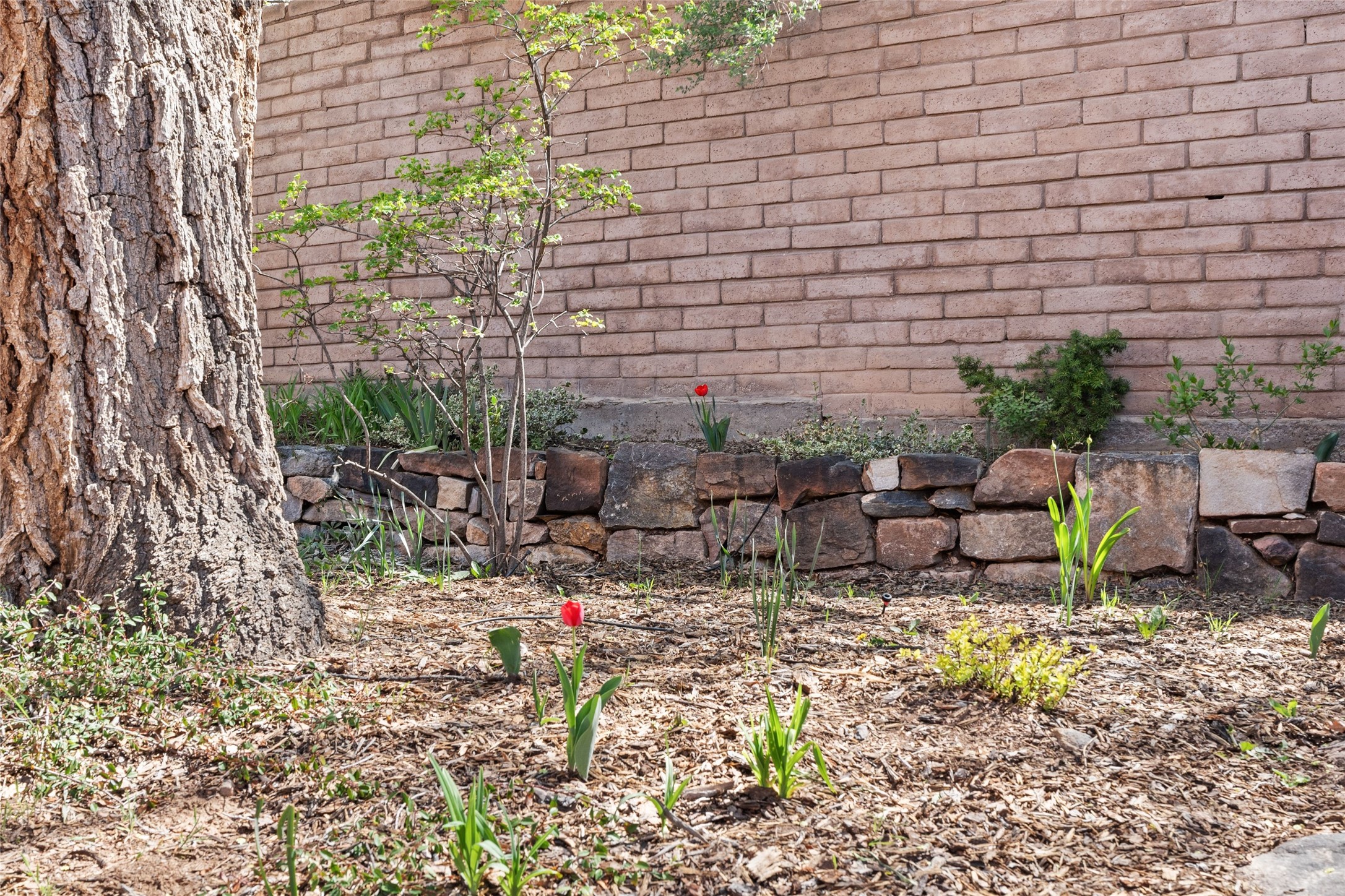 This historic home, El Torreon, was built by the artist Frank Applegate in 1927 to be his personal studio. It is an easy walk to Canyon Road, the Plaza and not far from Museum Hill. Extensively remodeled, this 3-bedroom historic treasure comes turnkey with all the furnishings included, except for the art. The main bedroom is downstairs with hand adzed beams, plaster walls, carved doors, walk in closet and lovely ensuite bath with jacuzzi tub, dual sinks and walk in shower. There is good separation with the other bedrooms - one being on the other side of the house, and the 3rd bedroom upstairs in the round torre, which enjoys great light, vigas, fireplace and served as Applegate's studio back in the day. The fabulous kitchen with new cabinets, sandstone counters, newer fridge and dishwasher and a gas Viking range, is the heart of the home and open to the dining and living room, which also enjoys a fireplace and pretty plaster walls. The new studio/office was created from the old garage and has a separate entry, corner kiva fireplace, coved ceilings and a power room. A covered parking portal was added for covered off street parking! With lovely flagstone patios surrounding El Torreon, there is a cozy seating area adjacent to the separate studio by the outside kiva fireplace, a quiet patio for dining at the side of the house and a hot tub for star gazing on clear nights from your fully enclosed outdoor patio. There is radiant heat, 3 mini splits for cooling and added heat as well as a 3-year-old tankless for the hot water and radiant heat. Come and live your Santa Fe sueno in an authentic piece of history in the heart of the Eastside!