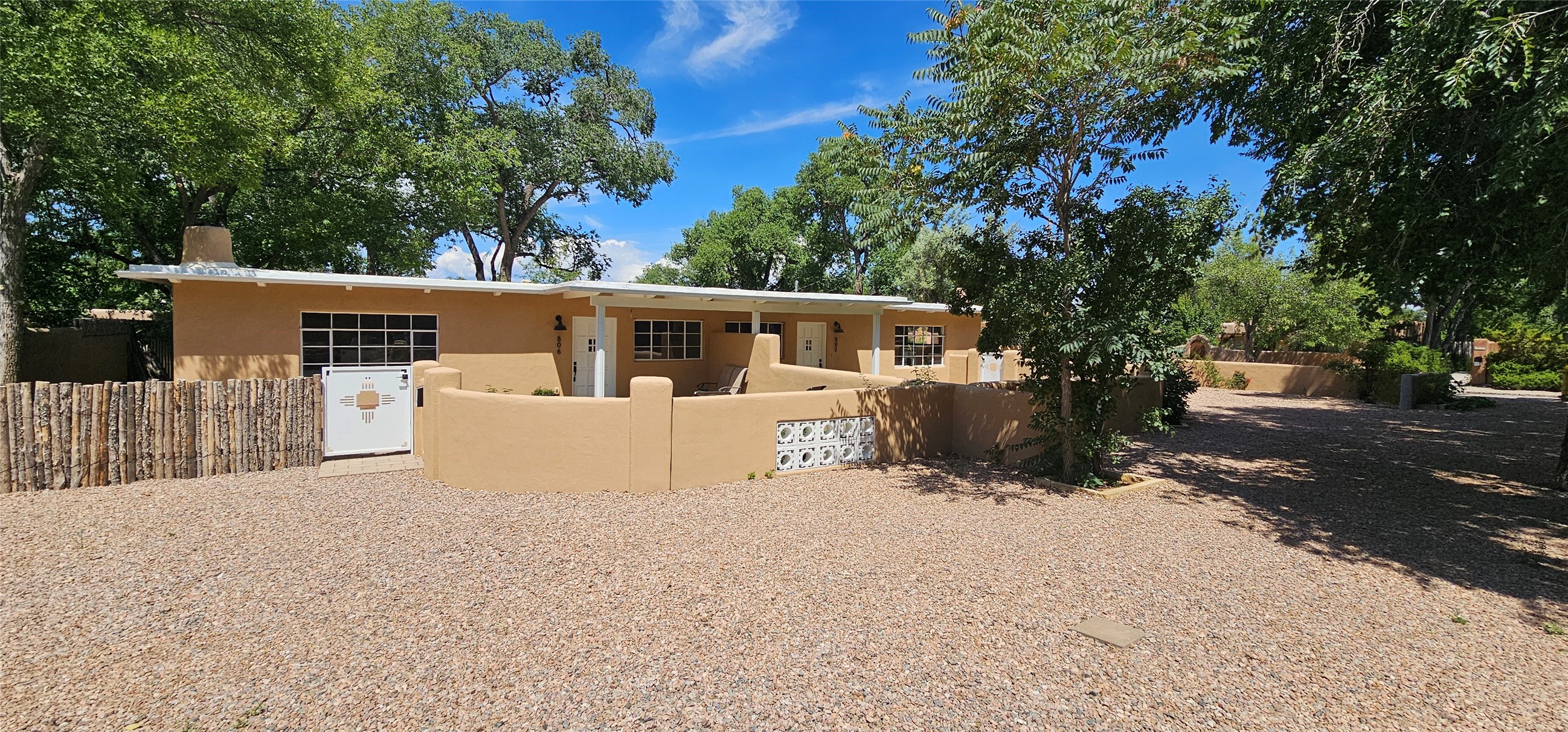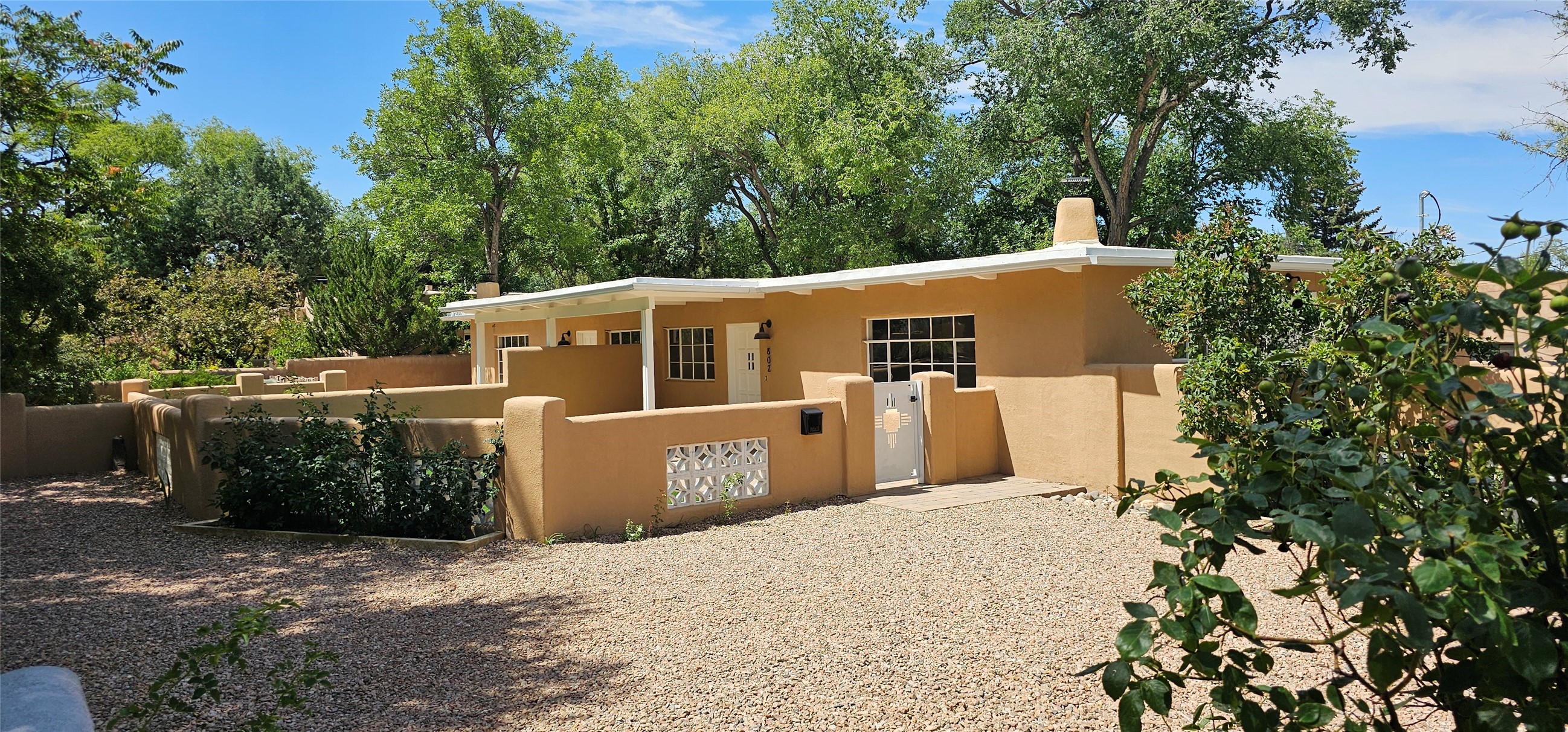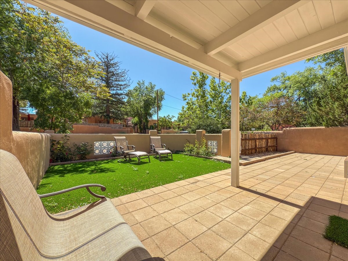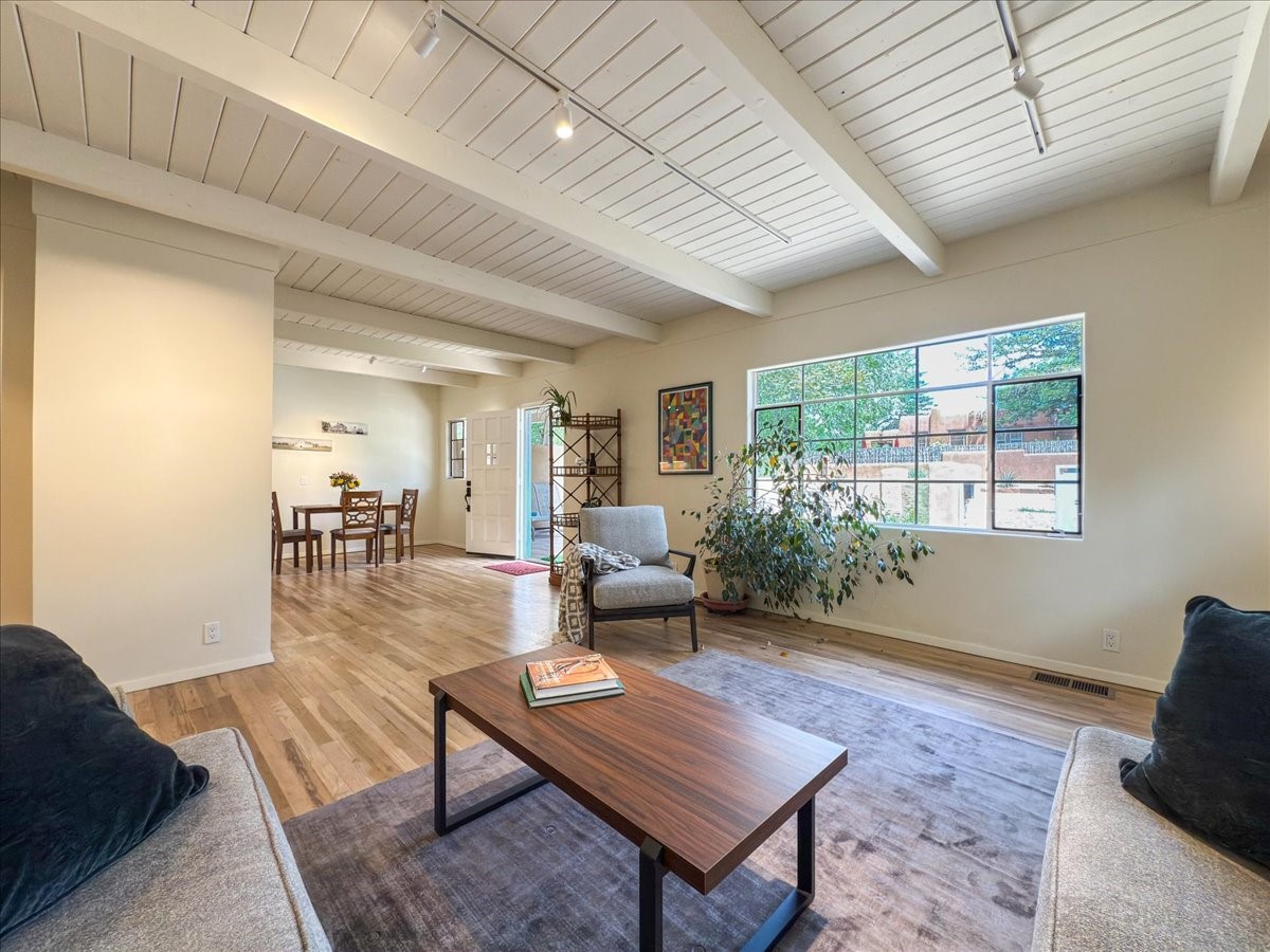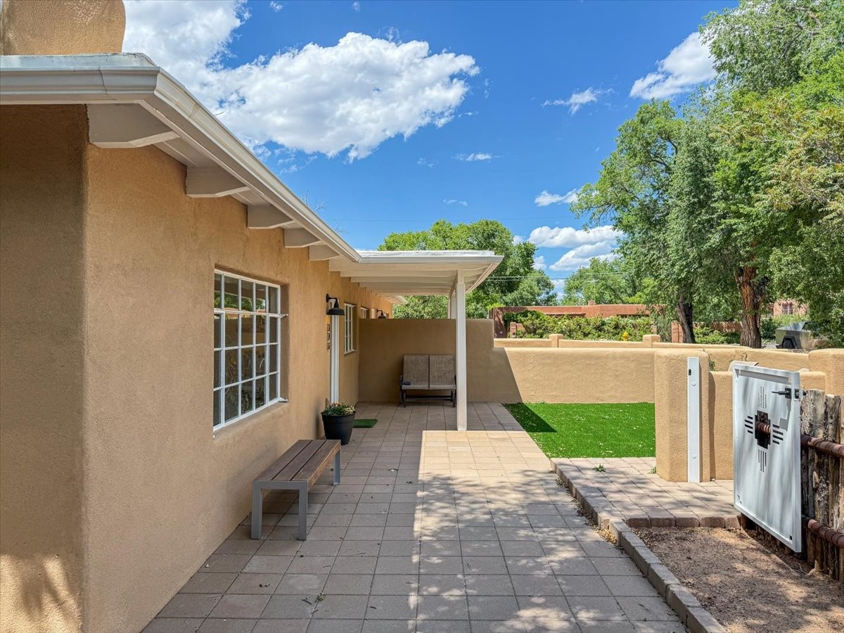 Prime South Capital location. Newly renovated 1050 s.f. 60's mod style home. 2 large bedrooms, Complete new kitchen and bath. Spacious light-filled living room with Kiva fireplace. All new electric with service upgrade. New central AC/heat system. Large fenced yard and patio area. 2 car + off-street parking. On a lovely, shaded, quiet street within walking distance to Wood Gormley school with no HOA fees! A slice of paradise. As an added value, the Seller will consider a buy-down of the buyer's interest rate. This Santa Fe charmer is a townhome with an identical unit sharing a common wall. Both units are available for sale, which presents a unique income opportunity.