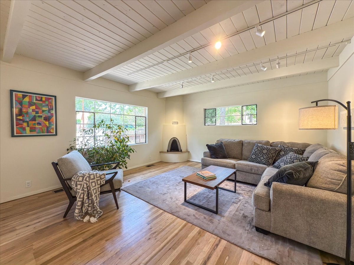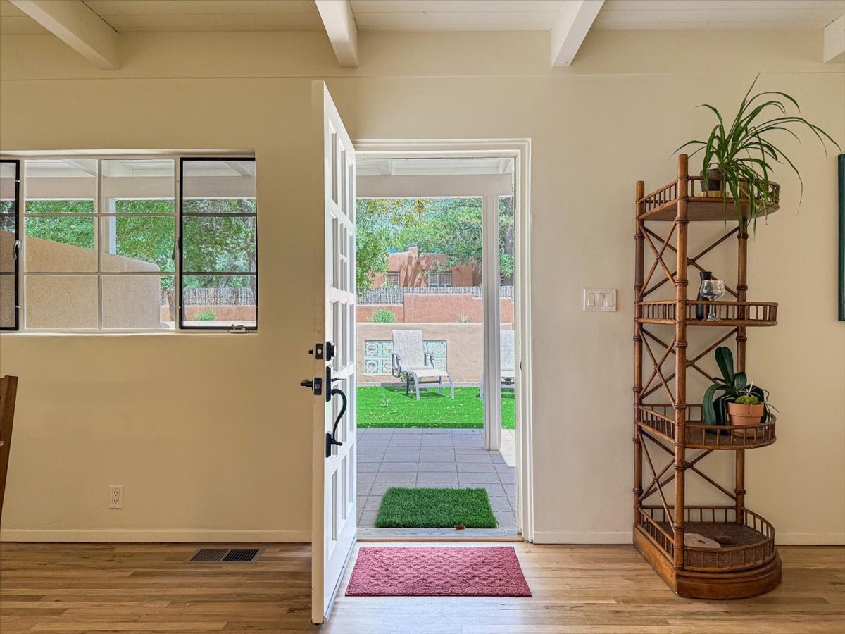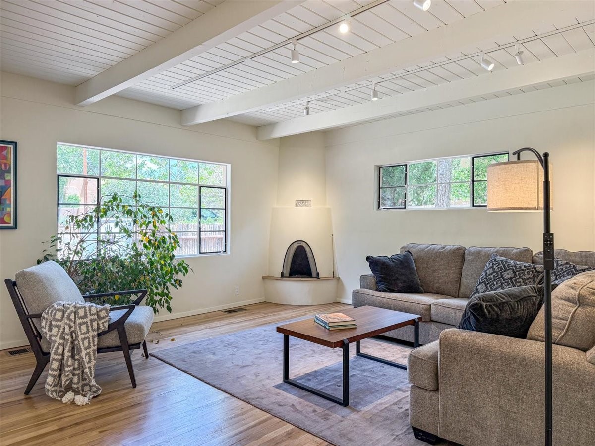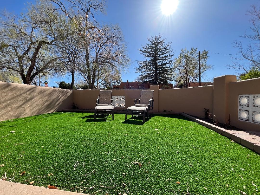 Prime South Capital location. Newly renovated 1050 s.f. 60's mod style home. 2 large bedrooms, Complete new kitchen and bath. Spacious light-filled living room with Kiva fireplace. All new electric with service upgrade. New central AC/heat system. Large fenced yard and patio area. 2 car + off-street parking. On a lovely, shaded, quiet street within walking distance to Wood Gormley school with no HOA fees! A slice of paradise. As an added value, the Seller will consider a buy-down of the buyer's interest rate. This Santa Fe charmer is a townhome with an identical unit sharing a common wall. Both units are available for sale, which presents a unique income opportunity.