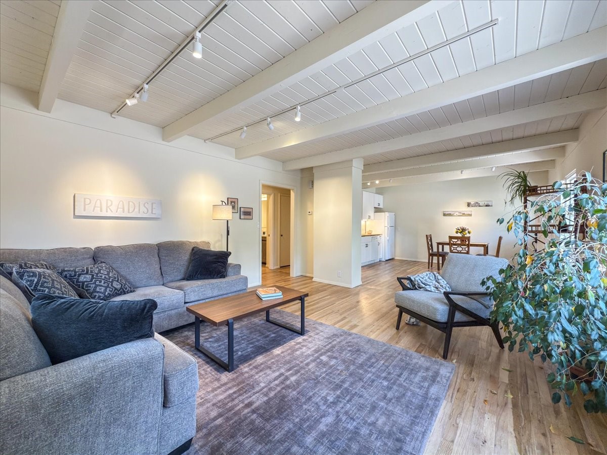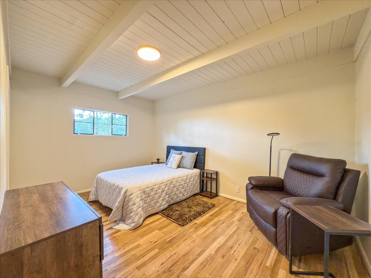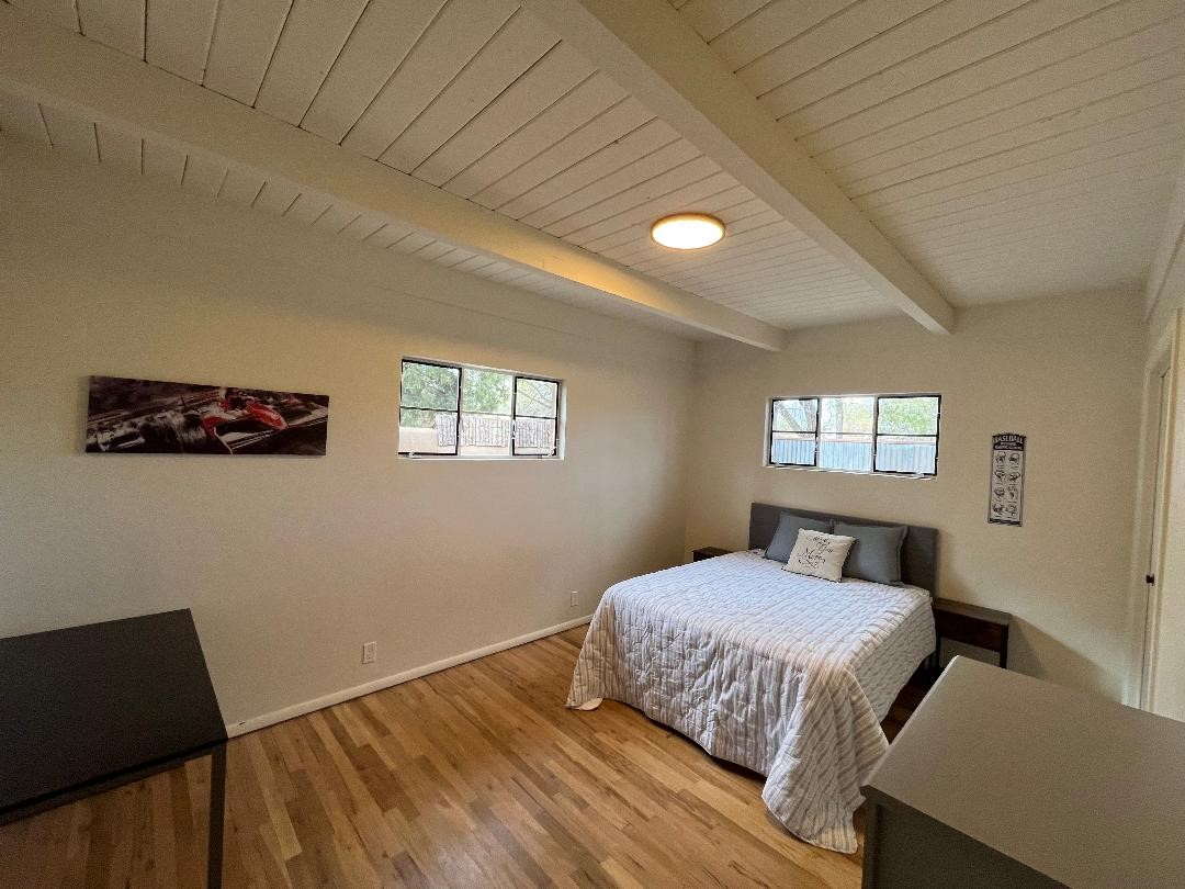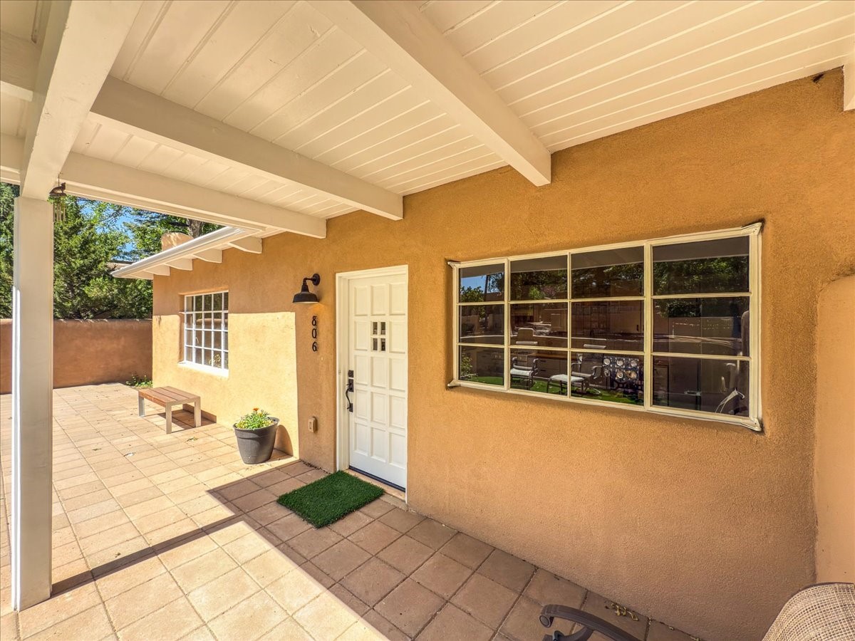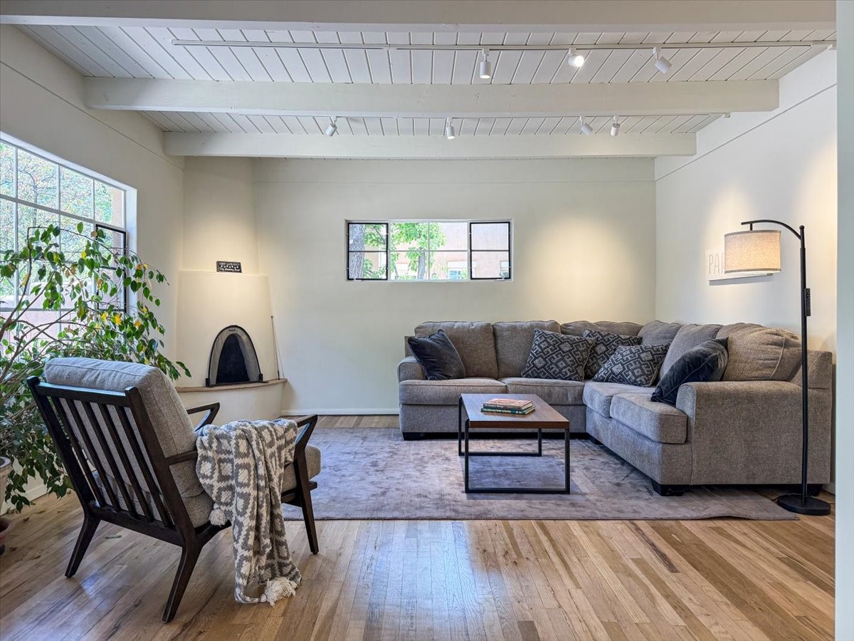 Prime South Capital location. Newly renovated 1050 s.f. 60's mod style home. 2 large bedrooms, Complete new kitchen and bath. Spacious light-filled living room with Kiva fireplace. All new electric with service upgrade. New central AC/heat system. Large fenced yard and patio area. 2 car + off-street parking. On a lovely, shaded, quiet street within walking distance to Wood Gormley school with no HOA fees! A slice of paradise. As an added value, the Seller will consider a buy-down of the buyer's interest rate. This Santa Fe charmer is a townhome with an identical unit sharing a common wall. Both units are available for sale, which presents a unique income opportunity.