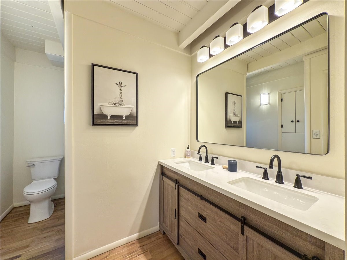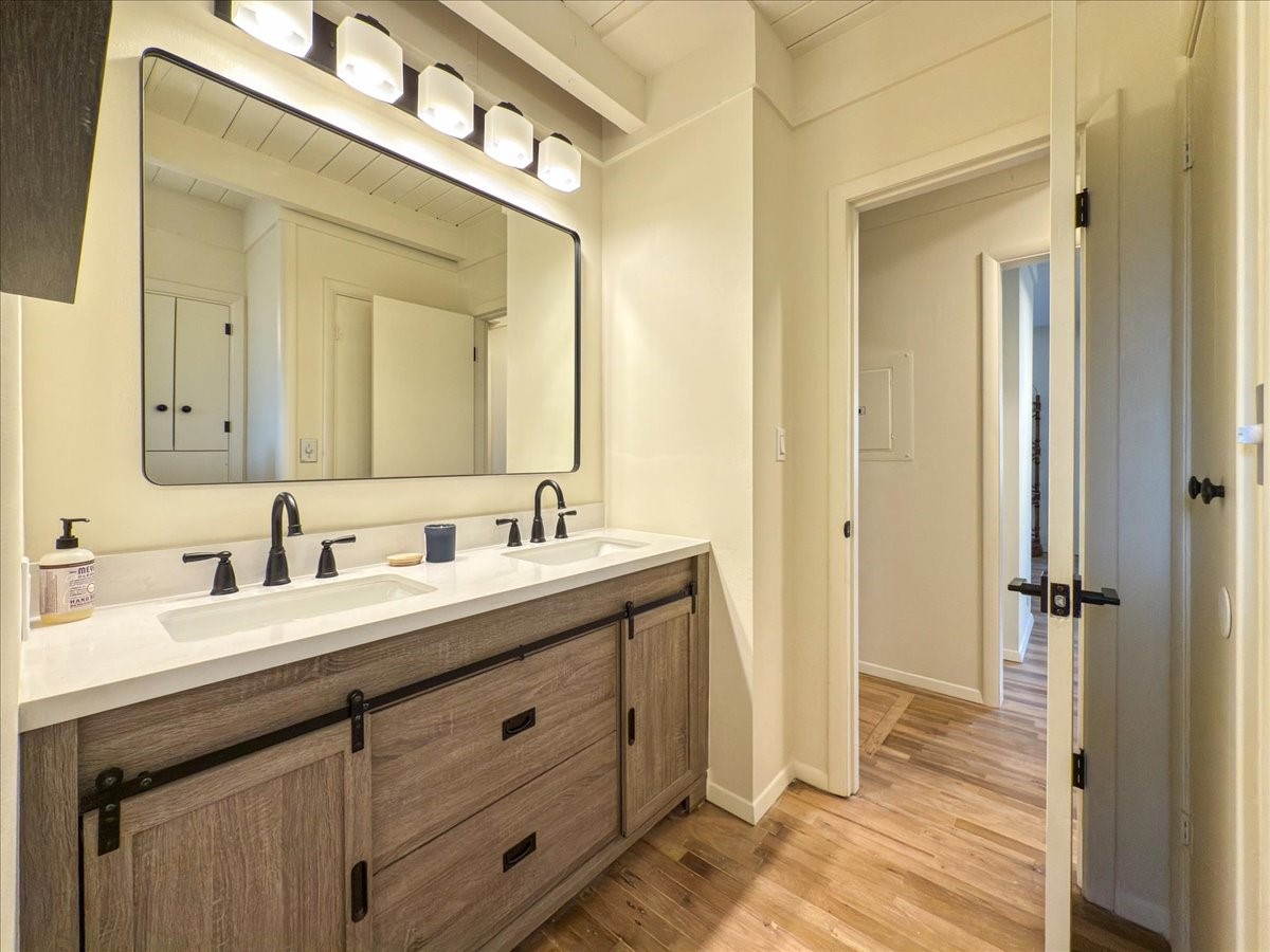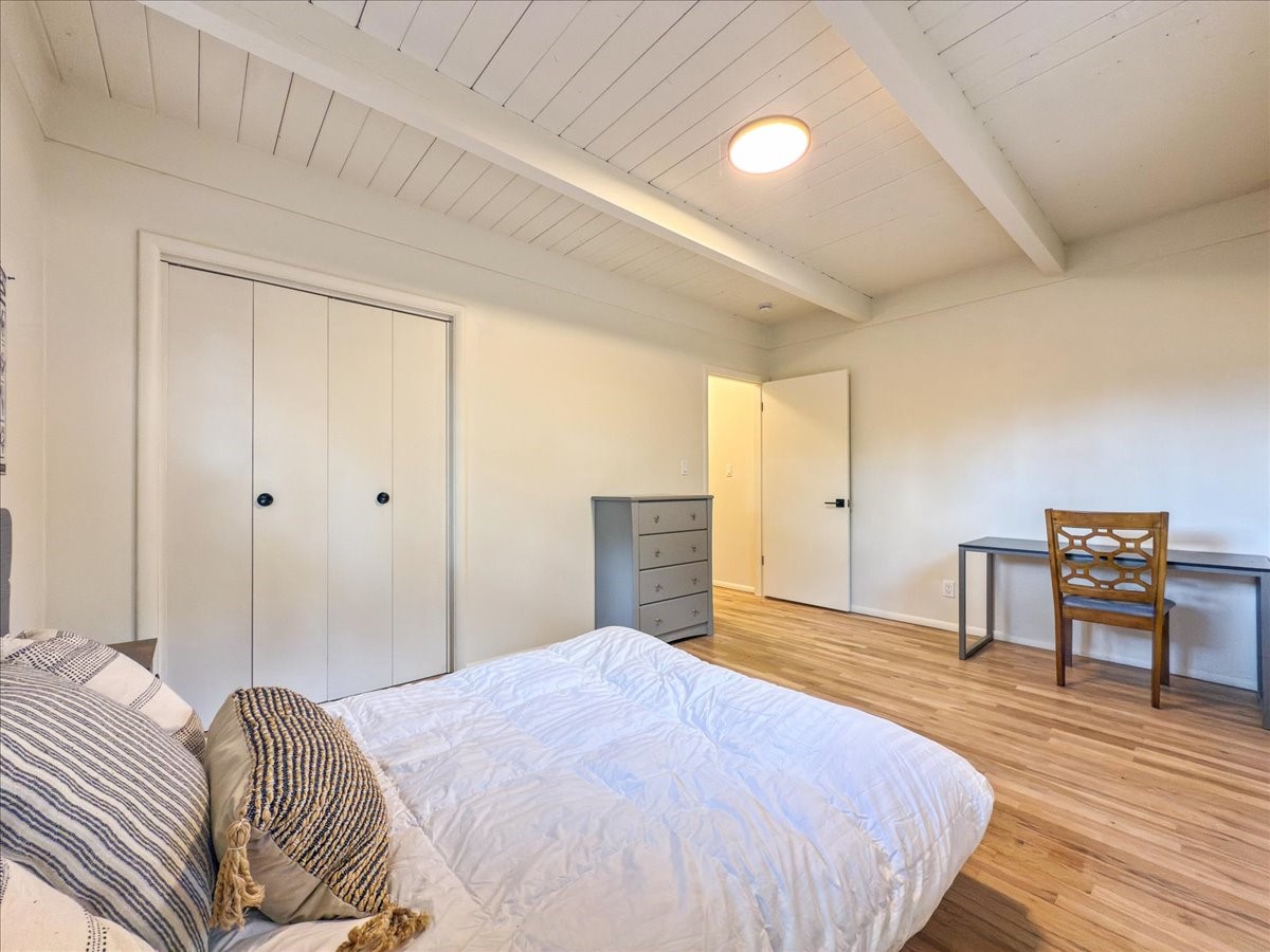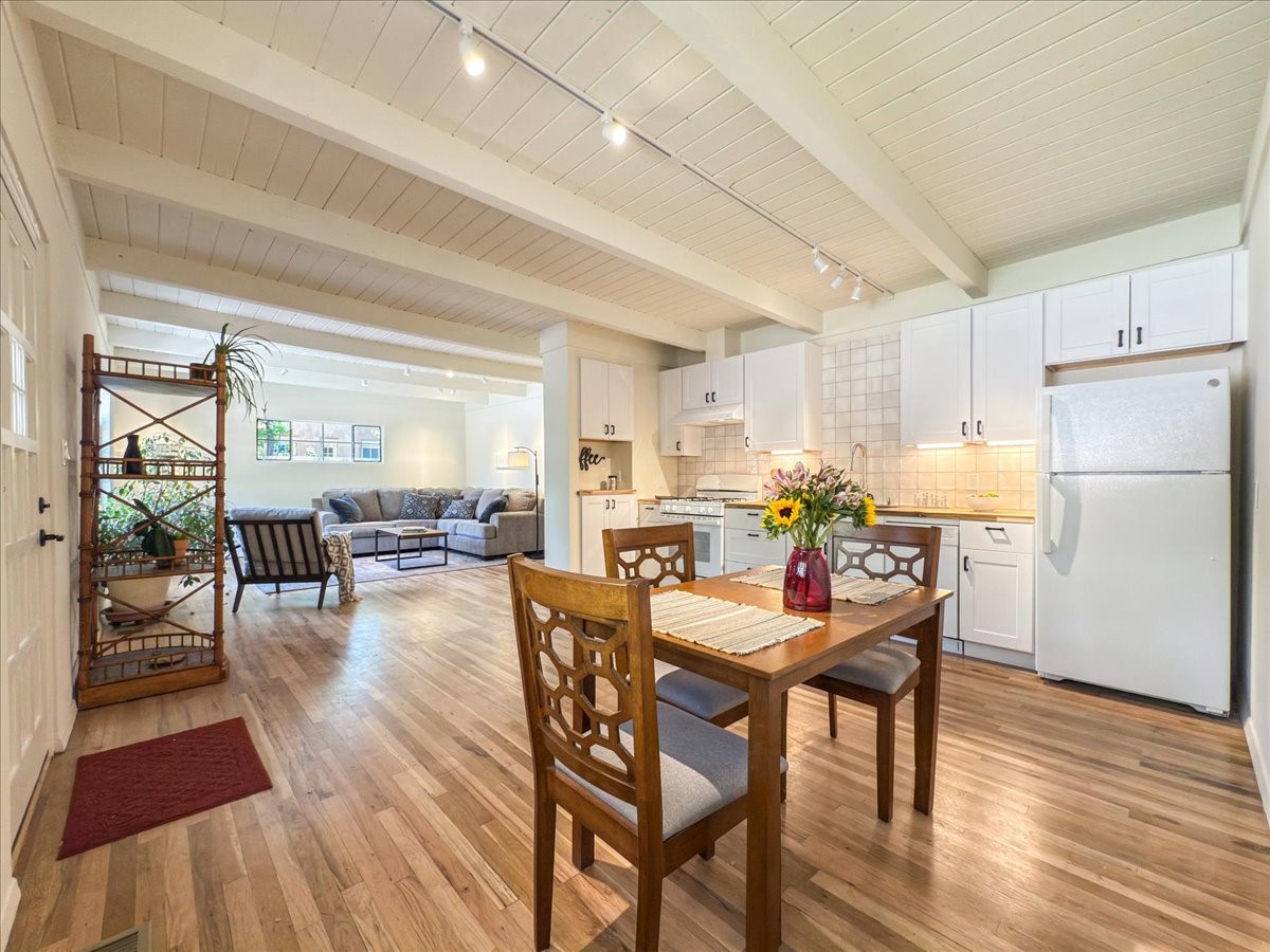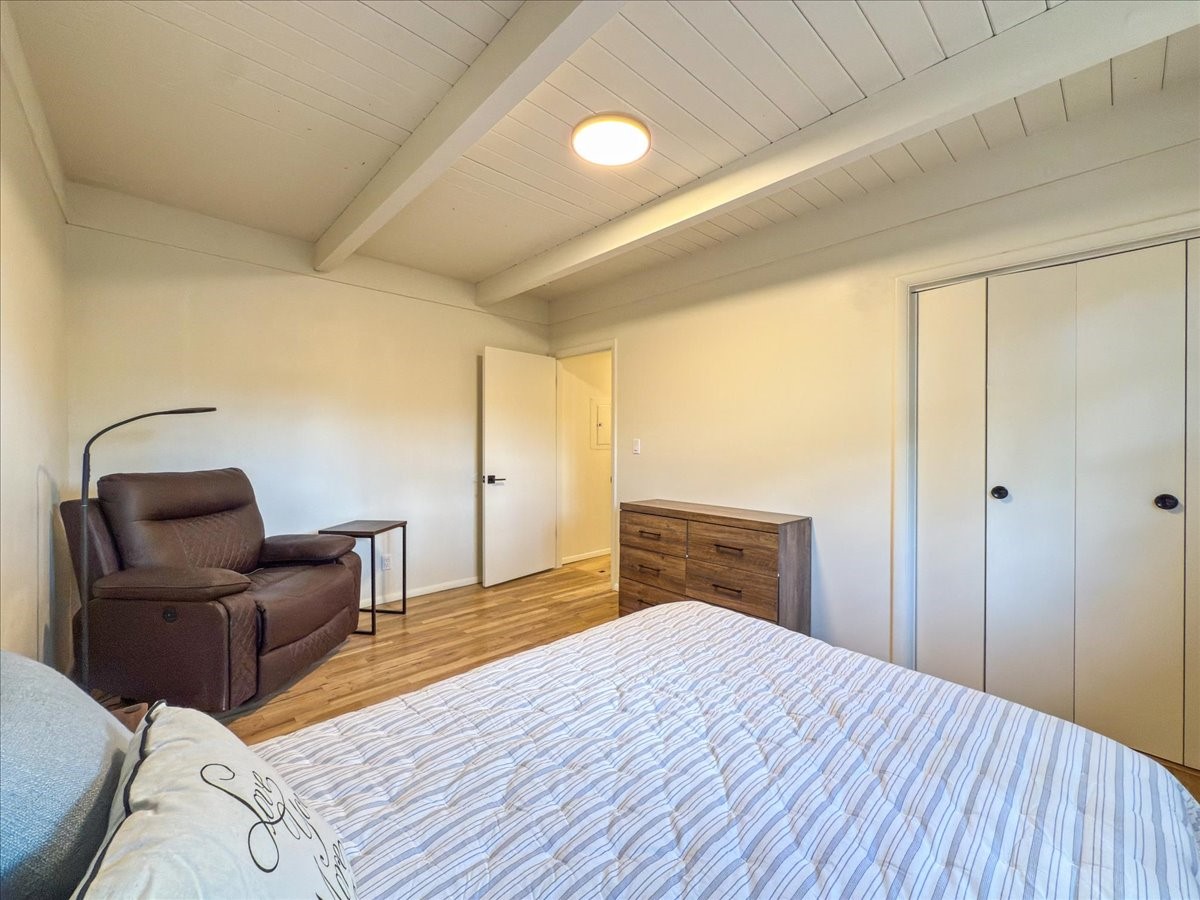 Prime South Capital location. Newly renovated 1050 s.f. 60's mod style home. 2 large bedrooms, Complete new kitchen and bath. Spacious light-filled living room with Kiva fireplace. All new electric with service upgrade. New central AC/heat system. Large fenced yard and patio area. 2 car + off-street parking. On a lovely, shaded, quiet street within walking distance to Wood Gormley school with no HOA fees! A slice of paradise. As an added value, the Seller will consider a buy-down of the buyer's interest rate. This Santa Fe charmer is a townhome with an identical unit sharing a common wall. Both units are available for sale, which presents a unique income opportunity.