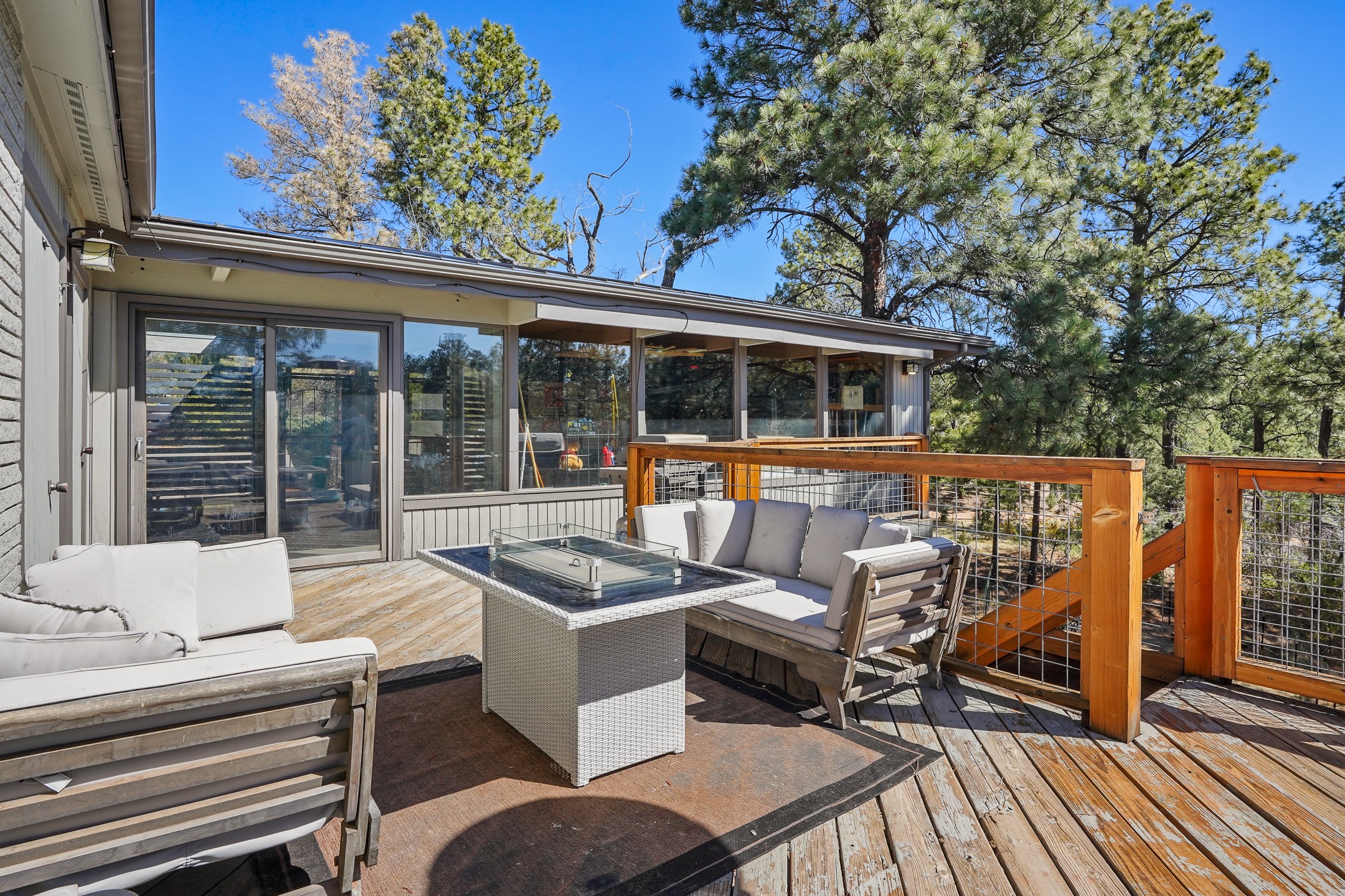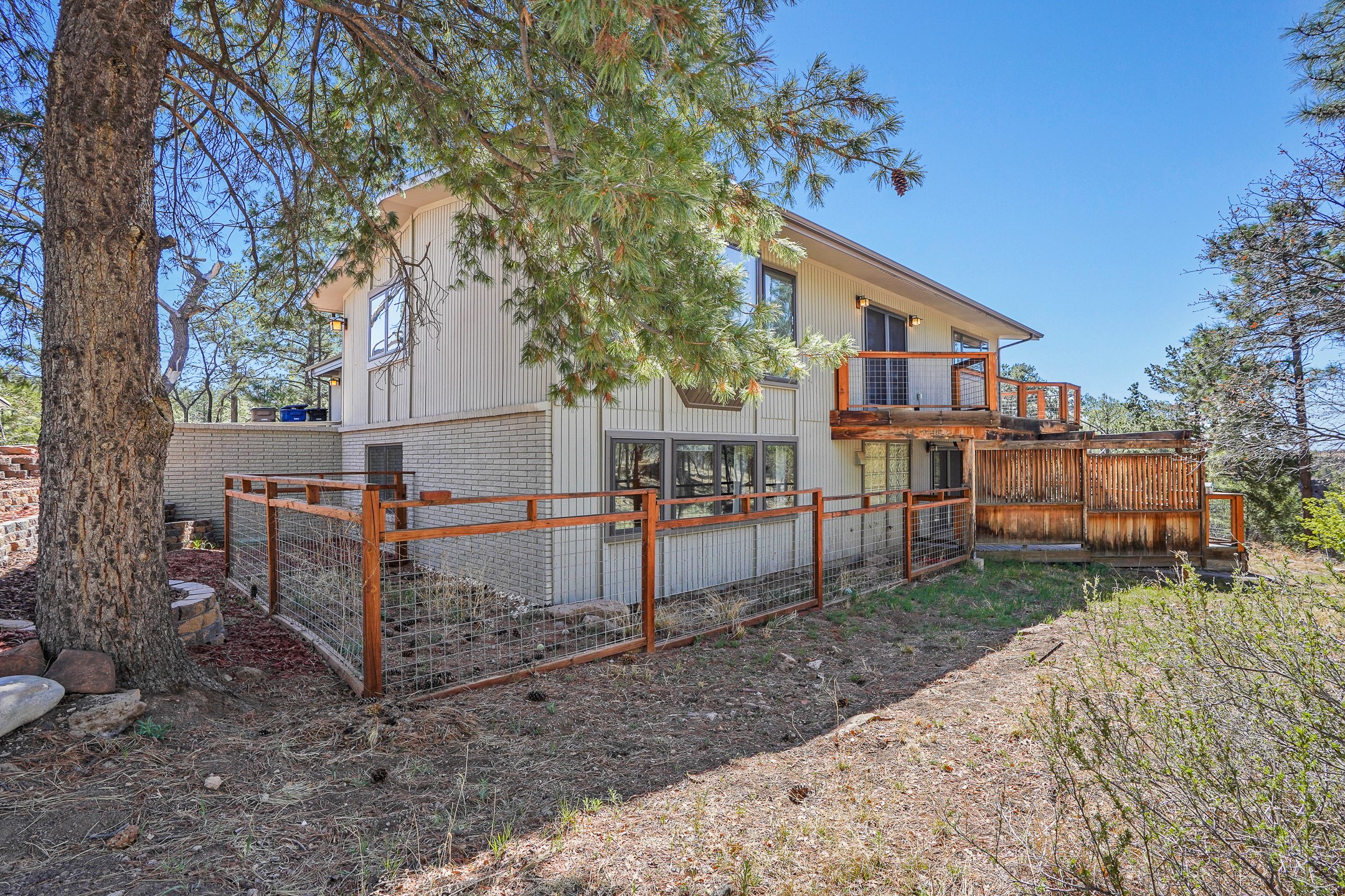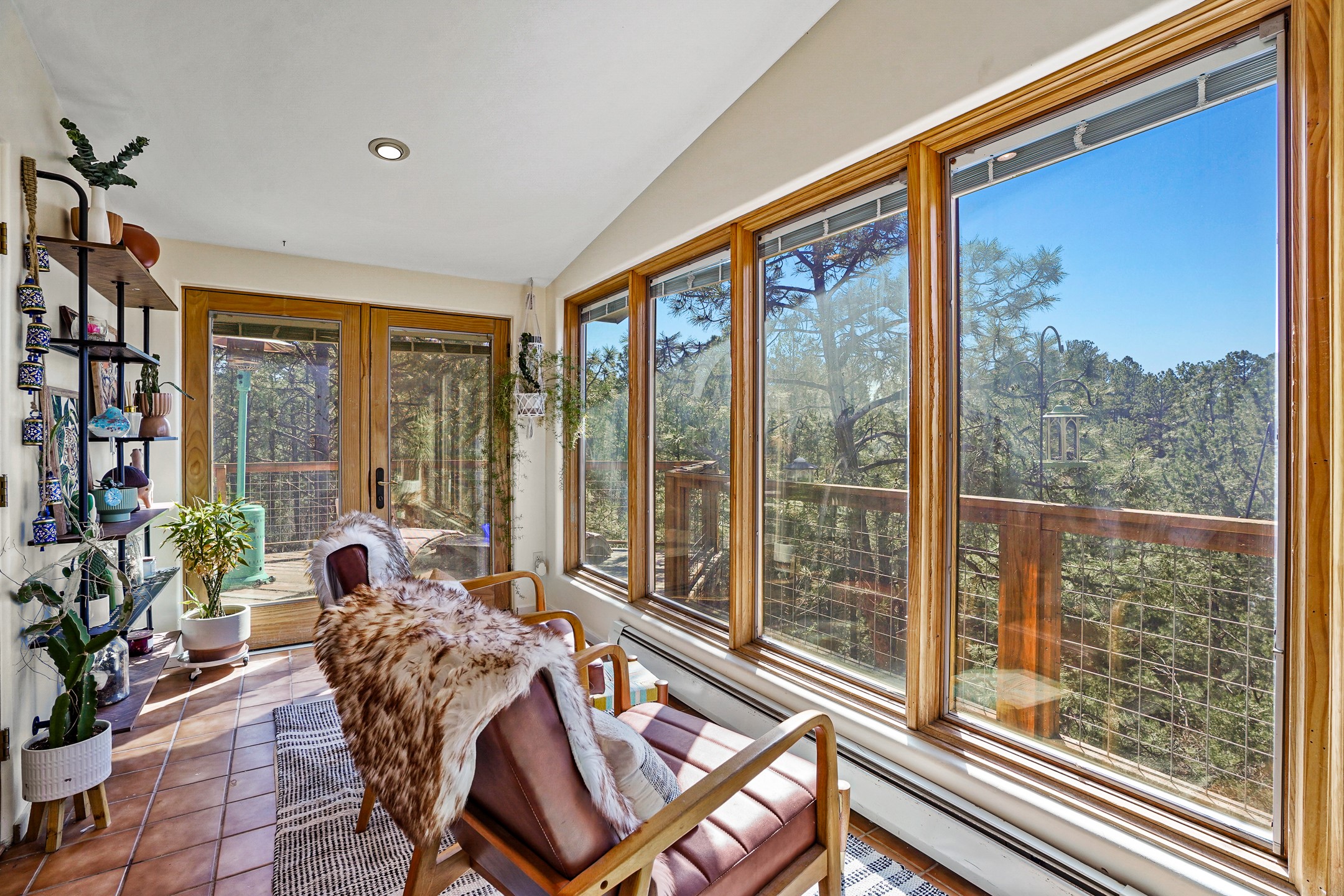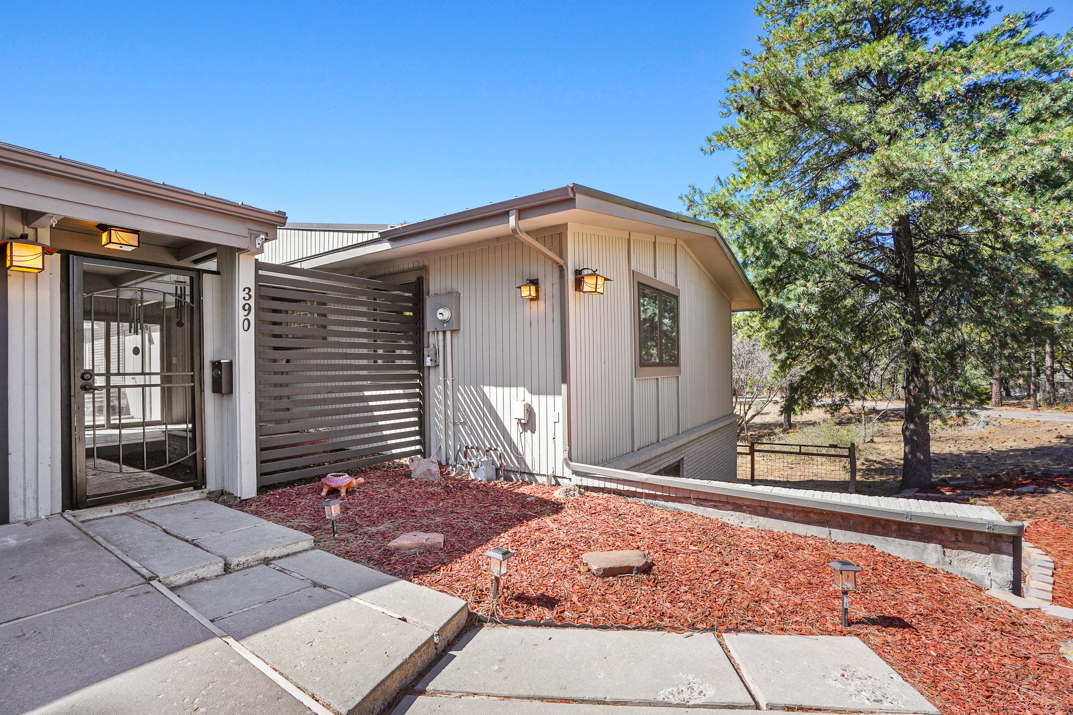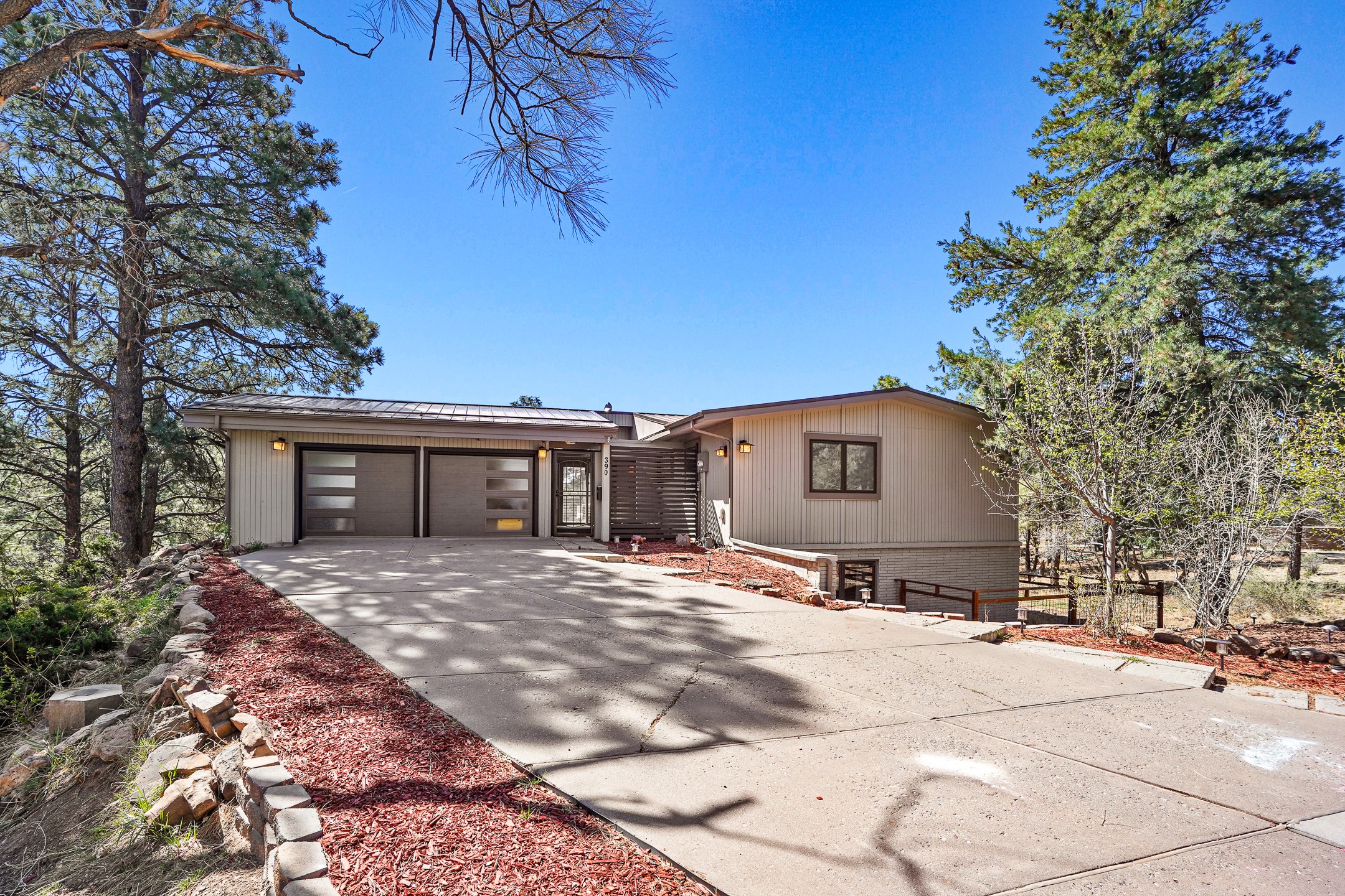 Finally, a luxe and updated home in Los Alamos...Is this the best property to hit the market in a long time?? We sure think so!! Properties of this location, size and quality are extremely rare in Los Alamos. Modern Southwest style blends seamlessly with classic 50's design in this turnkey home! In a premium location on Barranca Mesa, you'll feel as though you're in a world of your own, while only being a short drive to LANL. Easily throw off the work day as you walk in through the gated courtyard and are greeted by the bubbling fountain and the colorful hand-hewn front doors. This 4-bedroom, 3-bathroom home is thoughtfully laid out over two levels, with gathering spaces and an open floorplan on the main level, bathed in beautiful natural light and surrounded by views of the canyon. A chef's kitchen with an oversized island, prep sink, and newer high-end appliances will have you entertaining family and friends with your culinary delights. There are so many spaces for quiet conversation in the sunroom, or little moments to be had in the flex spaces throughout the home. Downstairs, you will find the bedroom suites and a den with a cozy fireplace for curling up with a good book or your favorite Netflix series. With plenty of additional rooms, you can easily create an office, a dream closet, or a kids' playroom! Outside you'll find space to relax or grill out on the sundeck, room for gardening, and the scent of many pine trees that surround you and keep you cool in summer. Additional bonuses are an attached studio space downstairs that is currently employed as a gym/man cave, and a 2-car garage for all of your storage and vehicle needs. This home is the complete package! Move-in ready just for you, don't miss this once-in-a-lifetime opportunity!