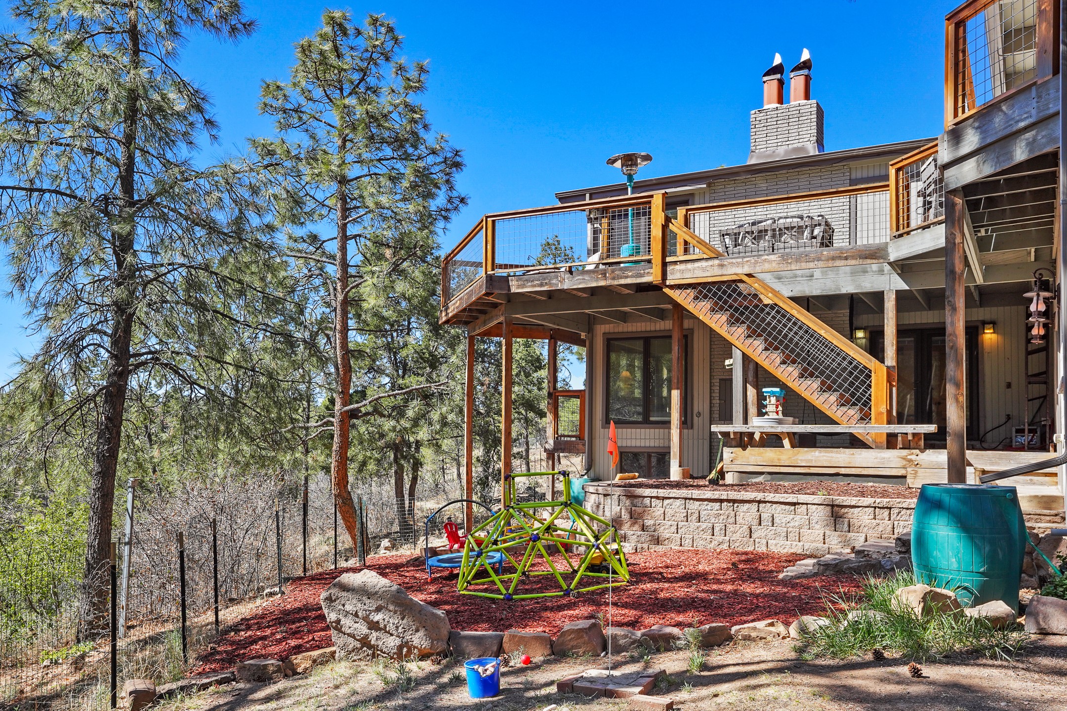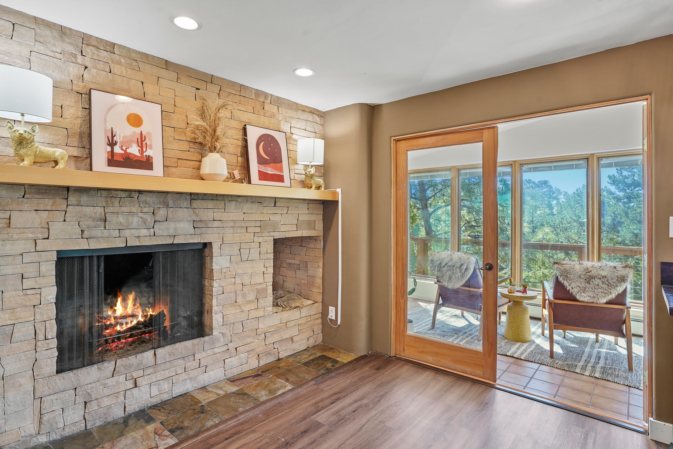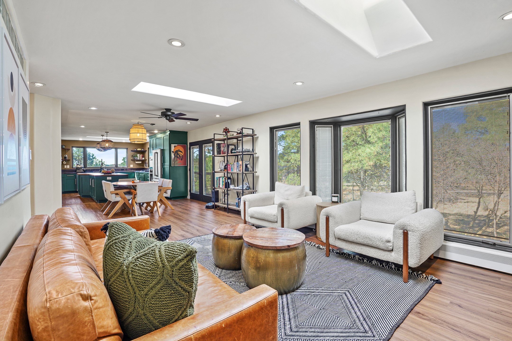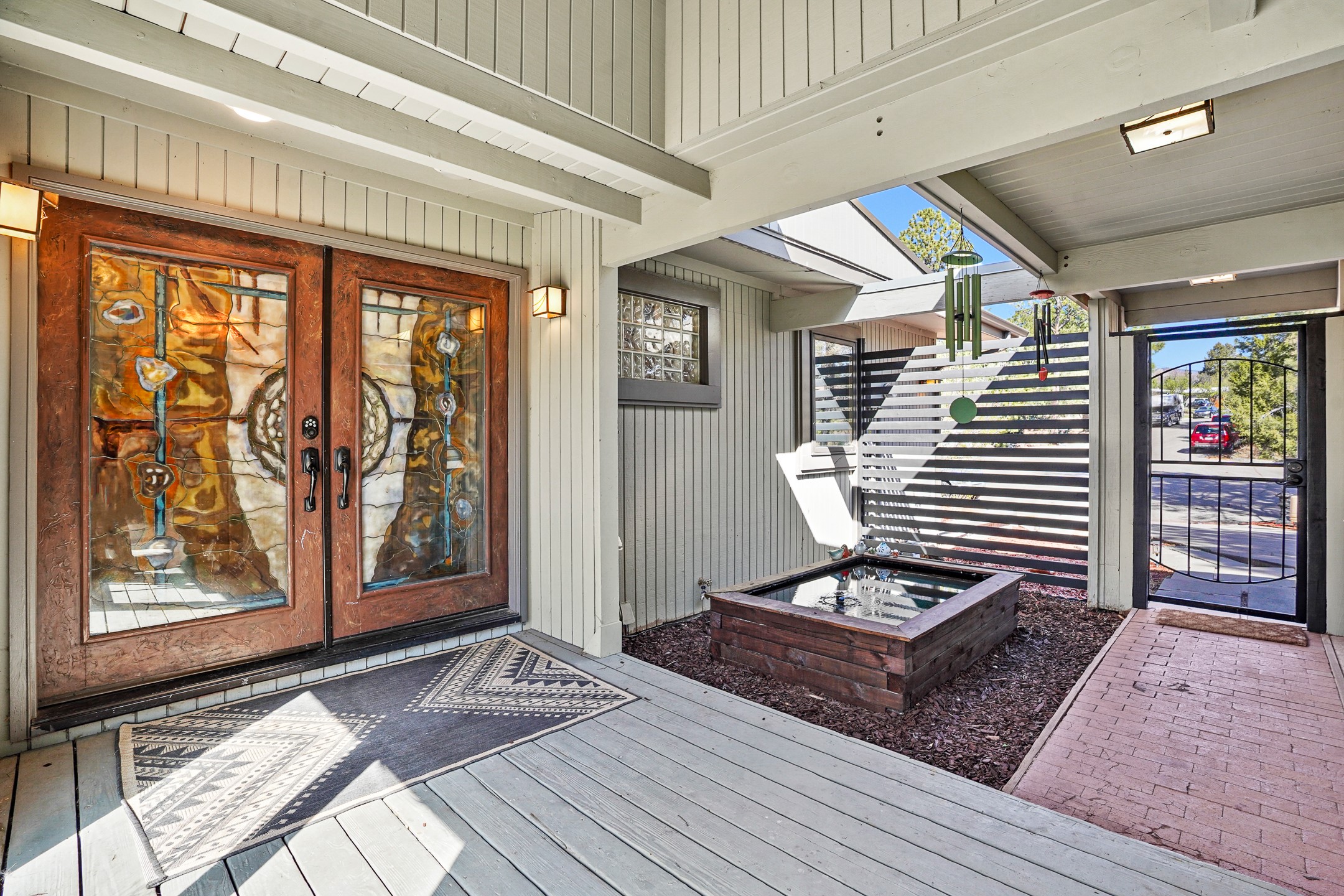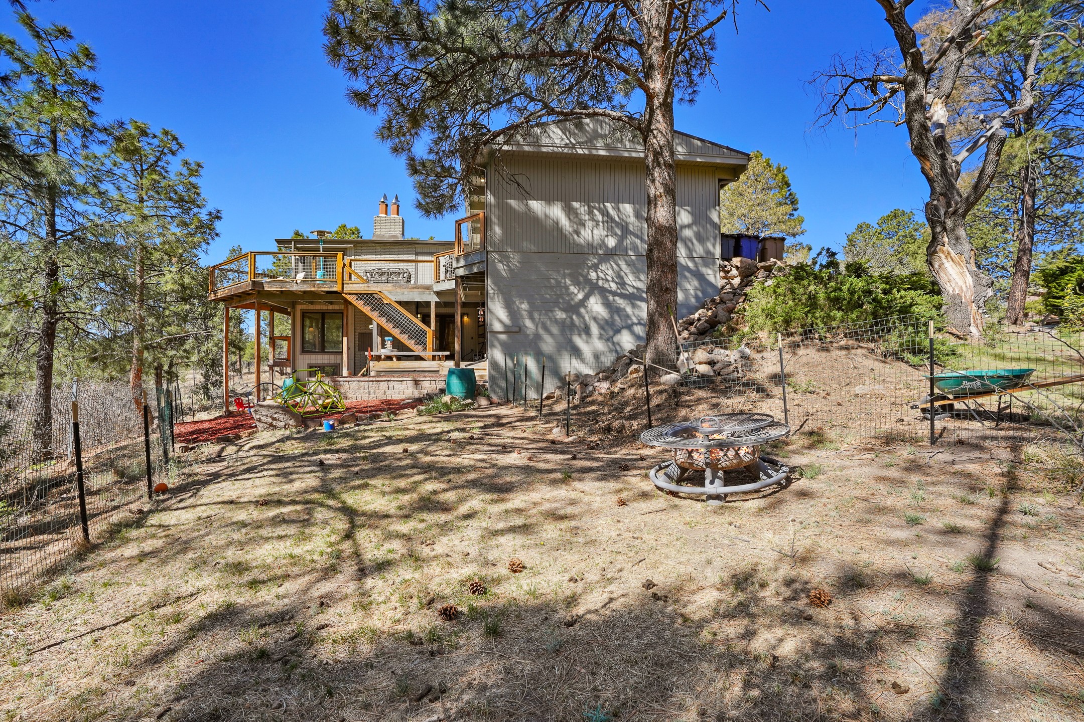 Finally, a luxe and updated home in Los Alamos...Is this the best property to hit the market in a long time?? We sure think so!! Properties of this location, size and quality are extremely rare in Los Alamos. Modern Southwest style blends seamlessly with classic 50's design in this turnkey home! In a premium location on Barranca Mesa, you'll feel as though you're in a world of your own, while only being a short drive to LANL. Easily throw off the work day as you walk in through the gated courtyard and are greeted by the bubbling fountain and the colorful hand-hewn front doors. This 4-bedroom, 3-bathroom home is thoughtfully laid out over two levels, with gathering spaces and an open floorplan on the main level, bathed in beautiful natural light and surrounded by views of the canyon. A chef's kitchen with an oversized island, prep sink, and newer high-end appliances will have you entertaining family and friends with your culinary delights. There are so many spaces for quiet conversation in the sunroom, or little moments to be had in the flex spaces throughout the home. Downstairs, you will find the bedroom suites and a den with a cozy fireplace for curling up with a good book or your favorite Netflix series. With plenty of additional rooms, you can easily create an office, a dream closet, or a kids' playroom! Outside you'll find space to relax or grill out on the sundeck, room for gardening, and the scent of many pine trees that surround you and keep you cool in summer. Additional bonuses are an attached studio space downstairs that is currently employed as a gym/man cave, and a 2-car garage for all of your storage and vehicle needs. This home is the complete package! Move-in ready just for you, don't miss this once-in-a-lifetime opportunity!