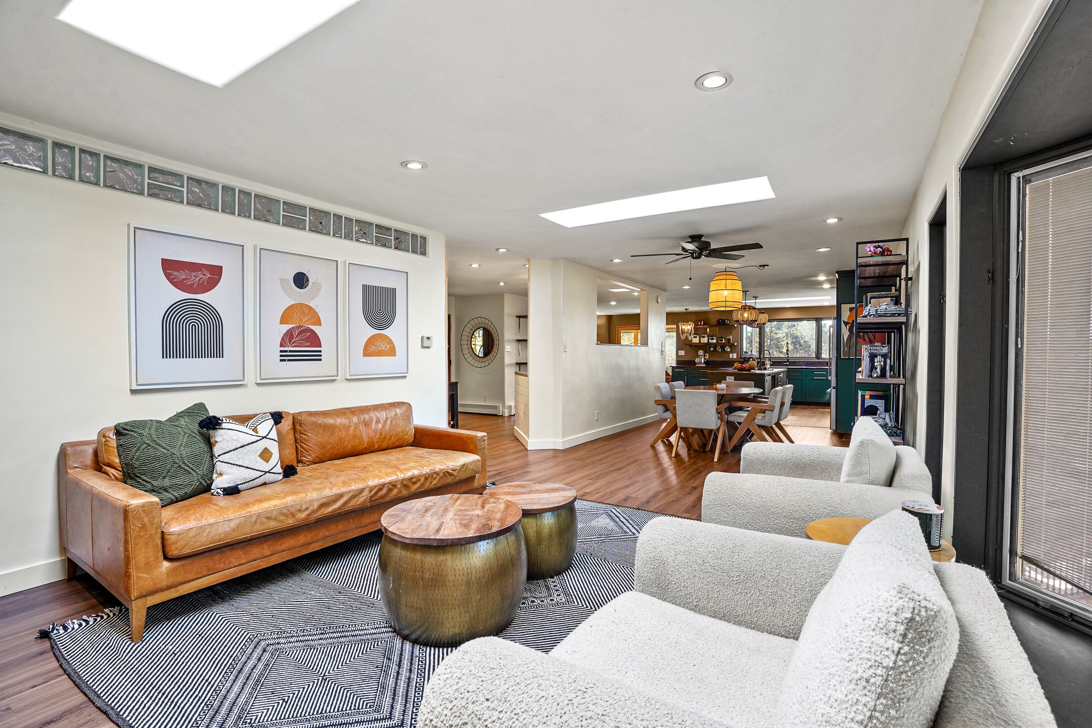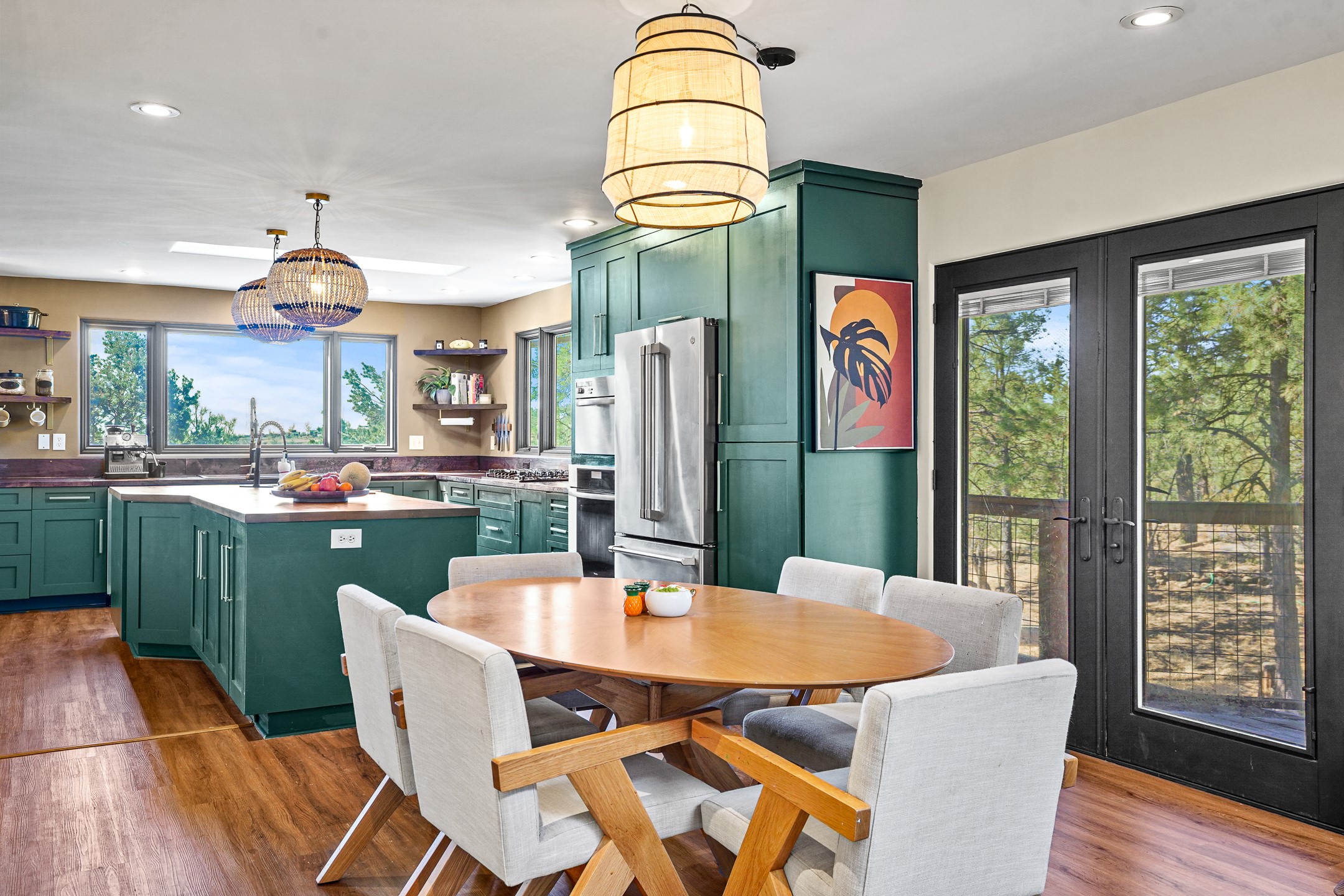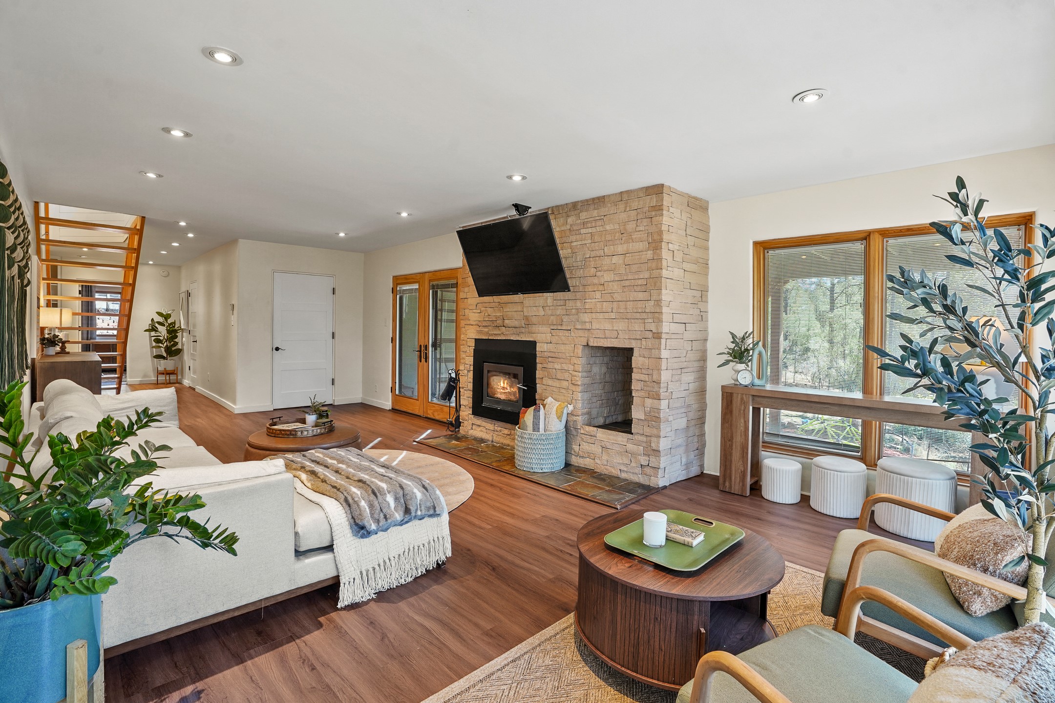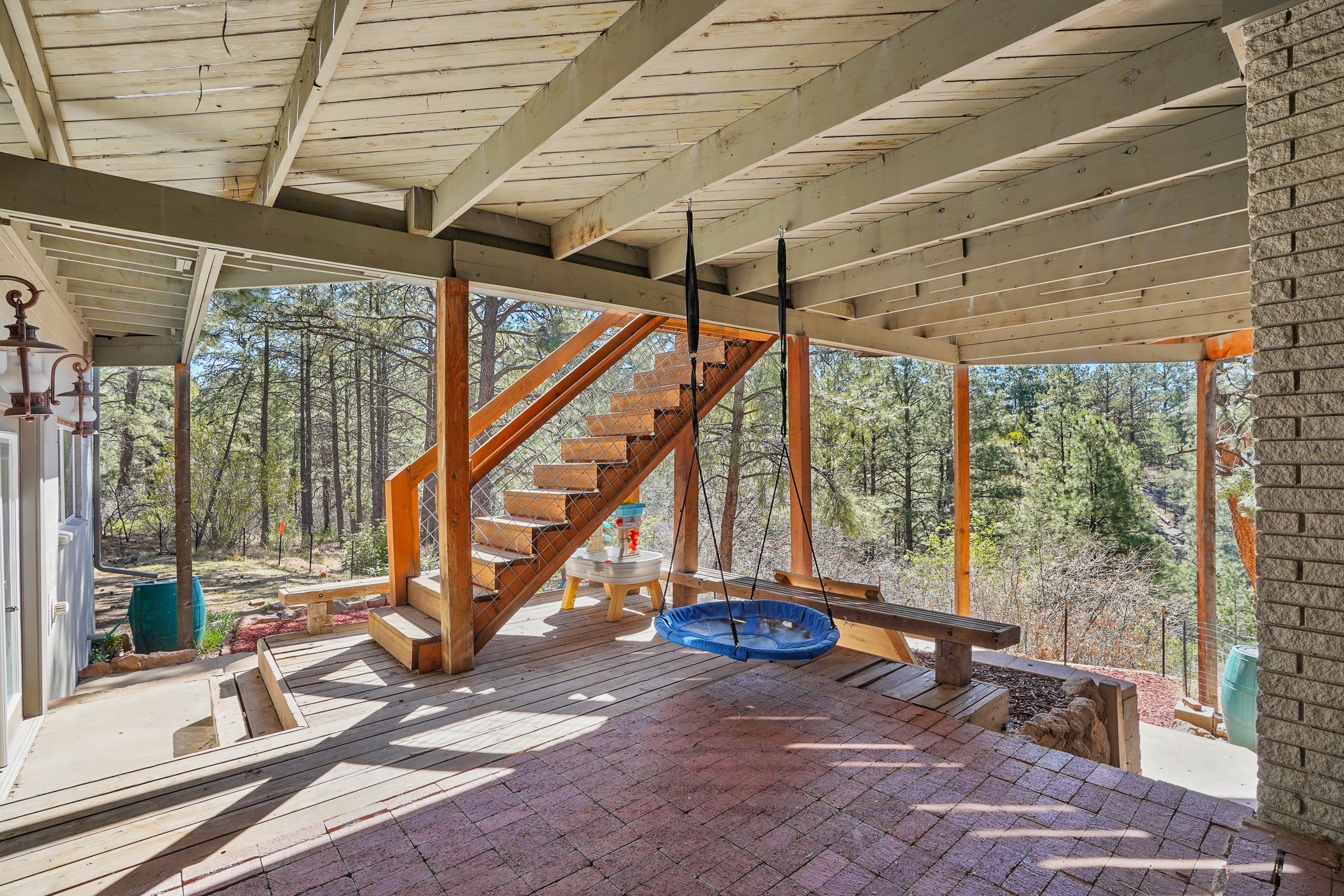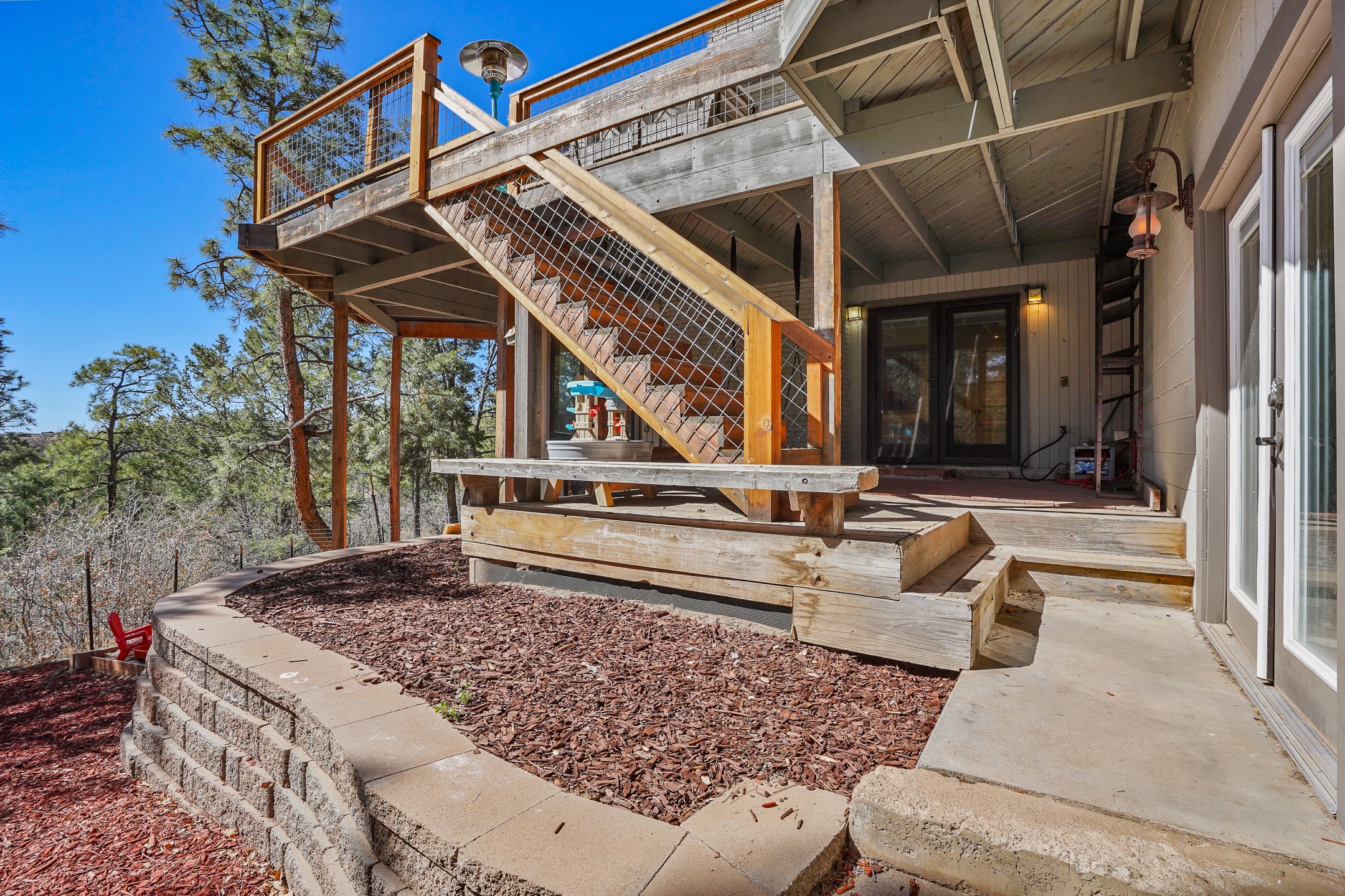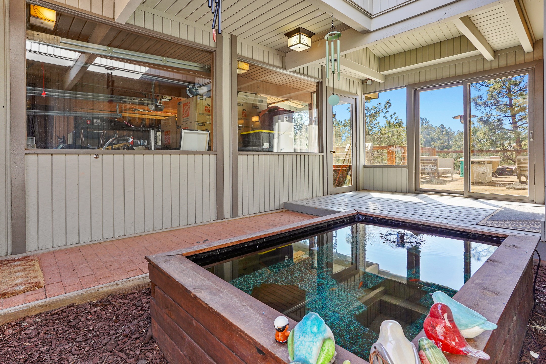 Finally, a luxe and updated home in Los Alamos...Is this the best property to hit the market in a long time?? We sure think so!! Properties of this location, size and quality are extremely rare in Los Alamos. Modern Southwest style blends seamlessly with classic 50's design in this turnkey home! In a premium location on Barranca Mesa, you'll feel as though you're in a world of your own, while only being a short drive to LANL. Easily throw off the work day as you walk in through the gated courtyard and are greeted by the bubbling fountain and the colorful hand-hewn front doors. This 4-bedroom, 3-bathroom home is thoughtfully laid out over two levels, with gathering spaces and an open floorplan on the main level, bathed in beautiful natural light and surrounded by views of the canyon. A chef's kitchen with an oversized island, prep sink, and newer high-end appliances will have you entertaining family and friends with your culinary delights. There are so many spaces for quiet conversation in the sunroom, or little moments to be had in the flex spaces throughout the home. Downstairs, you will find the bedroom suites and a den with a cozy fireplace for curling up with a good book or your favorite Netflix series. With plenty of additional rooms, you can easily create an office, a dream closet, or a kids' playroom! Outside you'll find space to relax or grill out on the sundeck, room for gardening, and the scent of many pine trees that surround you and keep you cool in summer. Additional bonuses are an attached studio space downstairs that is currently employed as a gym/man cave, and a 2-car garage for all of your storage and vehicle needs. This home is the complete package! Move-in ready just for you, don't miss this once-in-a-lifetime opportunity!