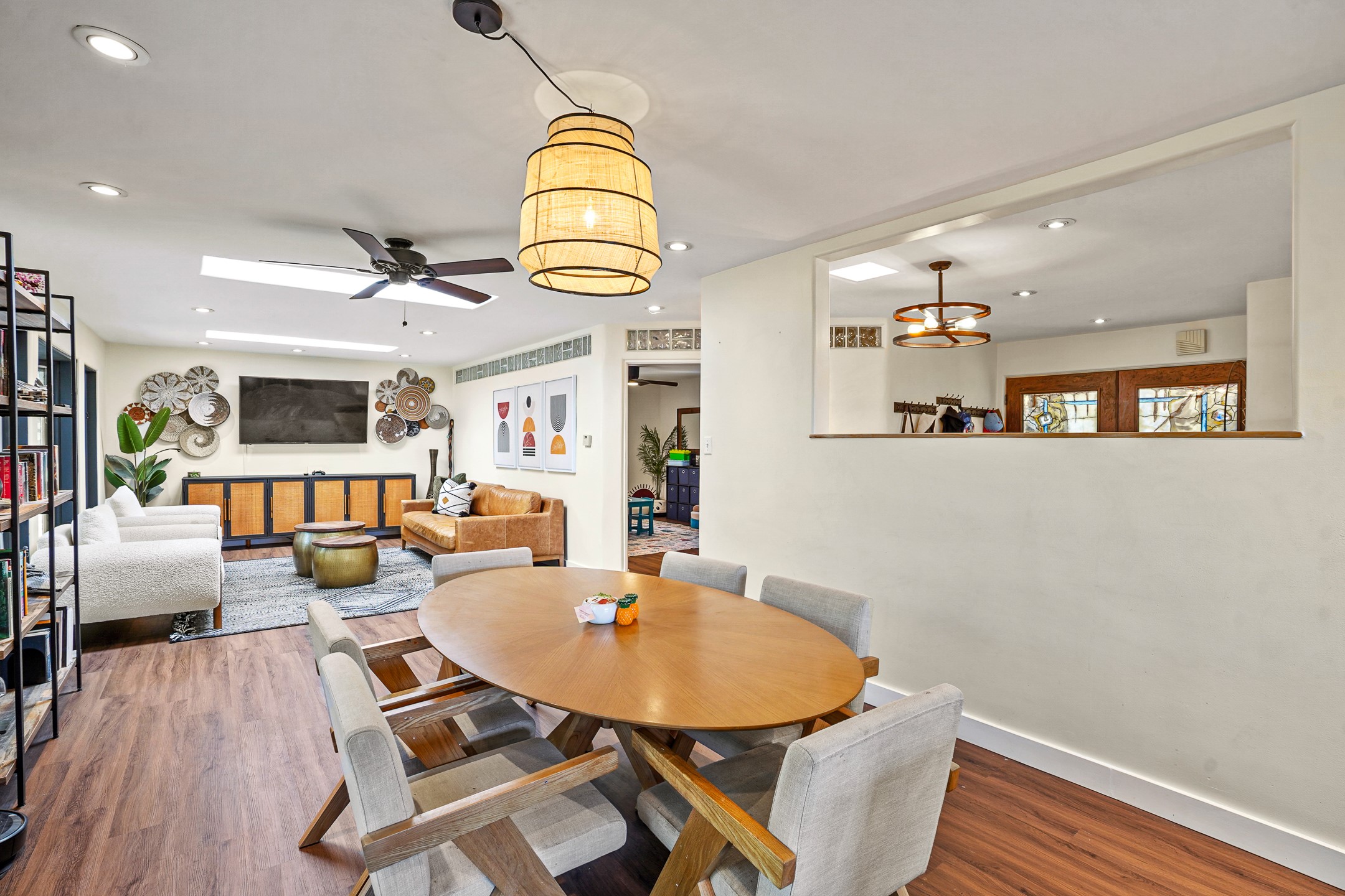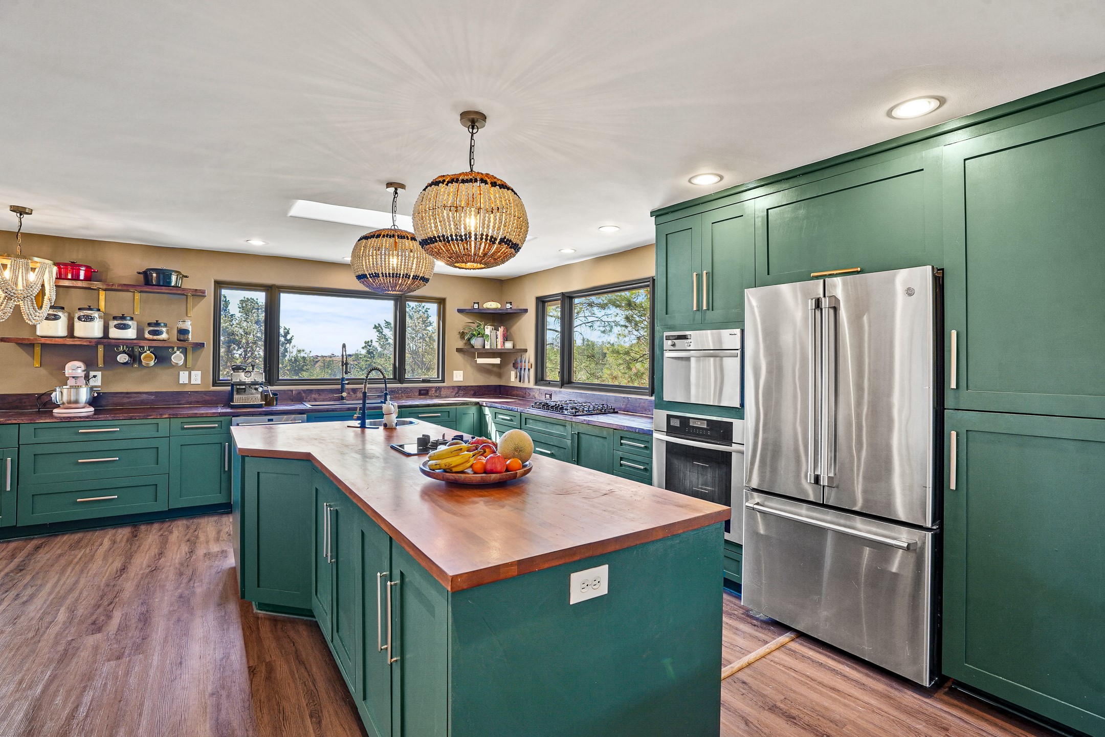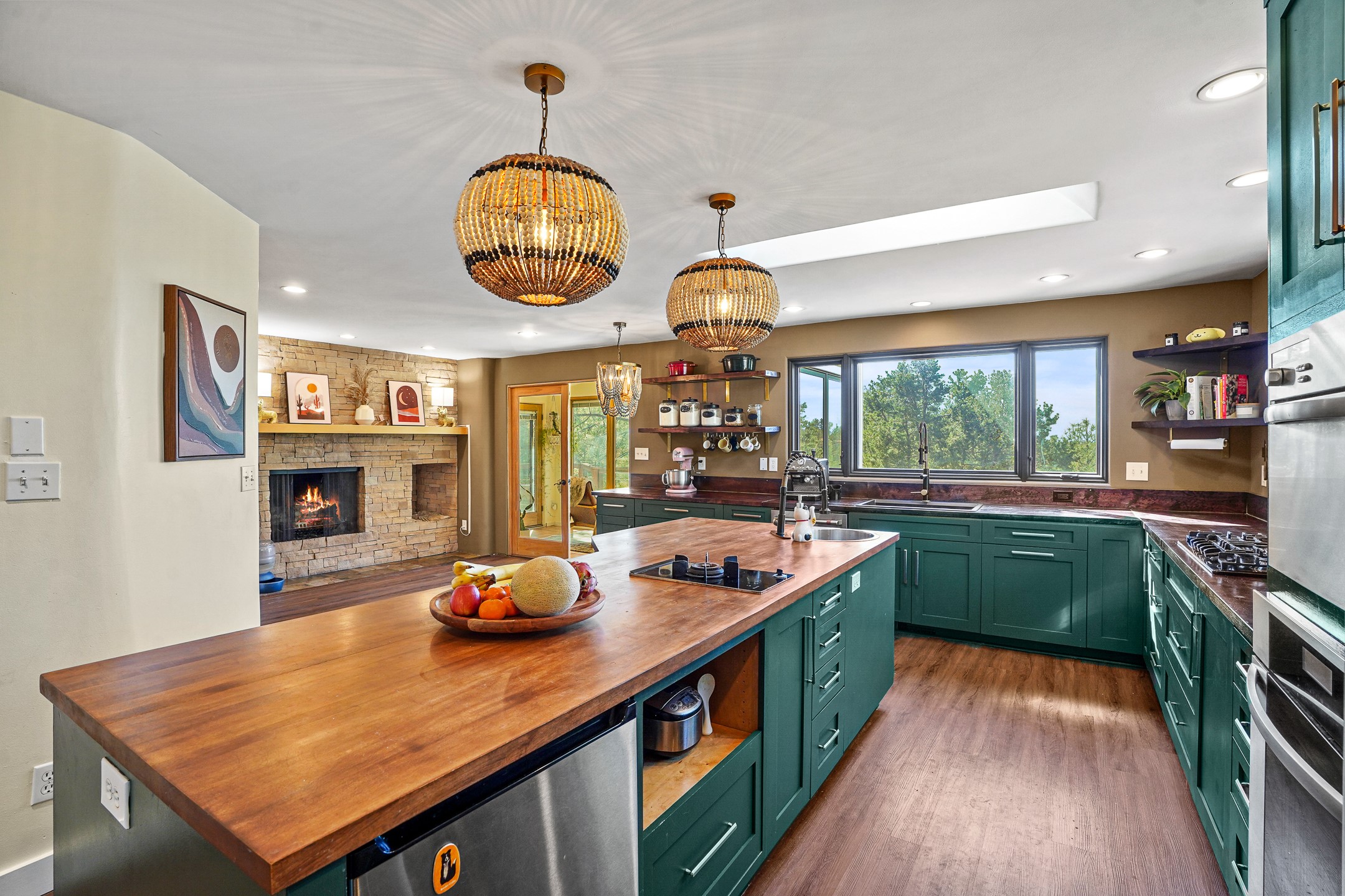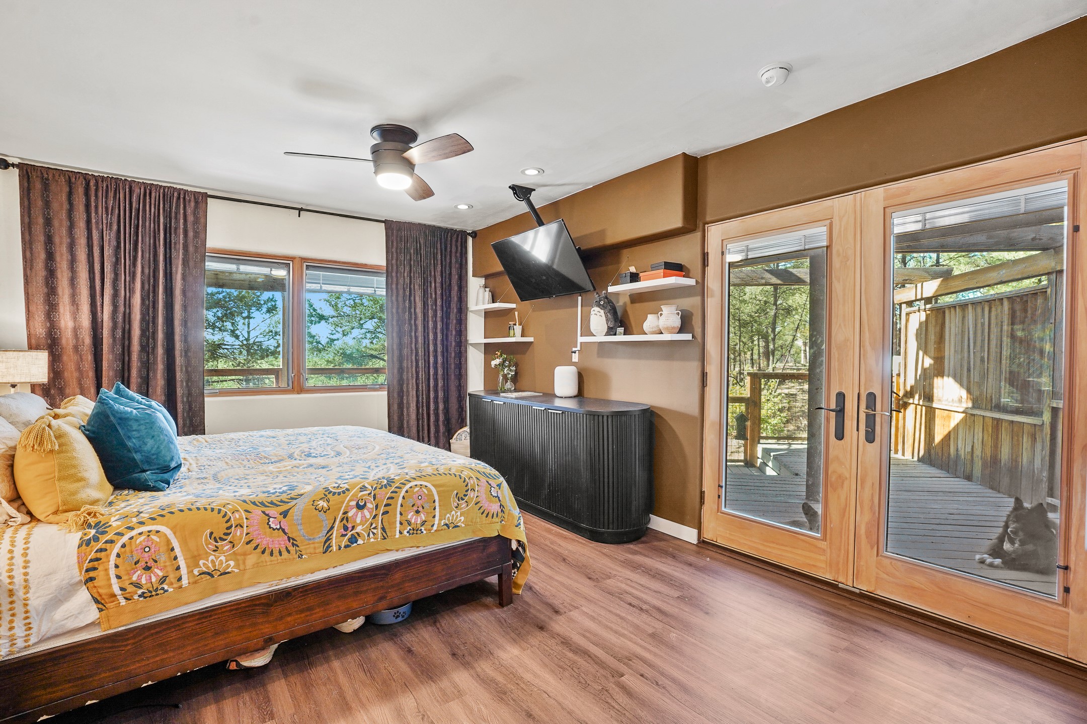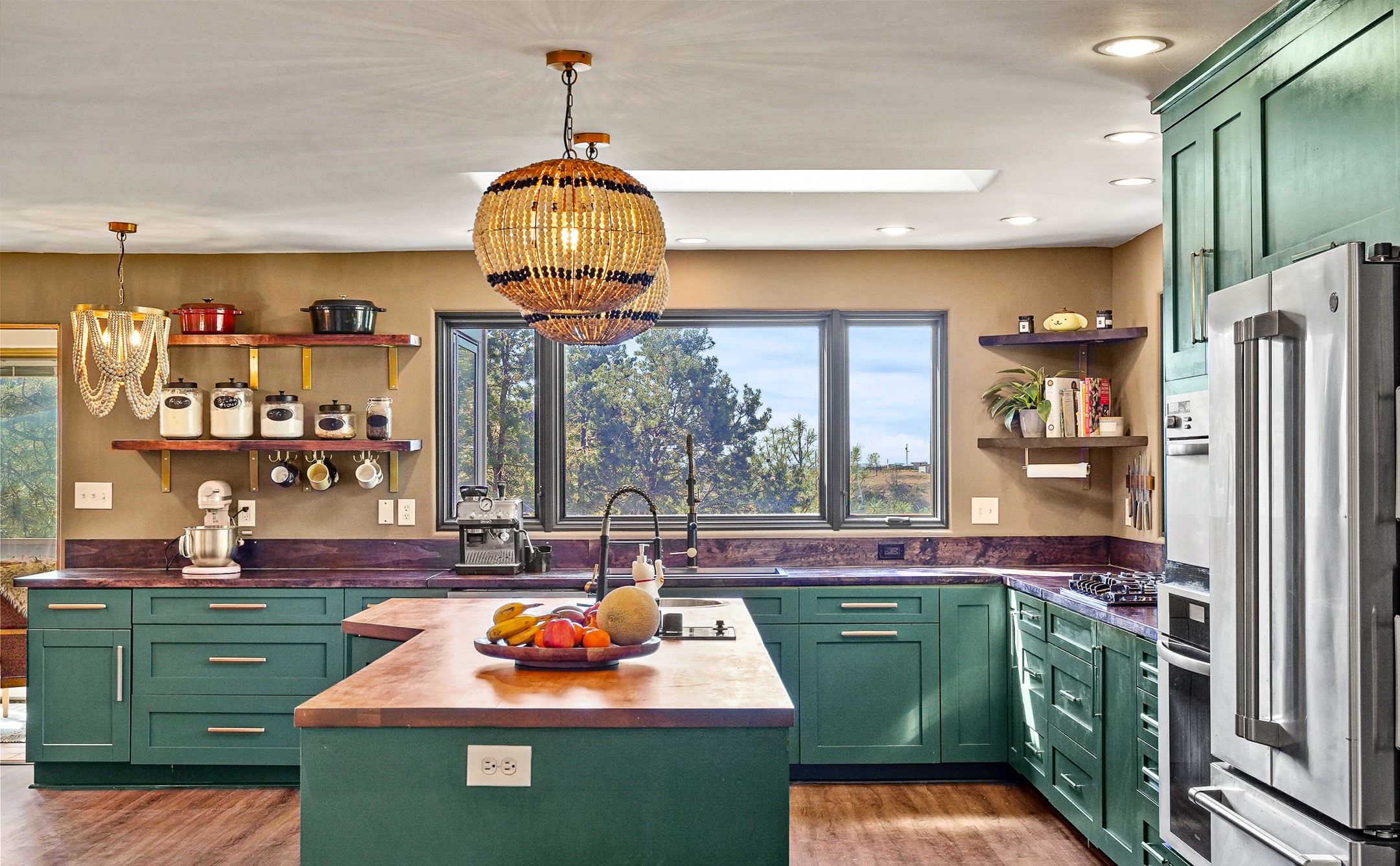 Finally, a luxe and updated home in Los Alamos...Is this the best property to hit the market in a long time?? We sure think so!! Properties of this location, size and quality are extremely rare in Los Alamos. Modern Southwest style blends seamlessly with classic 50's design in this turnkey home! In a premium location on Barranca Mesa, you'll feel as though you're in a world of your own, while only being a short drive to LANL. Easily throw off the work day as you walk in through the gated courtyard and are greeted by the bubbling fountain and the colorful hand-hewn front doors. This 4-bedroom, 3-bathroom home is thoughtfully laid out over two levels, with gathering spaces and an open floorplan on the main level, bathed in beautiful natural light and surrounded by views of the canyon. A chef's kitchen with an oversized island, prep sink, and newer high-end appliances will have you entertaining family and friends with your culinary delights. There are so many spaces for quiet conversation in the sunroom, or little moments to be had in the flex spaces throughout the home. Downstairs, you will find the bedroom suites and a den with a cozy fireplace for curling up with a good book or your favorite Netflix series. With plenty of additional rooms, you can easily create an office, a dream closet, or a kids' playroom! Outside you'll find space to relax or grill out on the sundeck, room for gardening, and the scent of many pine trees that surround you and keep you cool in summer. Additional bonuses are an attached studio space downstairs that is currently employed as a gym/man cave, and a 2-car garage for all of your storage and vehicle needs. This home is the complete package! Move-in ready just for you, don't miss this once-in-a-lifetime opportunity!