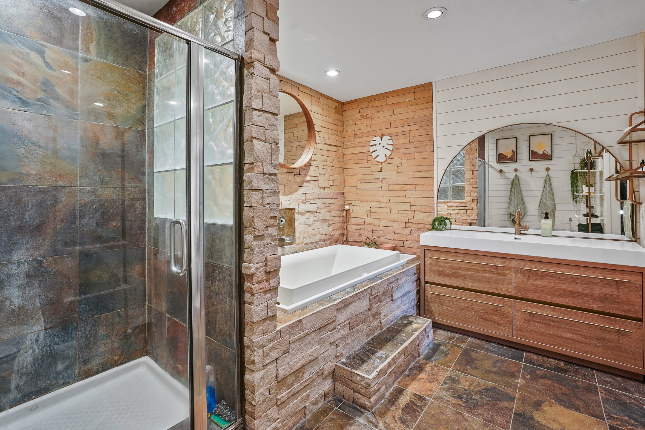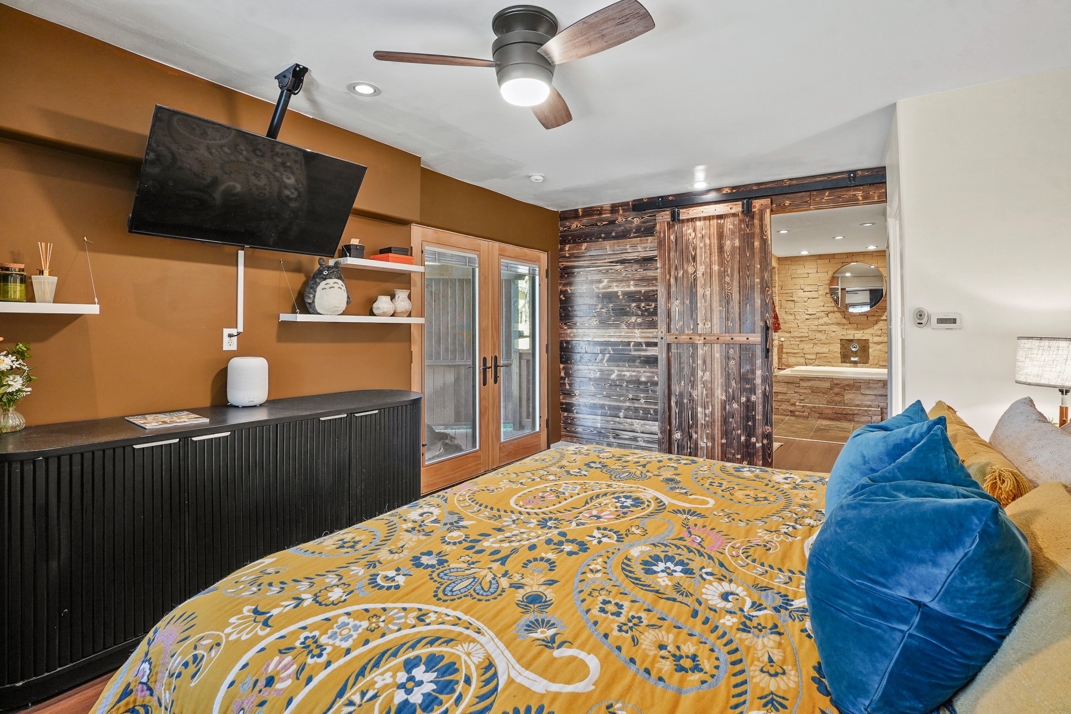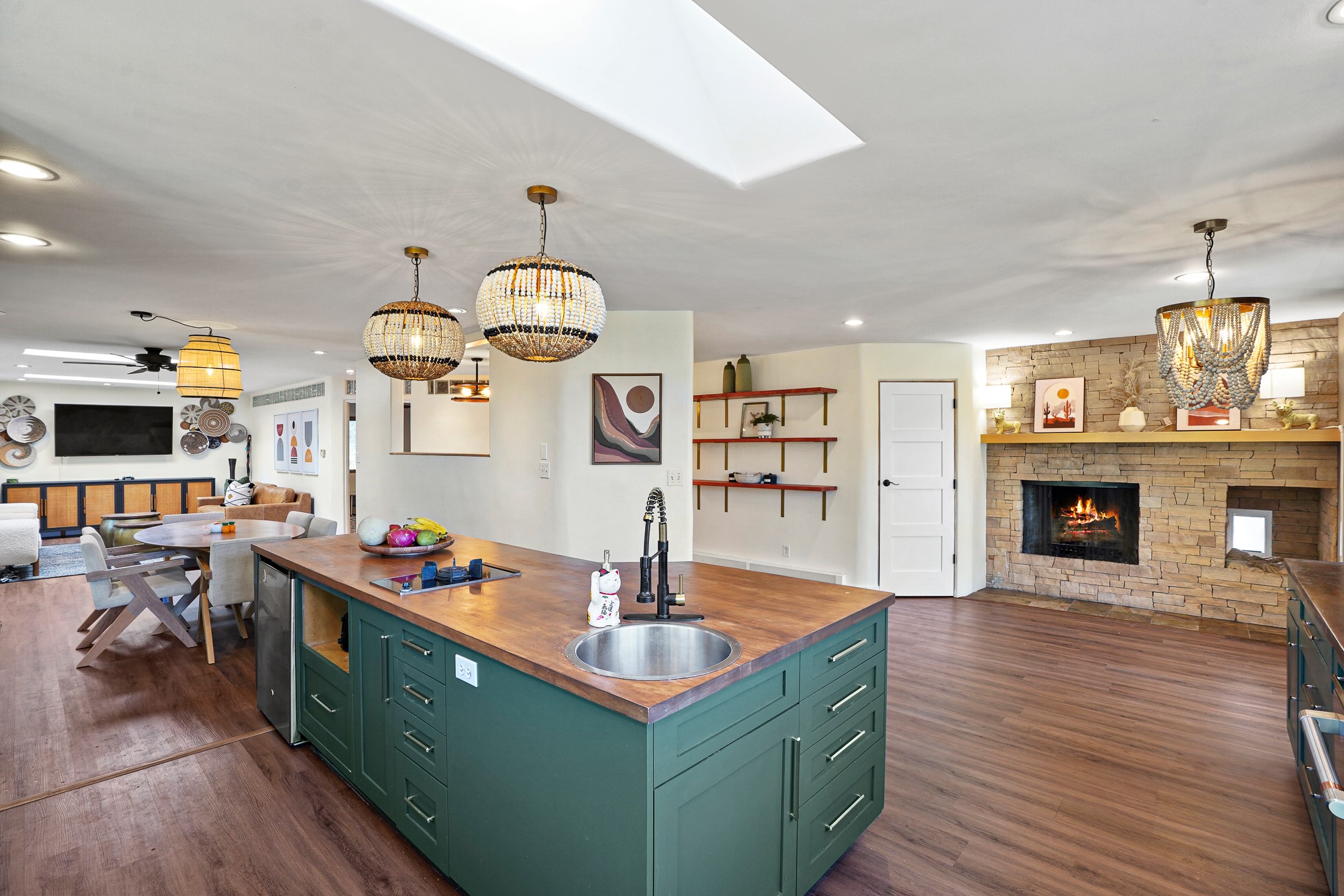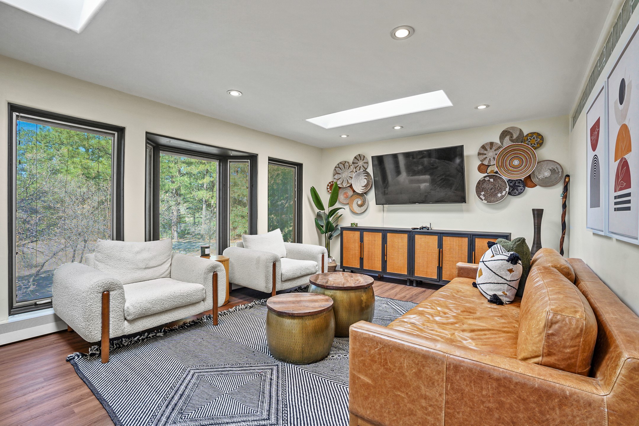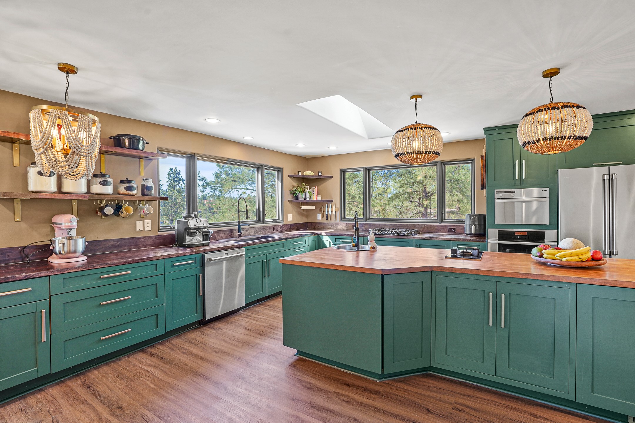 Finally, a luxe and updated home in Los Alamos...Is this the best property to hit the market in a long time?? We sure think so!! Properties of this location, size and quality are extremely rare in Los Alamos. Modern Southwest style blends seamlessly with classic 50's design in this turnkey home! In a premium location on Barranca Mesa, you'll feel as though you're in a world of your own, while only being a short drive to LANL. Easily throw off the work day as you walk in through the gated courtyard and are greeted by the bubbling fountain and the colorful hand-hewn front doors. This 4-bedroom, 3-bathroom home is thoughtfully laid out over two levels, with gathering spaces and an open floorplan on the main level, bathed in beautiful natural light and surrounded by views of the canyon. A chef's kitchen with an oversized island, prep sink, and newer high-end appliances will have you entertaining family and friends with your culinary delights. There are so many spaces for quiet conversation in the sunroom, or little moments to be had in the flex spaces throughout the home. Downstairs, you will find the bedroom suites and a den with a cozy fireplace for curling up with a good book or your favorite Netflix series. With plenty of additional rooms, you can easily create an office, a dream closet, or a kids' playroom! Outside you'll find space to relax or grill out on the sundeck, room for gardening, and the scent of many pine trees that surround you and keep you cool in summer. Additional bonuses are an attached studio space downstairs that is currently employed as a gym/man cave, and a 2-car garage for all of your storage and vehicle needs. This home is the complete package! Move-in ready just for you, don't miss this once-in-a-lifetime opportunity!