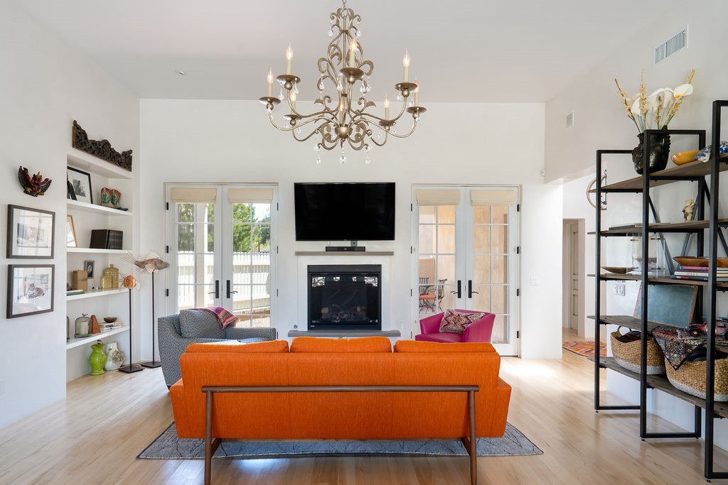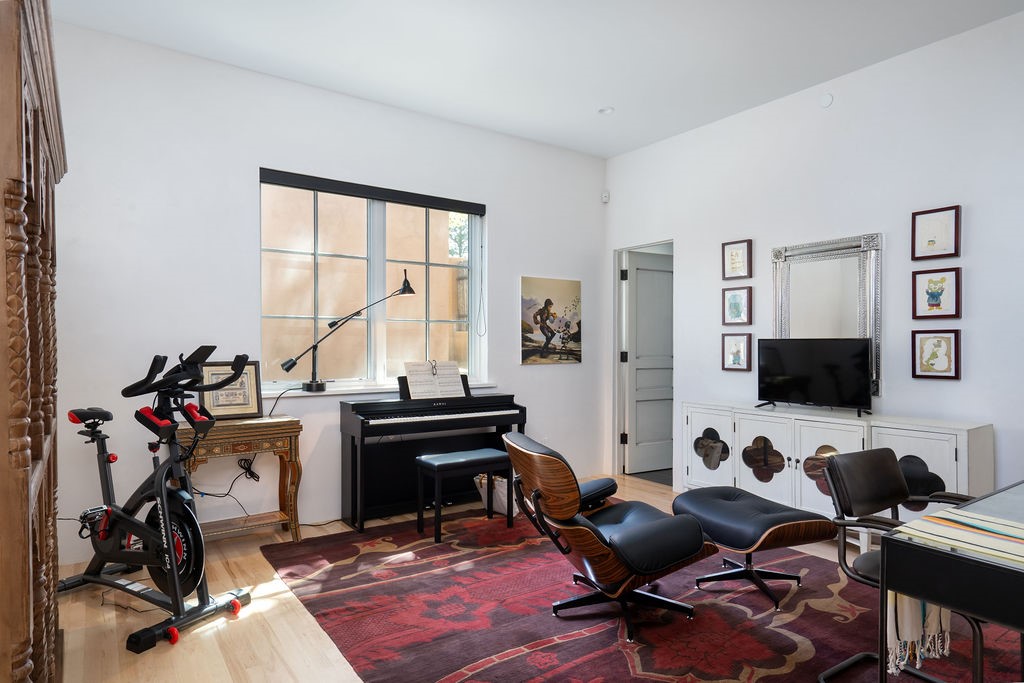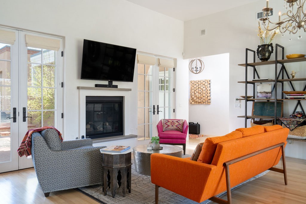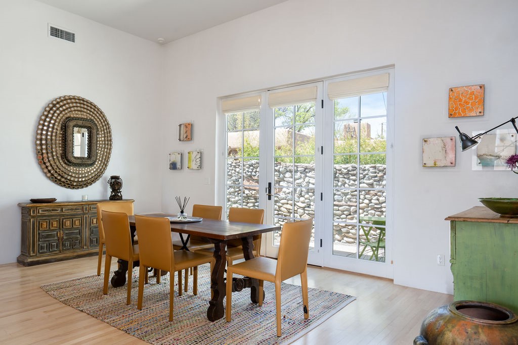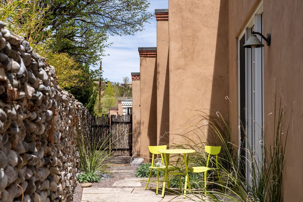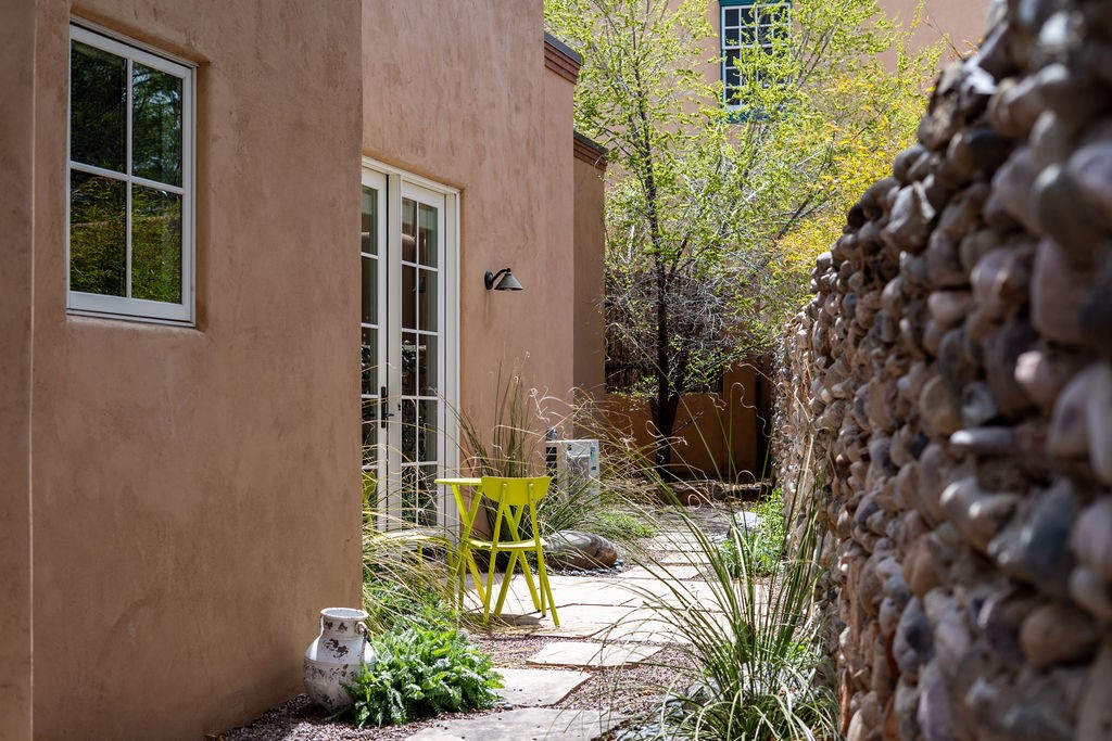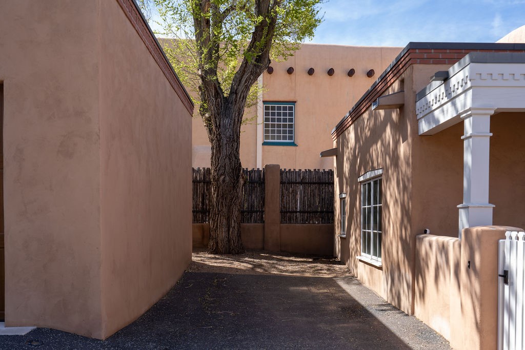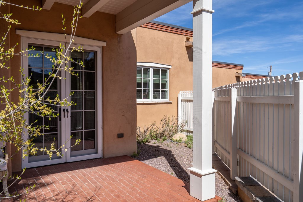 Tucked away in the Manderfield enclave at the top of Canyon Road, this rare, detached condominium offers the privacy of a single-family home located in one of Santa Fe's most coveted neighborhoods.Built by Prull Custom Homes, this home is designed with a timeless blend of comfort and style. The expansive living and dining area features soaring ceilings, wood floors, smooth Venetian plaster walls, and abundant natural light. A fireplace and French doors add warmth and elegance, while seamlessly connecting indoor and outdoor living. The kitchen will satisfy any chef, with beautiful cabinetry, upgraded appliances and an island.The primary suite is a private retreat with its own portal access, a generous walk-in closet, and a luxurious en-suite bath. The second bedroom also has an ensuite bath. There is an oversized powder room for guests. Both the living room and primary suite open to a peaceful, private outdoor space--perfect for a quiet morning coffee or evening unwind. The front portal, partially covered, offers enough space for an outdoor dining table, ideal for entertaining with a view.Additional highlights include an oversized one-car garage with direct entry, in floor radiant heat and forced air with a heat recovery ventilator. There is a mini split system in the living areas and primary bedroom for cooling when needed. This is Santa Fe living at its most refined--serene, stylish, and steeped in Eastside charm.