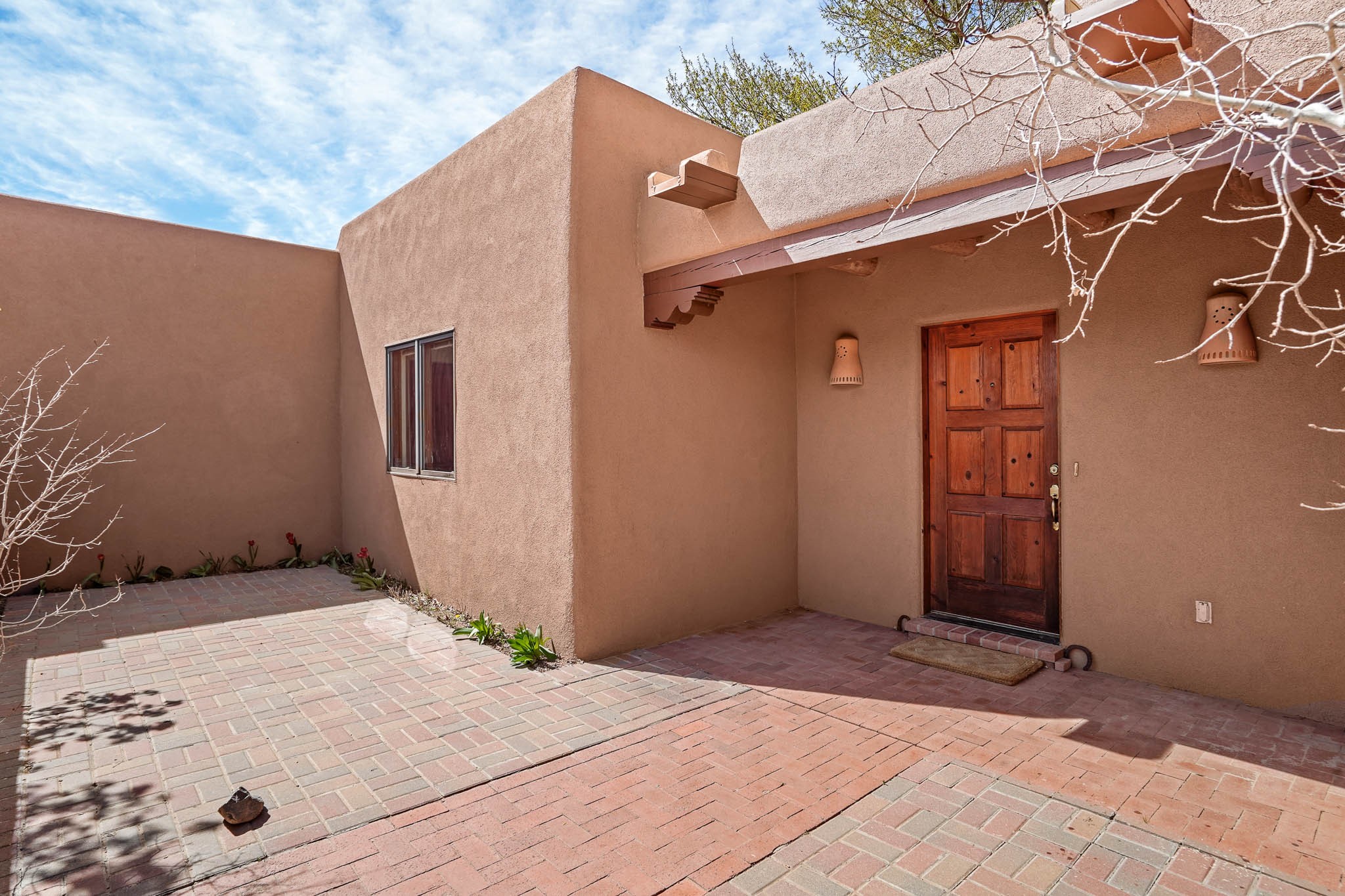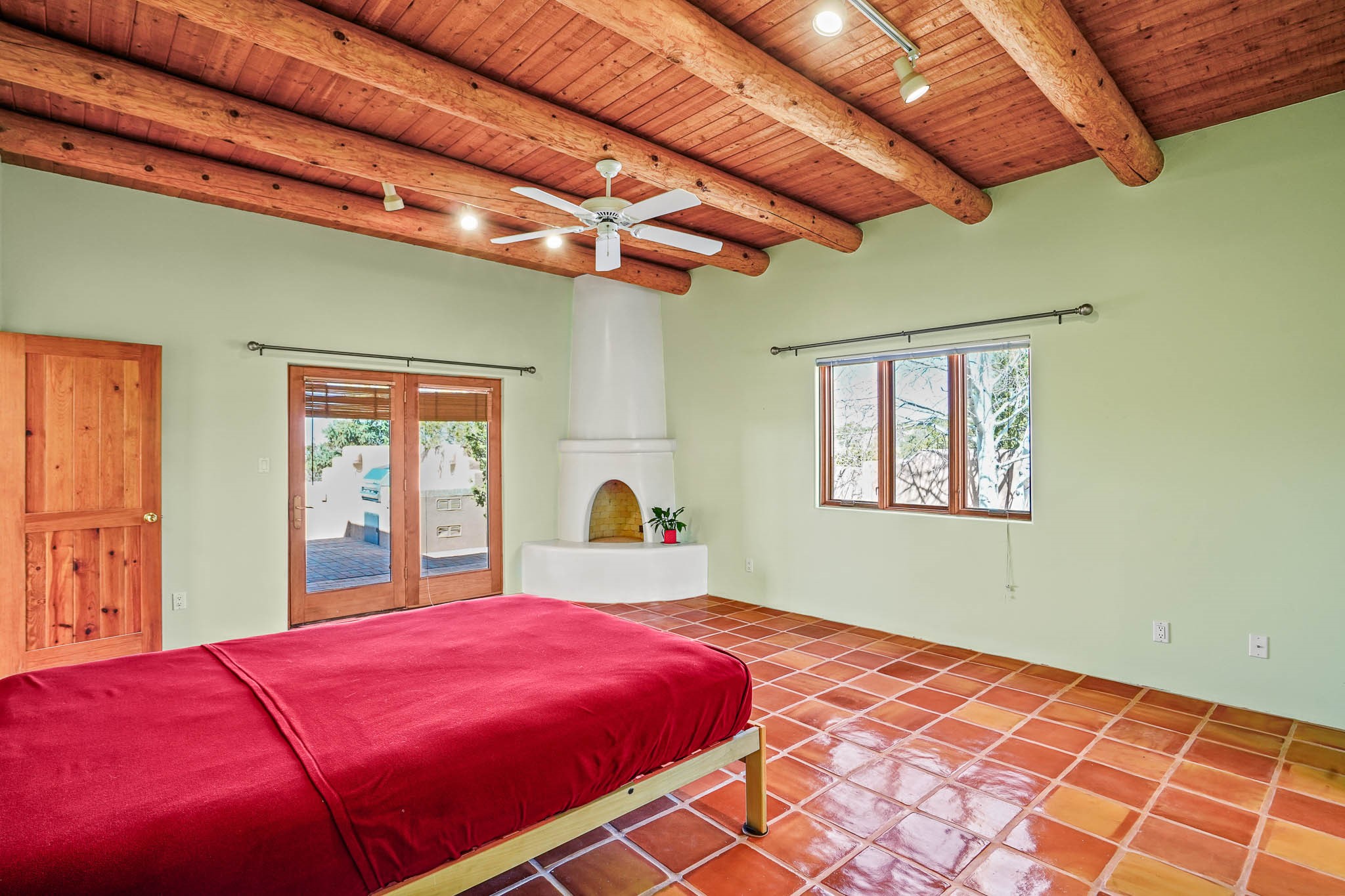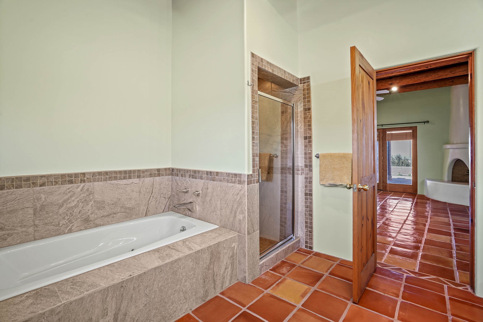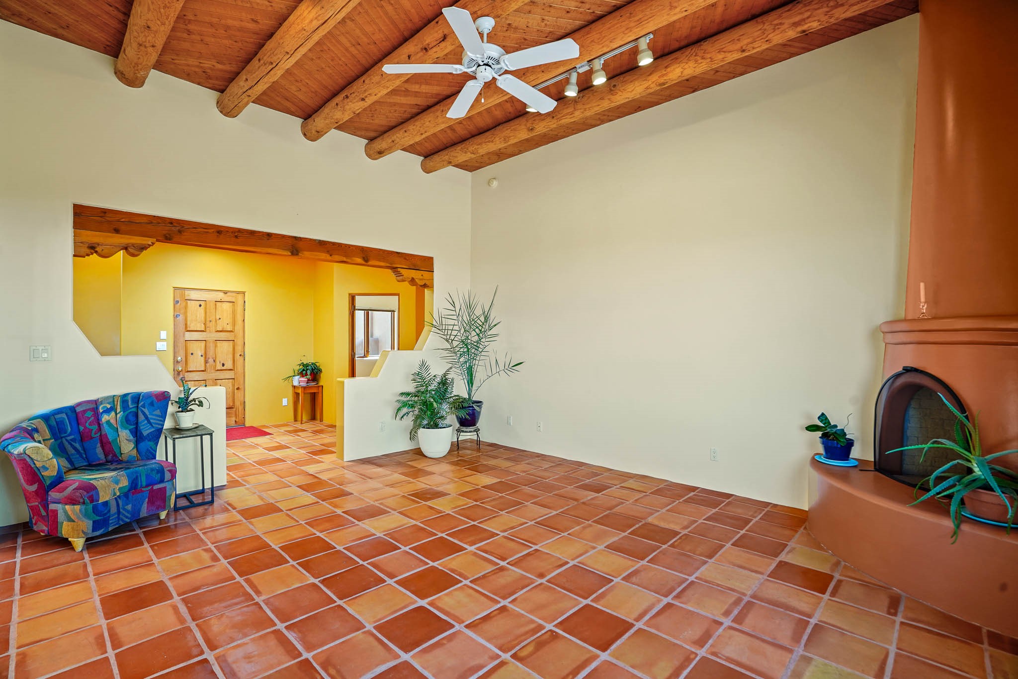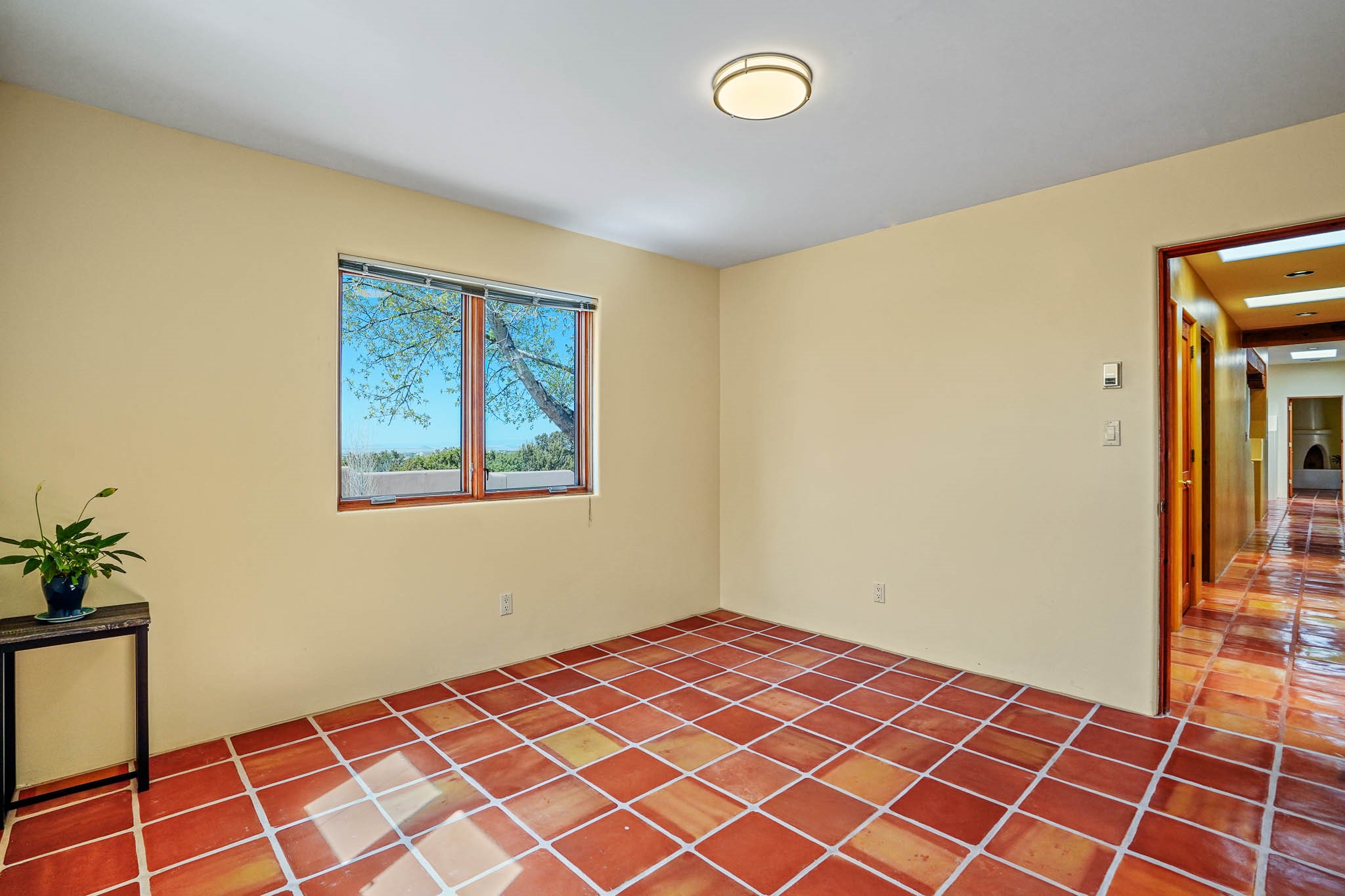 Enjoy breathtaking southwestern mountain views of the Ortiz, Sandia, and the Cerrillos Hills, plus valley views with fabulous sunsets from this classic Santa Fe home on 2.77 acres. The light-filled living area boasts high viga ceilings and a kiva fireplace. Featuring Saltillo tile throughout and radiant heat for cozy comfort. Offering bedroom separation plus a versatile fourth bedroom/office option. Relax in the master suite; featuring another kiva fireplace and a full bath with soaking tub. French doors lead to a generous walled yard with multiple block wall flower terraces, a seasonal outdoor kitchen, and low-maintenance landscaping. Benefit from recirculating hot water, a newer hot water heater, a new roof, and new stucco in 2019. A 3-car garage includes a 220V outlet in the 3rd bay. Enjoy the convenience of nearby local amenities including a grocery store, library, senior center, coffee shop, brew pub, trail system, and elementary school. Abundant wildlife adds to the peaceful setting. Call to schedule your showing today!