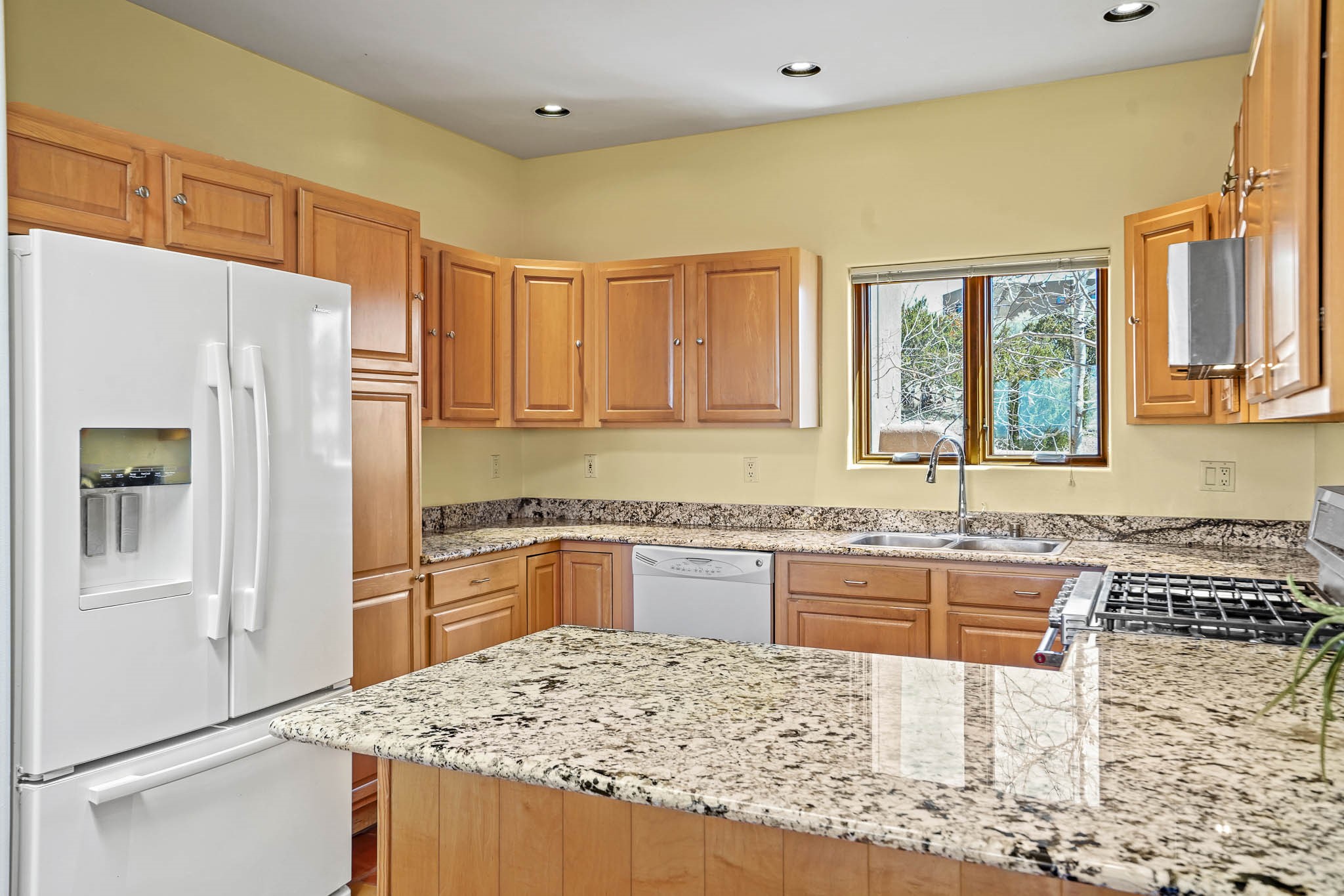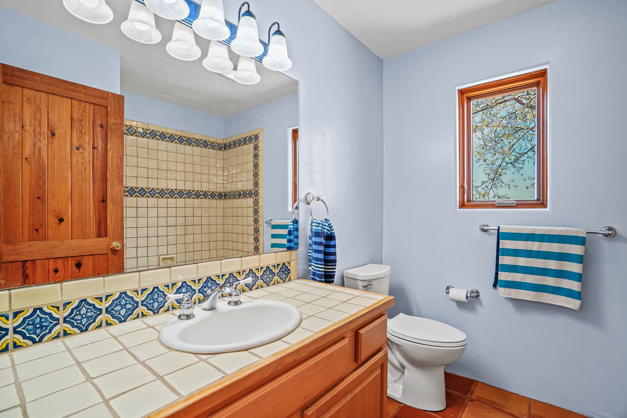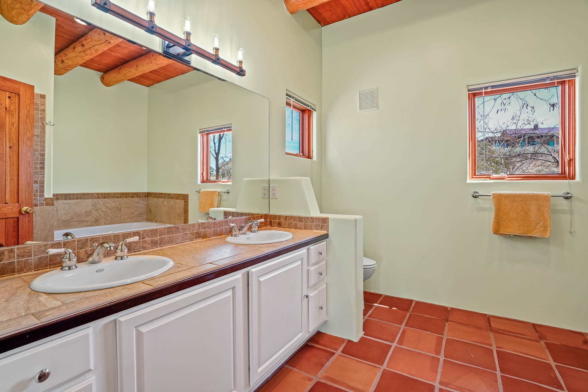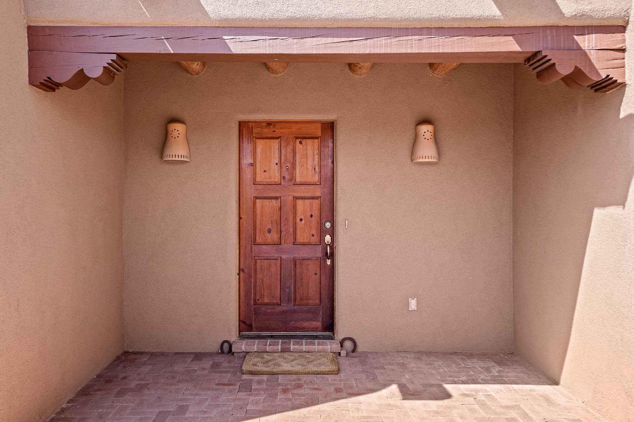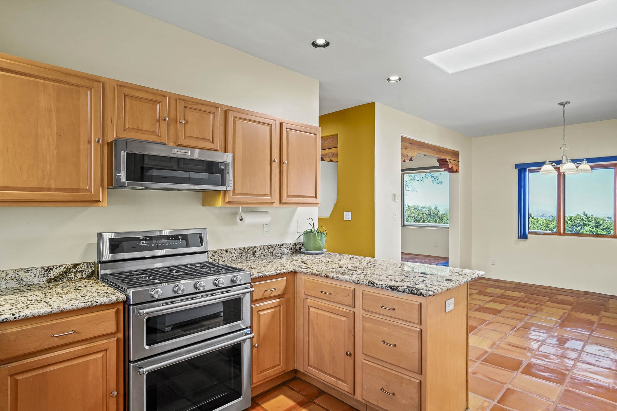 Enjoy breathtaking southwestern mountain views of the Ortiz, Sandia, and the Cerrillos Hills, plus valley views with fabulous sunsets from this classic Santa Fe home on 2.77 acres. The light-filled living area boasts high viga ceilings and a kiva fireplace. Featuring Saltillo tile throughout and radiant heat for cozy comfort. Offering bedroom separation plus a versatile fourth bedroom/office option. Relax in the master suite; featuring another kiva fireplace and a full bath with soaking tub. French doors lead to a generous walled yard with multiple block wall flower terraces, a seasonal outdoor kitchen, and low-maintenance landscaping. Benefit from recirculating hot water, a newer hot water heater, a new roof, and new stucco in 2019. A 3-car garage includes a 220V outlet in the 3rd bay. Enjoy the convenience of nearby local amenities including a grocery store, library, senior center, coffee shop, brew pub, trail system, and elementary school. Abundant wildlife adds to the peaceful setting. Call to schedule your showing today!