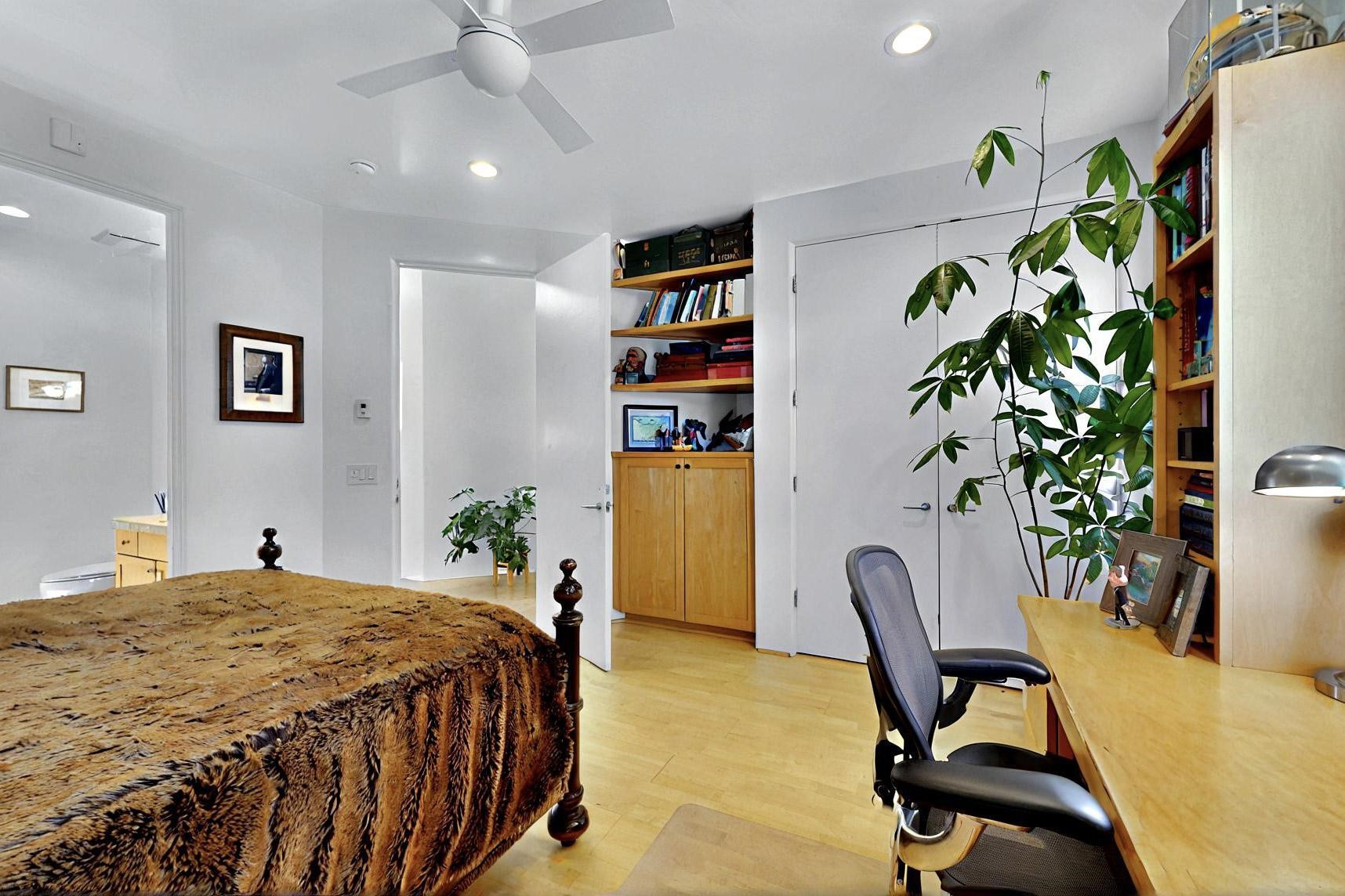 This 4 bedroom, 4 bath home, of which 1 Bedroom and 1 Bath are in an attached guest suite, is perfectly located with proximity to the Las Campanas clubhouse, spa, golf course, and equestrian center. The contemporary style with exposed beams, high ceilings, 4 fireplaces, and open floor plan enhance the spaciousness of the home. The primary suite is spacious and secluded with two separate bathrooms connected by a large shower. The guest spaces are at the other end of the home for privacy. The living area flows to a large portal with fireplace for easy living and entertaining. The portal overlooks a fully enclosed garden space from which to enjoy sunset and mountain views. Enjoy more views and stargaze from the roof deck. The spacious kitchen with pantry is an entertainer's and chef's delight with prep sink, two islands, double ovens, two dishwashers, a 6-burner gas cooktop with griddle, wine cooler, drink refrigerator and a Sub-Zero refrigerator. The attached 2 car heated garage has direct access to the home and guest spaces.