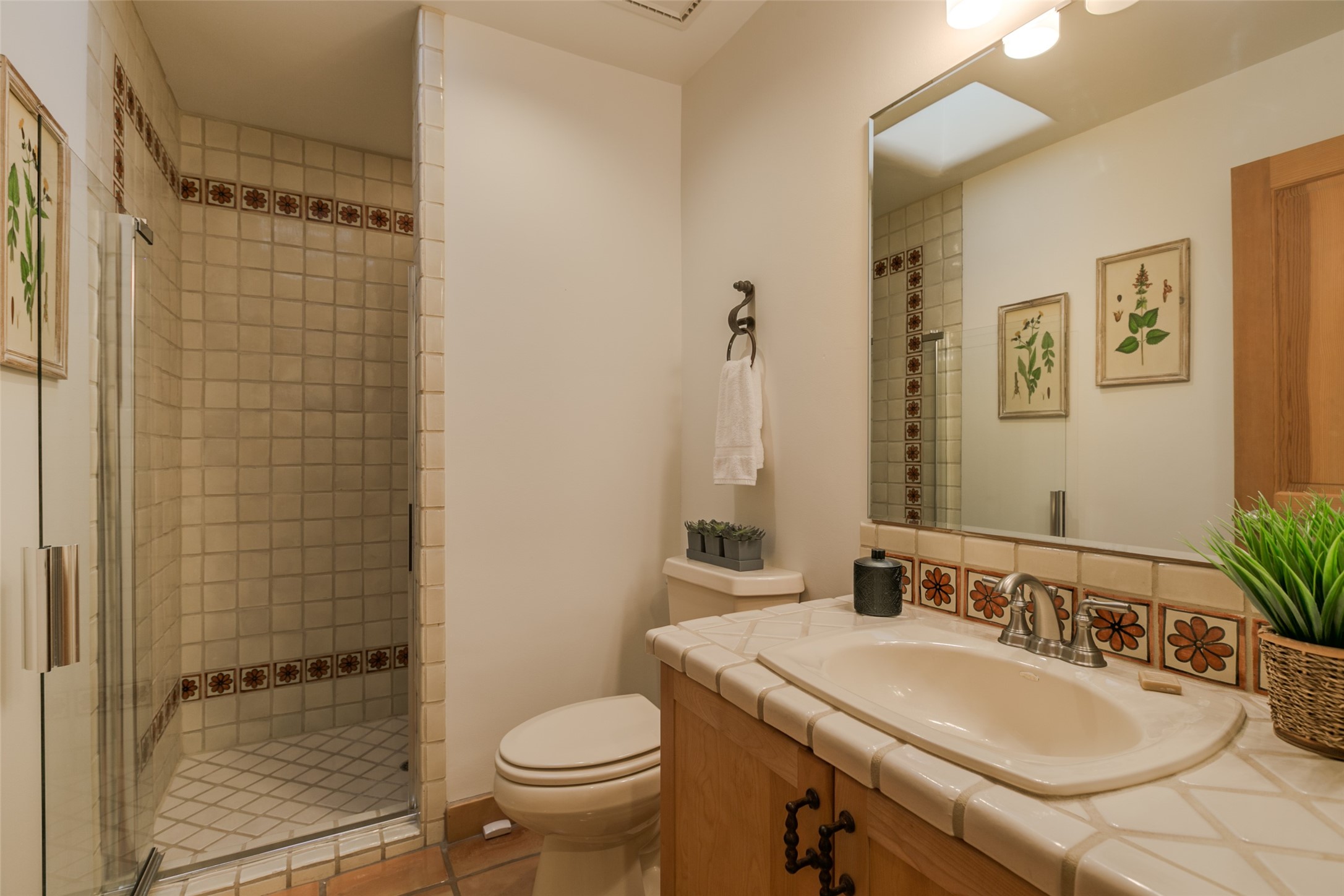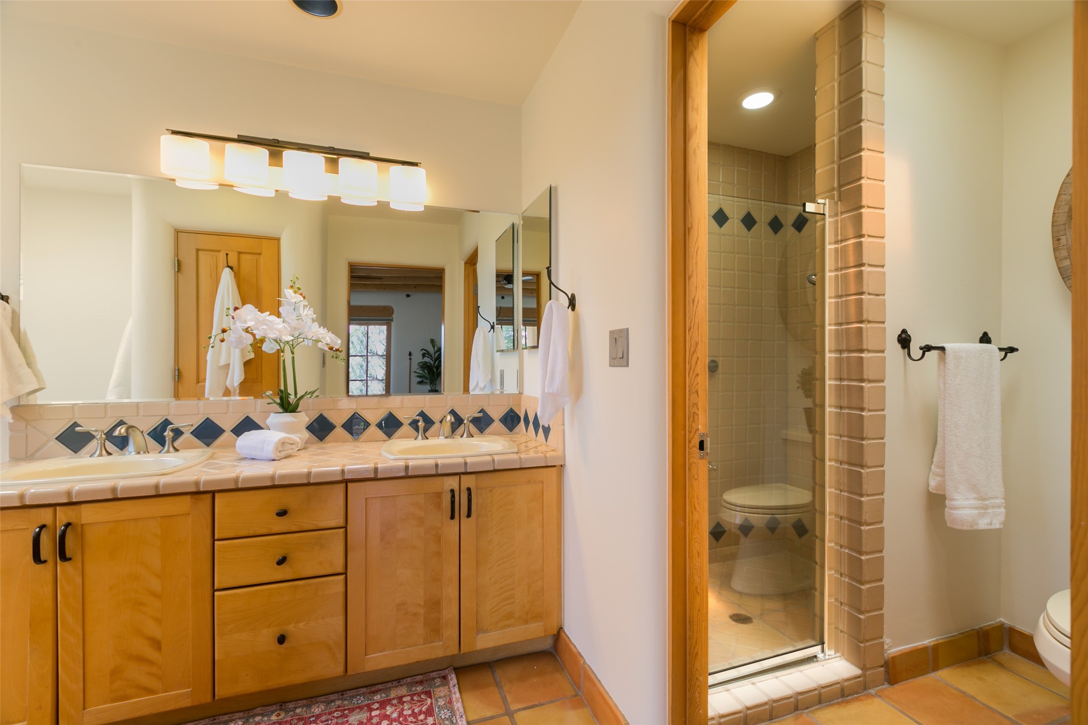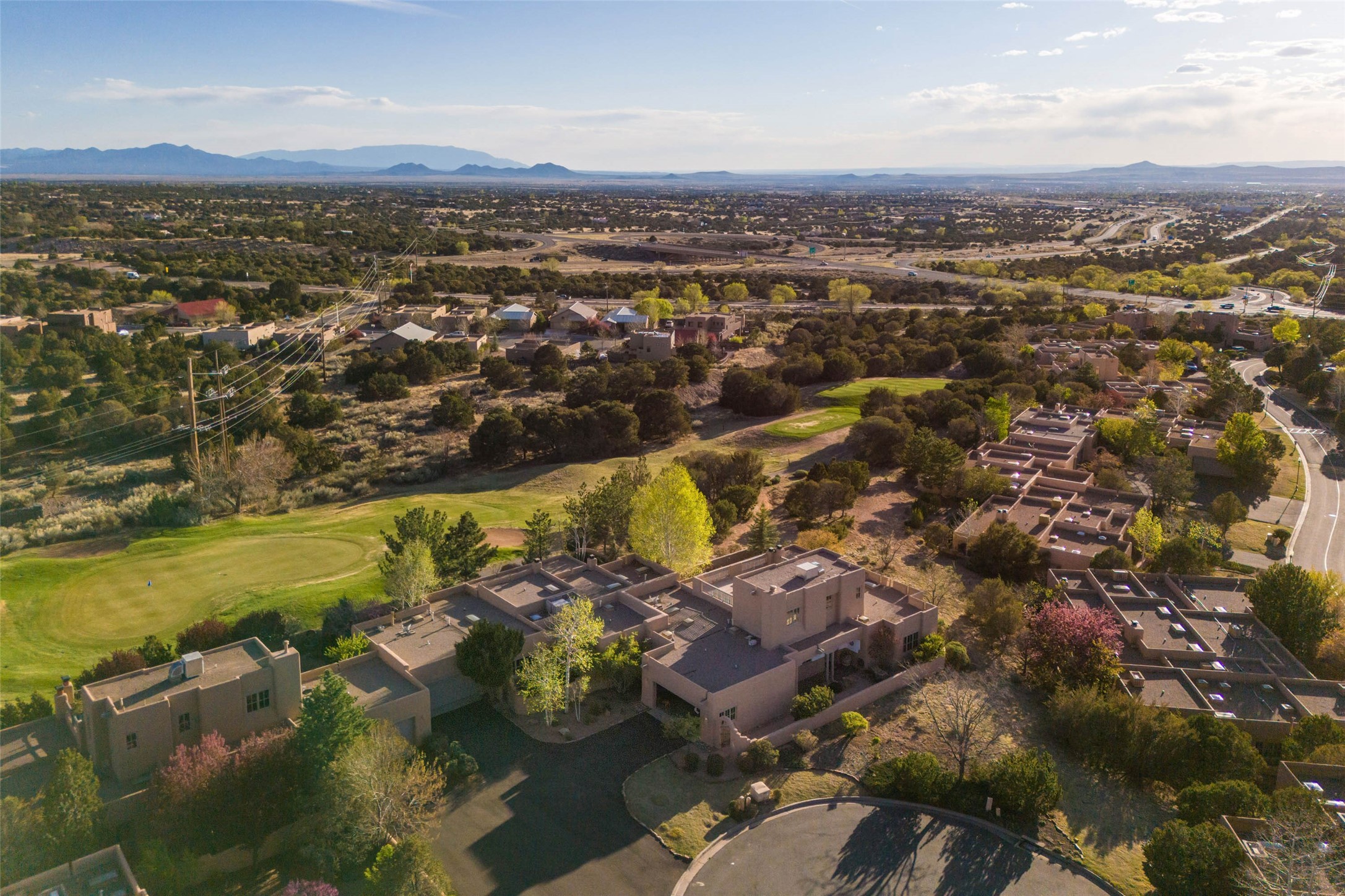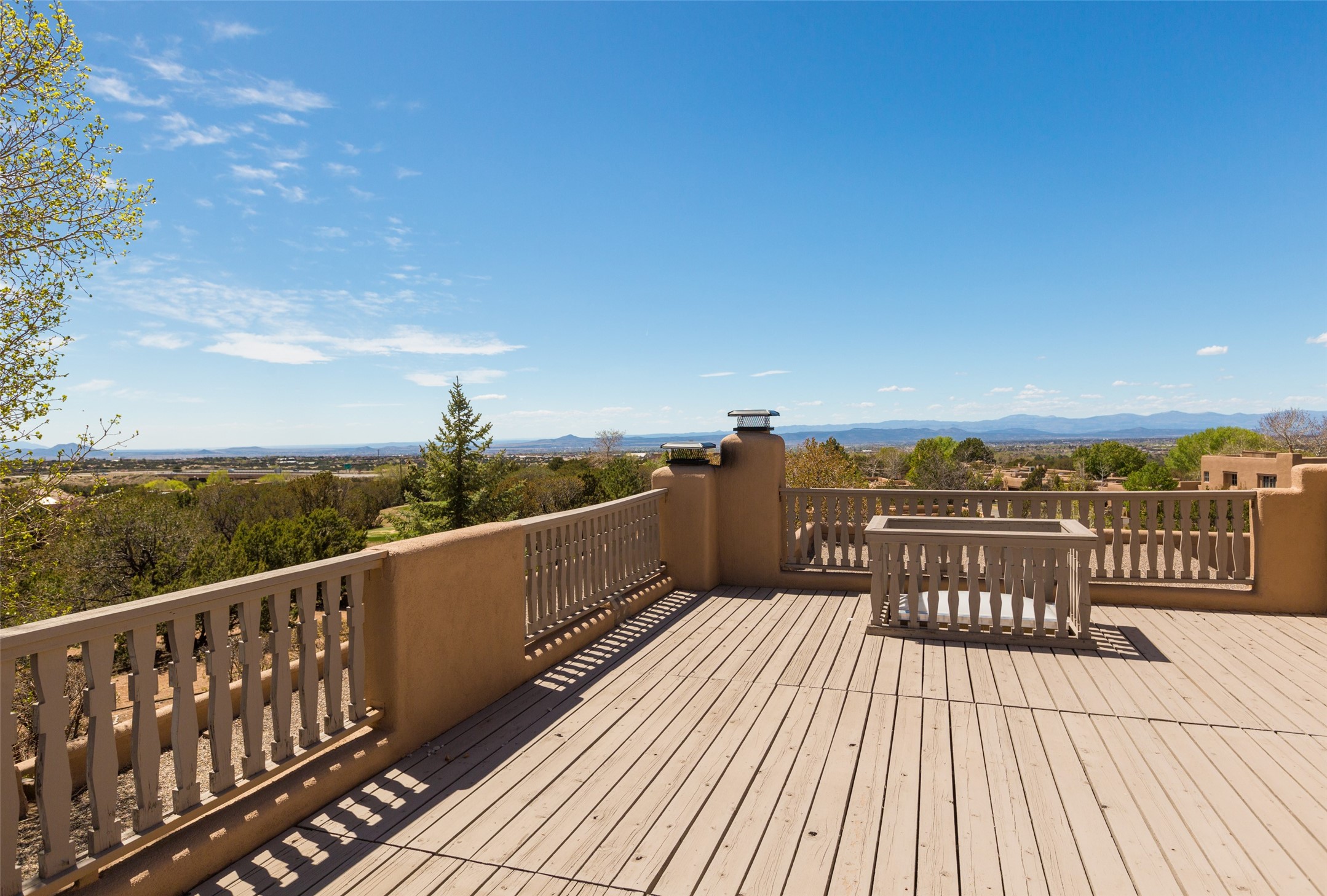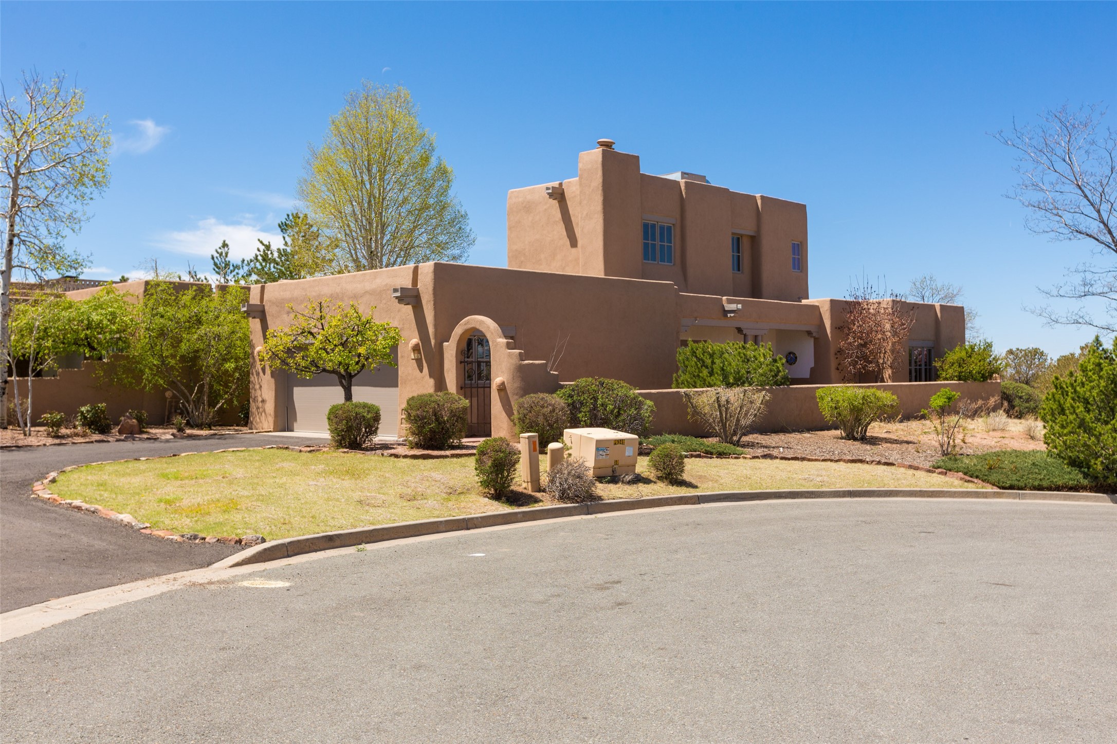 Nestled in the prestigious, 24/7 guard-gated community of Quail Run, this elegant home blends resort-style amenities with Southwestern charm. Enjoy scenic trails, tennis and pickleball courts, a fitness center with indoor lap and hydrotherapy pools, fitness classes, a 9-hole PGA-rated golf course, on-site dining, and 24-hour security. The home features Saltillo tile, vaulted ceilings with vigas, Kiva fireplaces, picture windows, and an open-concept layout flowing to a private courtyard and walled yard. The home includes 3 ensuite bedrooms, 4 baths, an office, and kitchen with stone island & ample cabinetry. Unwind on the outdoor deck while taking in spectacular sunsets and breathtaking mountain views. A rare chance to enjoy upscale living in one of Santa Fe's most sought-after communities.