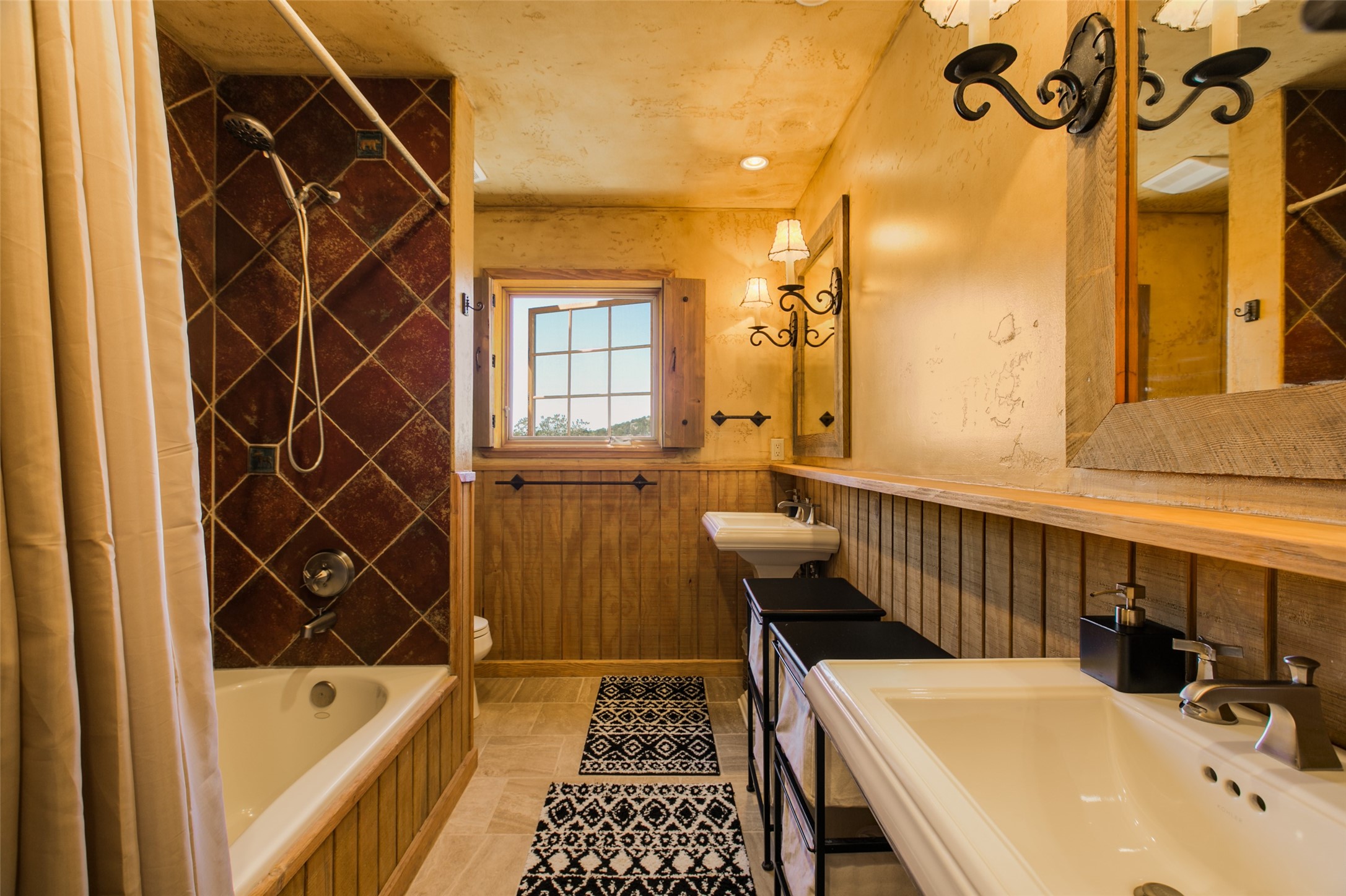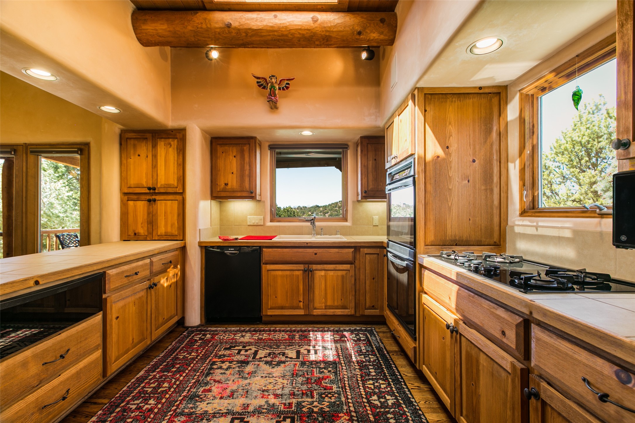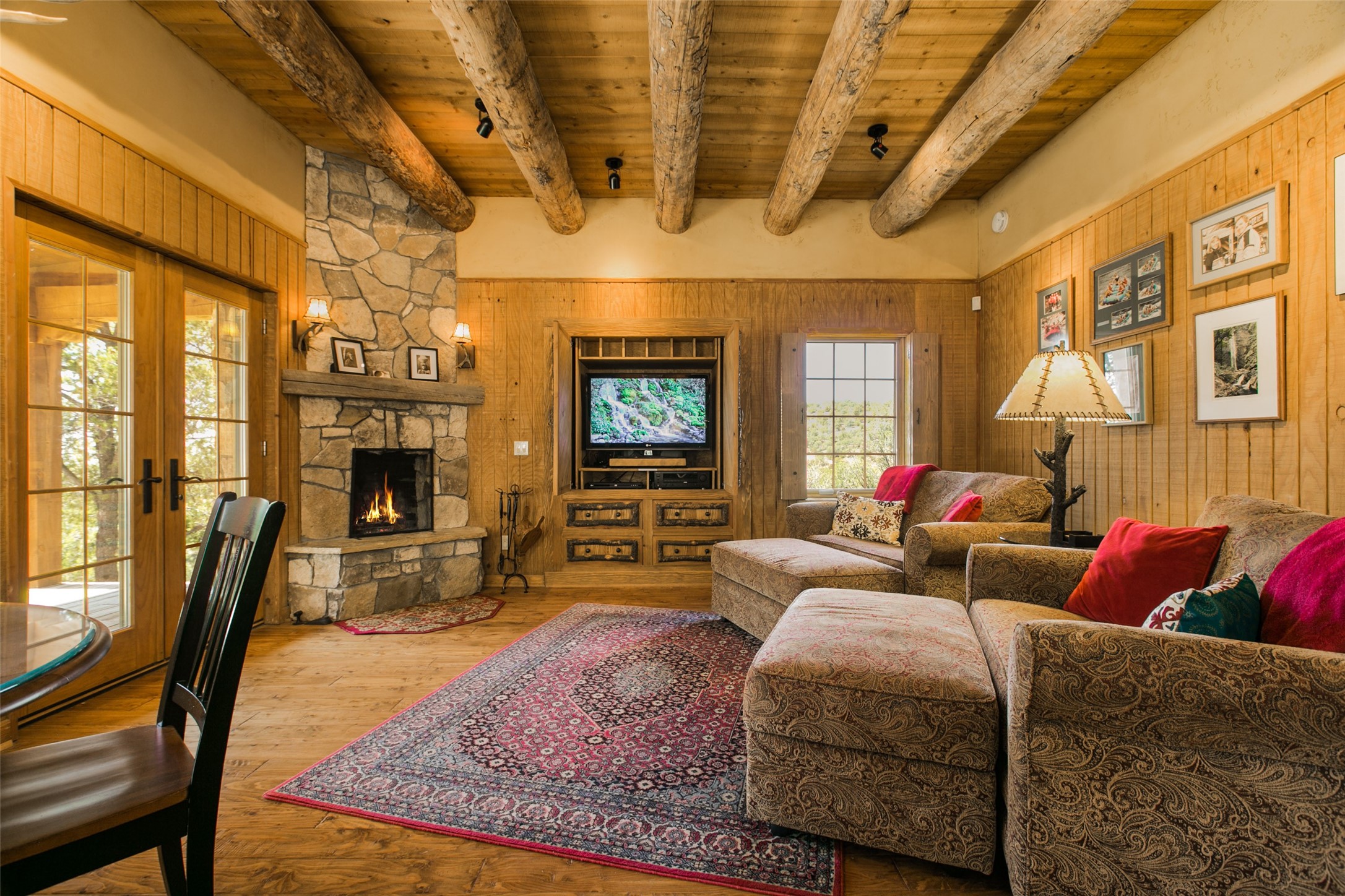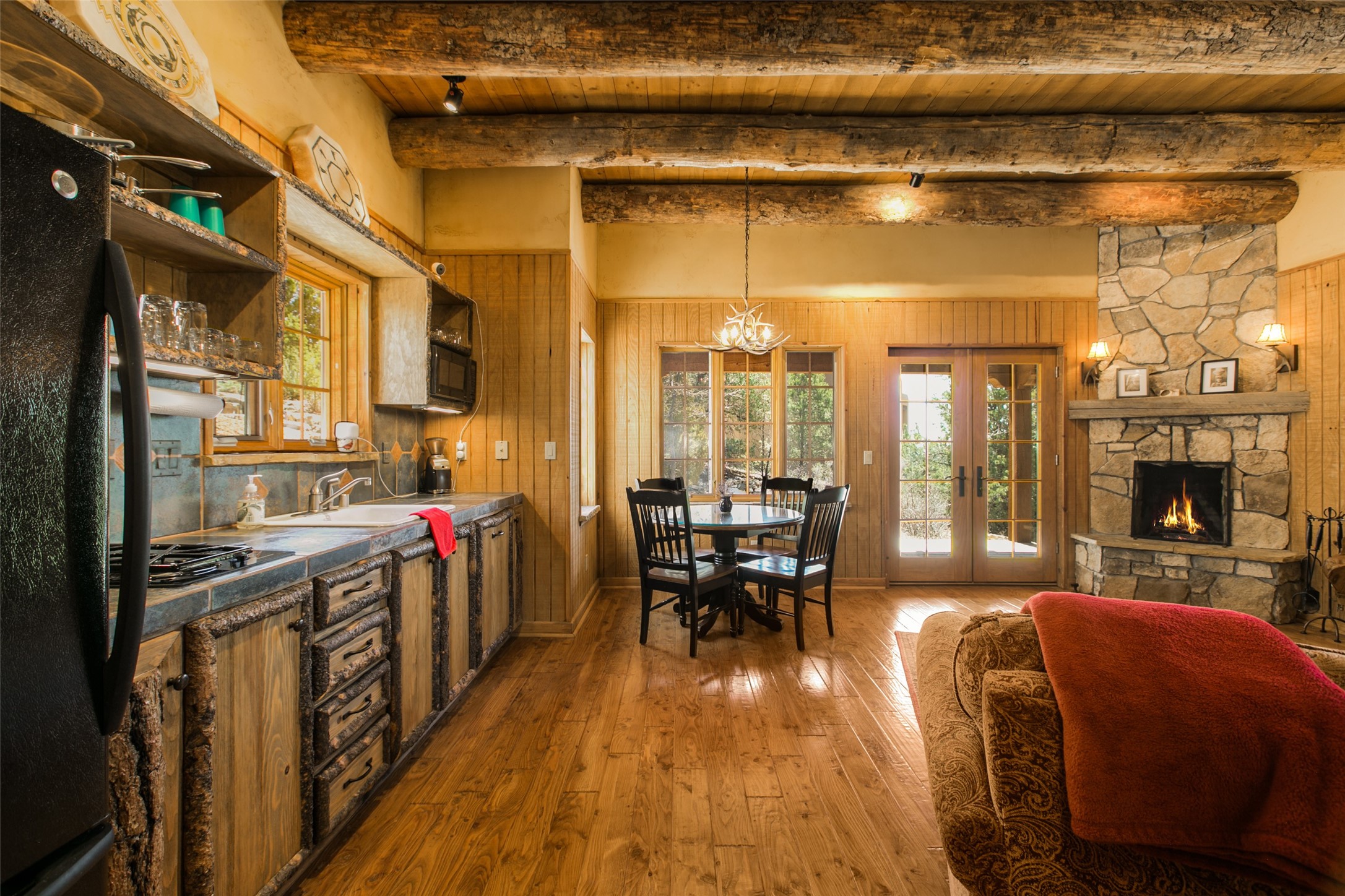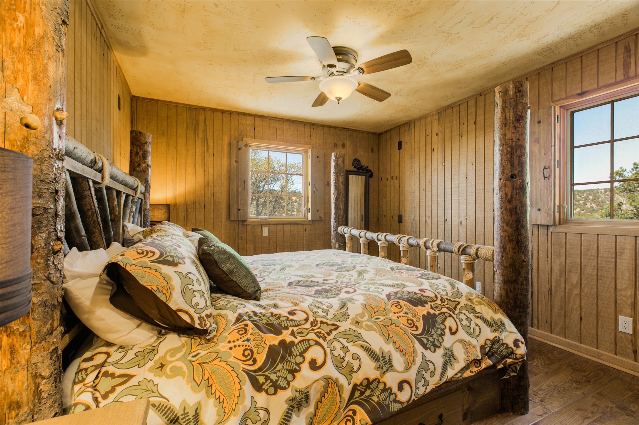 Exceptional Roger Hunter custom home with separate guest house nestled on an elevated, peaceful and picturesque .82-acre lot just five minutes from downtown Santa Fe. Located in the premier Los Cerros Colorados community, both homes are perfectly sited to provide privacy along with stunning mountain, sunset and city light views. The meticulously maintained three bedroom, four bath main house has a total of only five, low, wide, user-friendly steps designed to ensure easy, seamless movement throughout the space, leading from the open concept living area to the bedrooms and the private courtyard off of the primary suite. Just a few of the features include soaring ceilings, massive vigas, beautiful hardwood floors, custom cabinetry and doors, gorgeous plaster walls, radiant heat, ductless a/c, security system, oversized two car garage with lots of storage, and large windows and skylights to capture the light and views. The enchanting one-bedroom guest house is truly special! This property is just steps away from the extensive Dale Ball Trail system with over 20 miles of hiking, biking, running, cross country skiing and snowshoeing trails, along with its close proximity to the Santa Fe National Forest and Santa Fe Ski Basin, this property offers endless recreational opportunities! Extensive stonework throughout the property, mature landscaping, in addition to its fabulous portal with built-in grill and kiva fireplace, provide a serene, mountain retreat perfect for entertaining! All underground city and public utilities, 15 yr. transferable roof warranty and 7 yr. stucco warranty. Furnishings package available. Guest house sleeps 4.