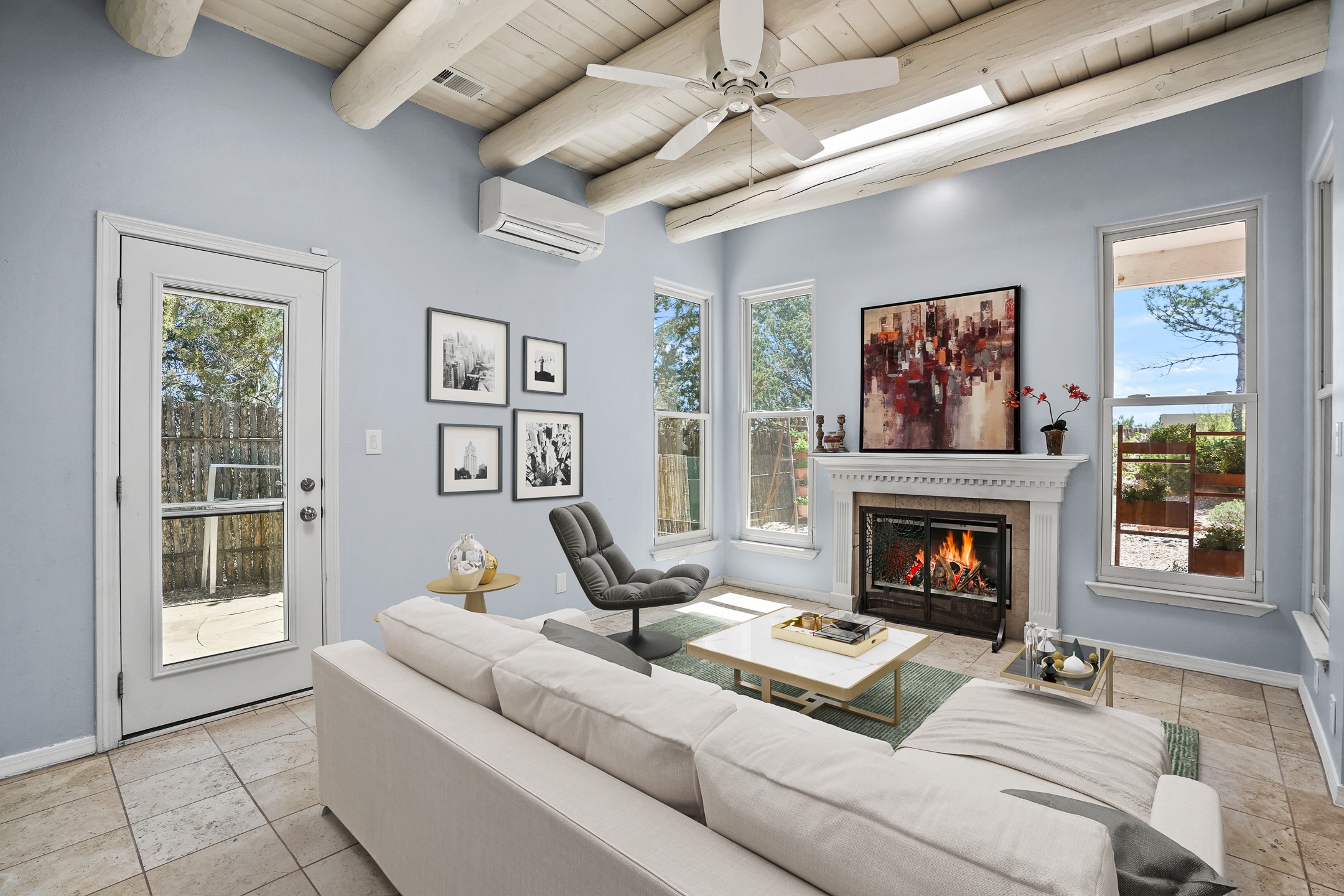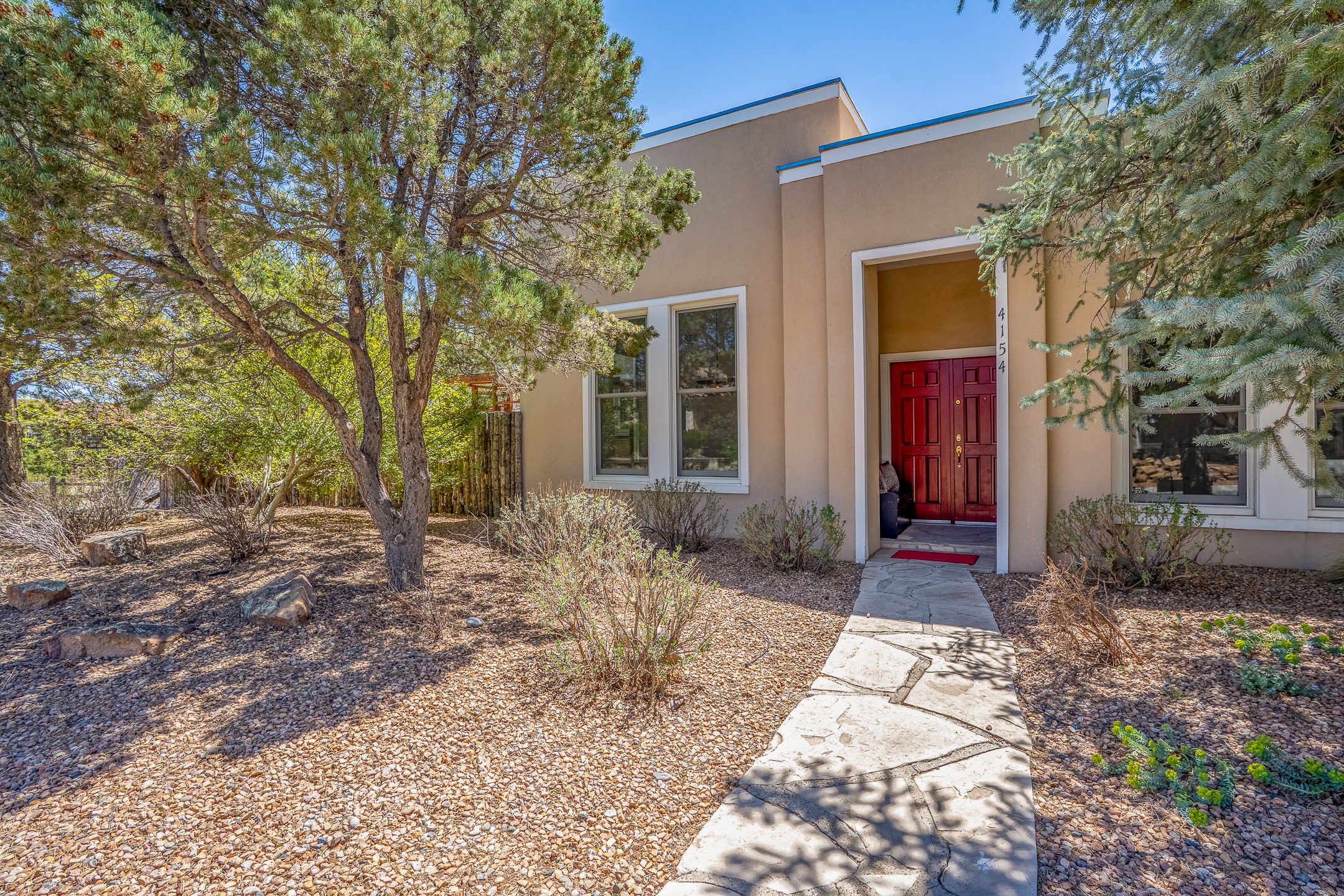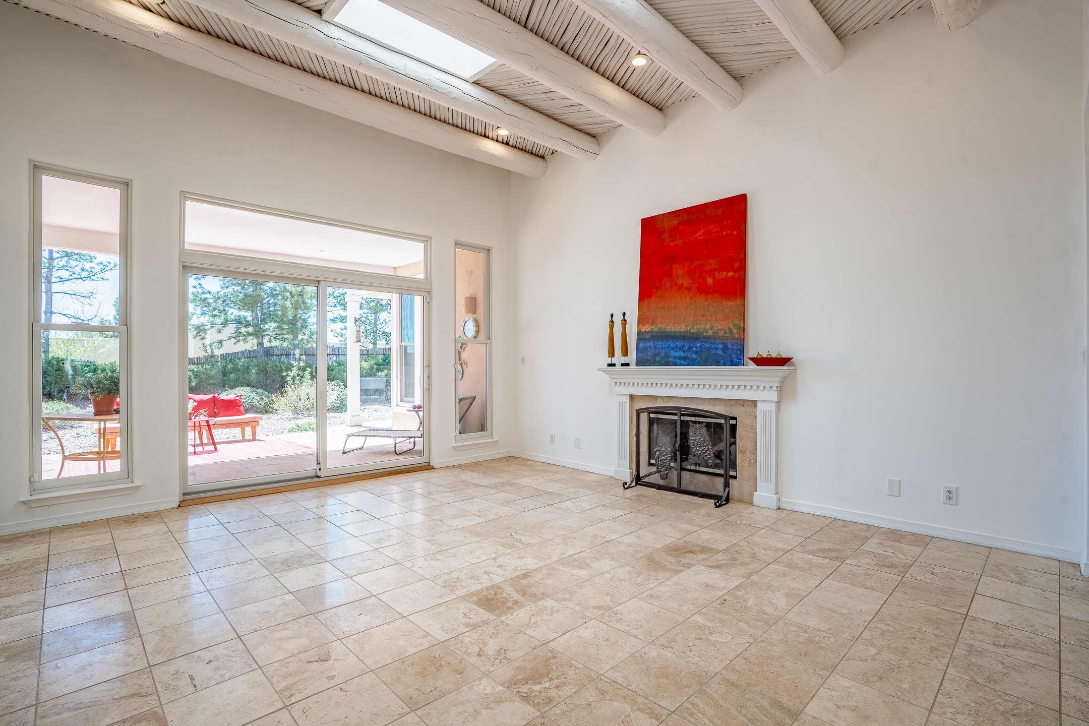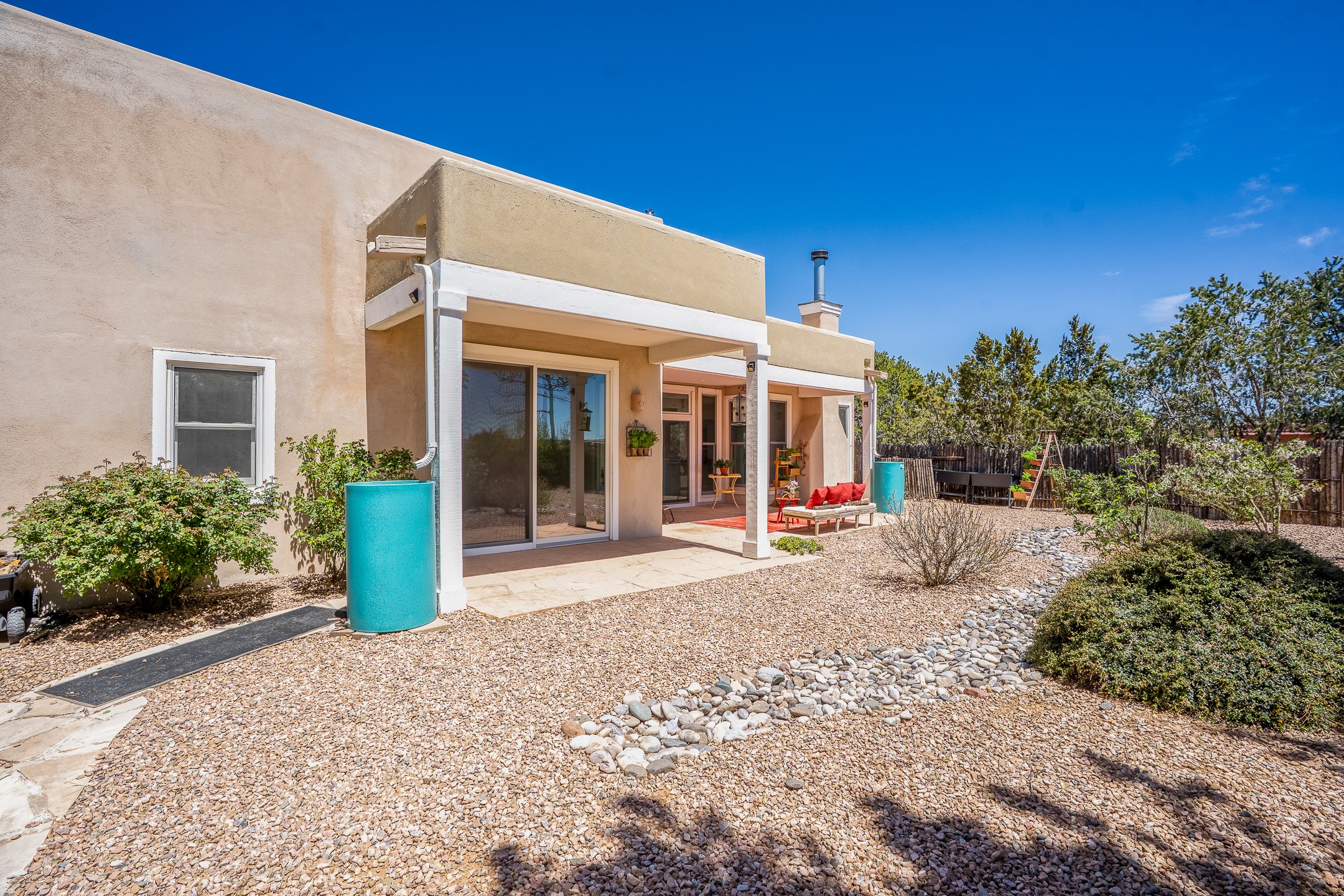 Southwestern Elegance in Nava AdeWelcome to this beautifully crafted 3-bedroom + flex room, 2.5-bath home located in the desirable Nava Ade community--known for its thoughtful design and exceptional lifestyle amenities that was once a model home. With over 2,000 square feet of living space, this Pueblo/Territorial-style residence blends timeless Southwestern character with modern updates and eco-conscious features.Inside, you'll find high ceilings with wood beams, two cozy fireplaces, and two spacious living areas that offer warmth and versatility. Elegant travertine stone and wood flooring flow throughout, adding texture and sophistication. The flex room is ideal for a home office, studio, or guest space, while the formal dining area and kitchen--with newer stainless steel appliances--make everyday living and entertaining a breeze.Situated on an extra-large lot with open spaces behind and walking paths on one side, the home is surrounded by beautifully landscaped xeriscape gardens with drip irrigation--perfectly suited to Santa Fe's climate. The freestanding two-car garage provides added convenience and flexibility. Additional upgrades include newer windows and patio doors (2018), a recently replaced roof system, and a fully owned solar energy system for enhanced energy efficiency.Nava Ade offers parks, walking paths, a community pool, and a clubhouse with fitness equipment--creating a vibrant, connected neighborhood you'll love coming home to.Experience the perfect balance of comfort, style, and sustainability in one of Santa Fe's most sought-after communities.