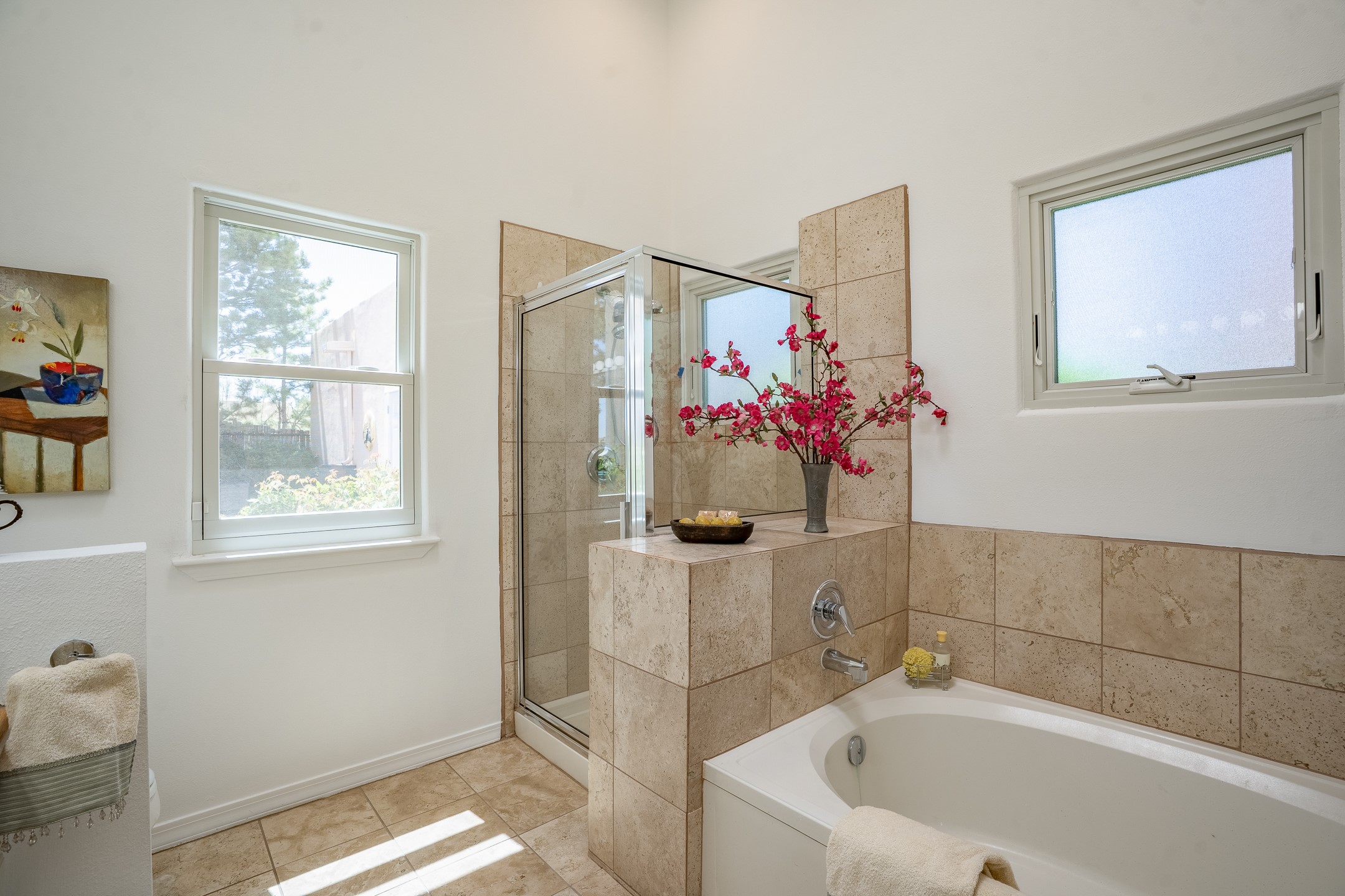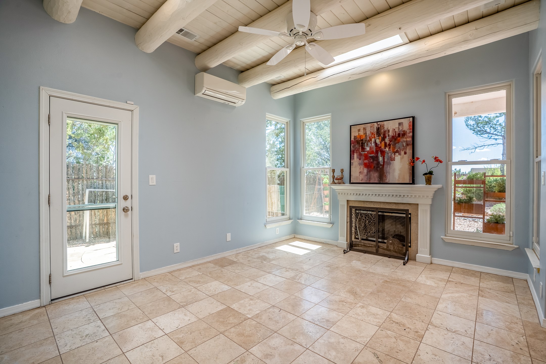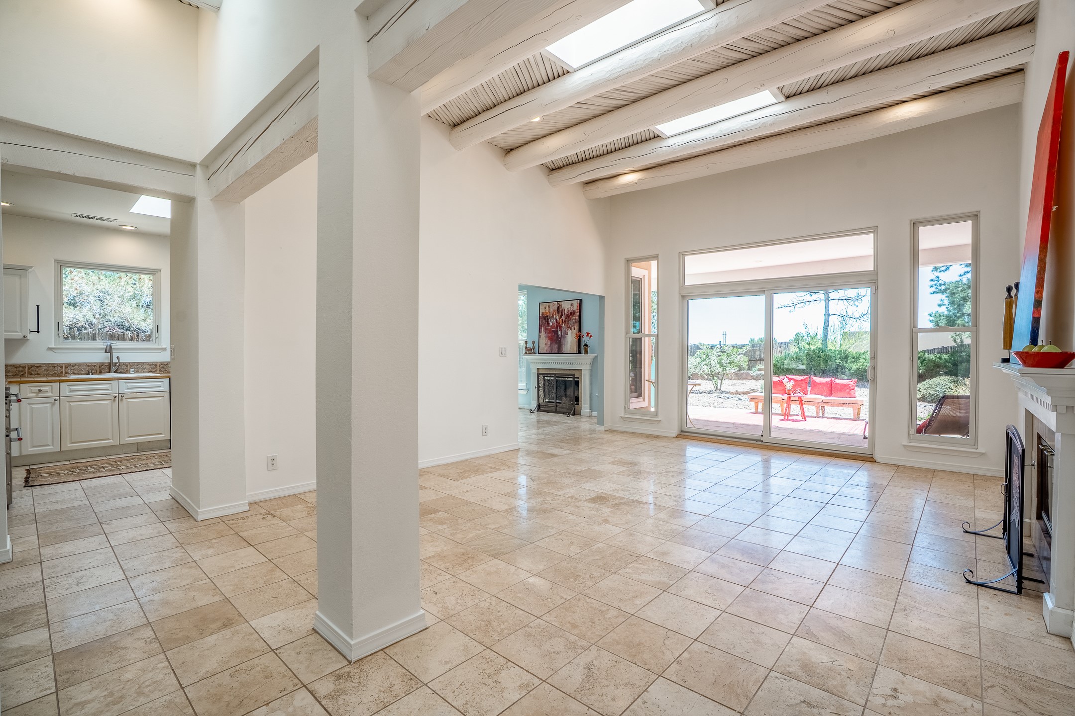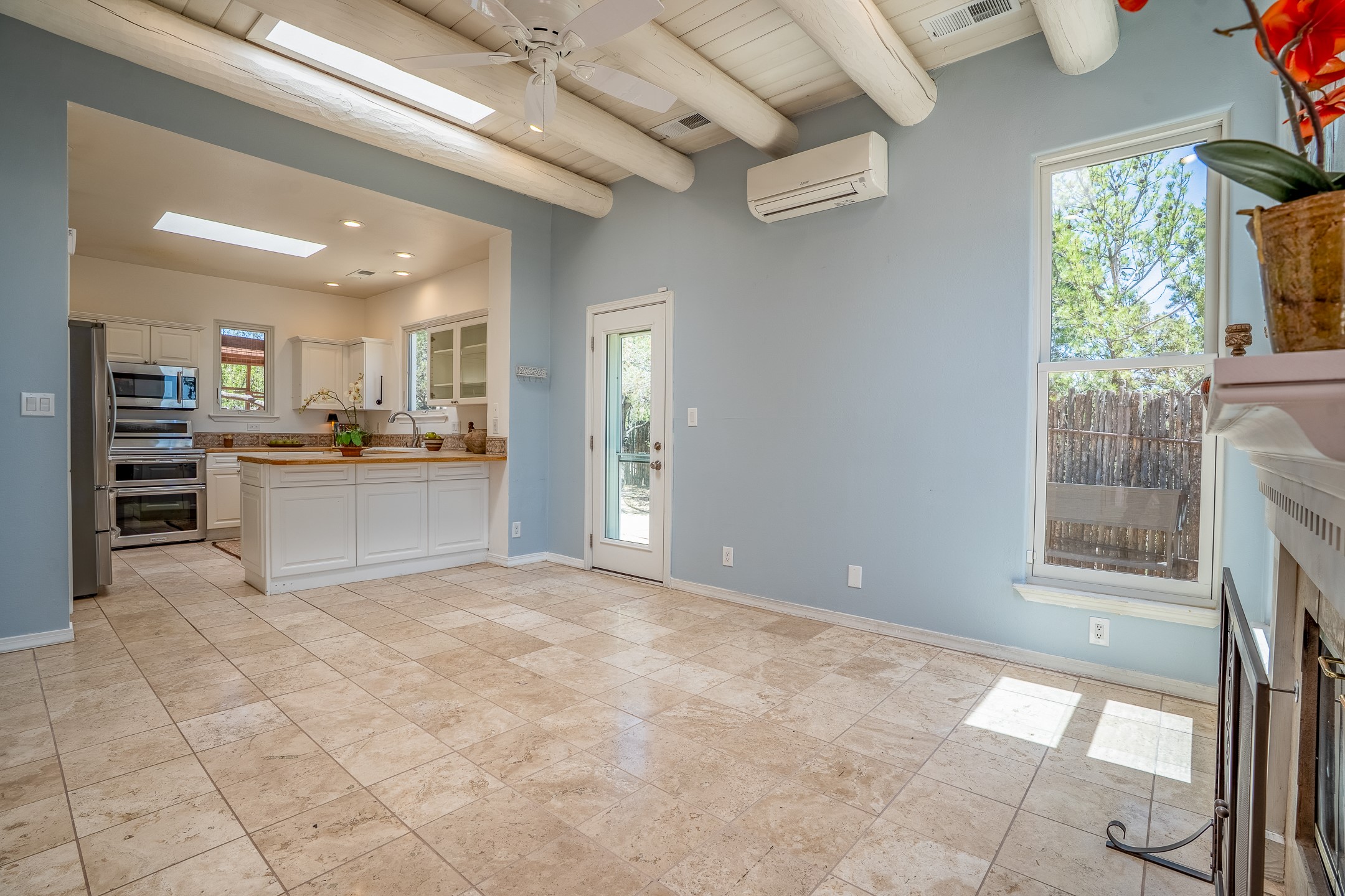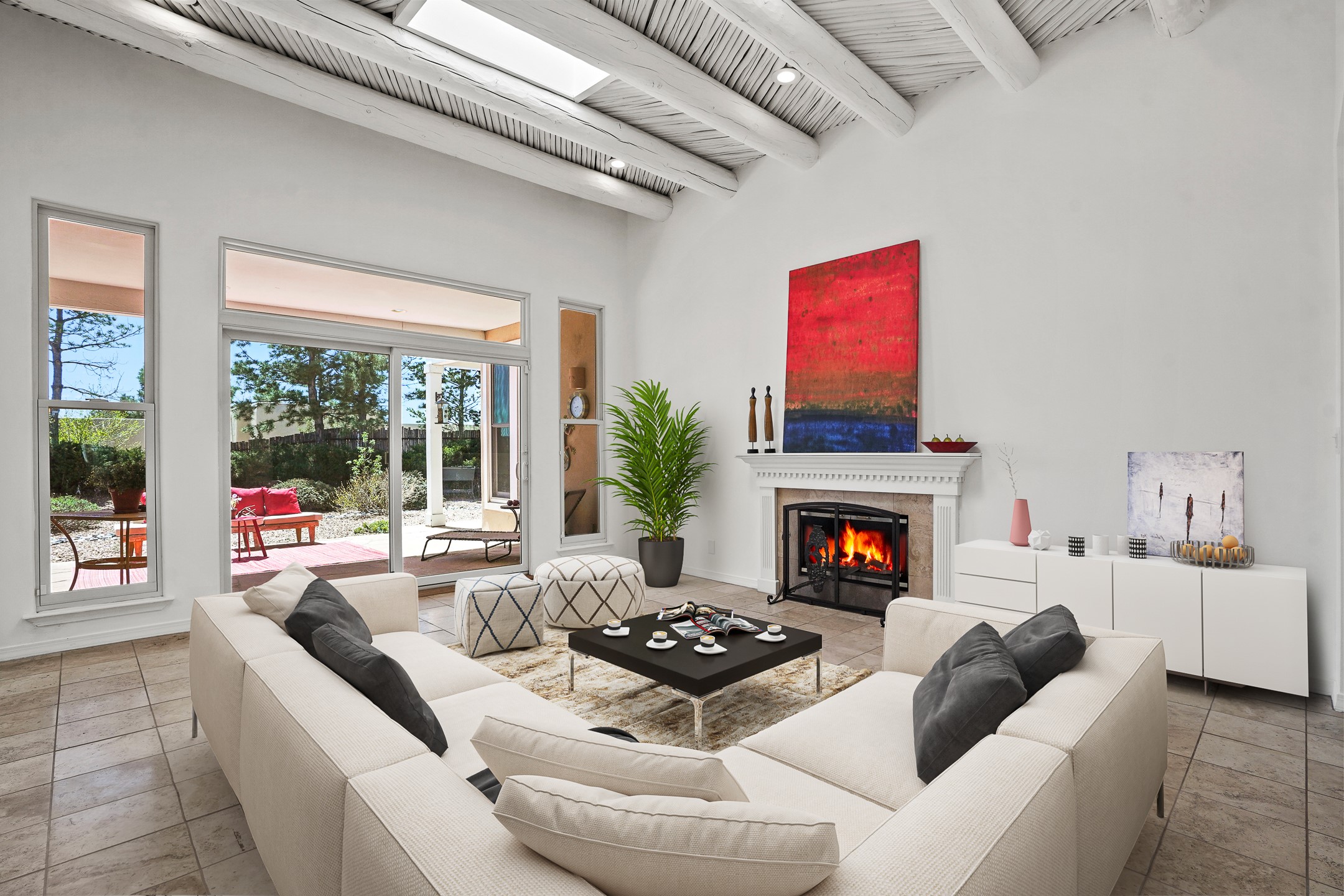 Southwestern Elegance in Nava AdeWelcome to this beautifully crafted 3-bedroom + flex room, 2.5-bath home located in the desirable Nava Ade community--known for its thoughtful design and exceptional lifestyle amenities that was once a model home. With over 2,000 square feet of living space, this Pueblo/Territorial-style residence blends timeless Southwestern character with modern updates and eco-conscious features.Inside, you'll find high ceilings with wood beams, two cozy fireplaces, and two spacious living areas that offer warmth and versatility. Elegant travertine stone and wood flooring flow throughout, adding texture and sophistication. The flex room is ideal for a home office, studio, or guest space, while the formal dining area and kitchen--with newer stainless steel appliances--make everyday living and entertaining a breeze.Situated on an extra-large lot with open spaces behind and walking paths on one side, the home is surrounded by beautifully landscaped xeriscape gardens with drip irrigation--perfectly suited to Santa Fe's climate. The freestanding two-car garage provides added convenience and flexibility. Additional upgrades include newer windows and patio doors (2018), a recently replaced roof system, and a fully owned solar energy system for enhanced energy efficiency.Nava Ade offers parks, walking paths, a community pool, and a clubhouse with fitness equipment--creating a vibrant, connected neighborhood you'll love coming home to.Experience the perfect balance of comfort, style, and sustainability in one of Santa Fe's most sought-after communities.