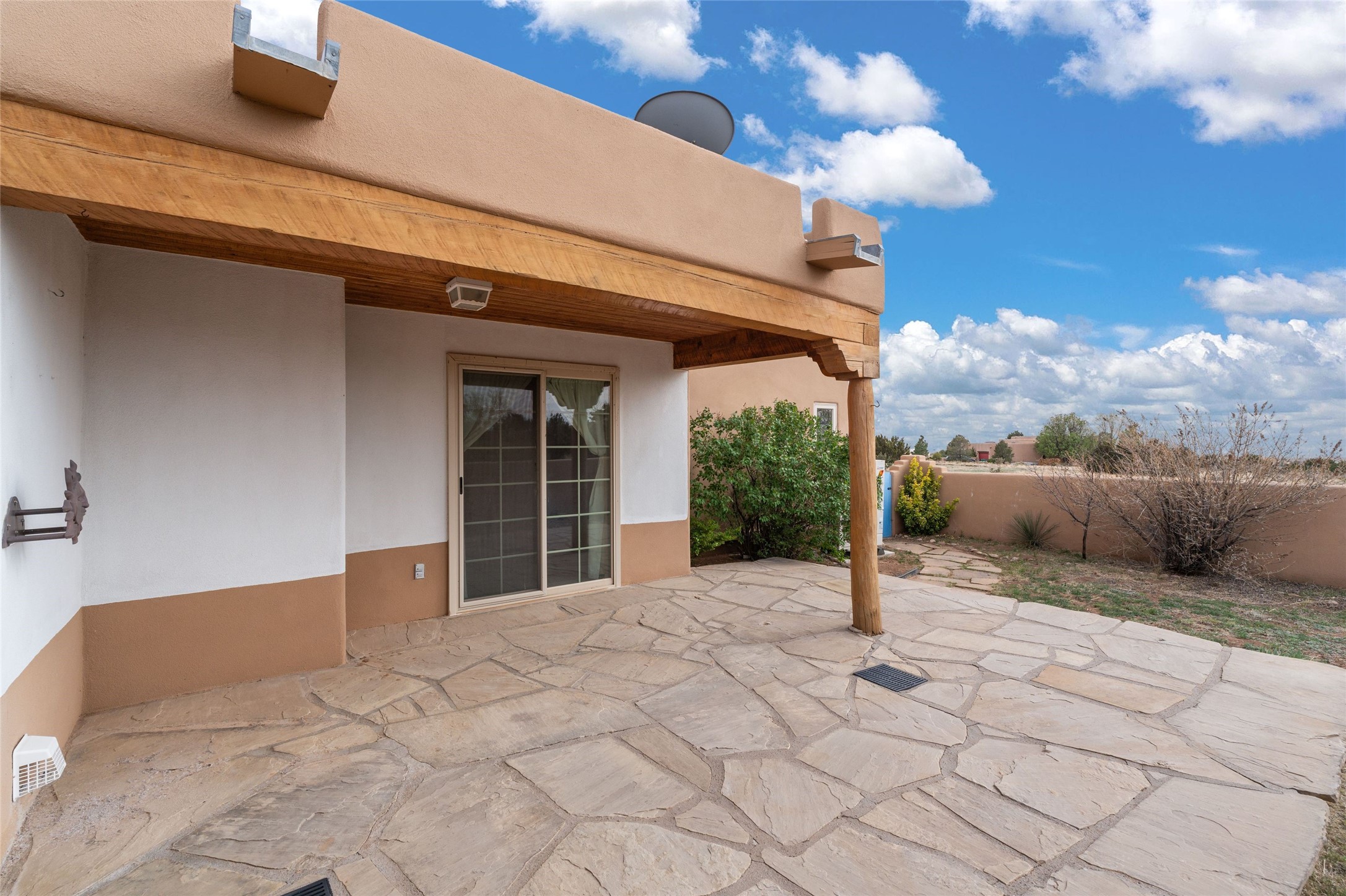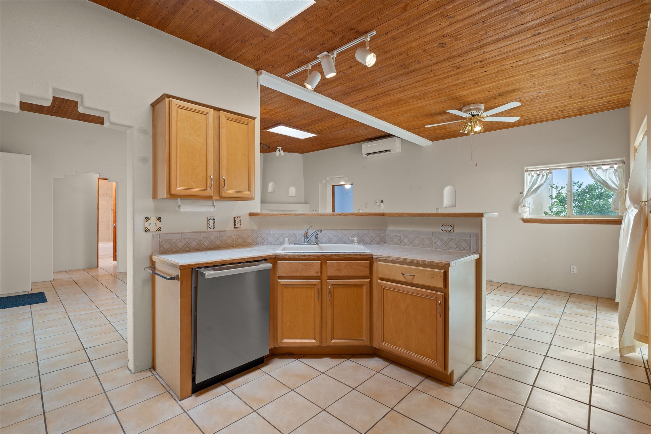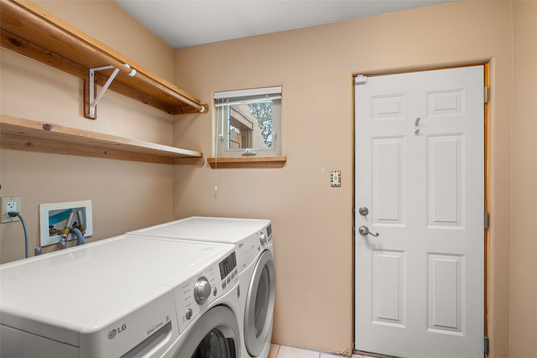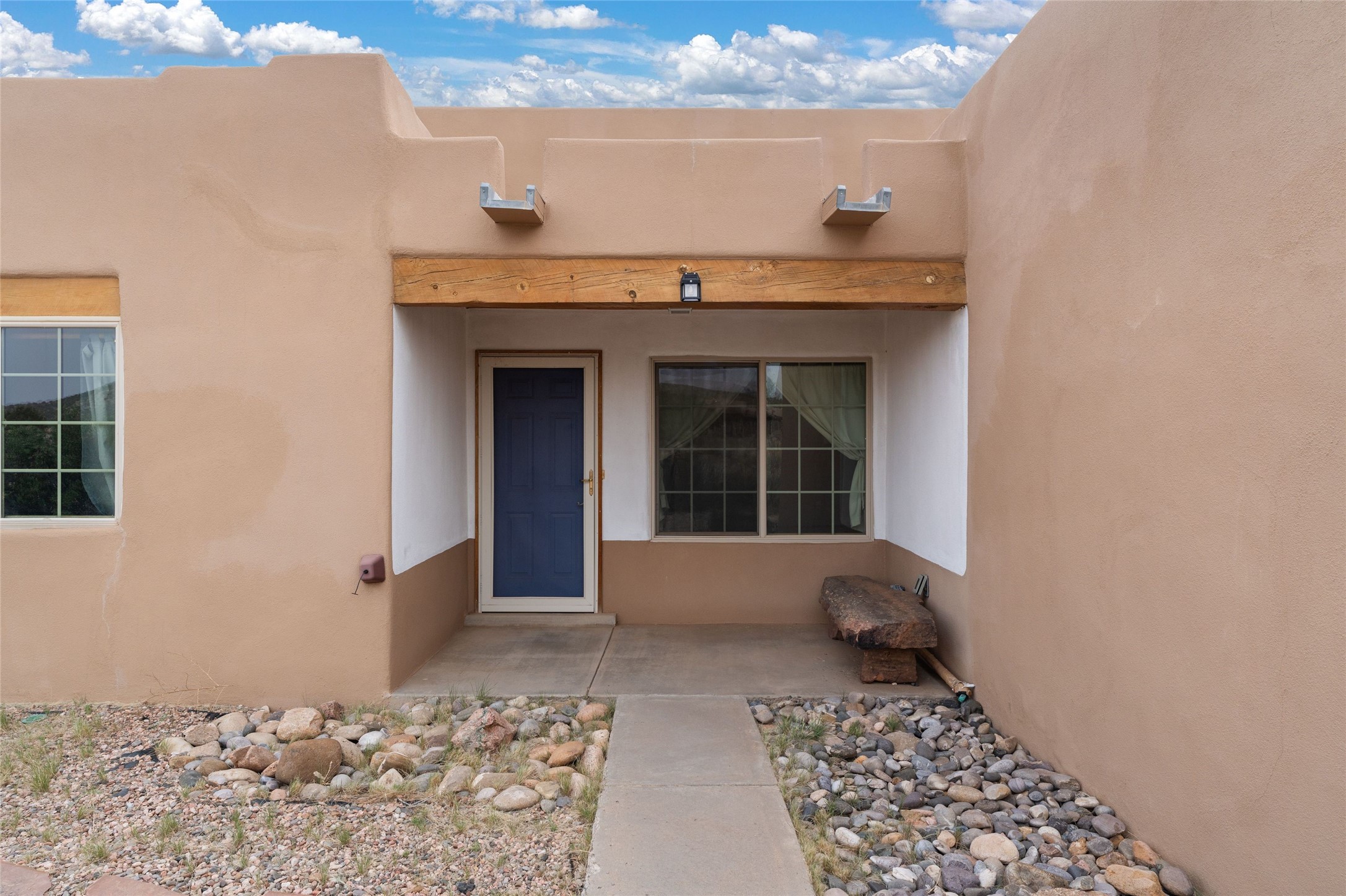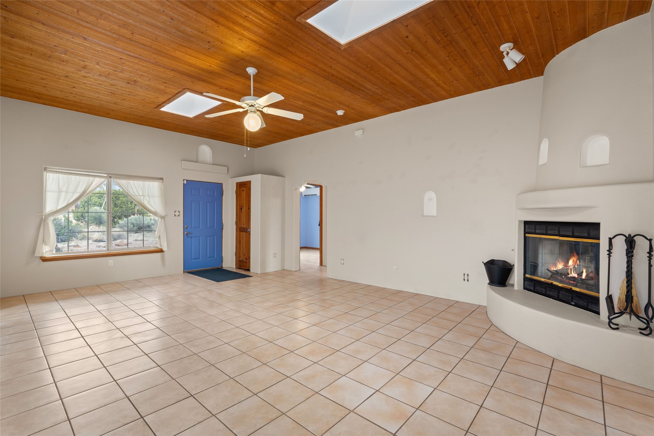 This light-filled, single-level 3-bedroom, 2-bath home sits on a prime 1.47-acre lot just blocks from The Agora in Eldorado. With no interior steps and an easy, flowing layout, the home is both accessible and inviting. The living room welcomes you with tongue-and-groove ceilings and a cozy wood-burning fireplace. Skylights throughout add warmth and natural light. The kitchen is well-appointed with a Bosch stove, new microwave, and new Miele dishwasher. Radiant tile floors provide gentle warmth underfoot, while ductless mini-splits offer efficient cooling in the summer. Step outside to a private, enclosed courtyard with mountain views--a perfect space for gardening, entertaining, or simply relaxing. Additional features include a finished two-car garage and water softener, plus a dedicated laundry room conveniently located off the kitchen. Residents of Eldorado enjoy a vibrant community with amenities for all lifestyles: a clubhouse, swimming pool, playground, tennis, basketball and pickleball courts, dog park, scenic walking trails, and even horse stables