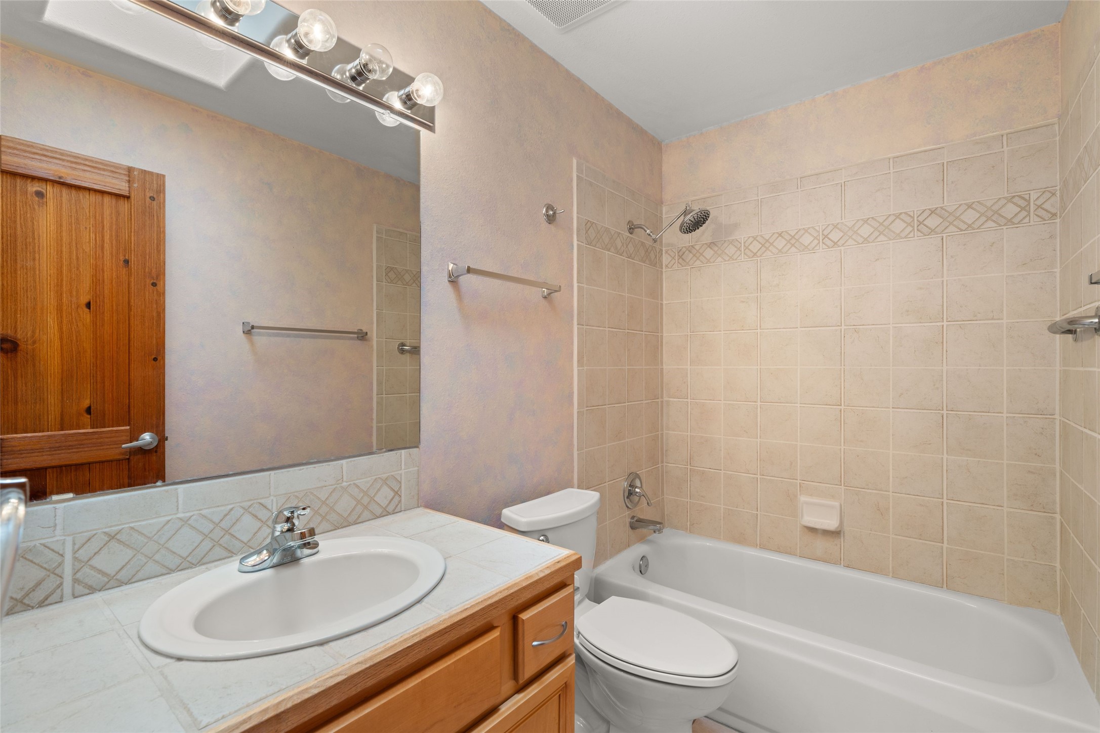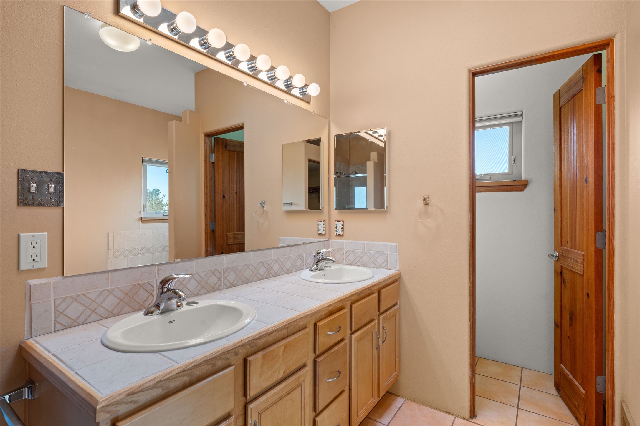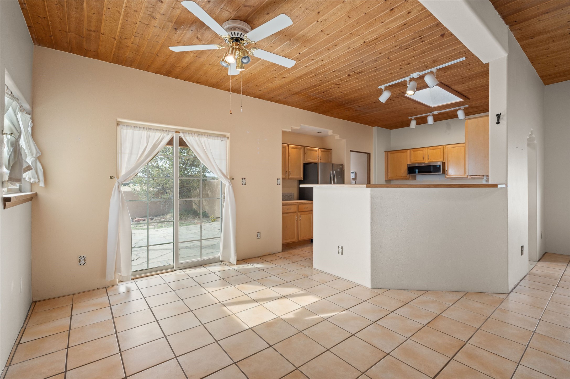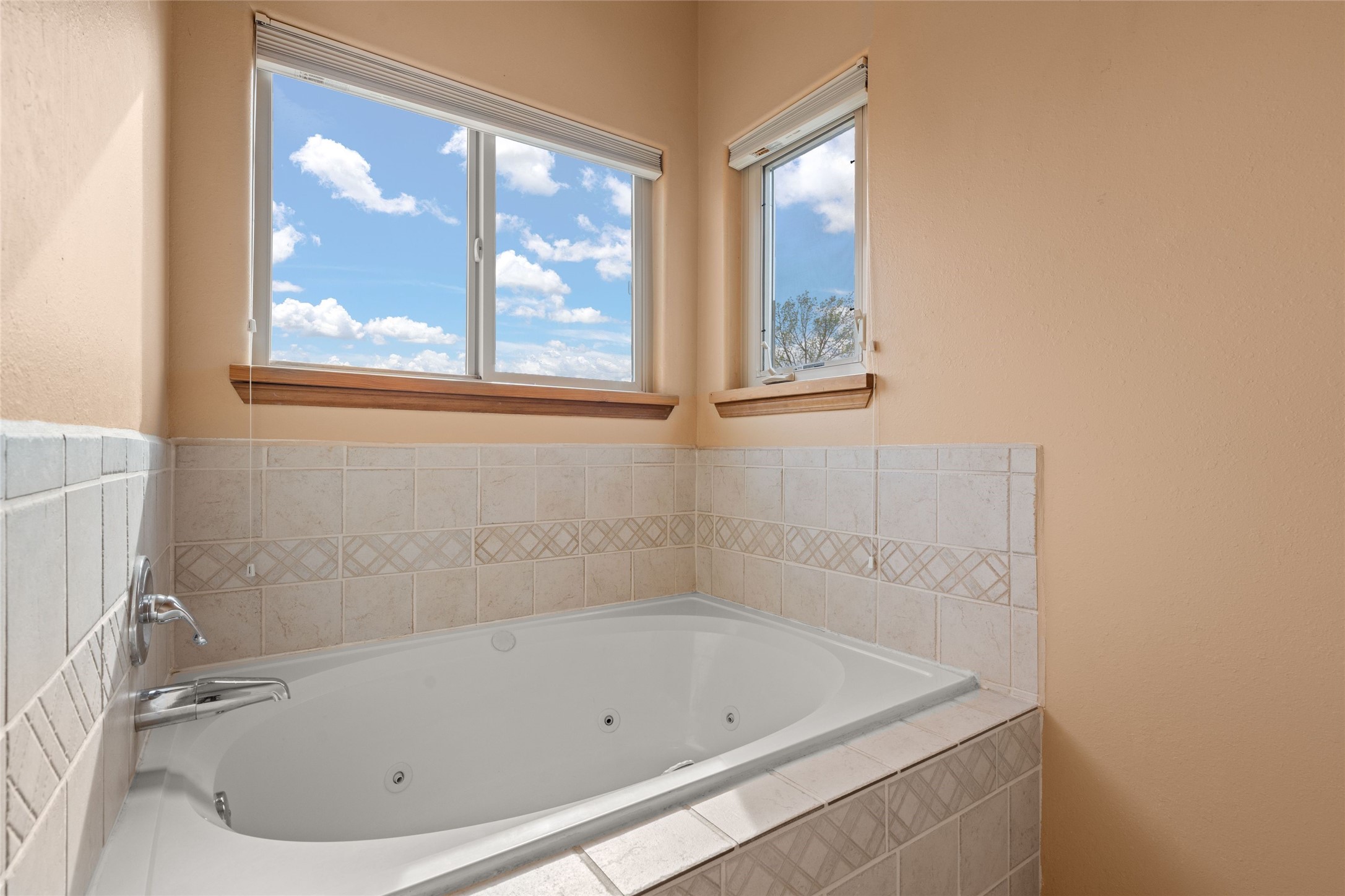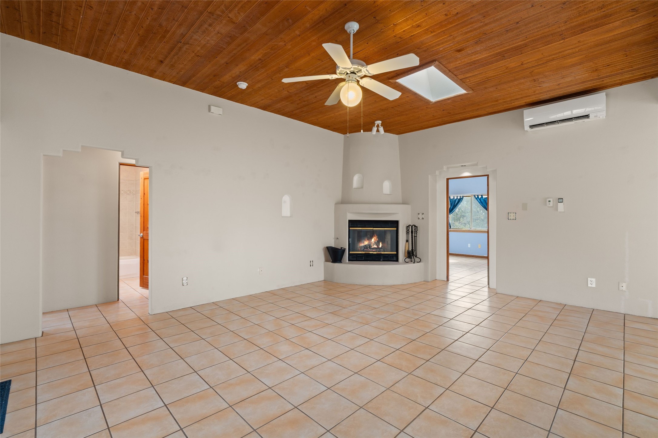 This light-filled, single-level 3-bedroom, 2-bath home sits on a prime 1.47-acre lot just blocks from The Agora in Eldorado. With no interior steps and an easy, flowing layout, the home is both accessible and inviting. The living room welcomes you with tongue-and-groove ceilings and a cozy wood-burning fireplace. Skylights throughout add warmth and natural light. The kitchen is well-appointed with a Bosch stove, new microwave, and new Miele dishwasher. Radiant tile floors provide gentle warmth underfoot, while ductless mini-splits offer efficient cooling in the summer. Step outside to a private, enclosed courtyard with mountain views--a perfect space for gardening, entertaining, or simply relaxing. Additional features include a finished two-car garage and water softener, plus a dedicated laundry room conveniently located off the kitchen. Residents of Eldorado enjoy a vibrant community with amenities for all lifestyles: a clubhouse, swimming pool, playground, tennis, basketball and pickleball courts, dog park, scenic walking trails, and even horse stables