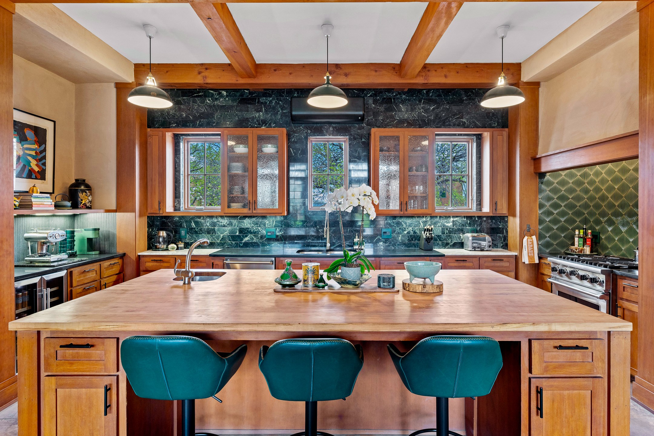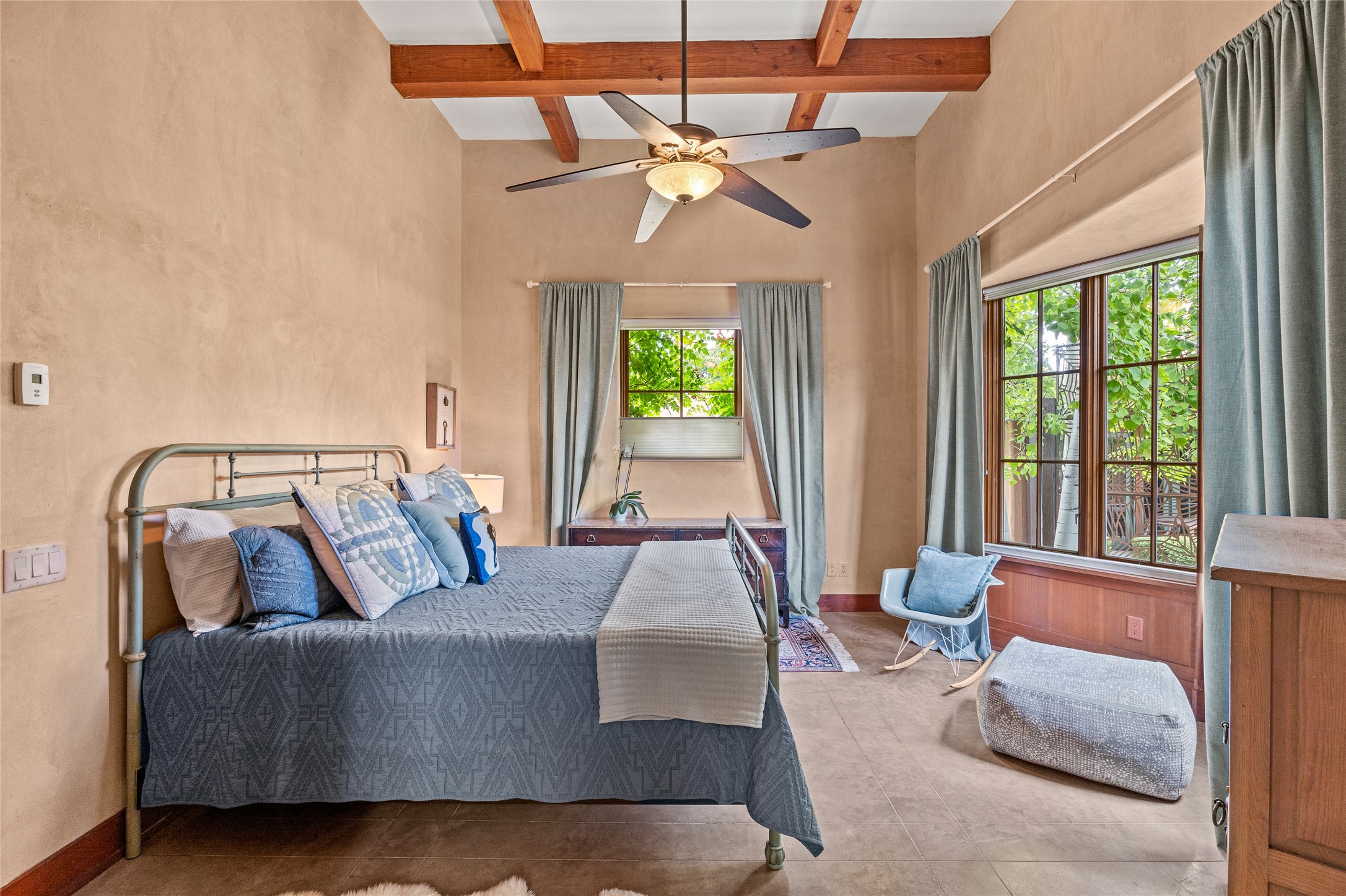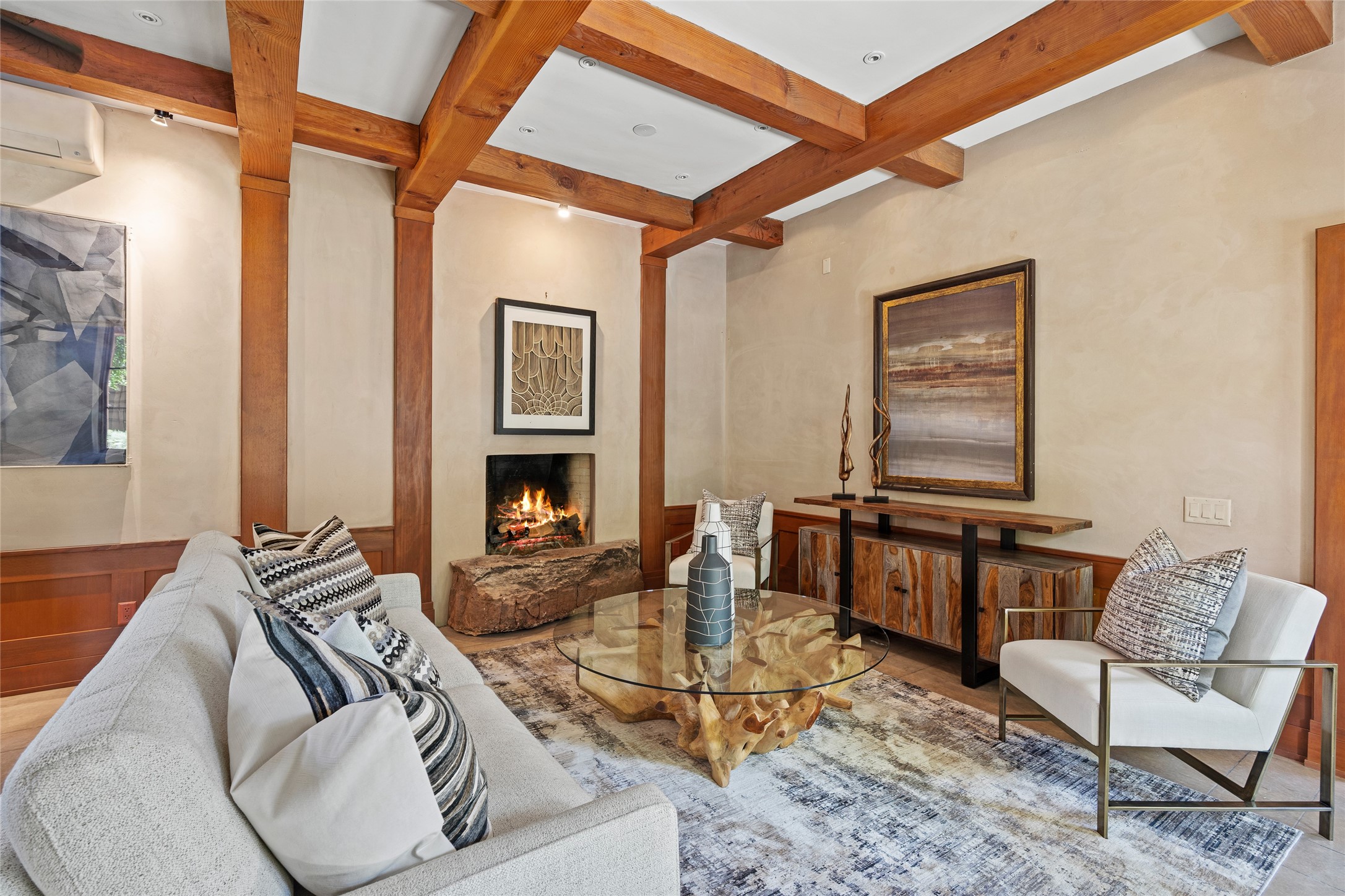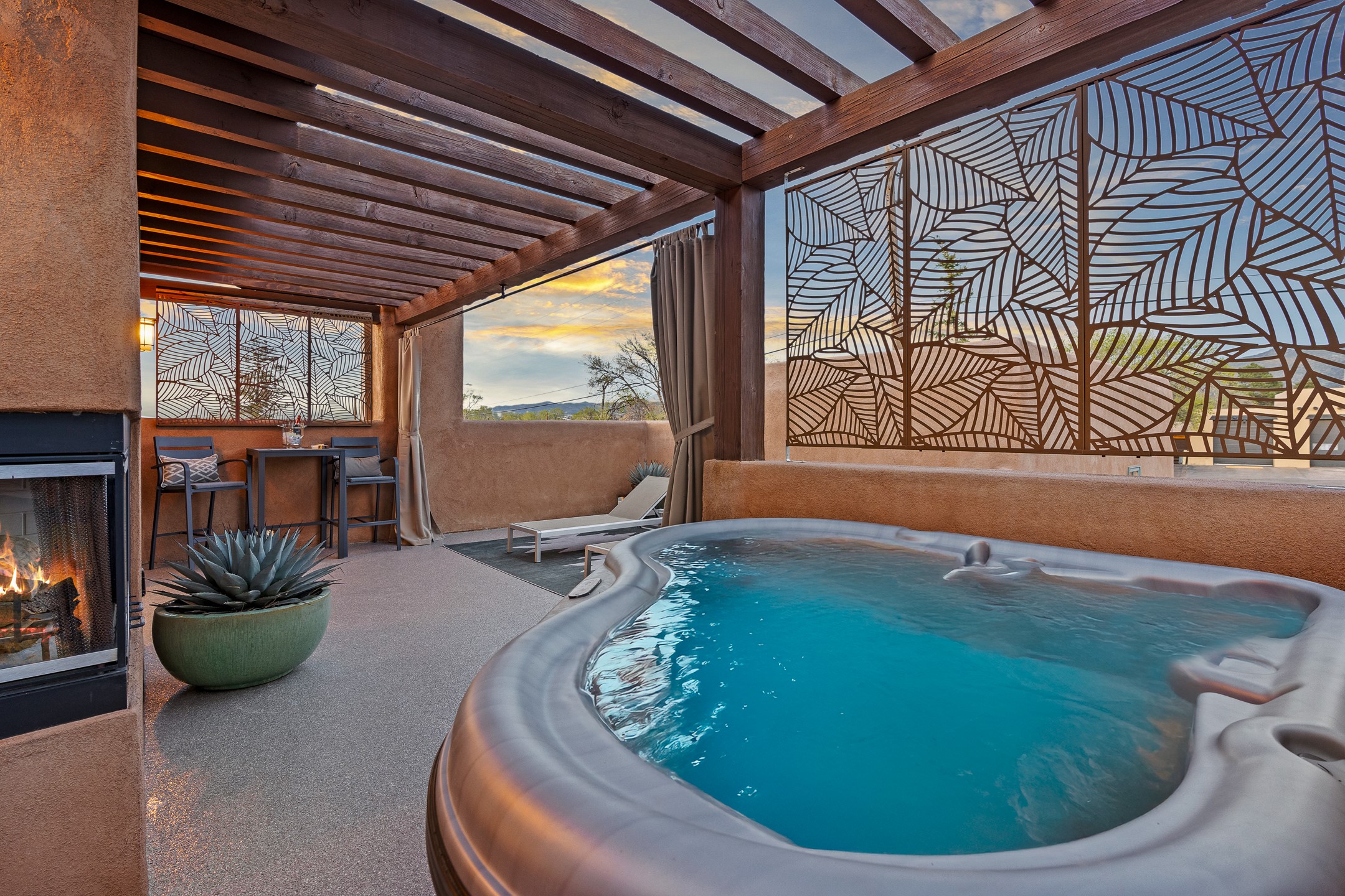 A rare and refined offering in the heart of Santa Fe, this extraordinary 6-bedroom, 6-bath gated compound is a seamless blend of architectural brilliance, design sophistication, and functional versatility. Encompassing two distinctive yet complementary residences, this private estate is nestled in the coveted South Capitol and Eastside neighborhoods--just moments from the Plaza, Canyon Road, museums, and Santa Fe's world-class dining and shopping.The main residence is a serene 4-bedroom, 4-bath sanctuary where timeless elegance meets exceptional craftsmanship. Soaring ceilings, natural American Clay plaster walls, and Douglas Fir coffered wood beam ceilings enhance the grand interiors, while floor-to-ceiling transom windows invite in abundant light. The stunning chef's kitchen--complete with Subzero refrigerator and new Viking appliances--opens to a beautifully landscaped central courtyard with a tranquil waterfall fountain, lush gardens, alfresco dining areas, and multiple verandas perfect for entertaining.The gracious living and dining rooms are anchored by a natural stone fireplace and expansive glass doors overlooking a verdant courtyard adorned with mature Wisteria, Aspen, and Cherry trees. Upstairs, the luxurious primary suite features breathtaking views of Picacho Peak, a spa-like bathroom with Jacuzzi tub, steam shower, and private rooftop terrace with fireplace, cedar hot tub, sauna, and wrap-around deck.The adjacent property, designed by an architect for both residential and commercial use, adds a flexible 2-3 bedroom, 2-bath layout ideal for live/work functionality, a creative studio, or income-generating rental. It features 12-foot ceilings, expansive windows, radiant in-floor heating, mini split A/C systems, a modern kitchen with polished granite countertops, and a spacious open-concept living area.Together, these two properties form a unique and cohesive compound with separate utility metering, multiple private entrances, 2.5-car garage plus two additional parking spaces, and the rare opportunity to live, work, and entertain in one of Santa Fe's most desirable locations. Whether as a private estate, multi-generational retreat, or mixed-use investment, this compound is a true Santa Fe masterpiece.These properties may be purchased together as a compound or separately. For individual details, please see listing MLS# 202501407 and MLS# 202501401.