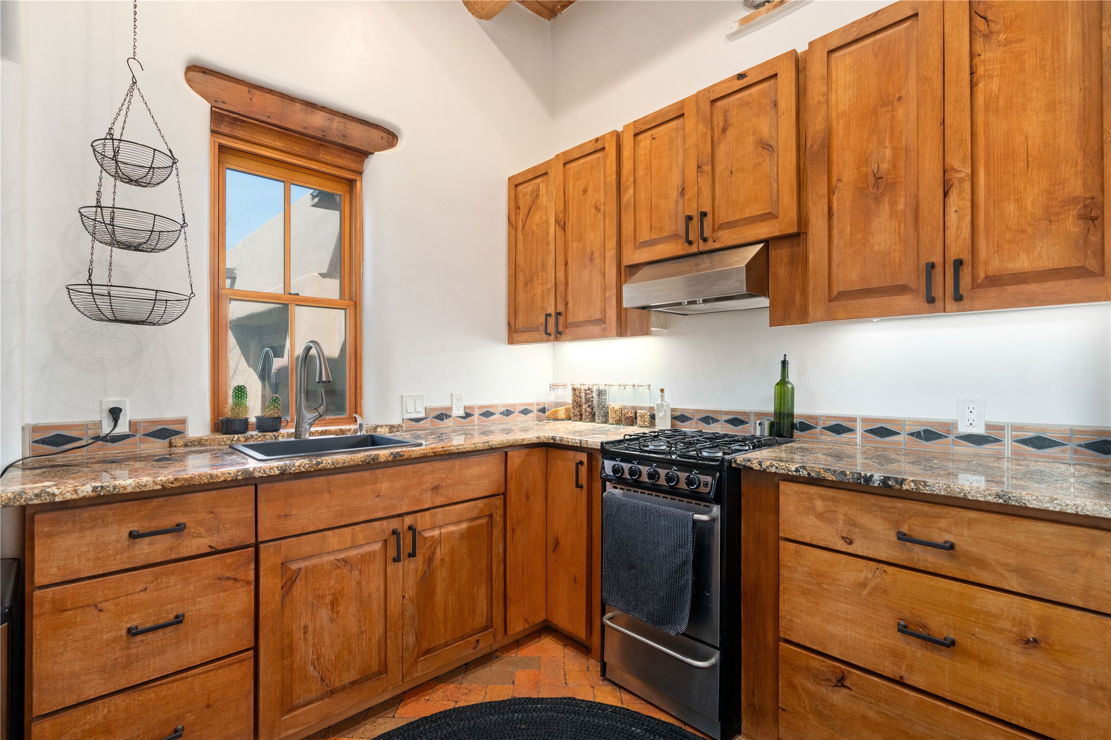 Experience timeless Santa Fe elegance in this exquisite 3-bedroom, 4-bath double adobe home perched on a 2.017 acre lot, offering sweeping 180 degree views of the Sangre de Cristo foothills. The location is fantastic--just minutes from the Santa Fe Plaza, Canyon Road, Museum Hill, Ten Thousand Waves, and less than 1/2 hour to the Santa Fe Ski Area. The residence features white plaster walls, beautifully laid brick floors, and soaring ceilings adorned with vigas and latillas. A new custom-made La Puerta front door sets the tone for the home's authentic charm. The en-suite primary bedroom boasts a corner fireplace and private balcony access. A separate guest suite includes its own kitchenette and entrance. Multiple decks provide perfect vantage points to relax and take in the stunning scenery. The gourmet kitchen, formal dining room, and three fireplaces create a warm, inviting atmosphere. A new roof was installed in 2020 and includes a transferable warranty for peace of mind. Additional highlights include a 2-car garage, ample off-street parking, and a potential building site on the lower portion of the lot. This is Santa Fe living at its finest - Schedule a showing today!