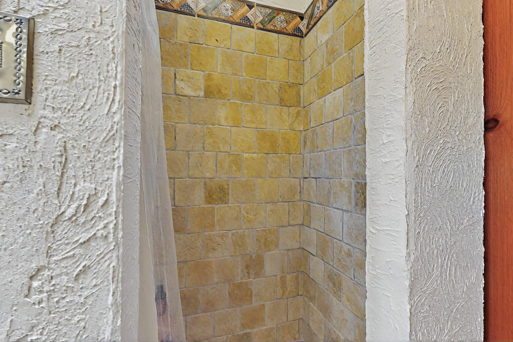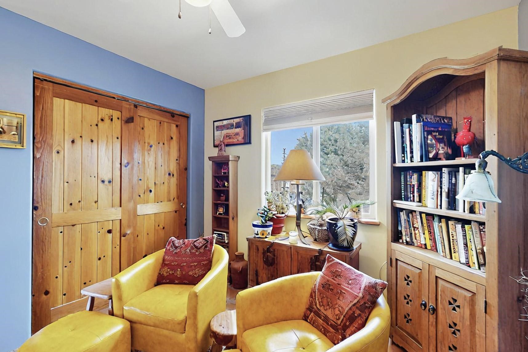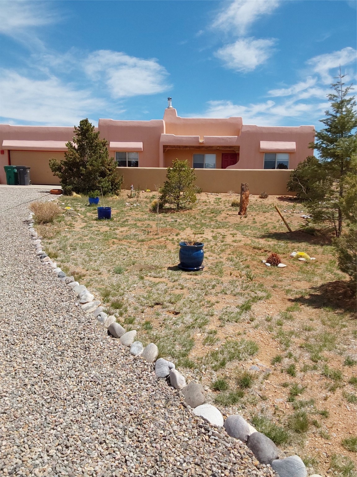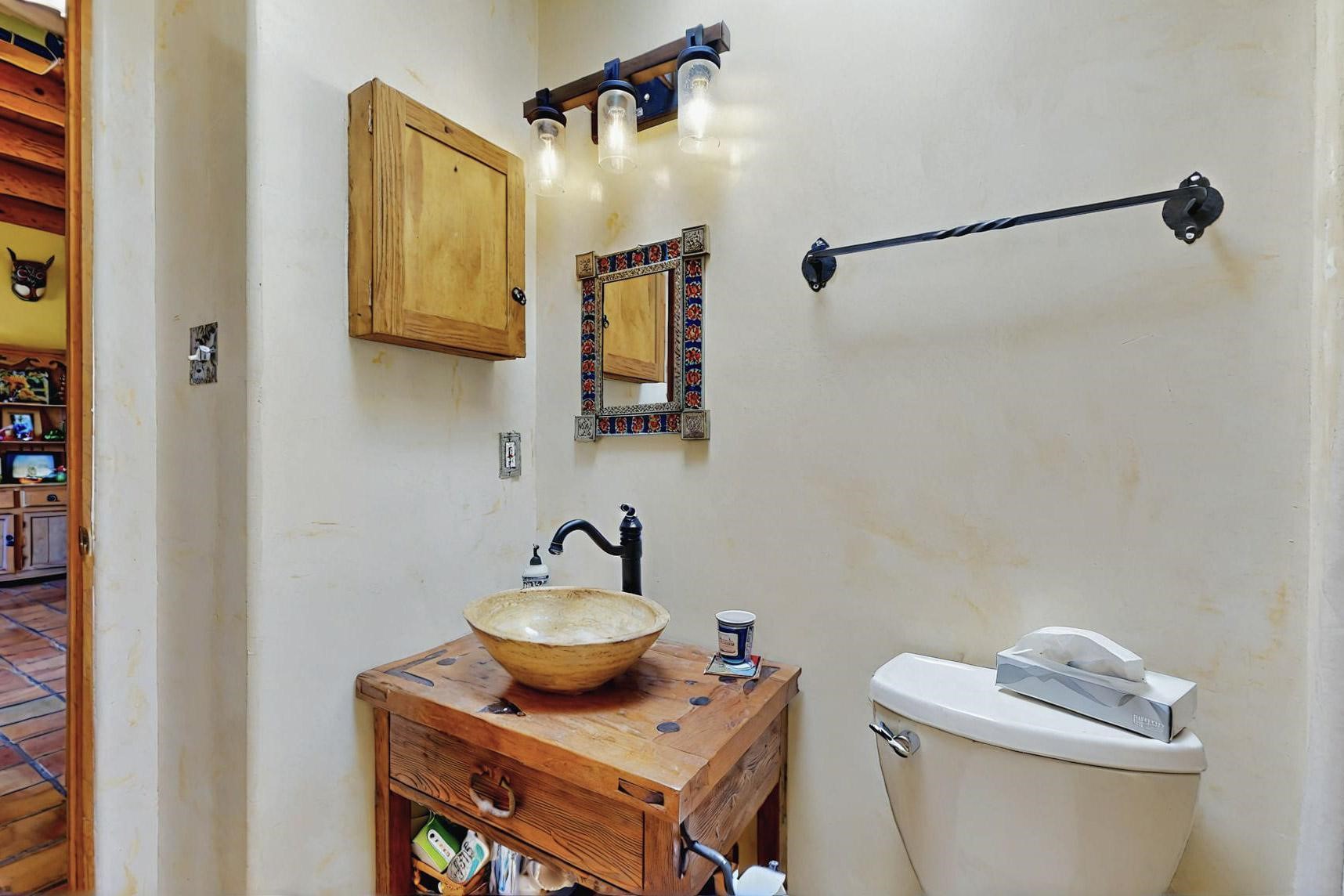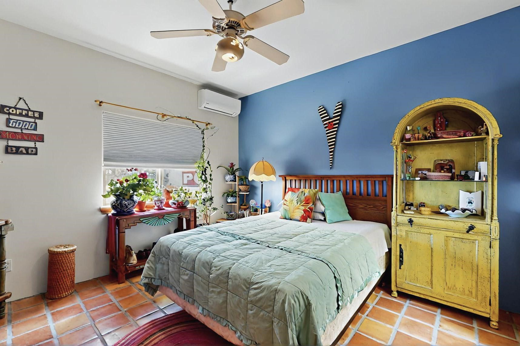 Absolutely delightful blend of Santa Fe charm and Mexico spice inside and out. Popular split bedroom design oozing with character, this home is like new. Gleaming Saltillo tile floors, re stuccoed, a synthetic roof with a 10 year warranty, plus re plumbed pex domestic piping all done in 2023. 4 Daikin mini splits were installed with 2 condensers to replace the radiant heating and add air-conditioning, plus a wood burning stove in the living room for cosy winters. The kitchen and both bathrooms were also delightfully remodeled. Outside the coyote fence was upgraded, landscape added and a second dog coyote fenced area built plus a storage shed added. The driveway, front wall and fencing added to create an ambient entry. Wow! This home is sparkling and move in ready close to local shopping, Eldorado amenities, library, school, senior center and only minutes into Santa Fe.