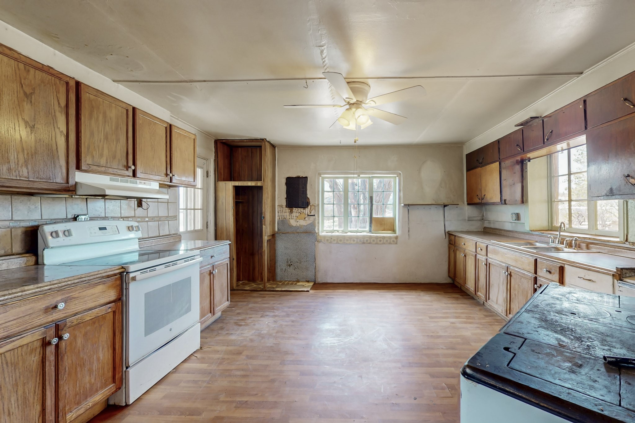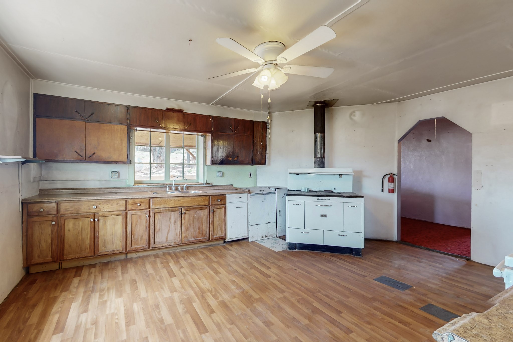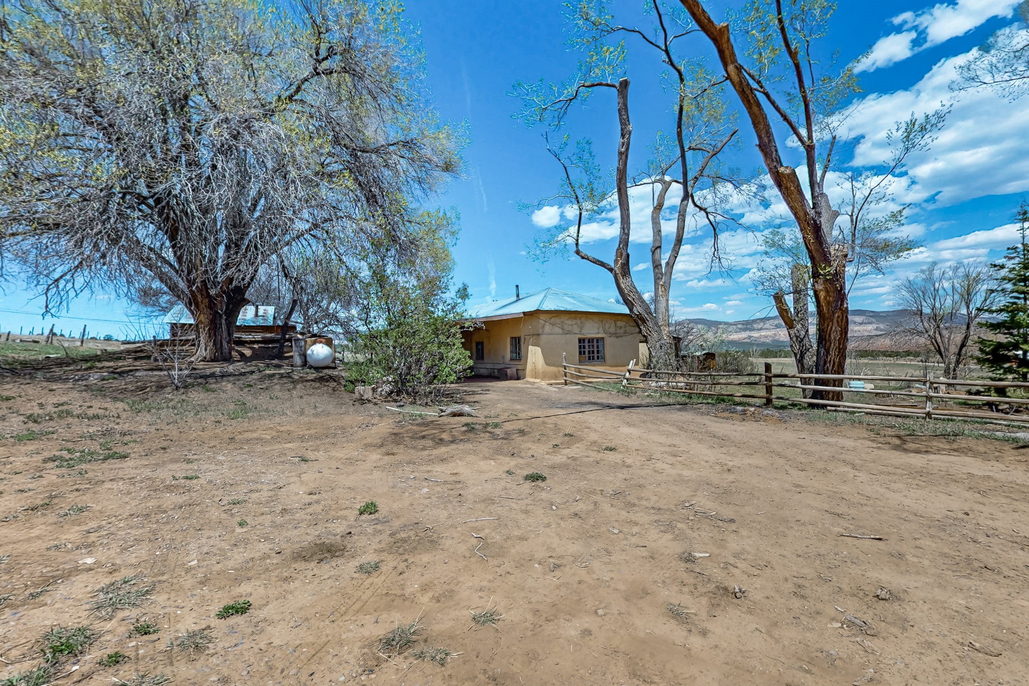 This charming, mostly adobe home on approximately 1.65 acres offers breathtaking views from La Mesa de Poleo. Gaze upon the Abiquiu Reservoir to the northeast, the iconic Cerro Pedernal, the Jemez Mountains to the east, and Mesa Alta. The picturesque Santa Teresa Church, a quintessential Northern New Mexico landmark, is just a short walk away. From this idyllic location, easy access awaits to the Rio Puerco campground, the San Pedro Wilderness, and numerous other forest campgrounds. As night falls, witness the twinkling lights of the Coyote community and a sky ablaze with stars. This home is a blank canvas for a creative mind. It features a wood-fired cooking stove (optional for use) and an electric stove. The surrounding grassy property is perfect for leisurely picnics under the trees. The property also includes a one-bay carport attached to the house, a small cabin-like structure, and a partially underground cellar ideal for canning. Embrace sustainable living with included irrigation water rights for an organic garden and an assortment of fruit trees. There's ample space for a few farm animals, complemented by a corral and an additional two-car carport situated on a small hill beside the west boundary. Country living beckons--return to basics and savor life's simple pleasures: crisp, fresh air, stunning sunrises and sunsets, unobstructed night skies, a fertile plot for a garden and farm animals, and unparalleled views. OWNER CARRY POSSIBLE.
