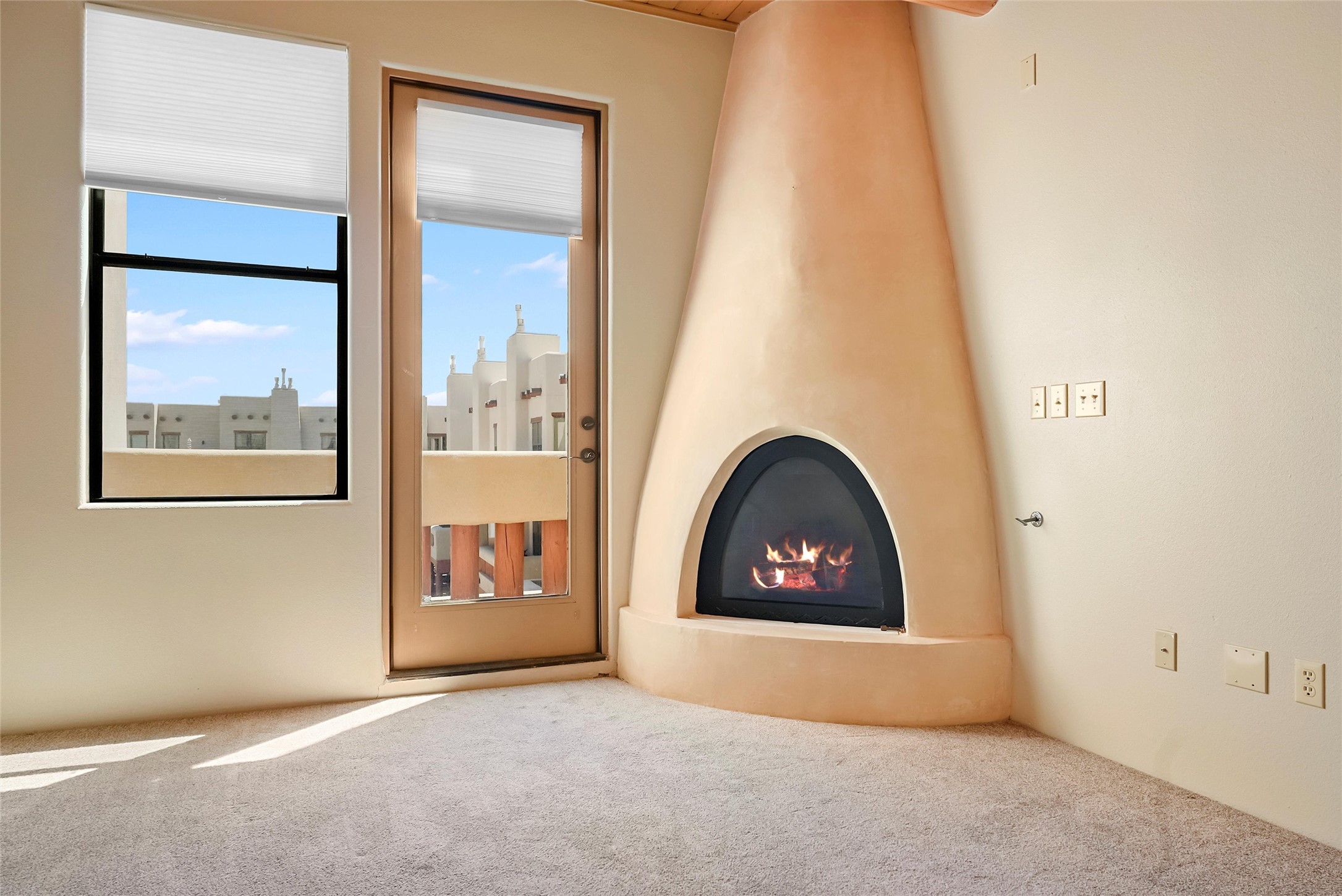 Welcome to 1405 Vegas Verdes #341! Experience easy living in this beautifully maintained 1-bedroom, 1-bathroom condo located in the desirable Alameda Condominium Complex. This bright and inviting third-floor unit features a private balcony perfect for enjoying Santa Fe's stunning sunsets. In the living room you'll find a beautiful kiva fireplace that will keep you warm during cooler evenings. Inside, you'll appreciate the convenience of an in-unit laundry, ample closet space, and a thoughtfully designed open floor plan. An additional private 10' x 12' storage unit offers plenty of space for all your extras -- a rare find! The Alameda community offers fantastic amenities including a sparkling outdoor pool, BBQ area, fitness center, and a shared room for private gatherings. With secure access, elevators, and a prime location close to shopping, dining, and entertainment, this is an ideal place to call home! Don't miss your chance to own a piece of Santa Fe's vibrant lifestyle -- schedule your showing today!