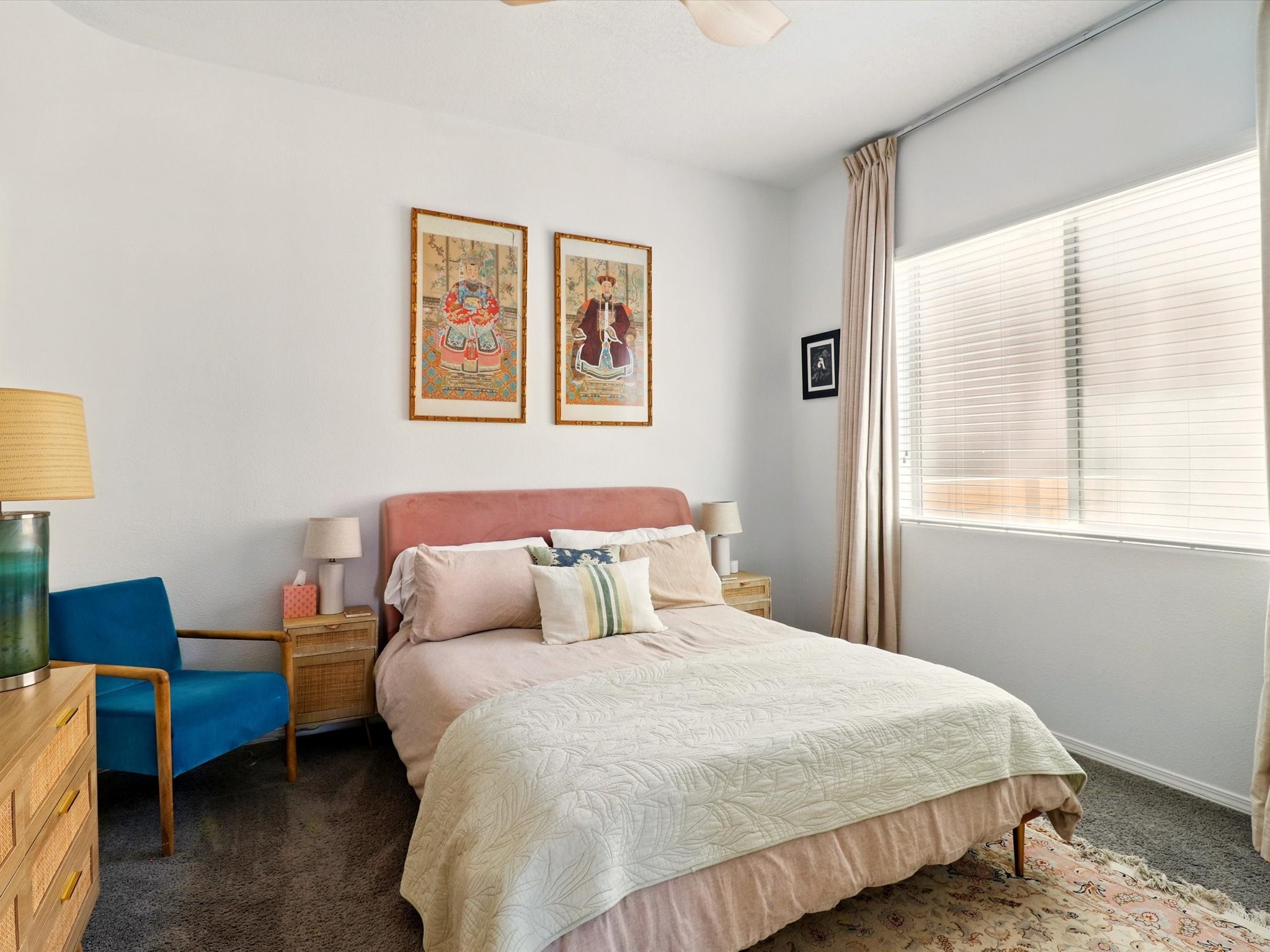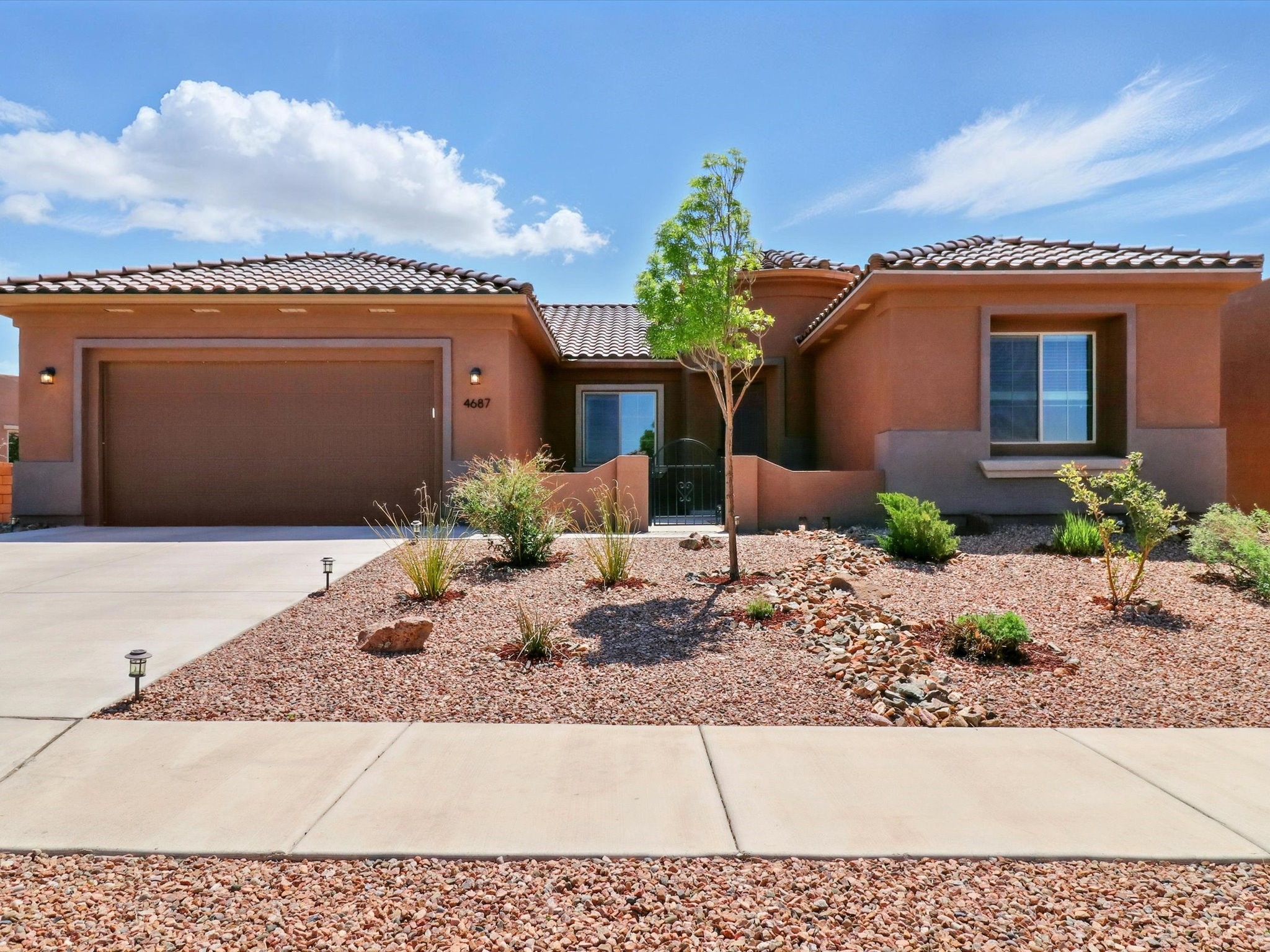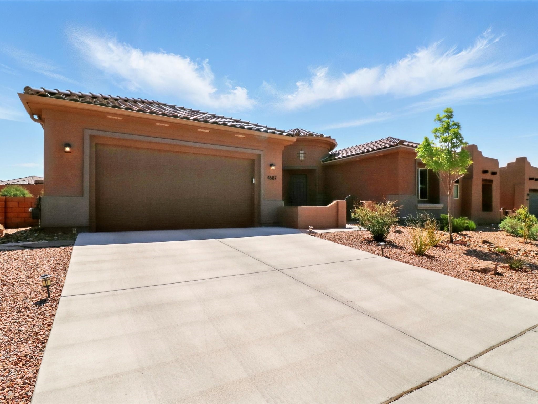 Welcome to a perfect blend of style and functionality in this beautifully appointed 3-bedroom, 2-bath home located in the highly desirable Las Soleras community. From the moment you enter, you're welcomed by a bright, versatile flex room--ideal for a home office, studio, or den--setting the tone for the open-concept living space that follows.Soaked in natural light, the spacious living and dining areas flow seamlessly into a chef-inspired kitchen featuring an in-wall Whirlpool oven and microwave combo, a sleek Samsung refrigerator, gas stovetop, and ample cabinetry for all your storage needs. A large pantry adds even more convenience for the home cook or entertainer.The generously sized primary suite offers a peaceful retreat with added Custom sliding doors that lead directly to the backyard. Step outside into your own private haven--beautifully landscaped with gravel and greenery, and extended for true outdoor living with a built-in fireplace, perfect for Santa Fe evenings under the stars.Situated on a .23-acre lot with a two-car garage, this home offers space, comfort, and thoughtful upgrades throughout.