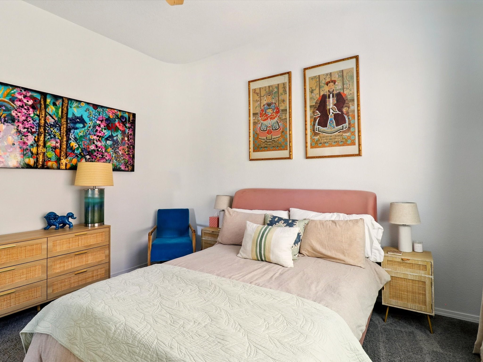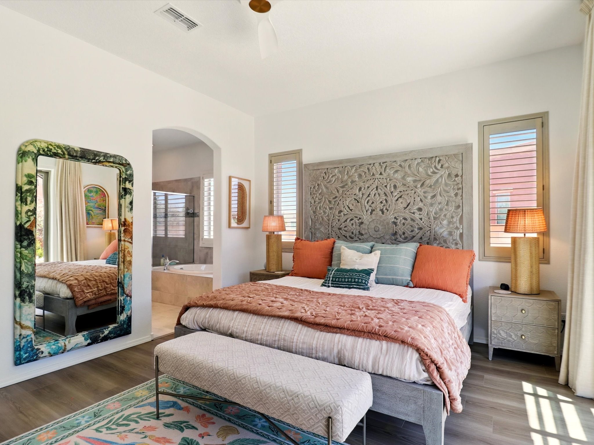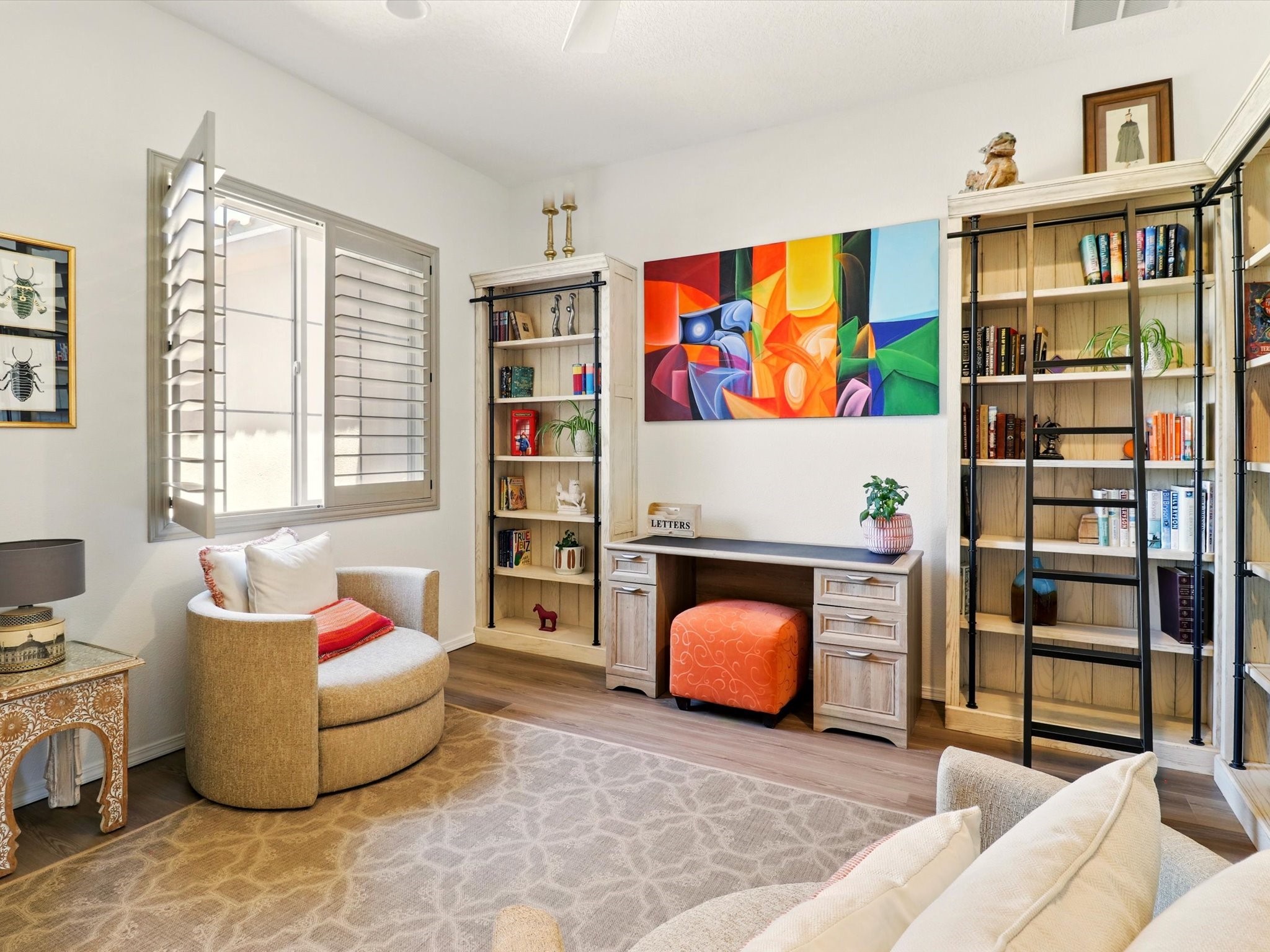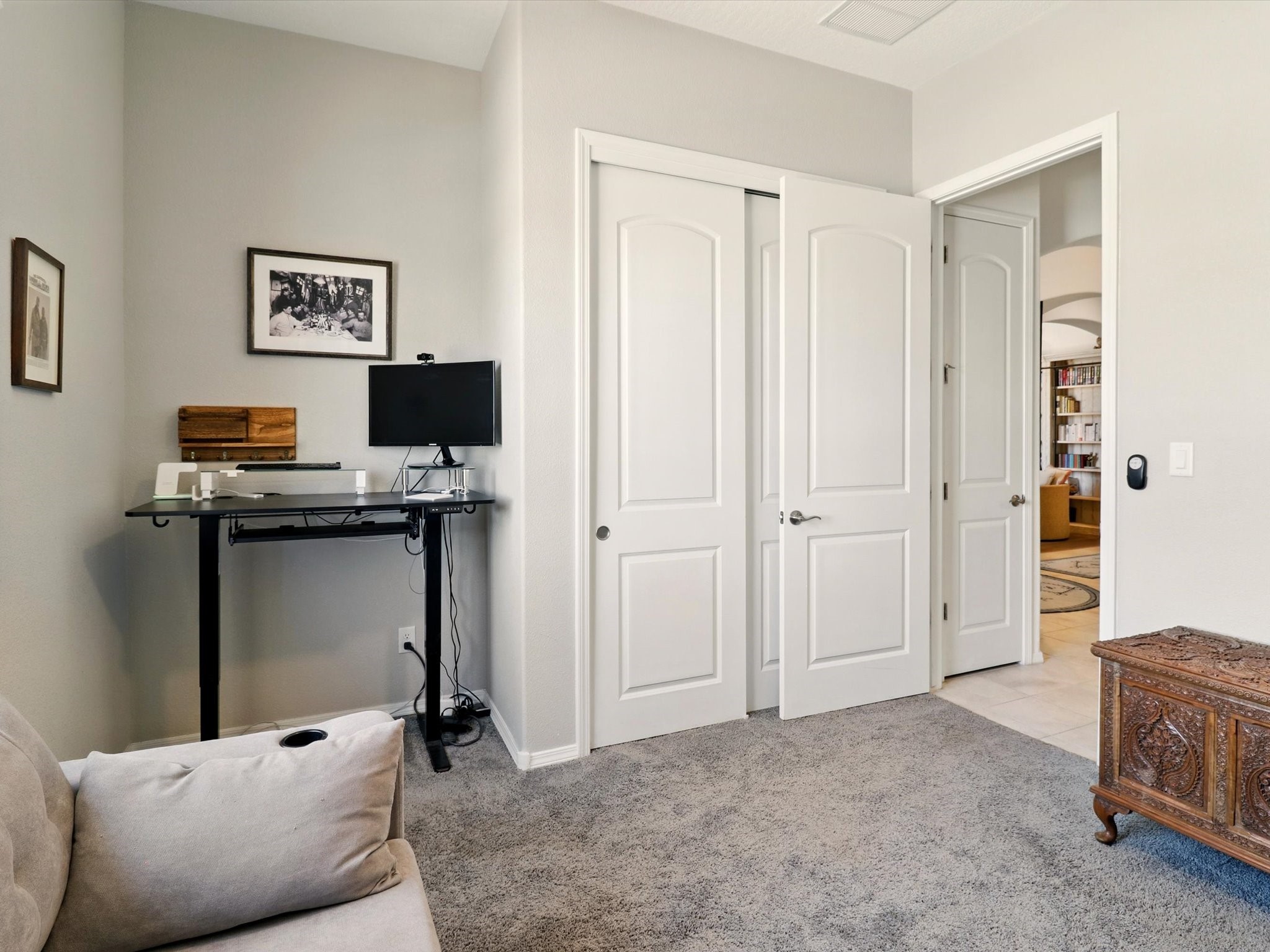 Welcome to a perfect blend of style and functionality in this beautifully appointed 3-bedroom, 2-bath home located in the highly desirable Las Soleras community. From the moment you enter, you're welcomed by a bright, versatile flex room--ideal for a home office, studio, or den--setting the tone for the open-concept living space that follows.Soaked in natural light, the spacious living and dining areas flow seamlessly into a chef-inspired kitchen featuring an in-wall Whirlpool oven and microwave combo, a sleek Samsung refrigerator, gas stovetop, and ample cabinetry for all your storage needs. A large pantry adds even more convenience for the home cook or entertainer.The generously sized primary suite offers a peaceful retreat with added Custom sliding doors that lead directly to the backyard. Step outside into your own private haven--beautifully landscaped with gravel and greenery, and extended for true outdoor living with a built-in fireplace, perfect for Santa Fe evenings under the stars.Situated on a .23-acre lot with a two-car garage, this home offers space, comfort, and thoughtful upgrades throughout.