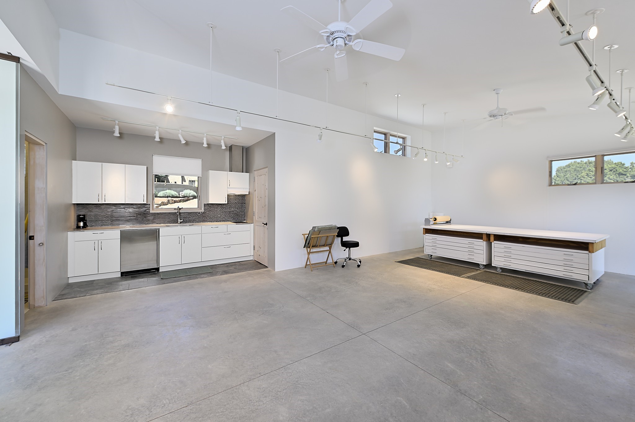 Perched atop a grassy mesa on over 40 acres covering 3 tracts, this 2009 adobe home designed by Ted Turner offers panoramic views of the Sangre de Cristo, Sandia, Jemez, Ortiz Mountain ranges& Mount Taylor. Exuding Santa Fe elegance, with soft contemporary design, featuring concrete floors, diamond-finish clay plaster walls, expansive banks of windows, exposed beams. The chef's kitchen is open and bright, with quartz countertops, a 4-burner range, convection microwave, custom soft-close cabinetry, and pantry. The open-concept layout flows into a curved gallery hallway with indoor-outdoor living and large portals to experience Santa Fe's breathtaking sunsets. Views from every room & excellent separation of bedrooms for privacy and comfort, enjoy radiant in-floor heating, a high-efficiency boiler, a 6,500-gallon rainwater collection system, 12-panel solar array, solar-powered well, and whole-house water filtration as well as a commercial grade roof. The 750-square-foot studio/guest house--built to passive house standard- can be used as an art studio, office, or guest quarters, with south-facing light, concrete floors, a kitchenette, and half-bath. Enjoy a three-car garage with a tall roll-up door, workshop space, and rodent-resistant construction. This an extraordinary retreat just minutes from the heart of Santa Fe--yet worlds away in tranquility and privacy.