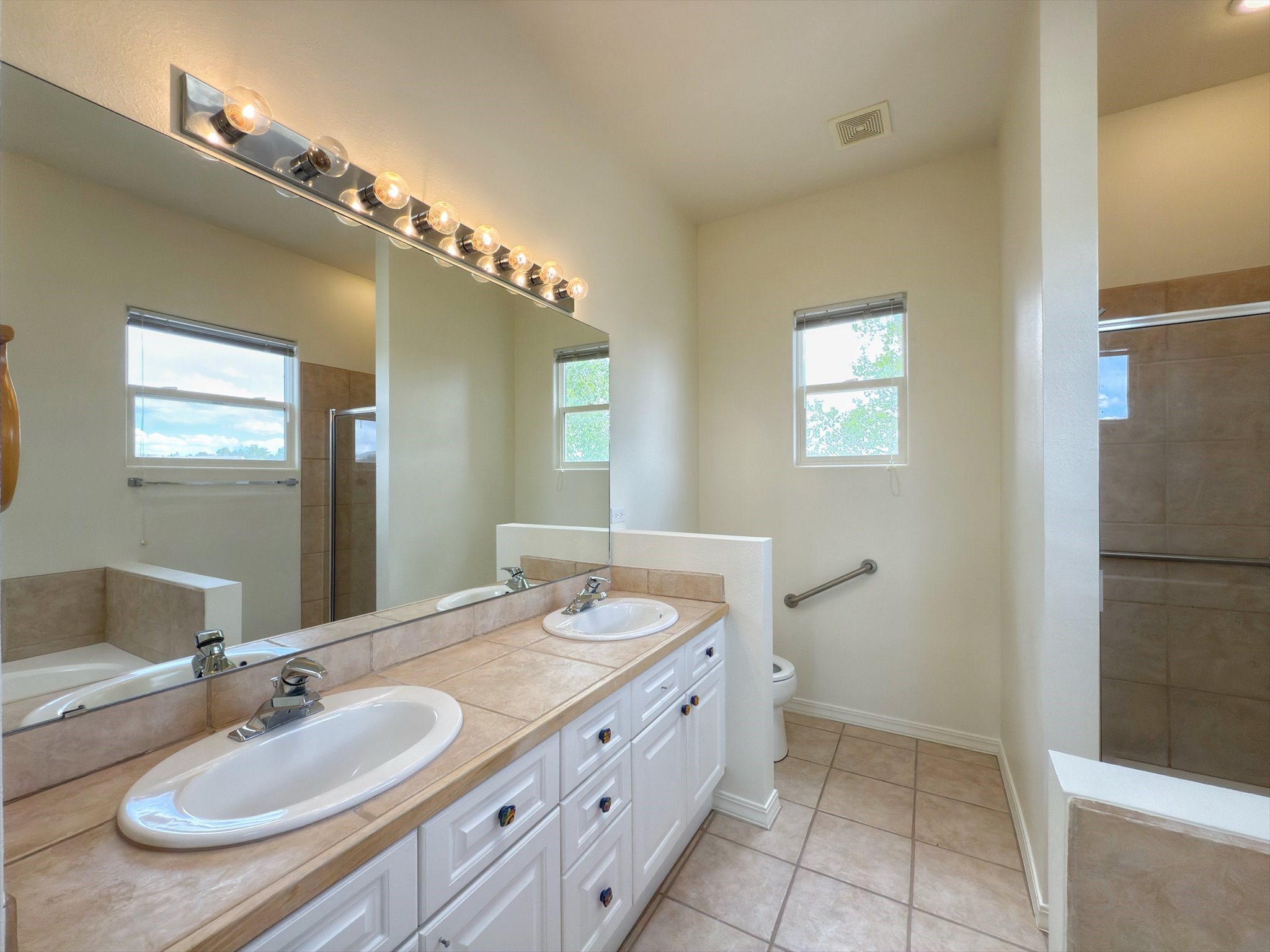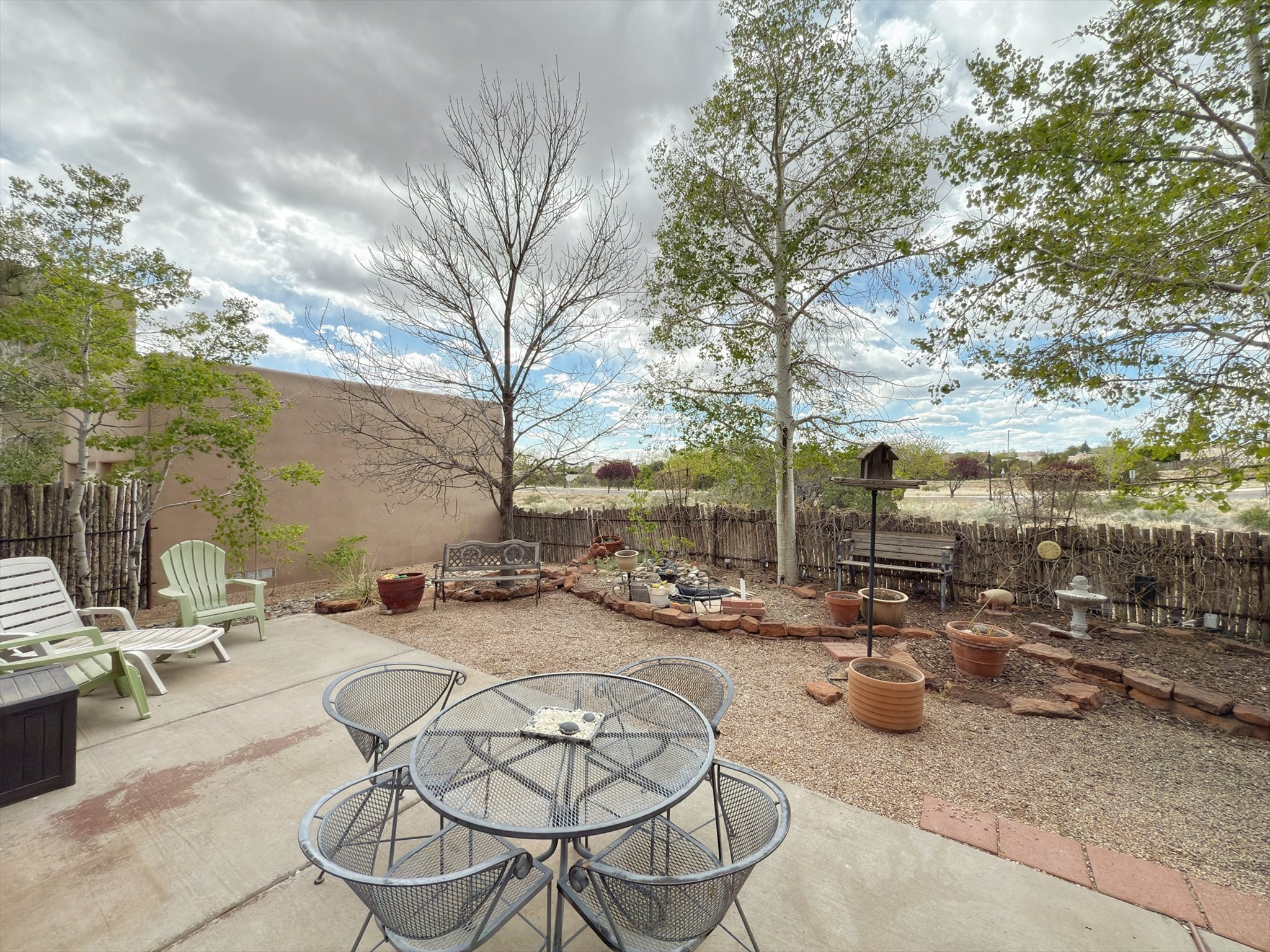 Experience the perfect blend of Southwestern charm and modern convenience in this beautifully maintained home located in the desirable Nava Ade community of Santa Fe. Your new home is a freshly painted and polished gem that offers a lifestyle of comfort and accessibility.Step inside to discover spacious rooms filled with natural light, tile-finished showers and countertops, and a cozy gas fireplace that adds warmth and ambiance. The open floor plan seamlessly connects living spaces, making entertaining effortless. The well-appointed kitchen and bathrooms provide both beauty and functionality.Enjoy the generous yard space and a private outdoor living area--perfect for morning coffee or evening gatherings. The two-car garage offers added storage and convenience, rounding out the home's thoughtful design.As a resident of Nava Ade, you'll have access to a community fitness center, swimming pool, and gathering hall, enhancing your lifestyle with amenities just steps from your door. The neighborhood boasts mature landscaping, walking trails, and parks, creating a serene environment for families and individuals alike.Conveniently located near Santa Fe Community College, Santa Fe Place Mall, and the Cerrillos Road corridor, you'll find shopping, dining, and entertainment options within easy reach. Proximity to I-25 and public transportation makes commuting a breeze, while nearby parks and recreational facilities offer ample opportunities for outdoor activities.Don't miss the opportunity to own this move-in-ready gem in one of Santa Fe's most welcoming neighborhoods.This home has been virtually staged to help visualize potential furnishings and layout.