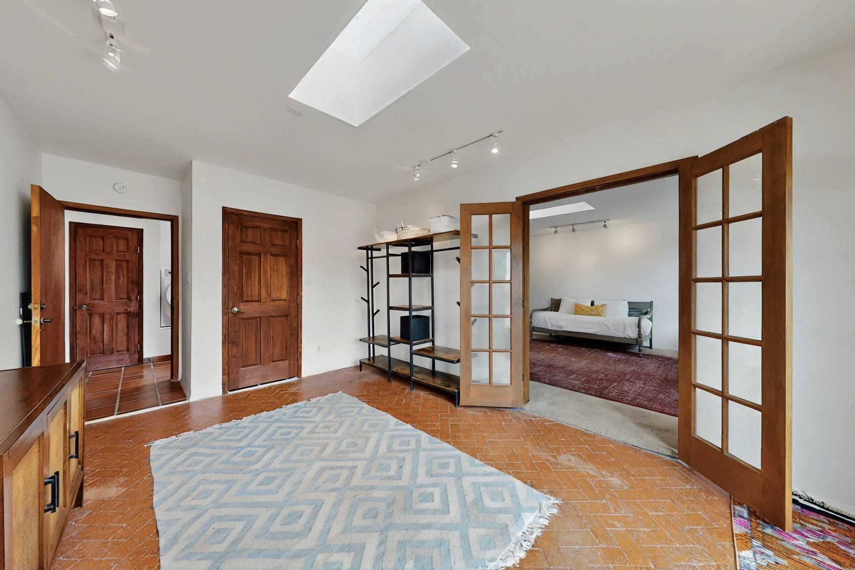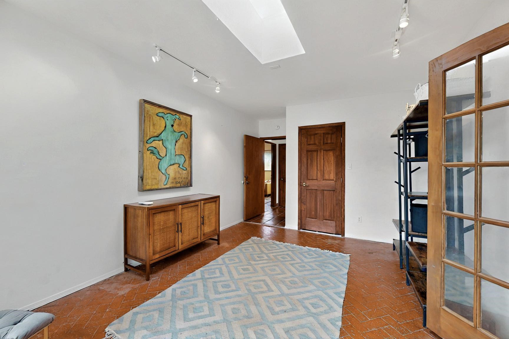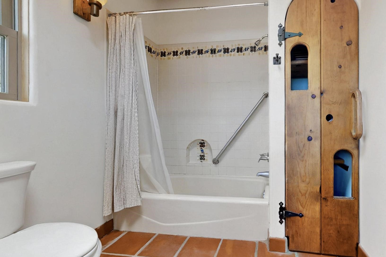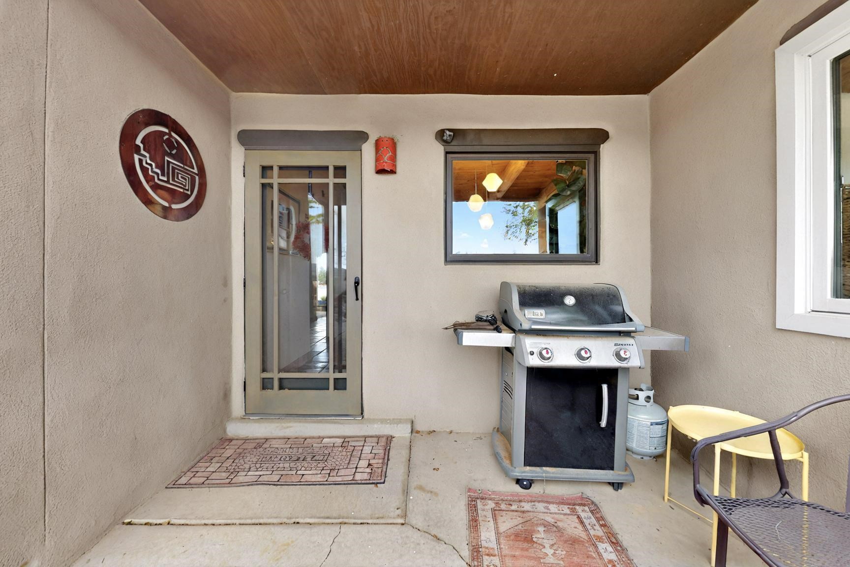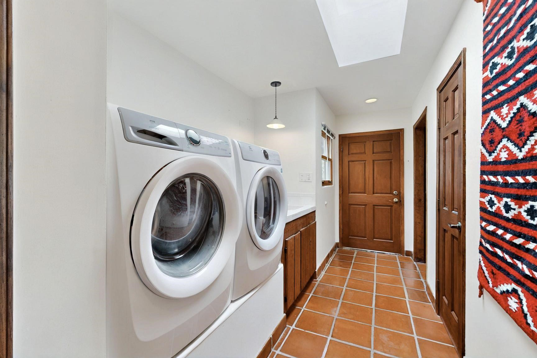 Stunning custom passive solar creation by Leif Backe nestled back from the road for ultimate privacy and mountain views. This split 3 bedroom design oozing with Santa Fe charm and ambience, is loaded with extra spaces for hobbies or meditation. Built to access light and lovely views from large windows in every room, gleaming Saltillo tile floors, rustic rough hewn vigas and beams, a traditional kiva fireplaces and 2 cosy natural gas stoves. 5 minisplits have been added for summer cool and winter heat. The totally remodeled kitchen is a perfect blend of pueblo and contemporary design. Enjoy the lovely view breakfast nook, large den and heated studio/workshop or simply relax in the naturally landscaped private gardens. The membrane roof is only 5 years old. This fabulous home accesses all of Eldorado amenities, close to local services and shopping plus only minutes into Santa Fe.