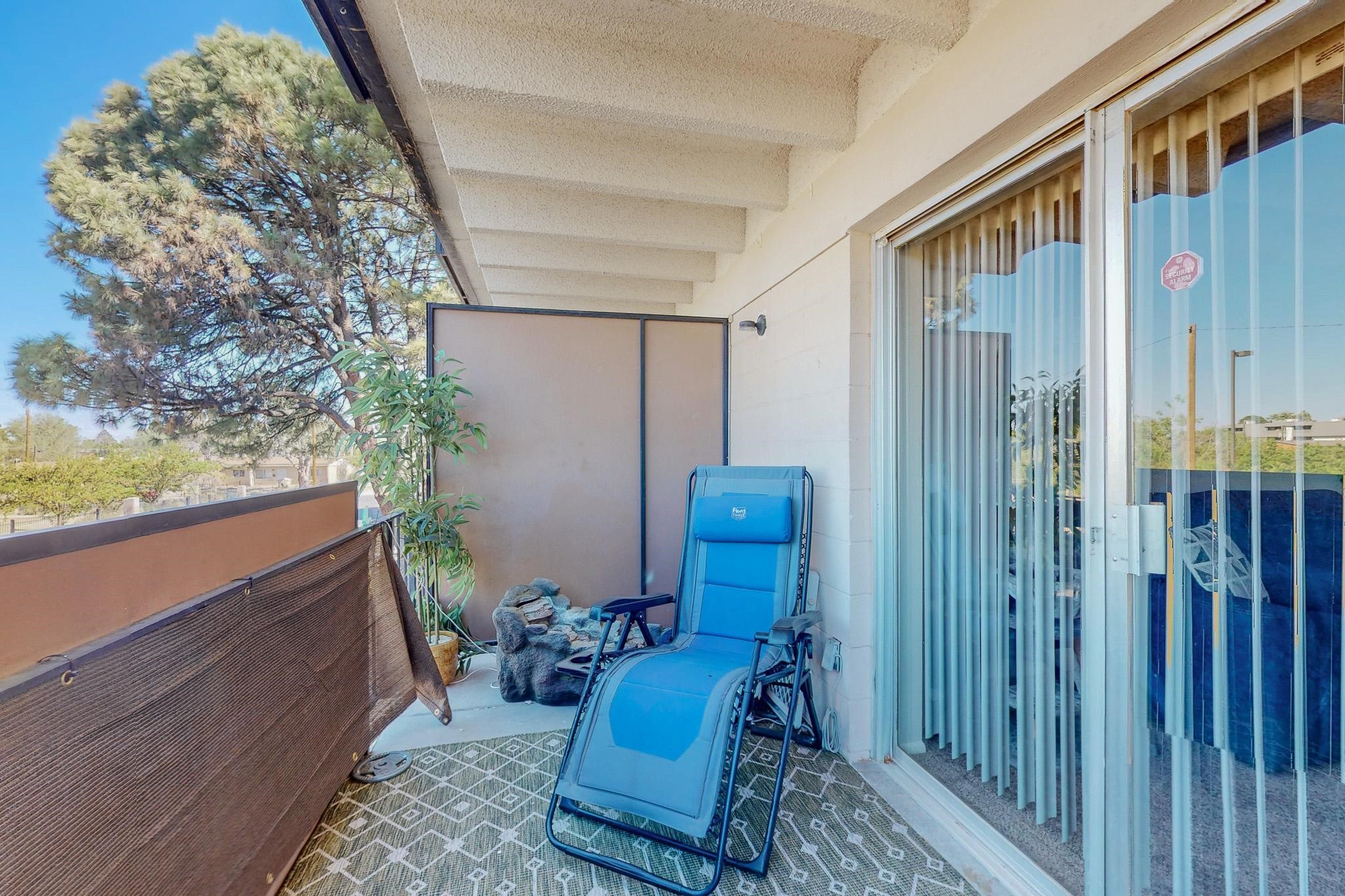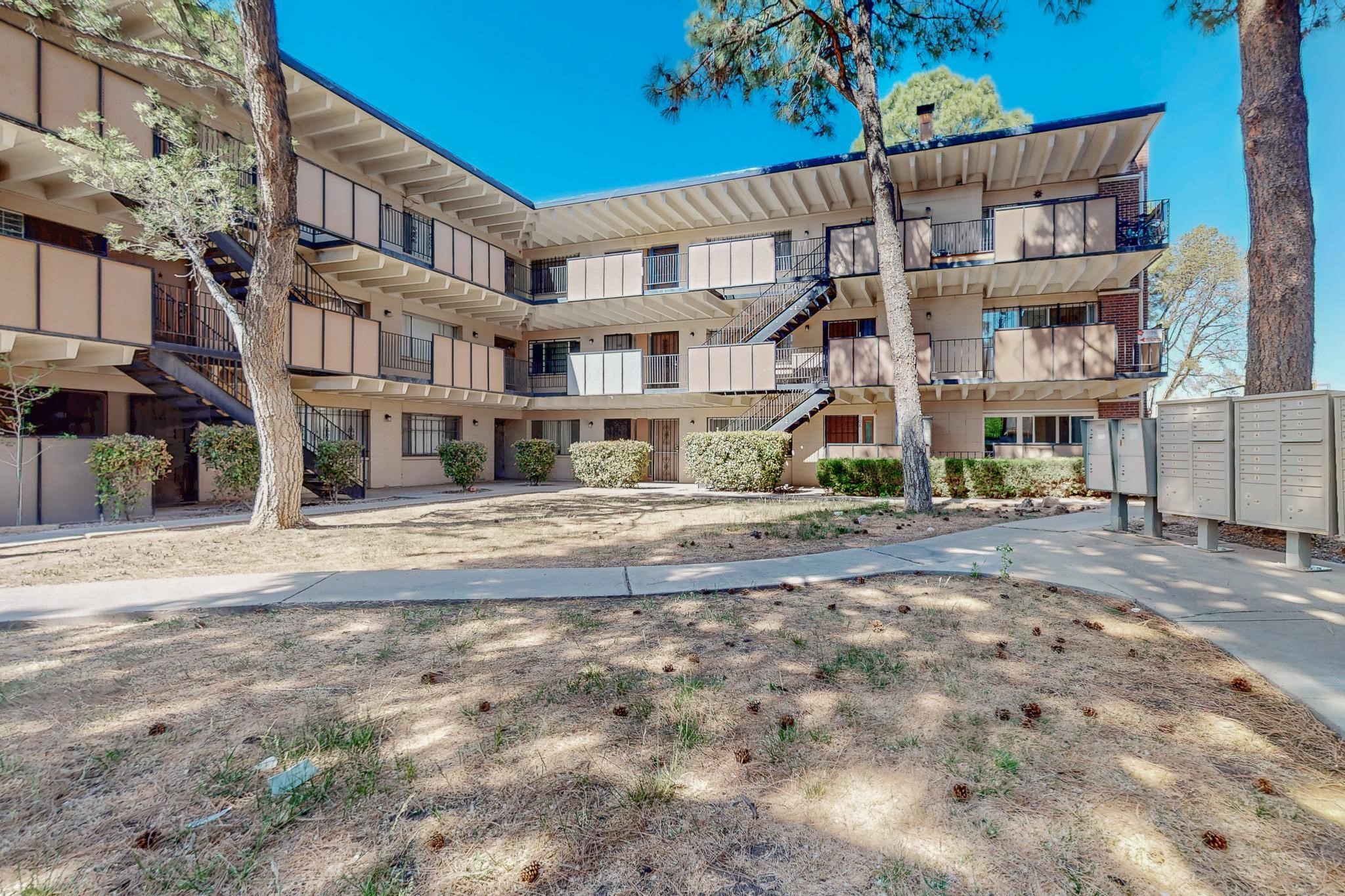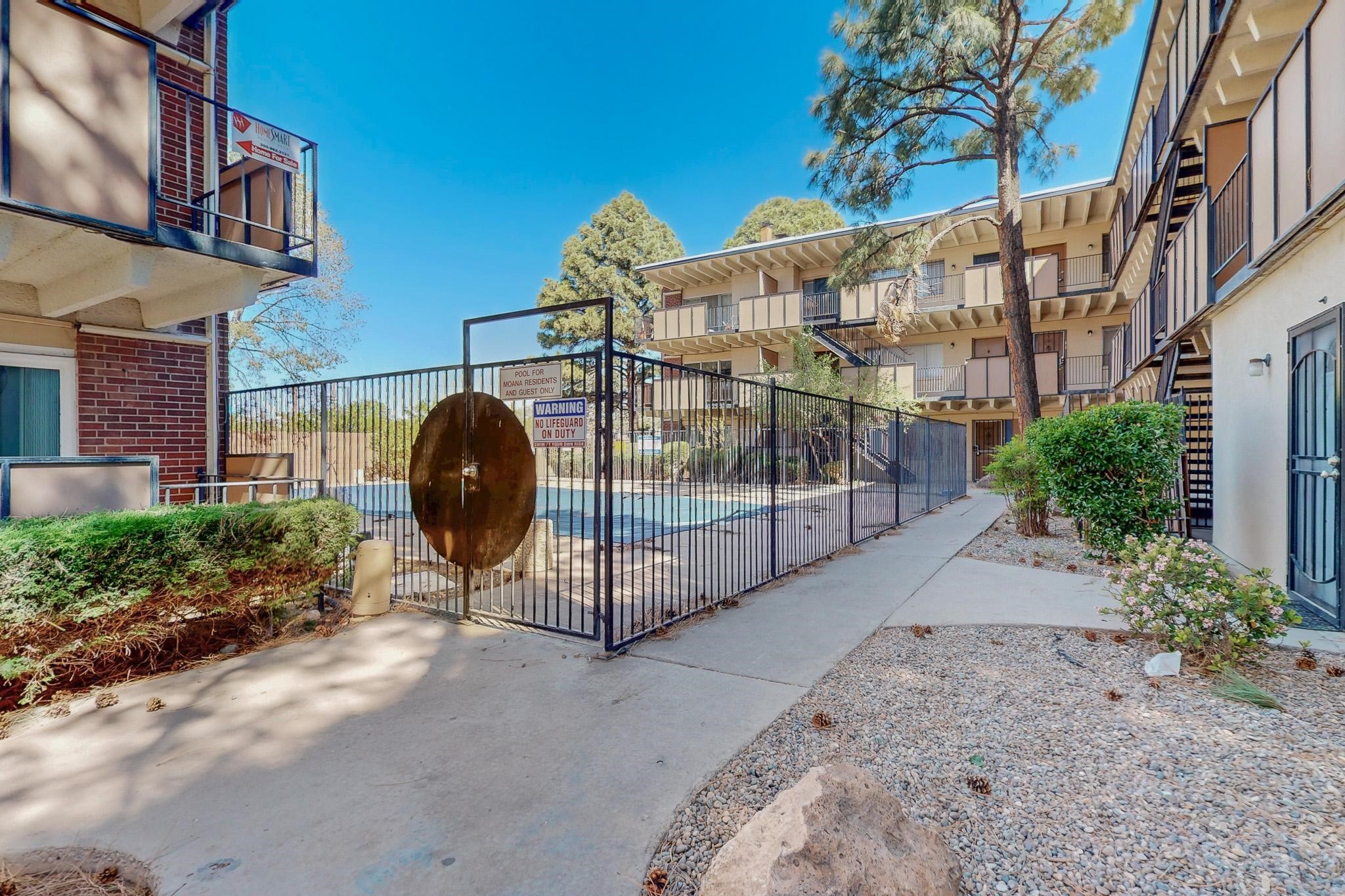 All utilities (except electric) covered by HOA! Explore the comfort and convenience of condo living at Moana Condominiums! This well-kept unit features two spacious bedrooms and an updated full bathroom with modern tile flooring and a stylish vanity. The large eat-in kitchen opens to the living room, making it great for everyday living or hosting guests. Step outside onto the private balcony to enjoy some fresh air. A washer and dryer are included for added ease. The gated community offers resident-only parking, and a central courtyard. Located just minutes from Kirtland Air Force Base, the airport, and downtown Albuquerque, this condo is perfectly positioned for work or play.