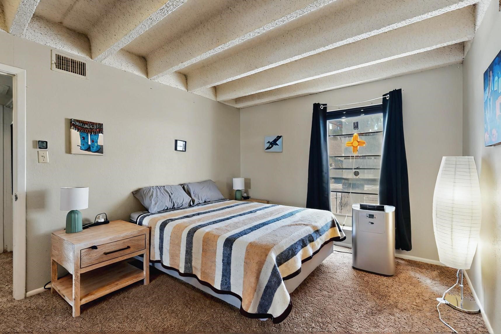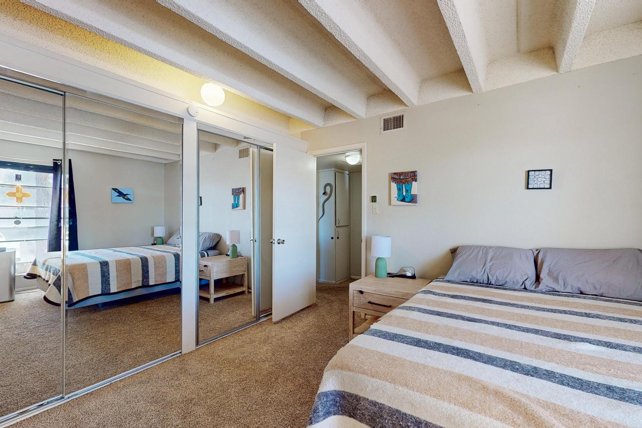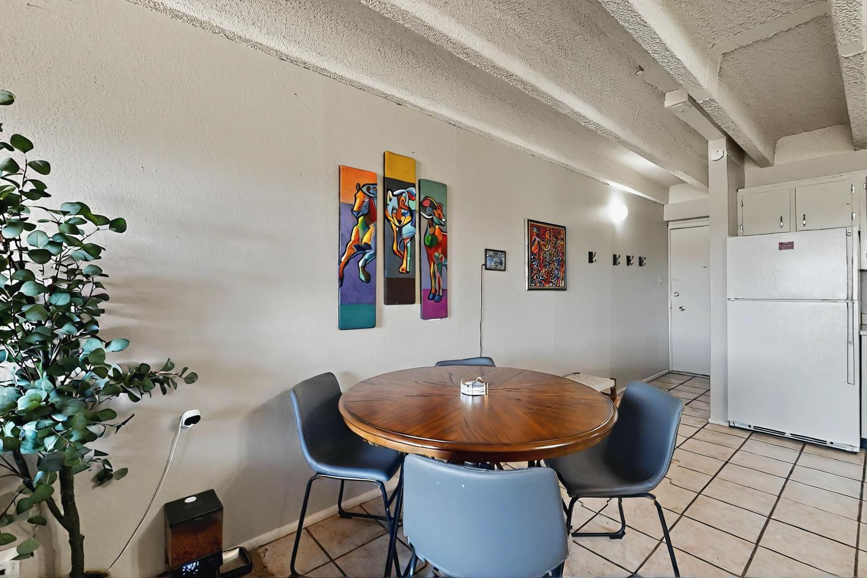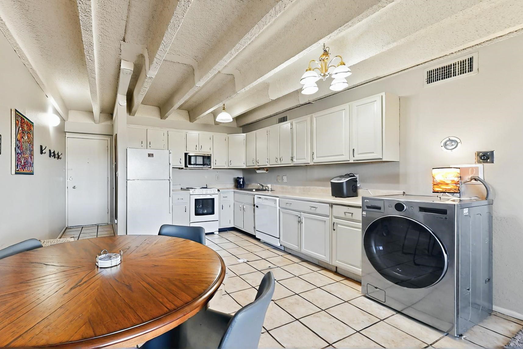 All utilities (except electric) covered by HOA! Explore the comfort and convenience of condo living at Moana Condominiums! This well-kept unit features two spacious bedrooms and an updated full bathroom with modern tile flooring and a stylish vanity. The large eat-in kitchen opens to the living room, making it great for everyday living or hosting guests. Step outside onto the private balcony to enjoy some fresh air. A washer and dryer are included for added ease. The gated community offers resident-only parking, and a central courtyard. Located just minutes from Kirtland Air Force Base, the airport, and downtown Albuquerque, this condo is perfectly positioned for work or play.
